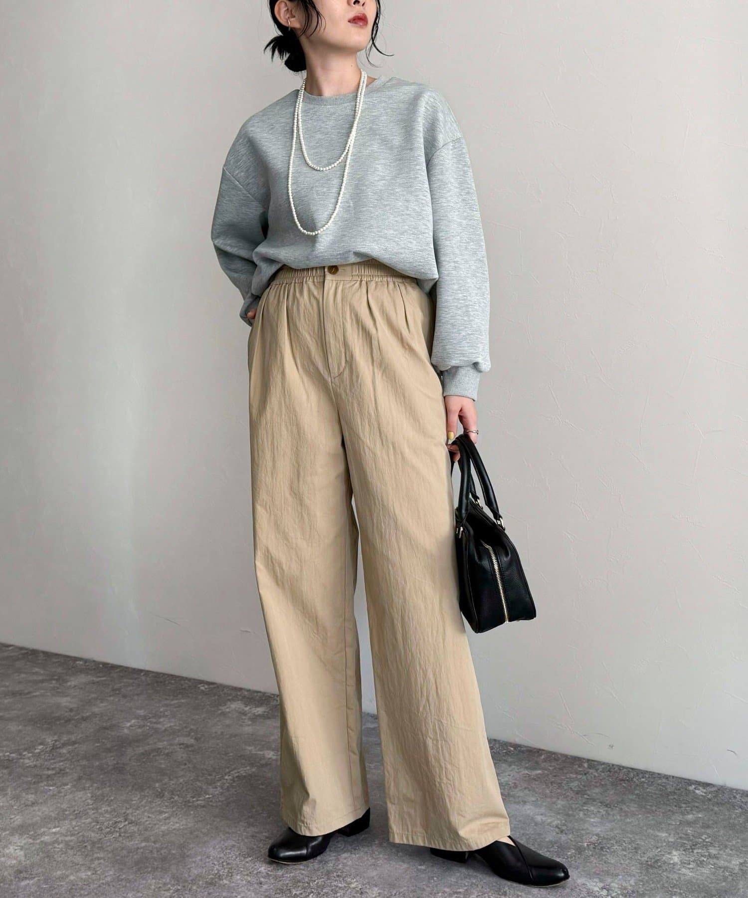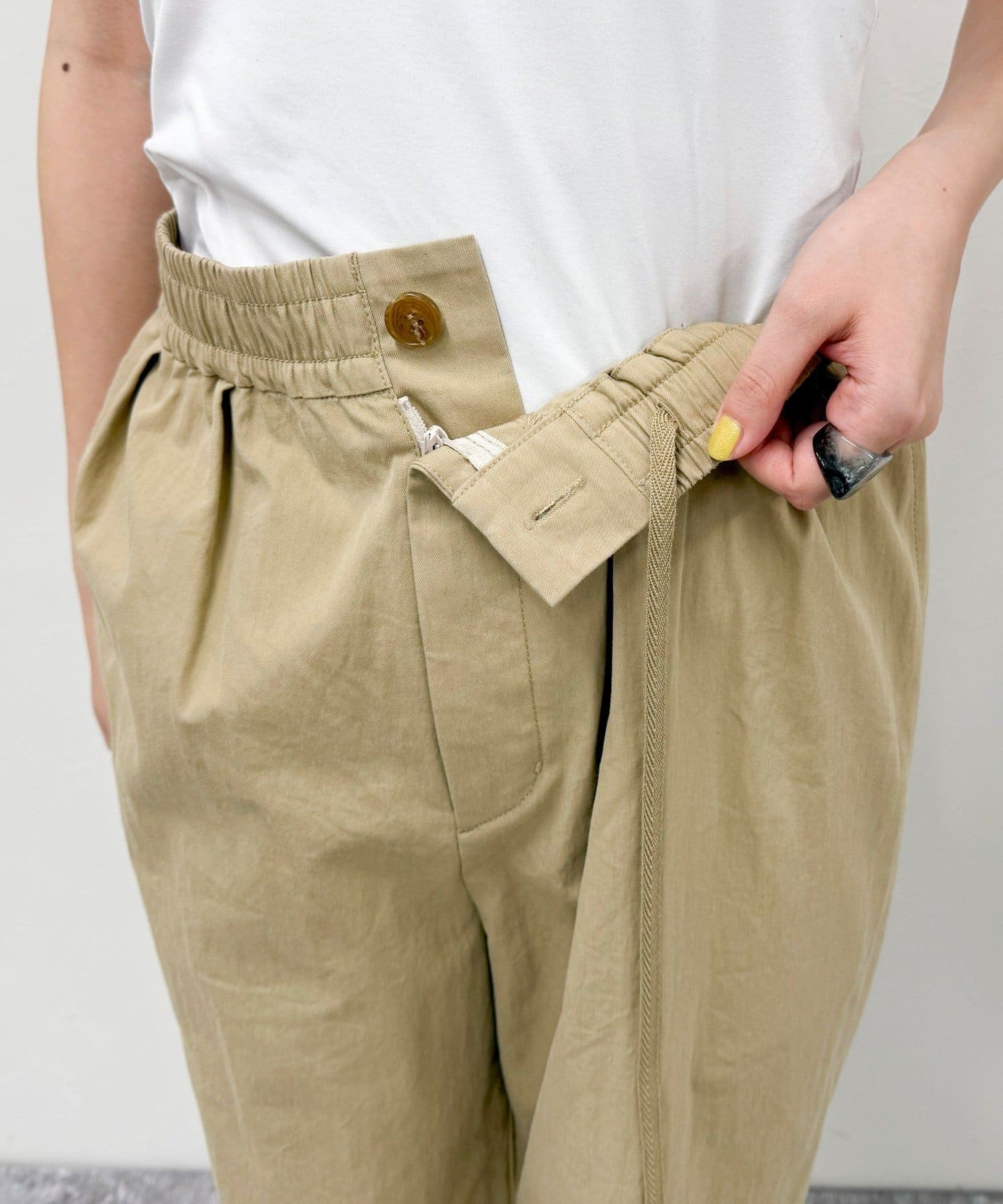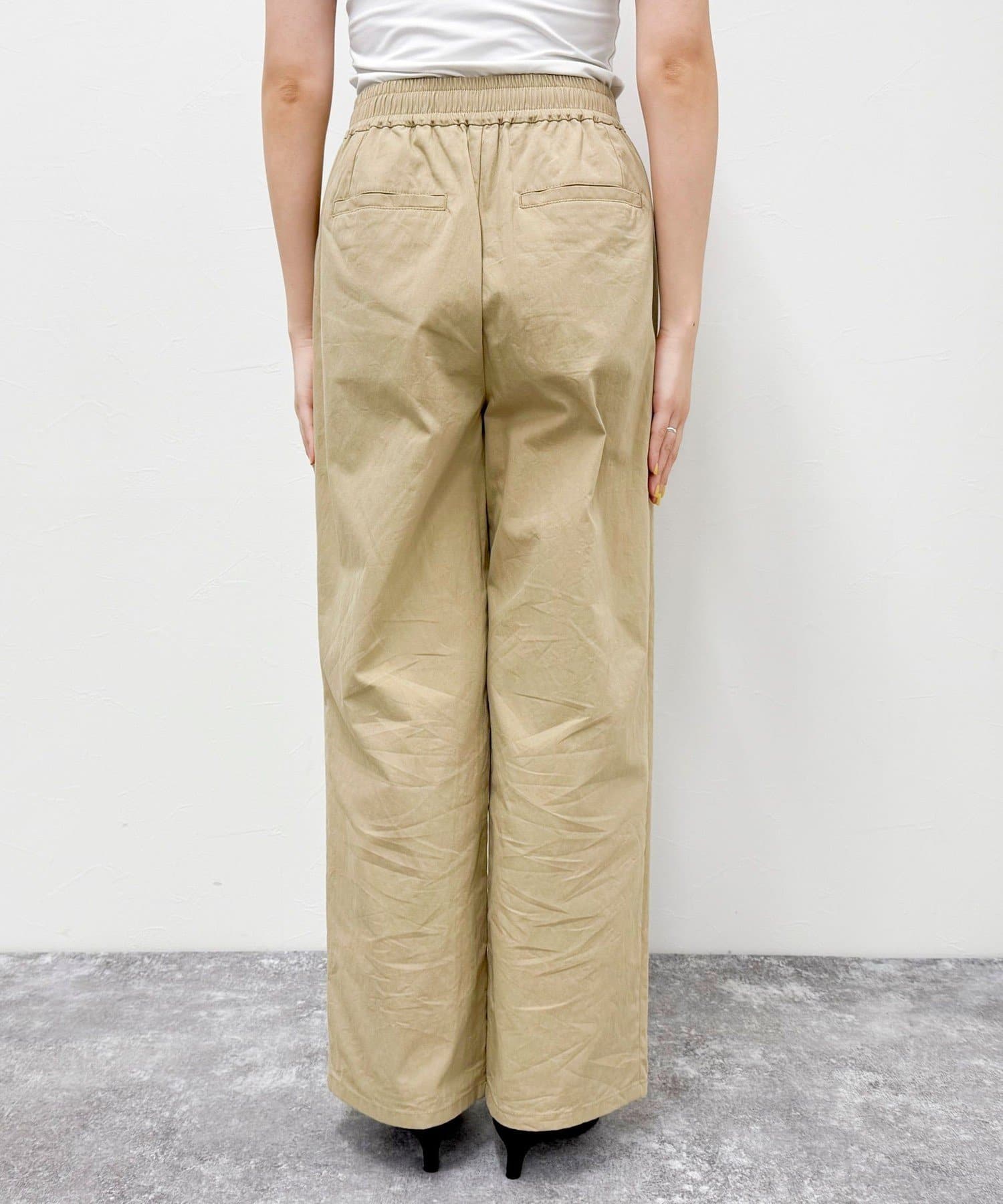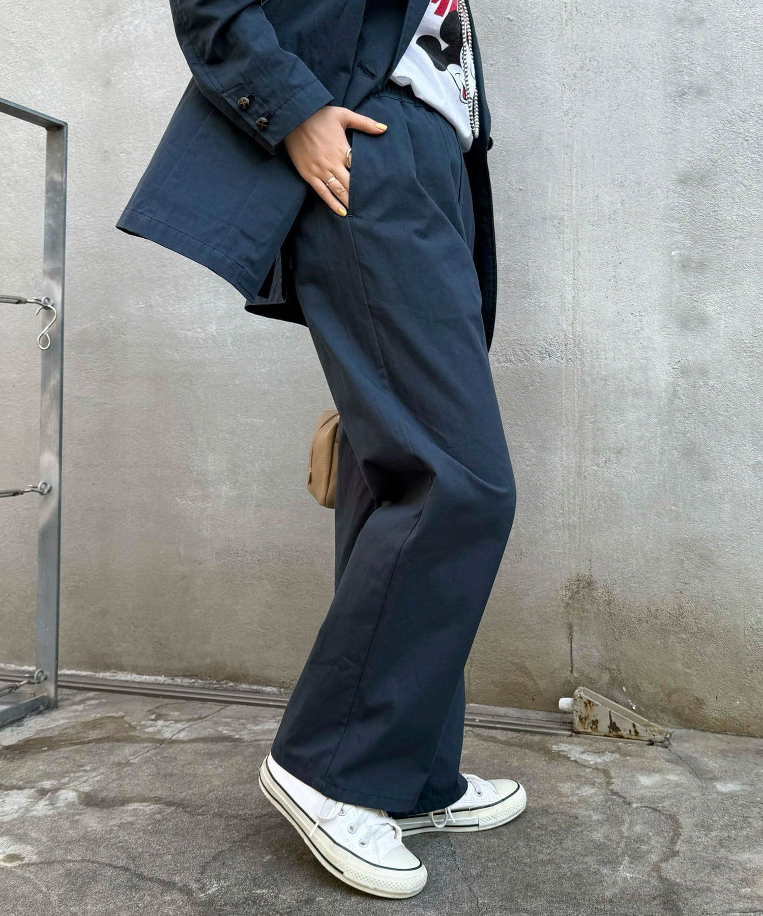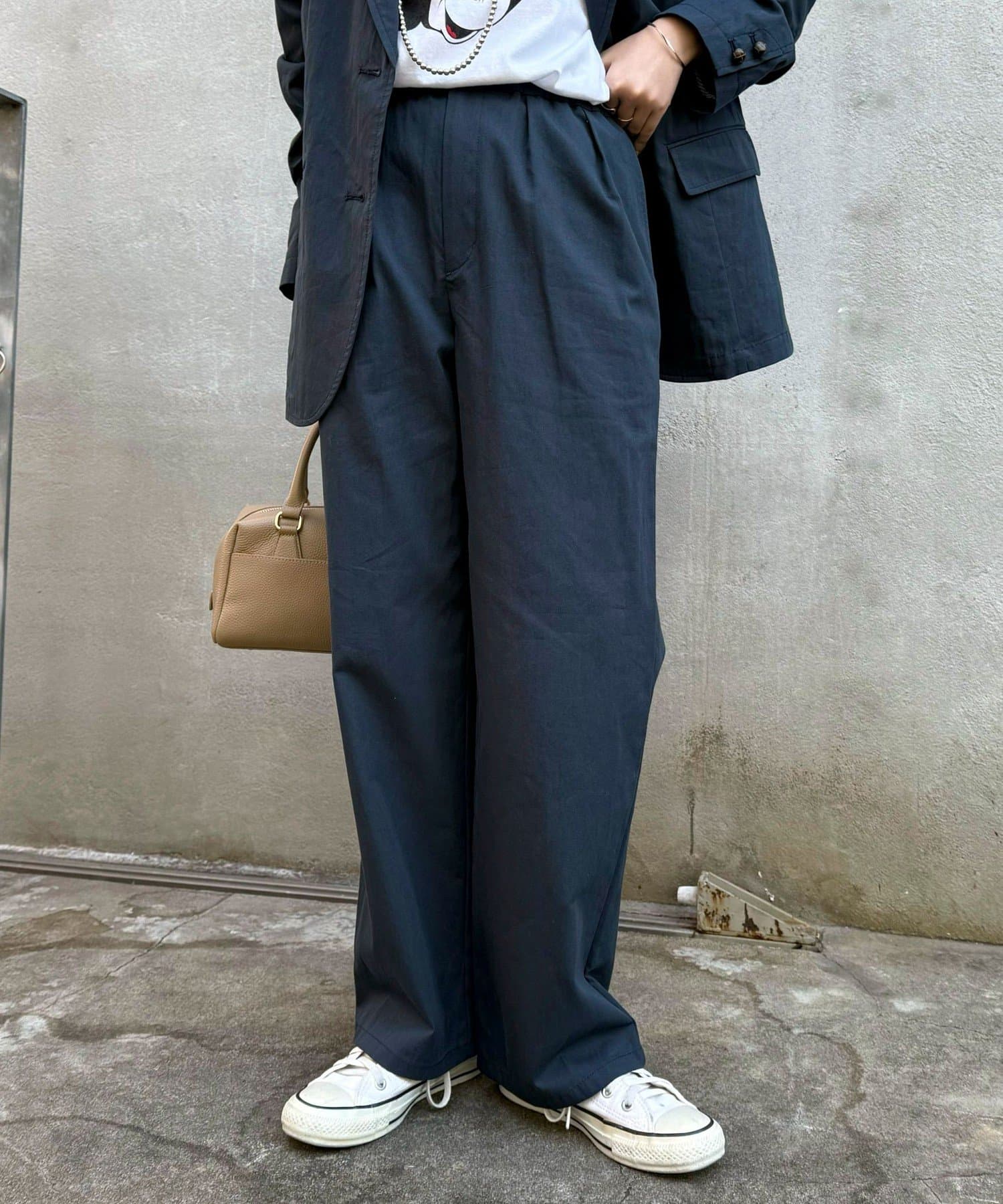 ・綿ナイロンのサラッとした生地感のイージーストレートパンツ