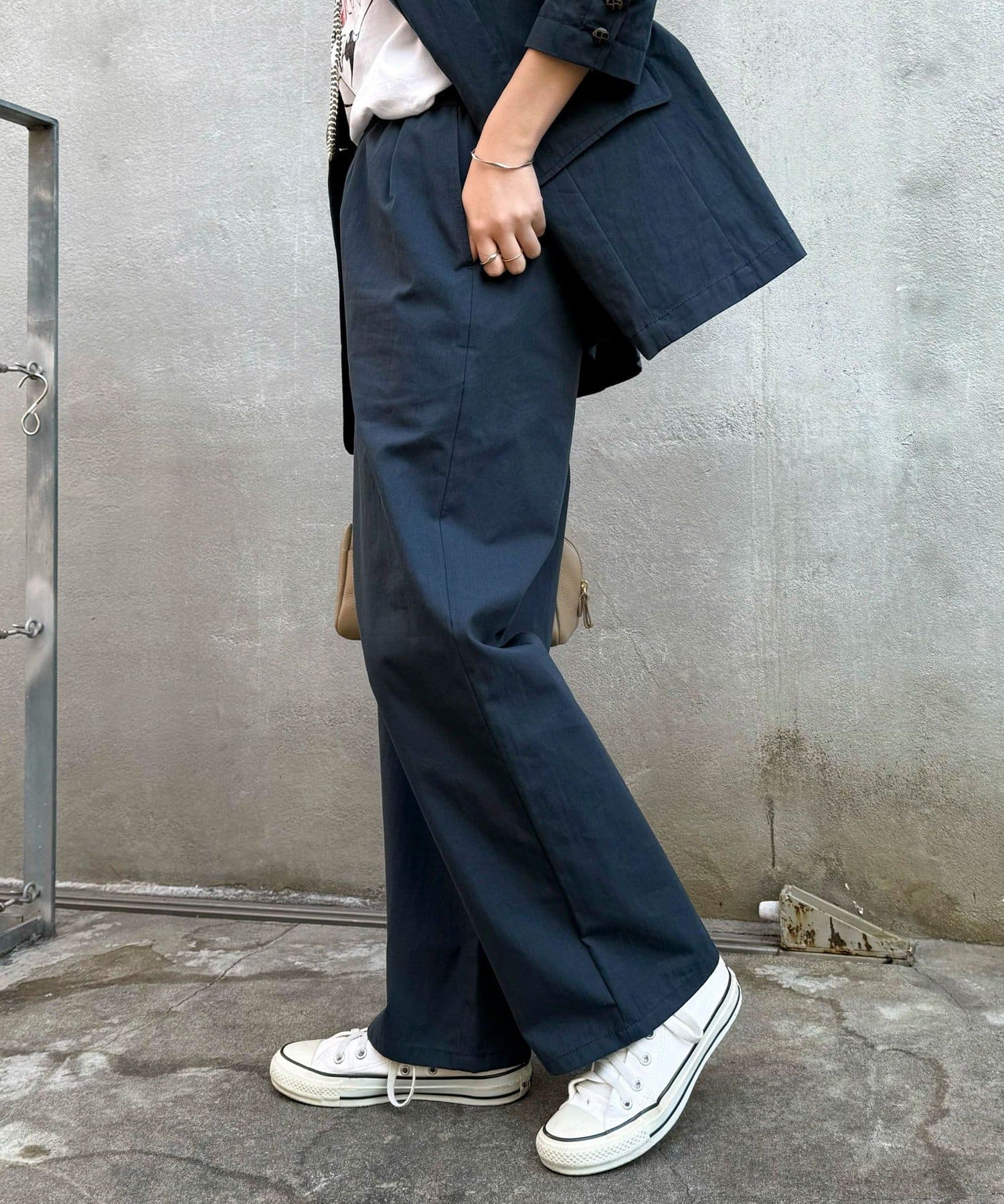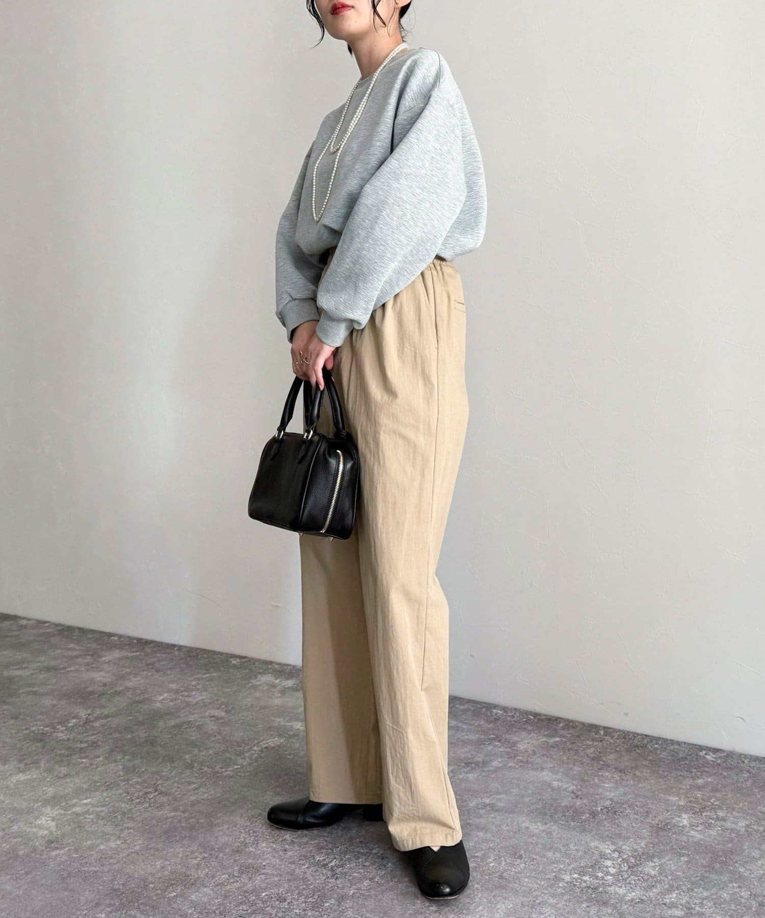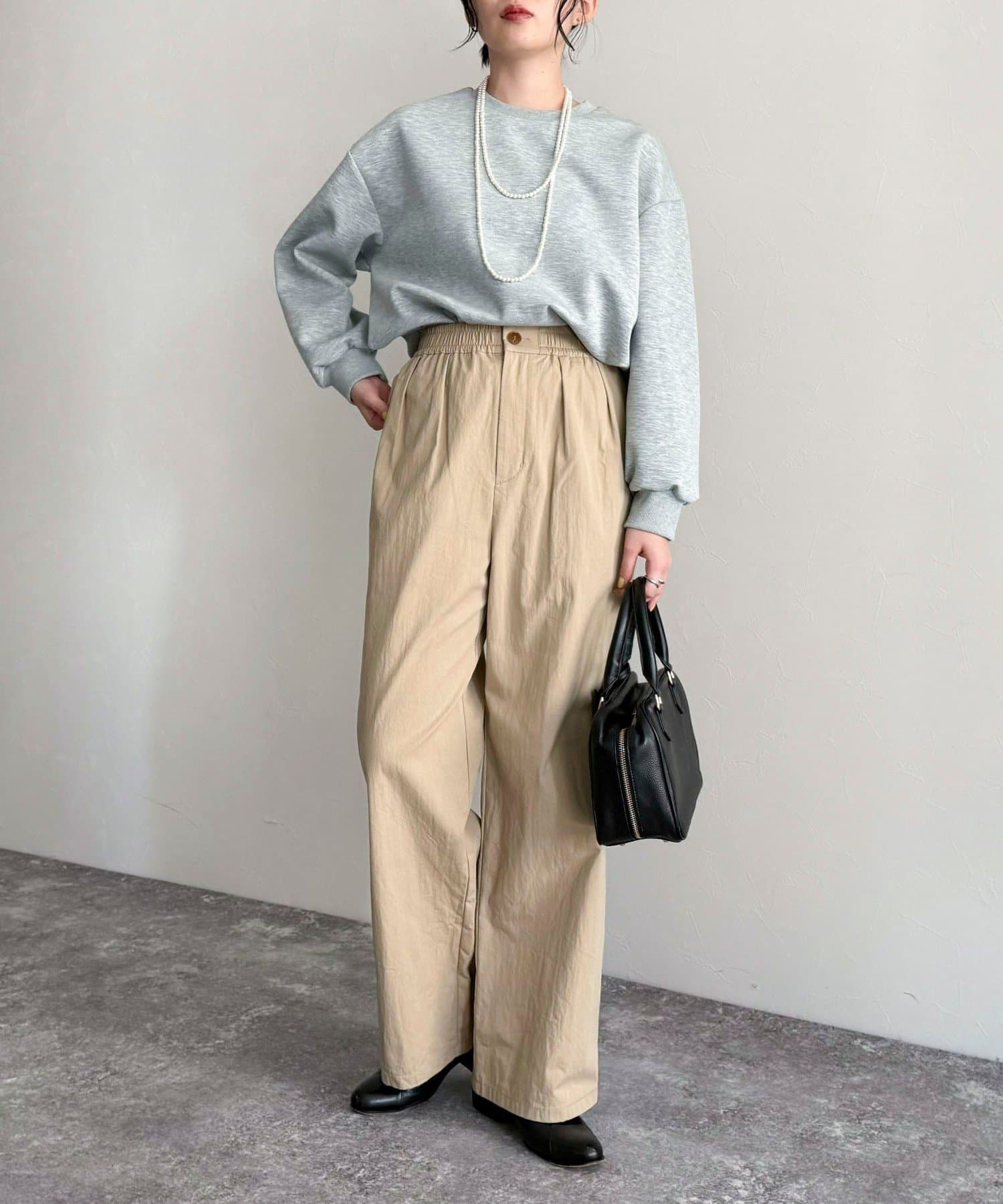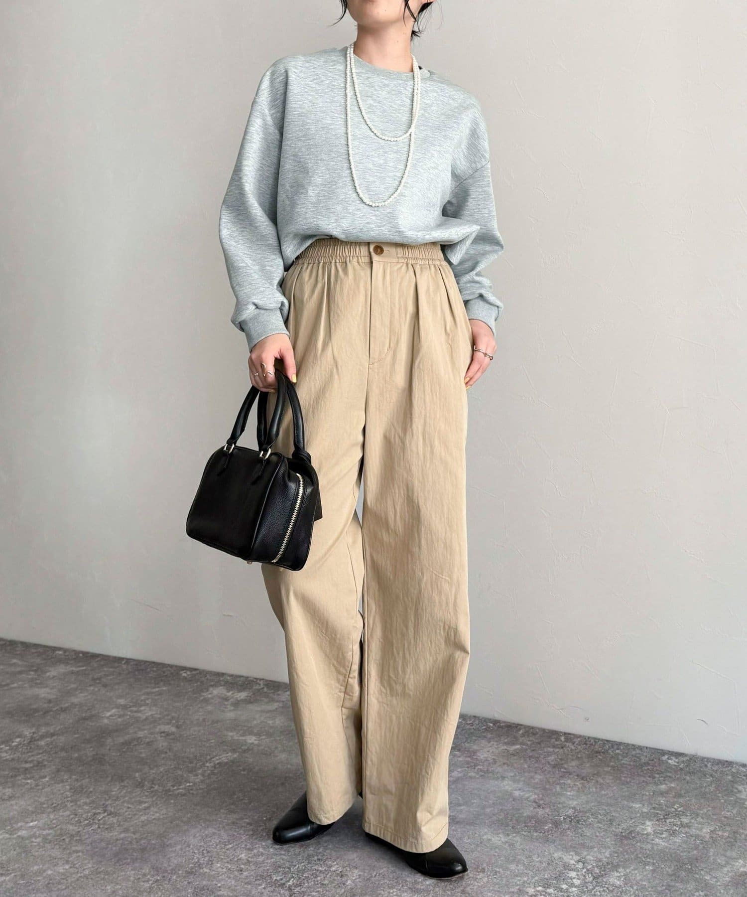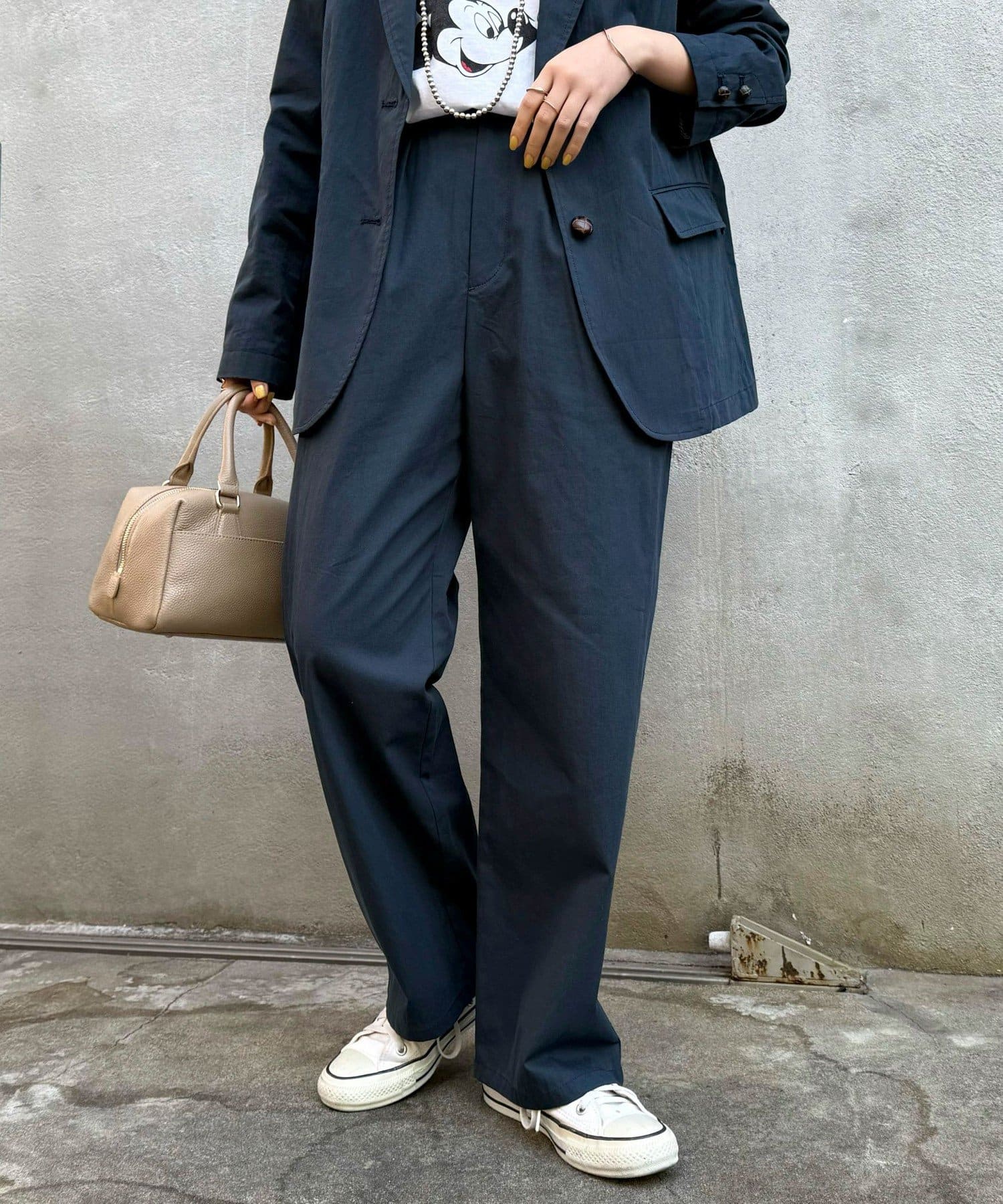 ・綿ナイロンのサラッとした生地感のイージーストレートパンツ