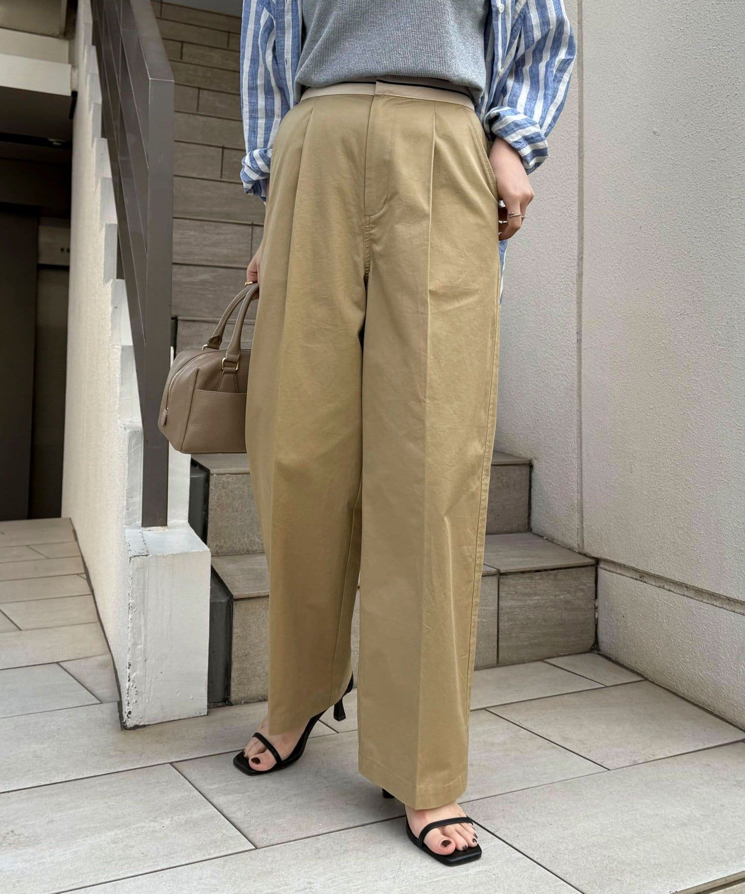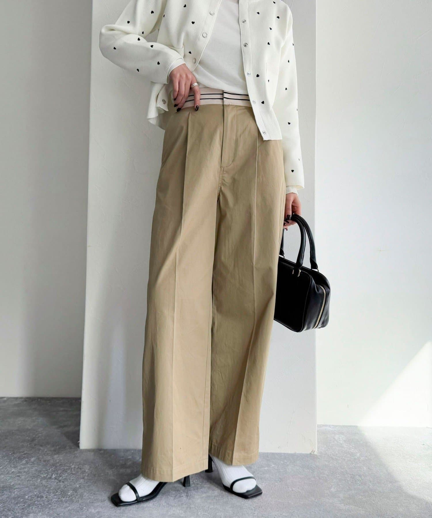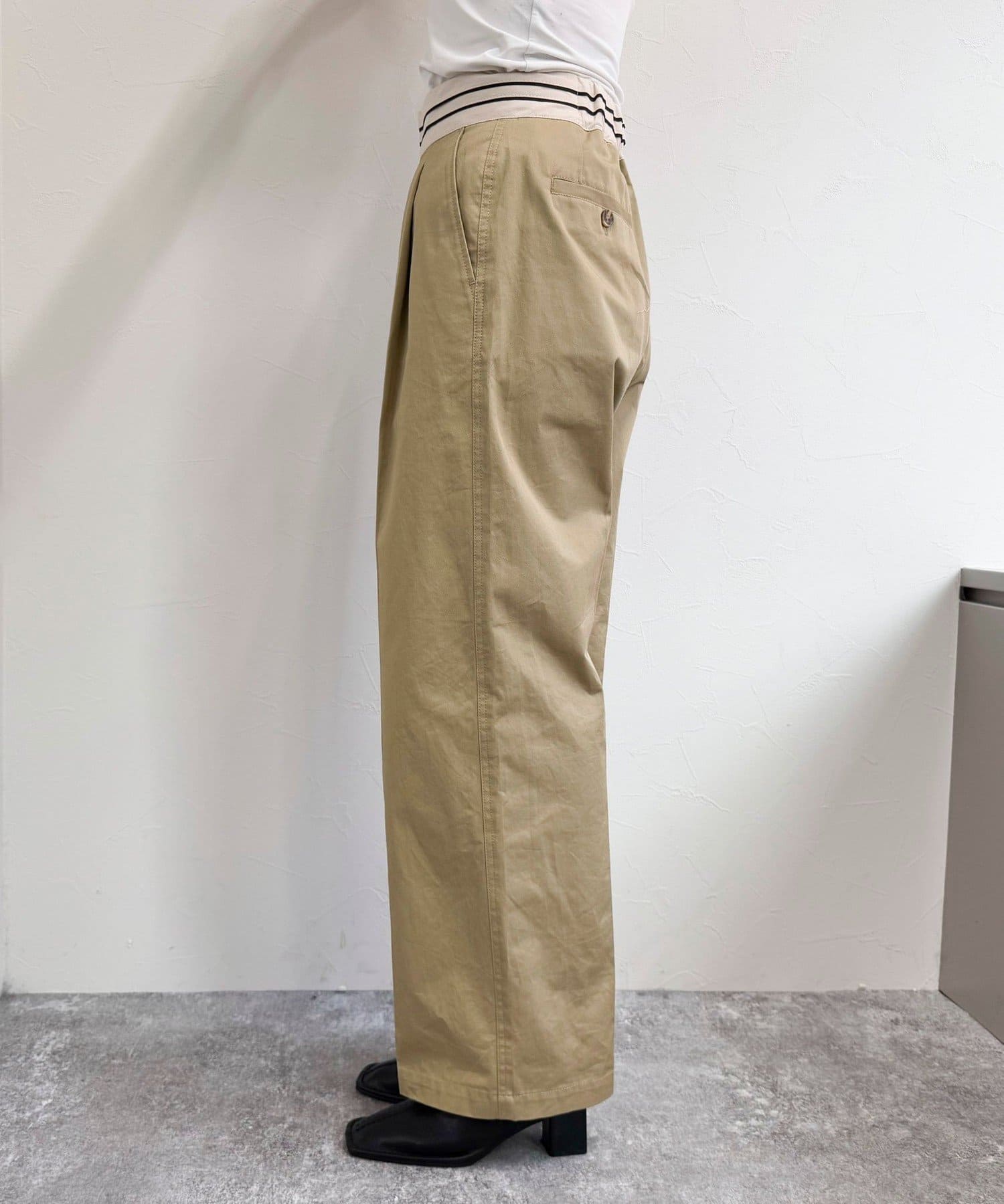・ウエストのマーベルトデザインが目を惹くスタイリングの主役になるチノパンです