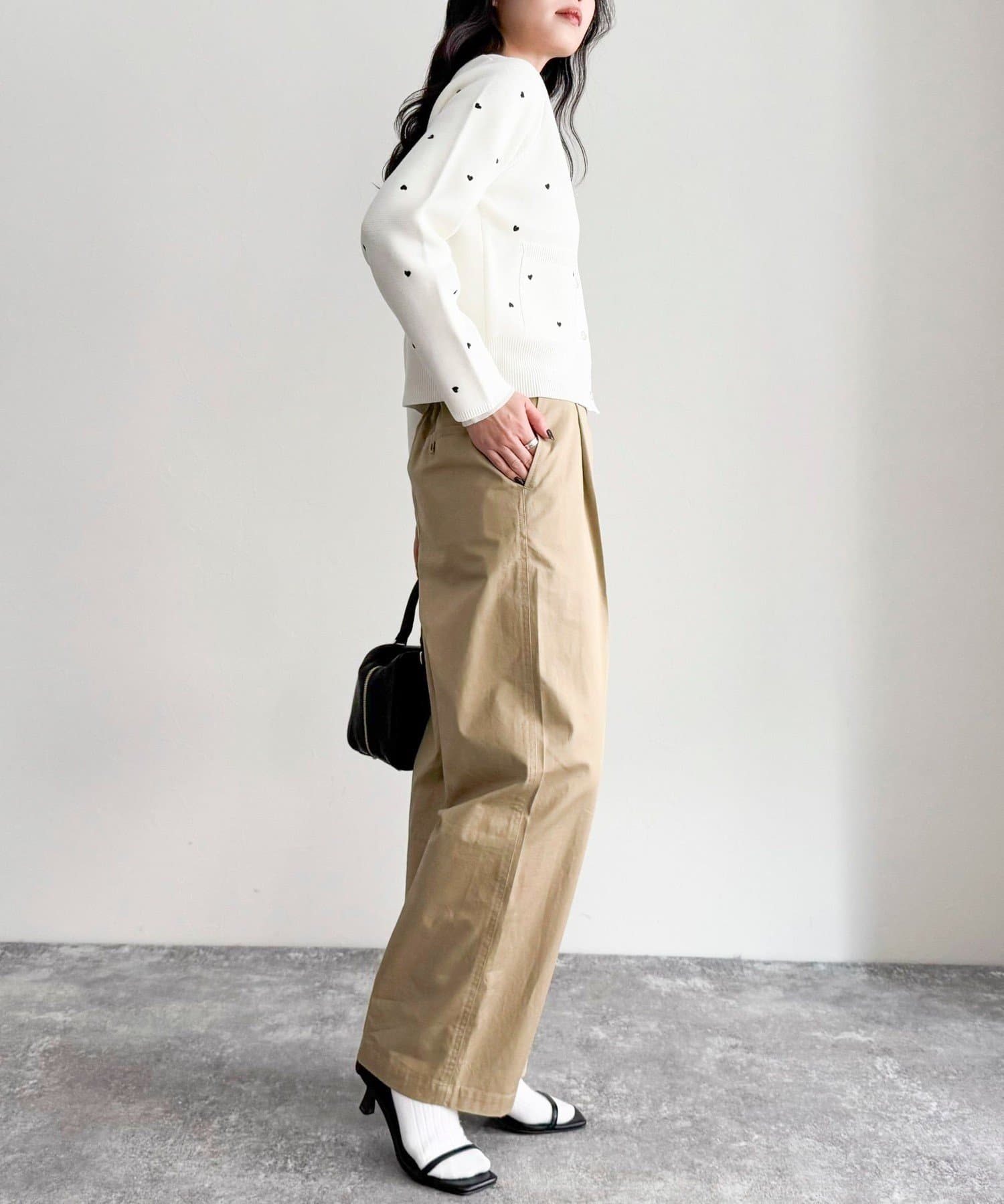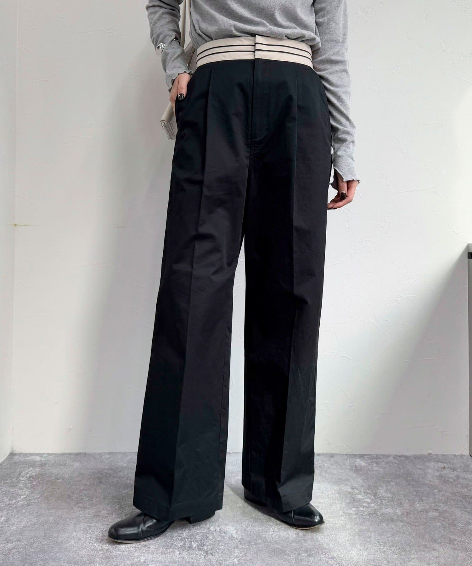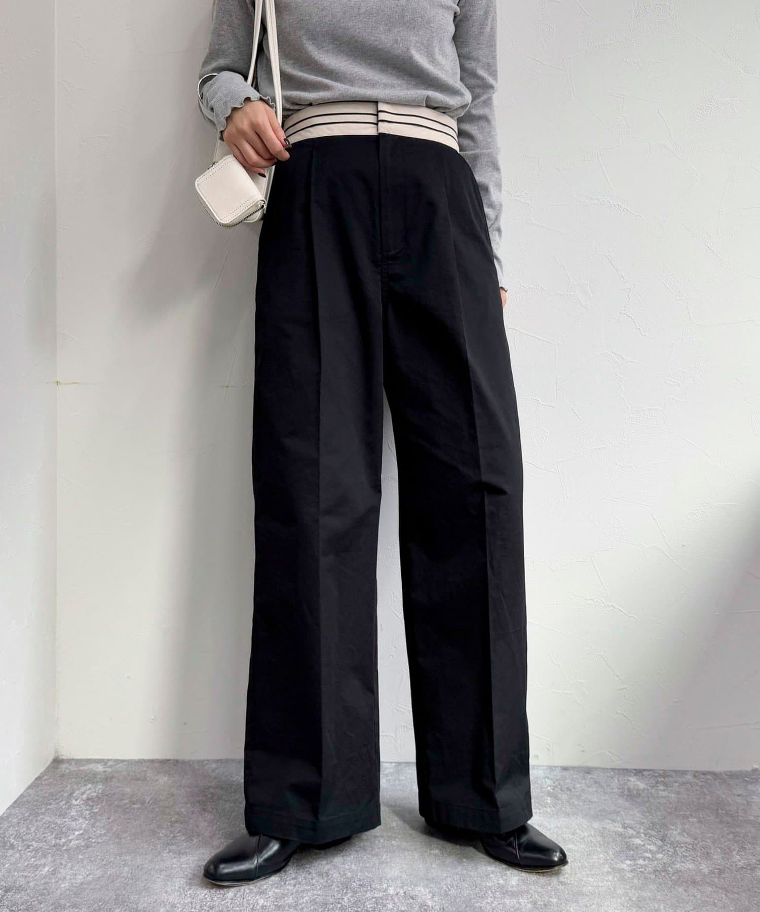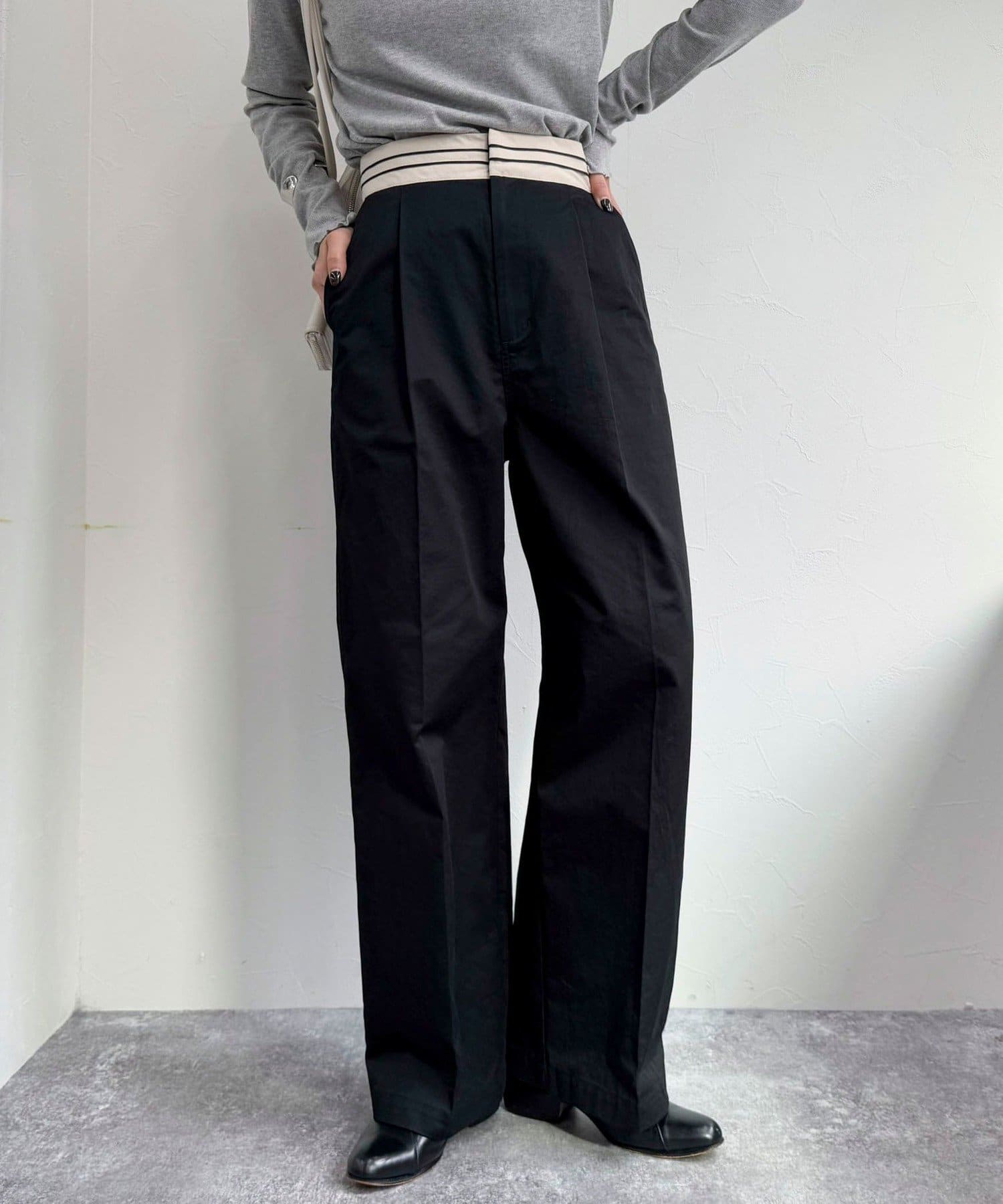 ・ウエストのマーベルトデザインが目を惹くスタイリングの主役になるチノパンです