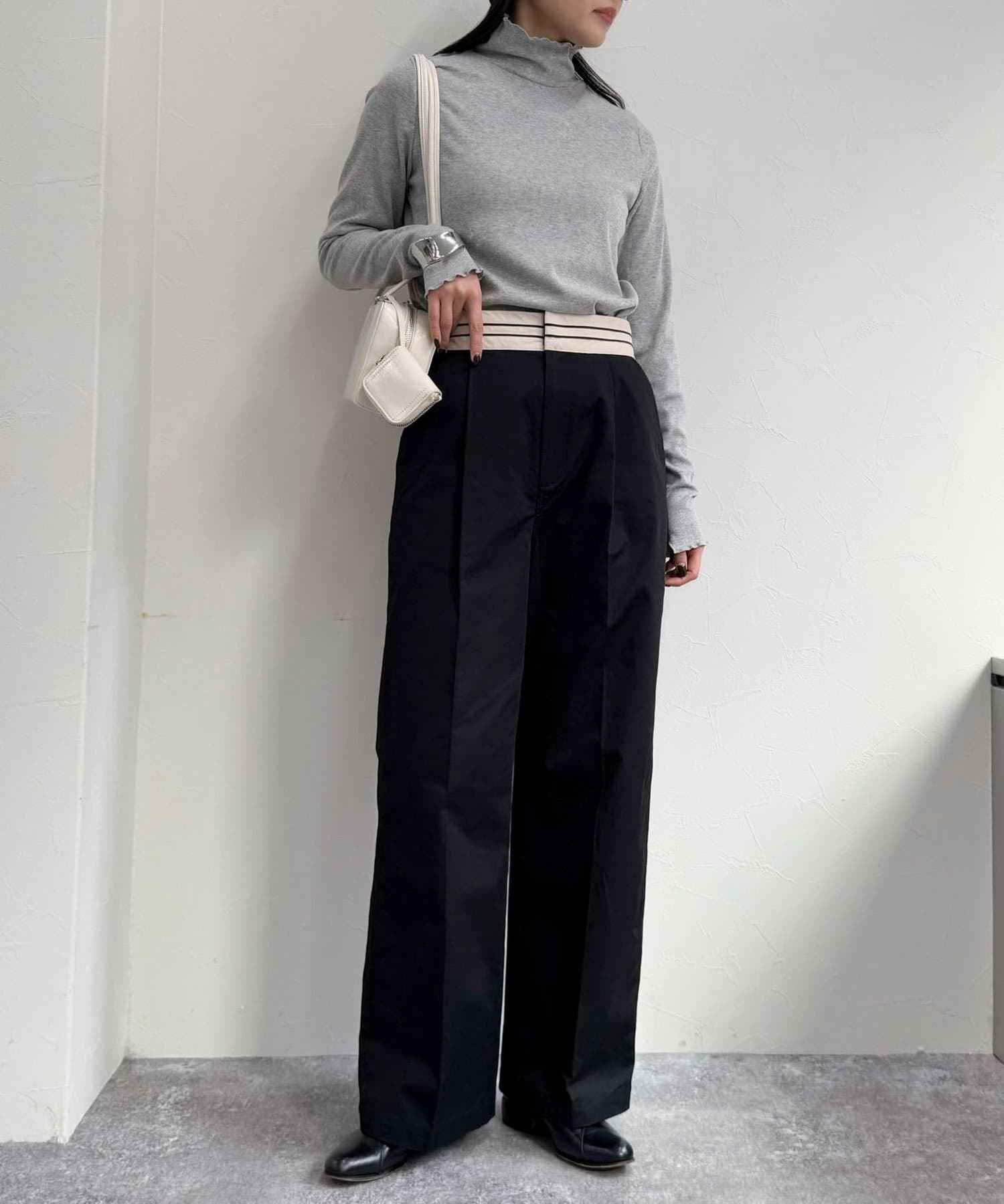 ・ウエストのデザインがポイントなのでシンプルなトップスをインしたコーデがオススメです