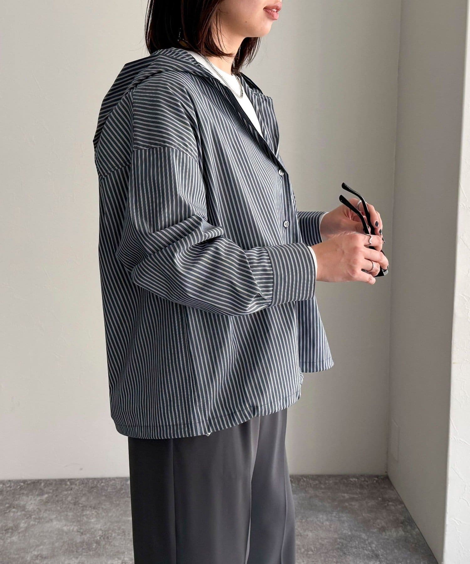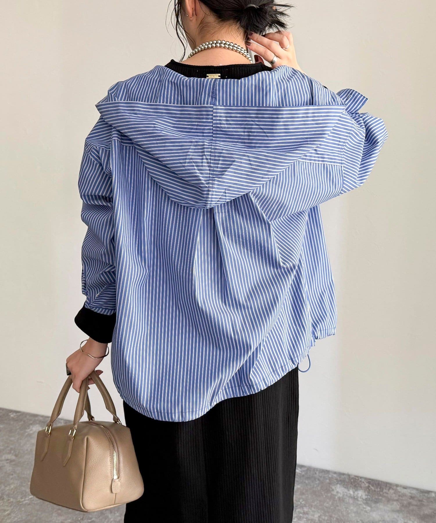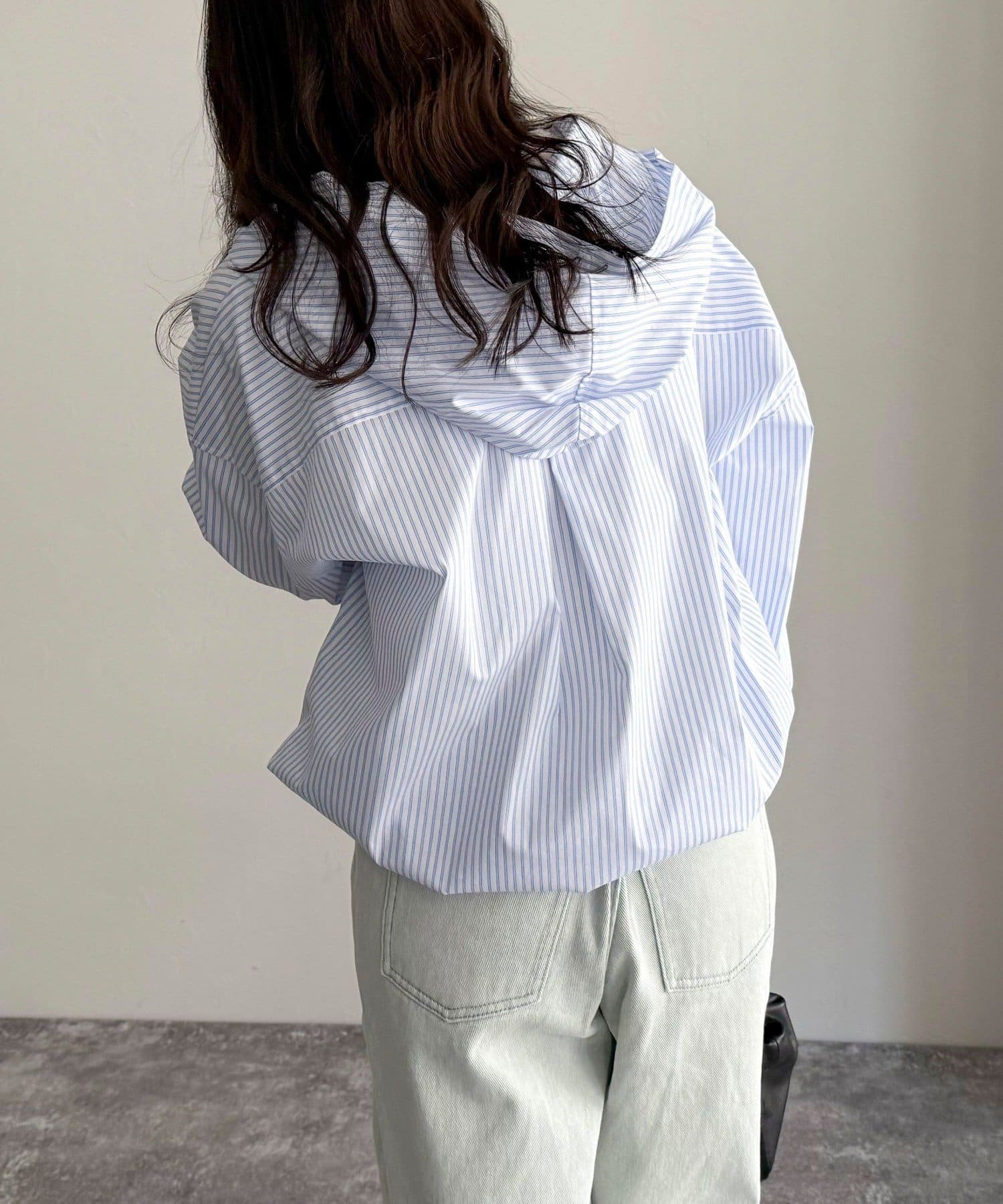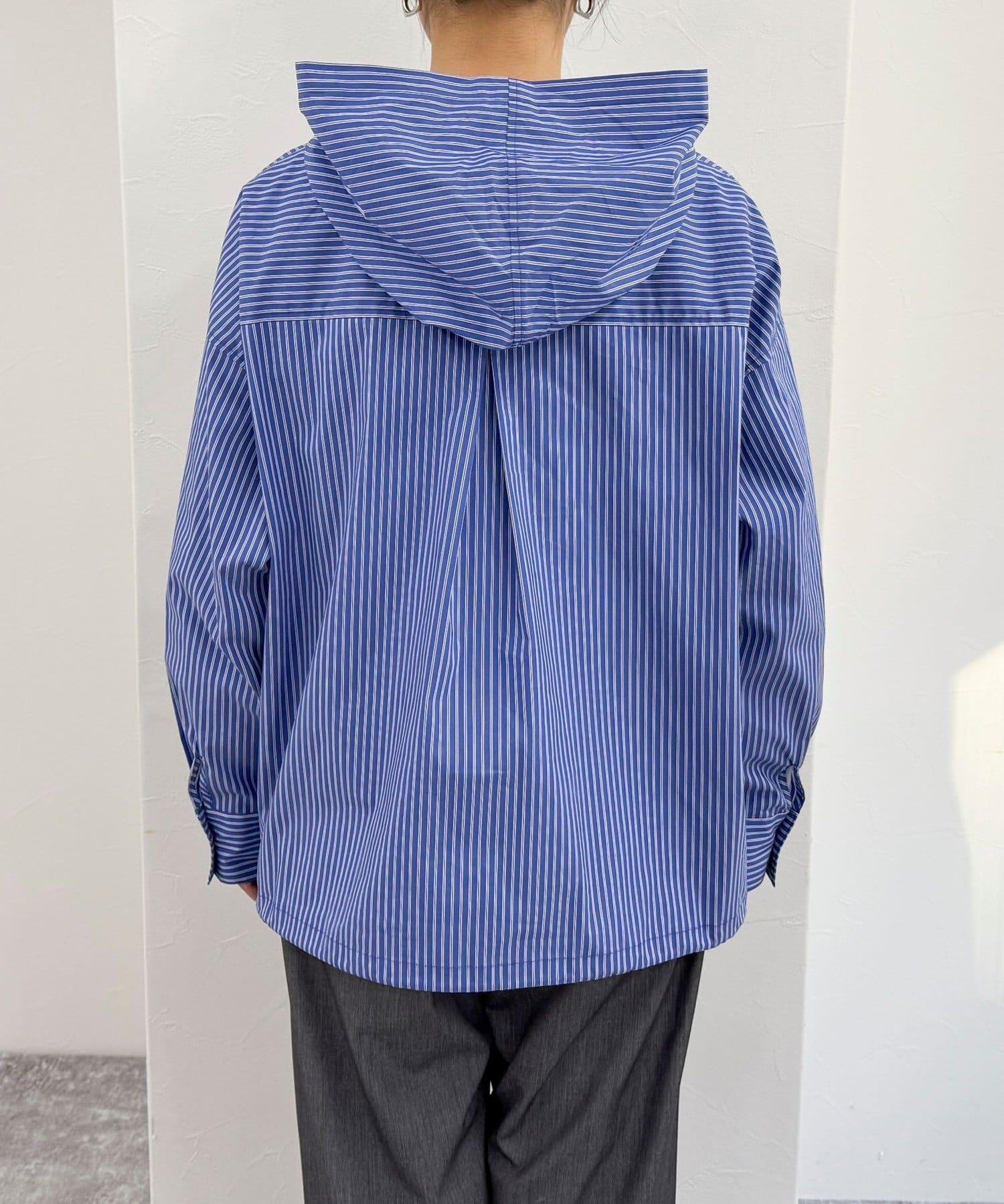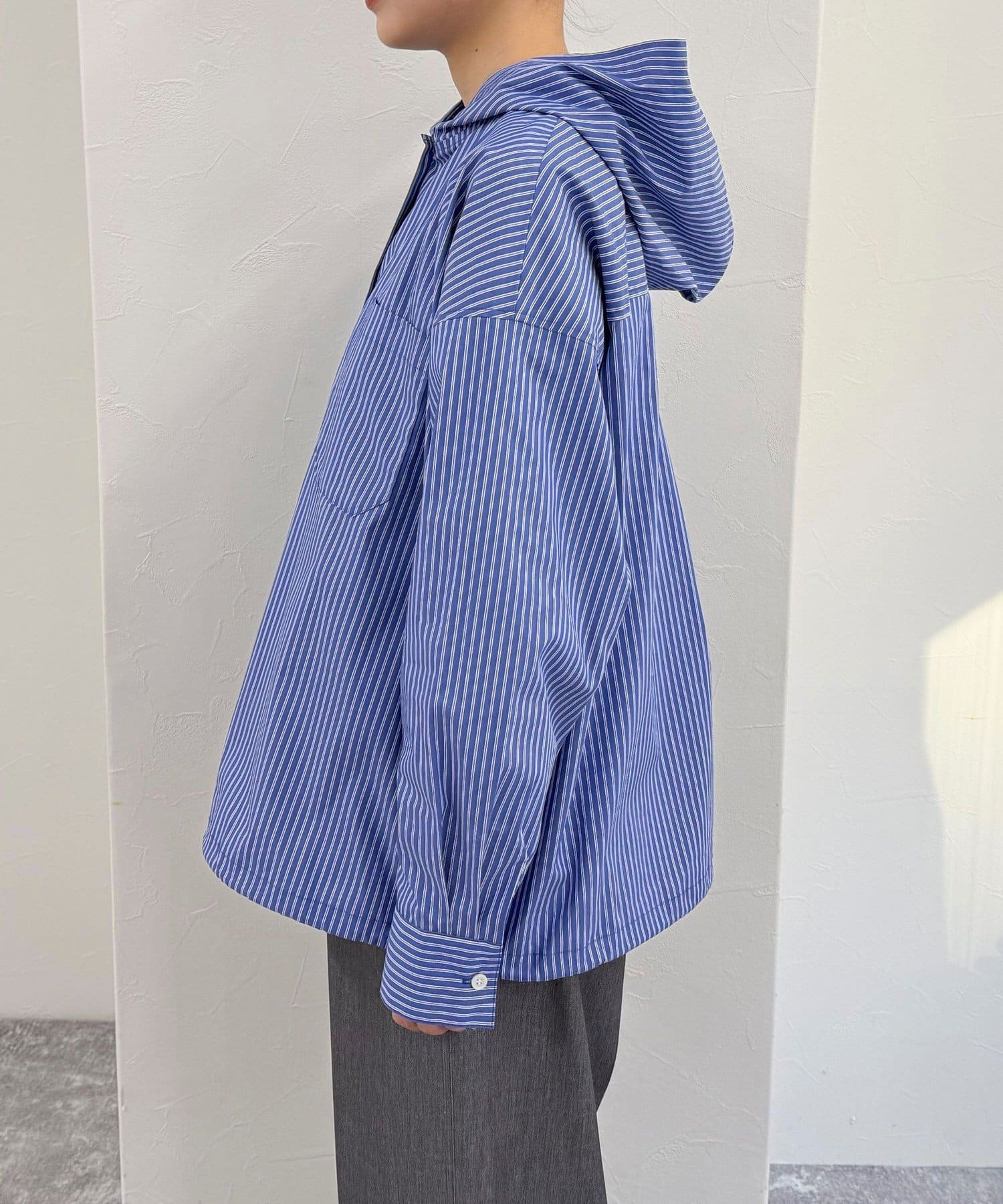 ・爽やかなストライプ地のフーディーシャツです