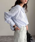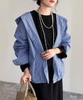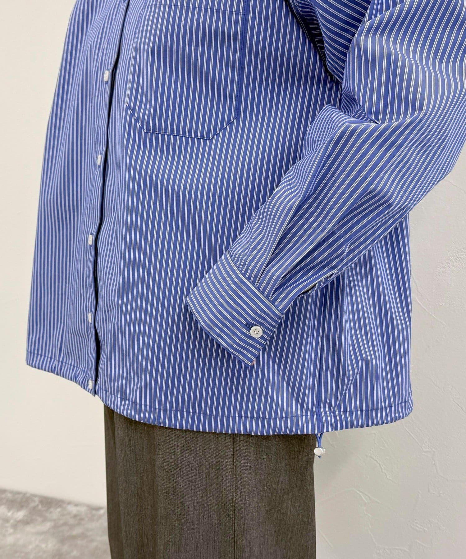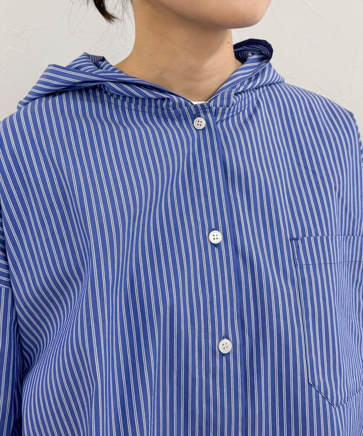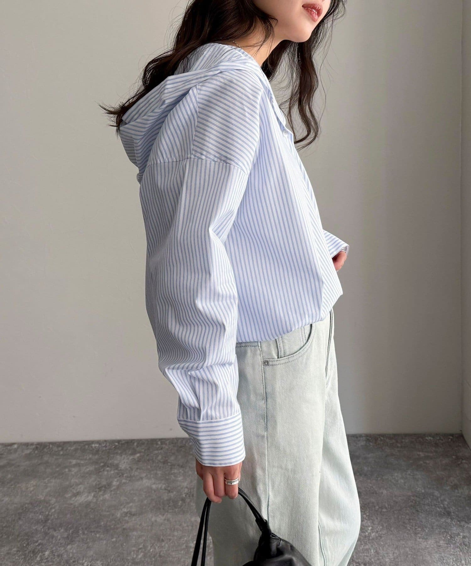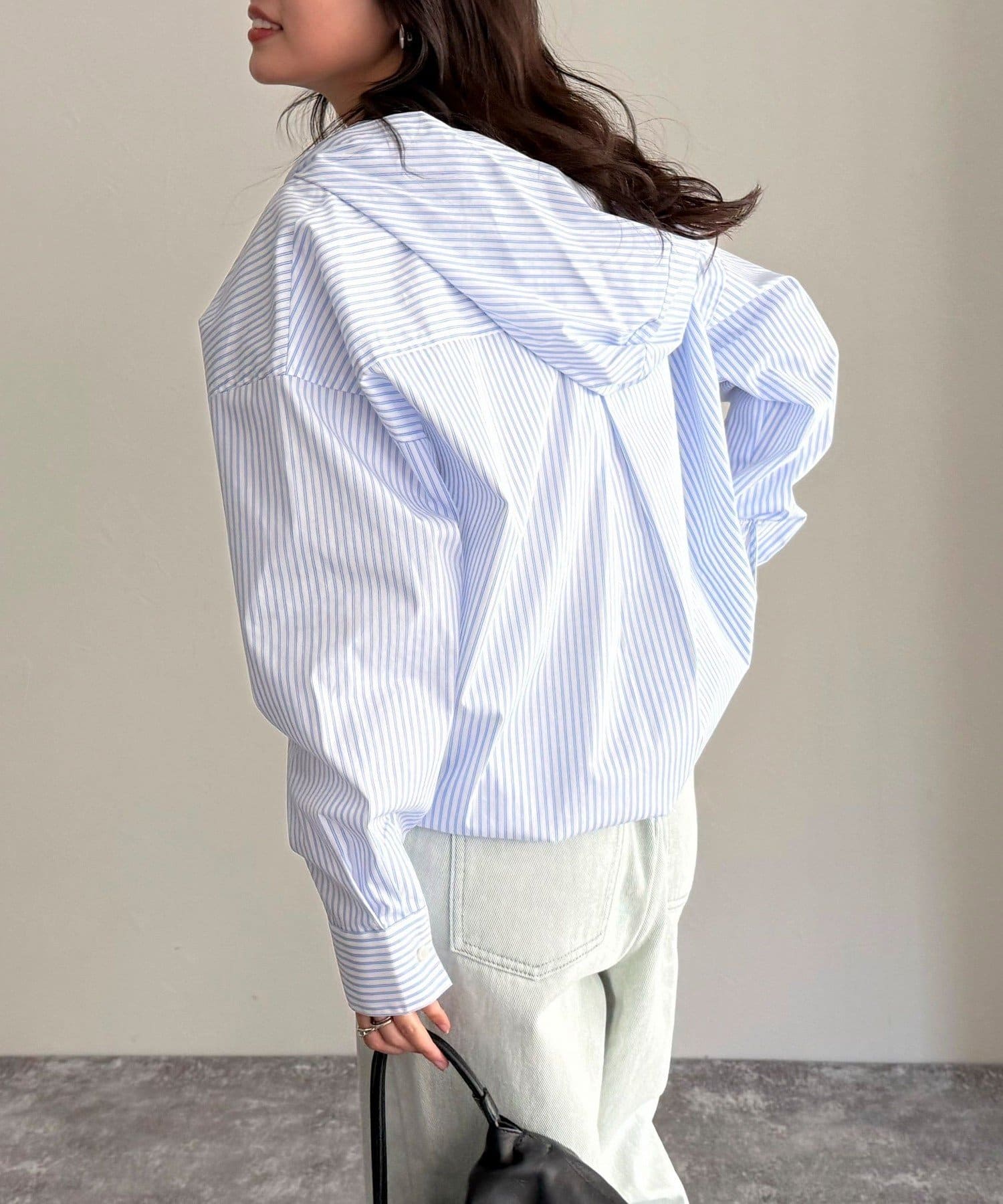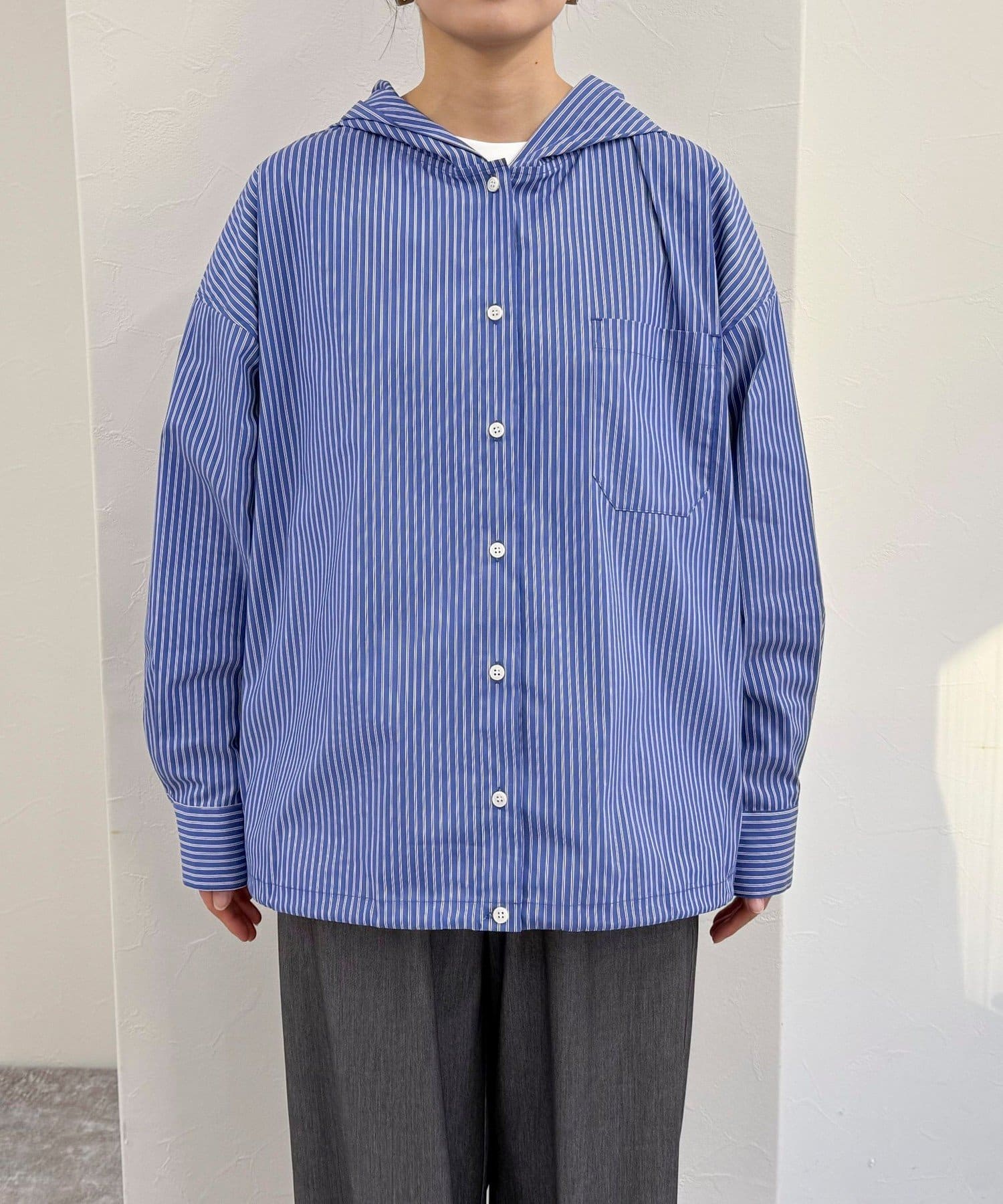 ・爽やかなストライプ地のフーディーシャツです