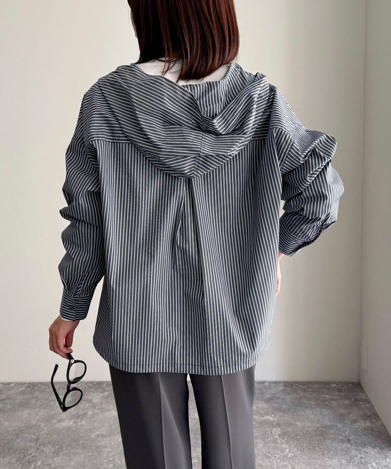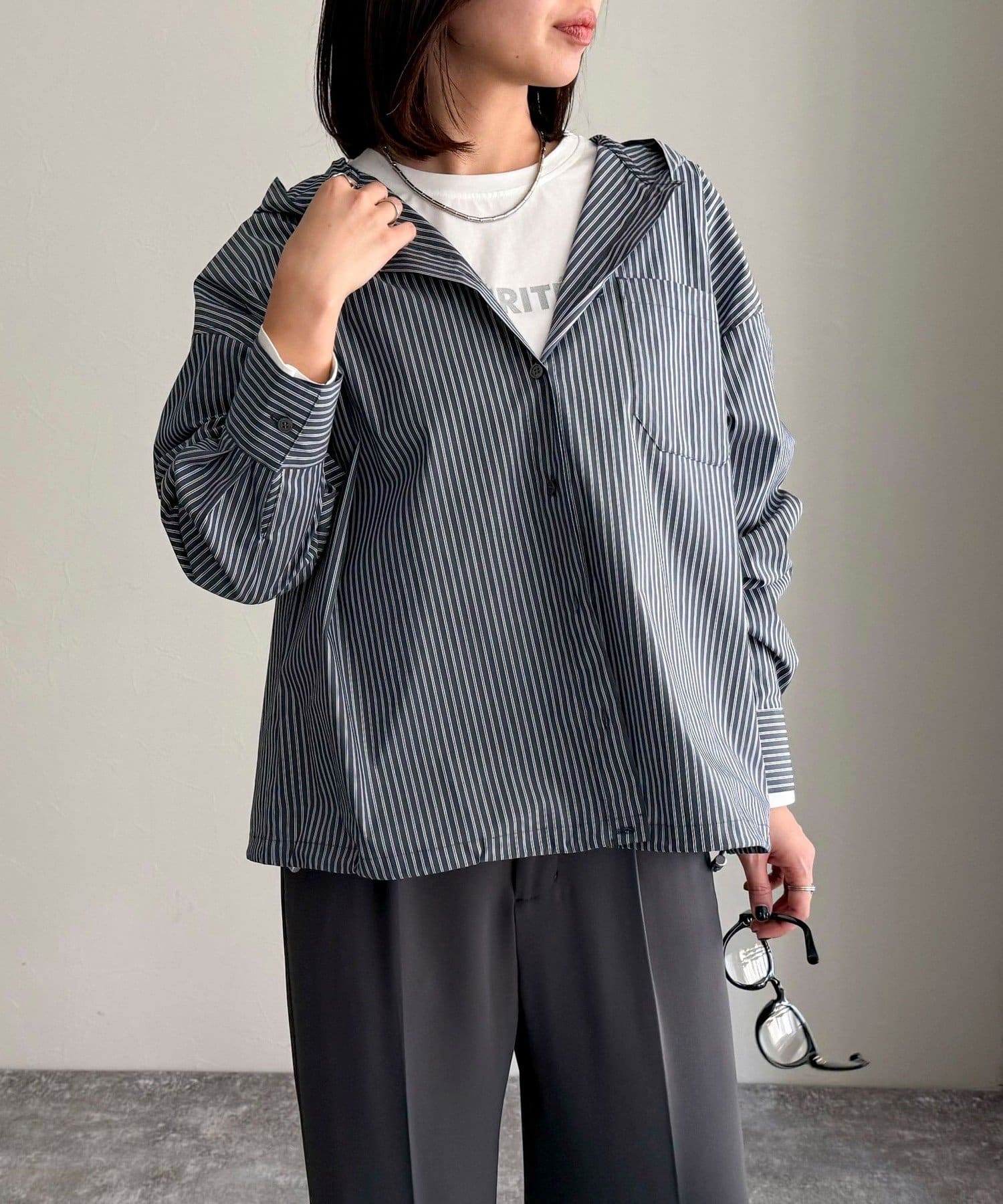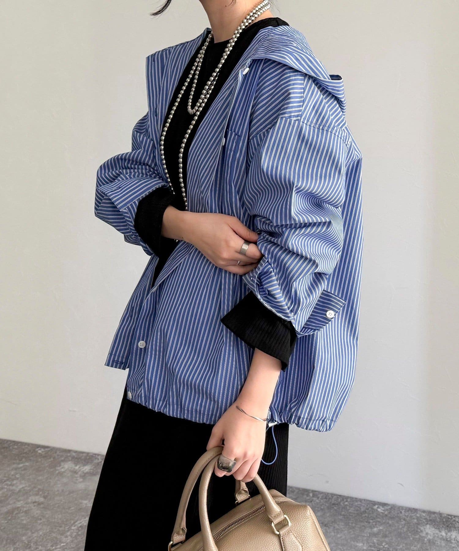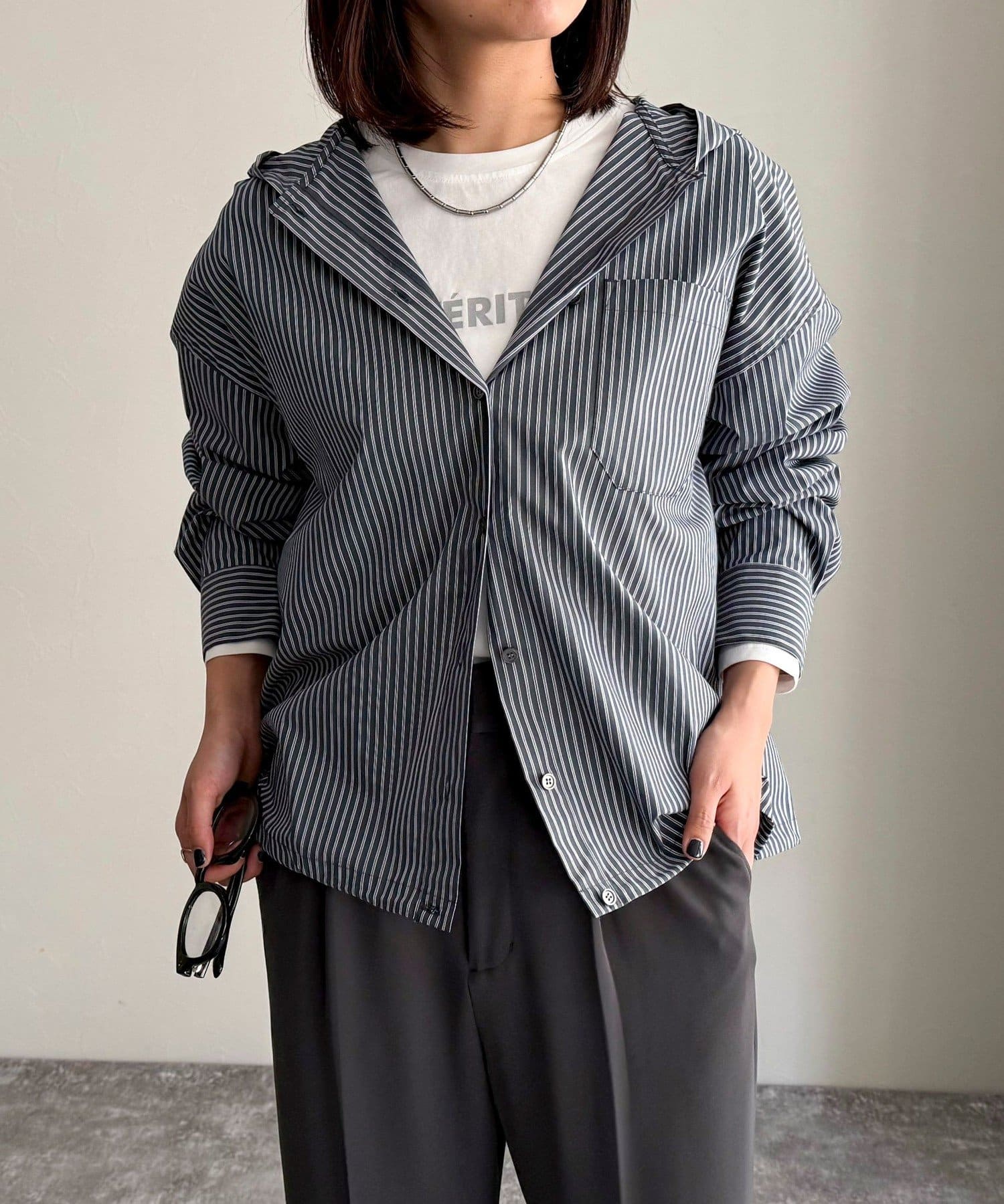 春のワードローブに加えたい大人のストライプフーディーシャツ