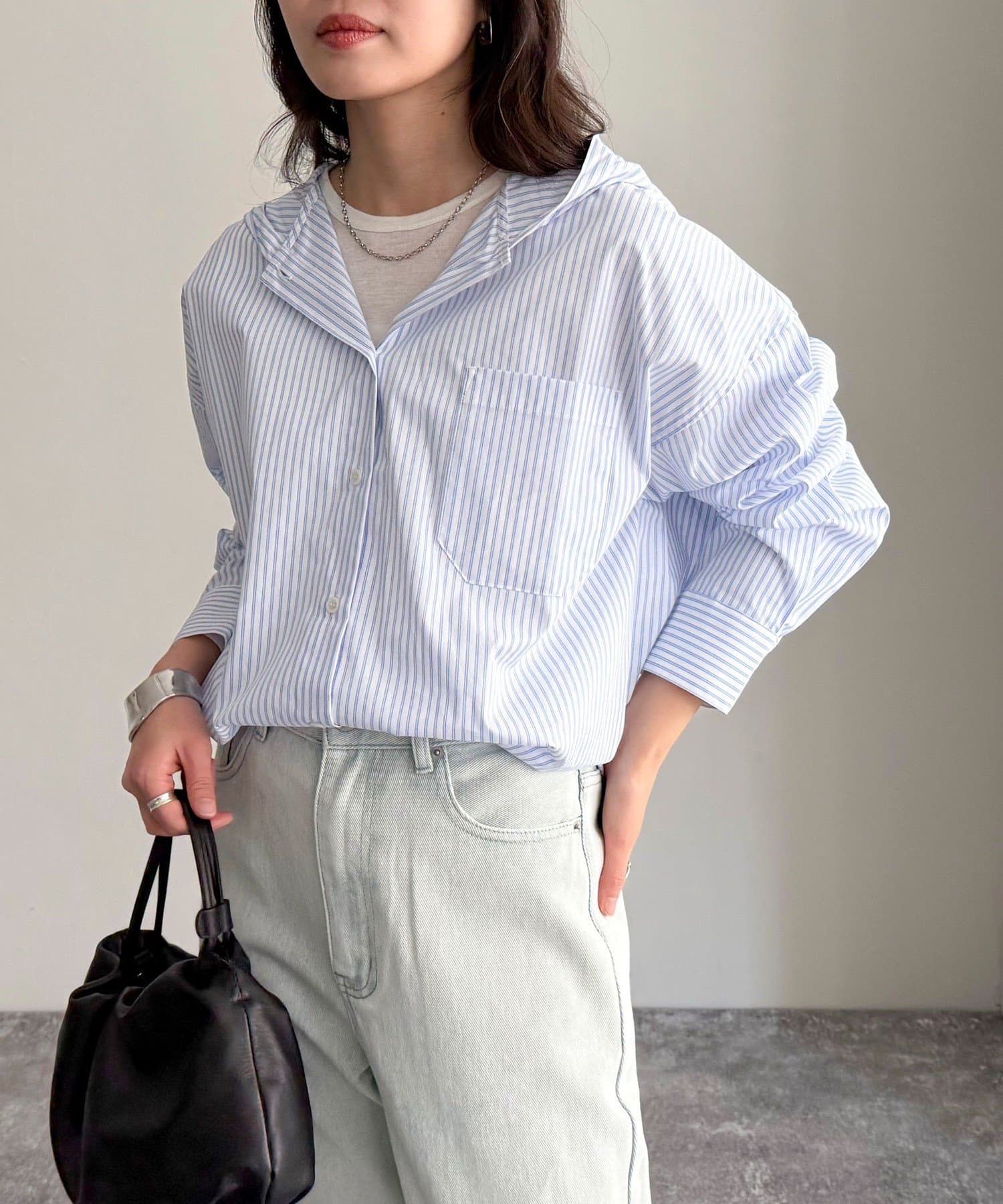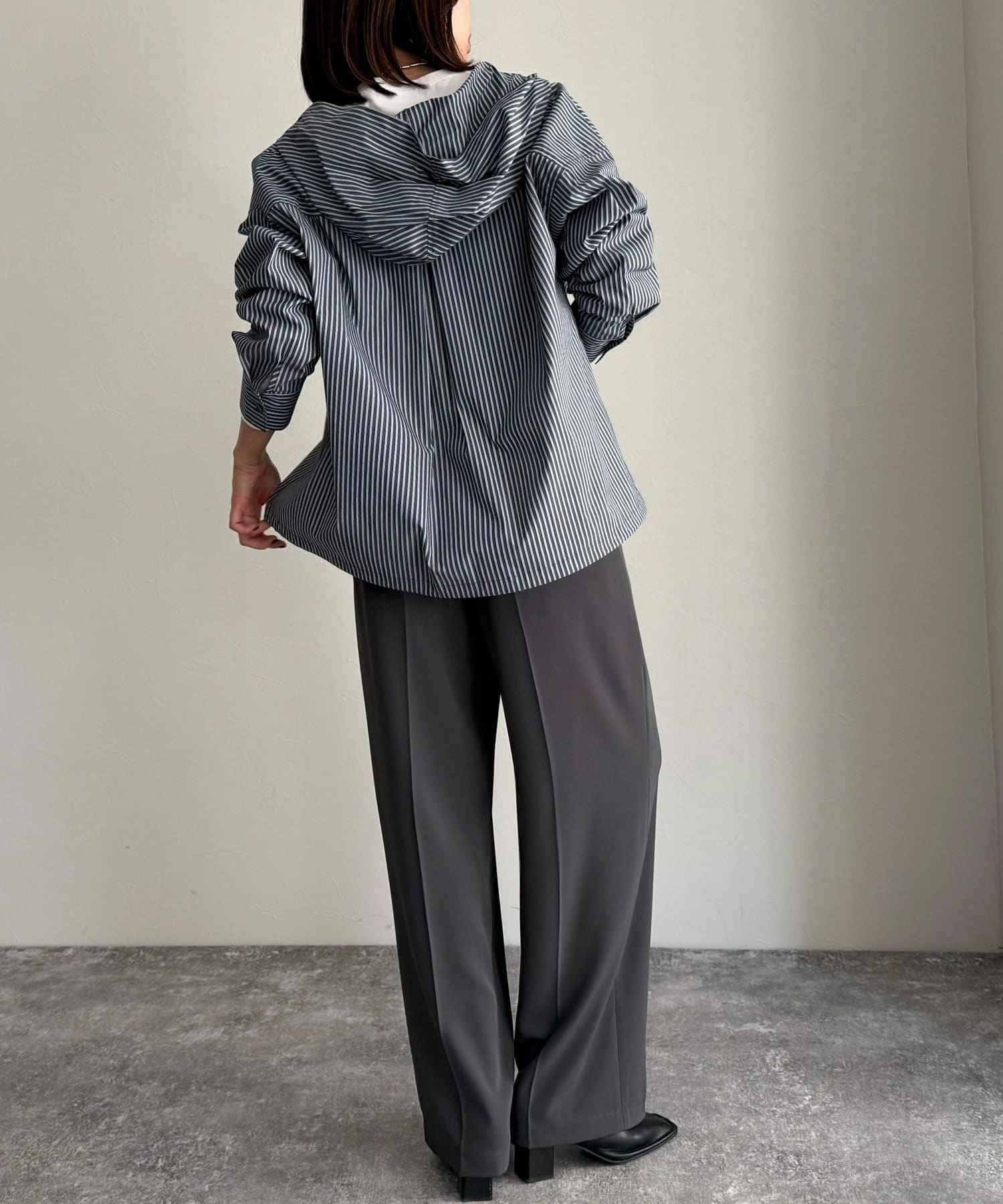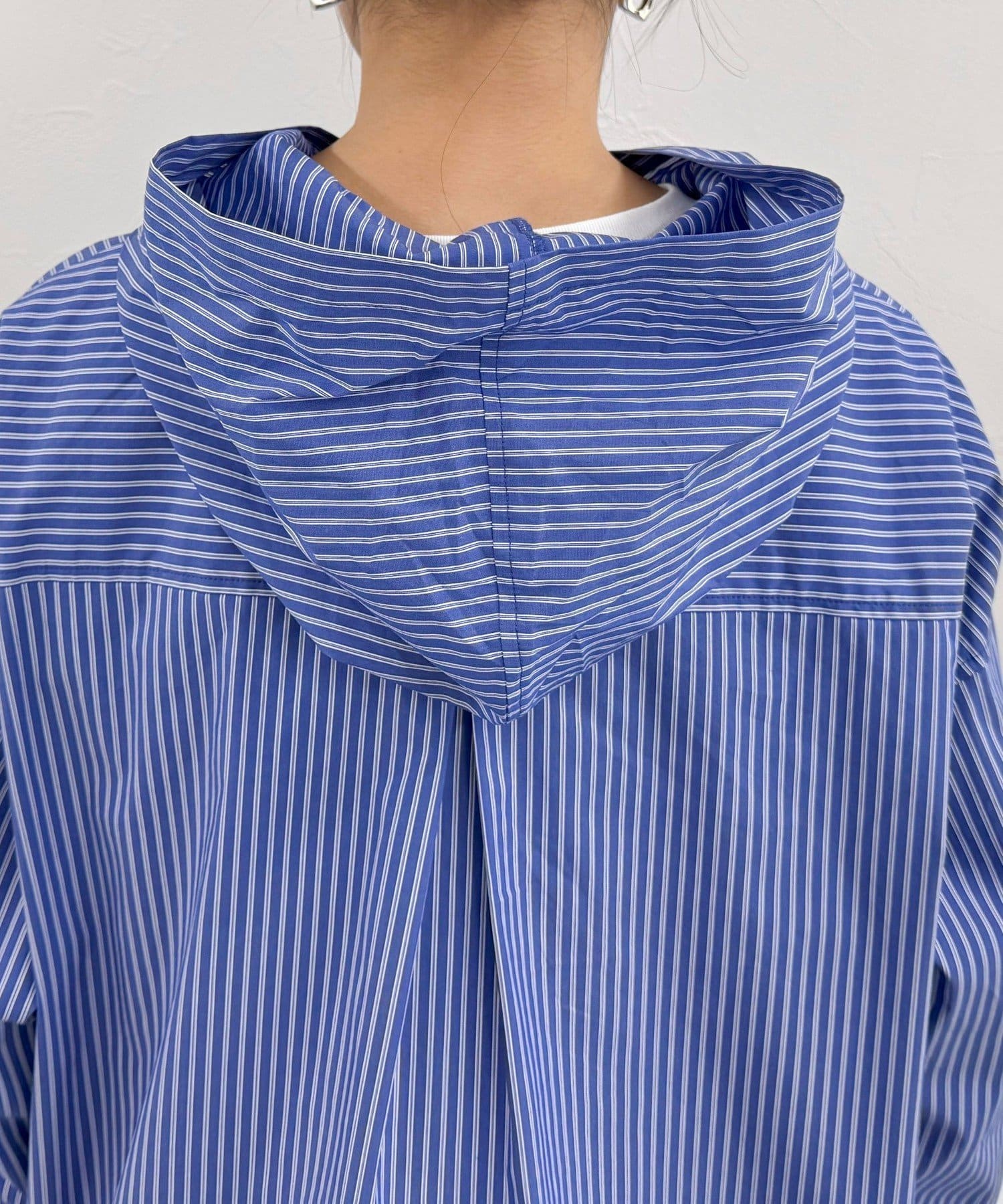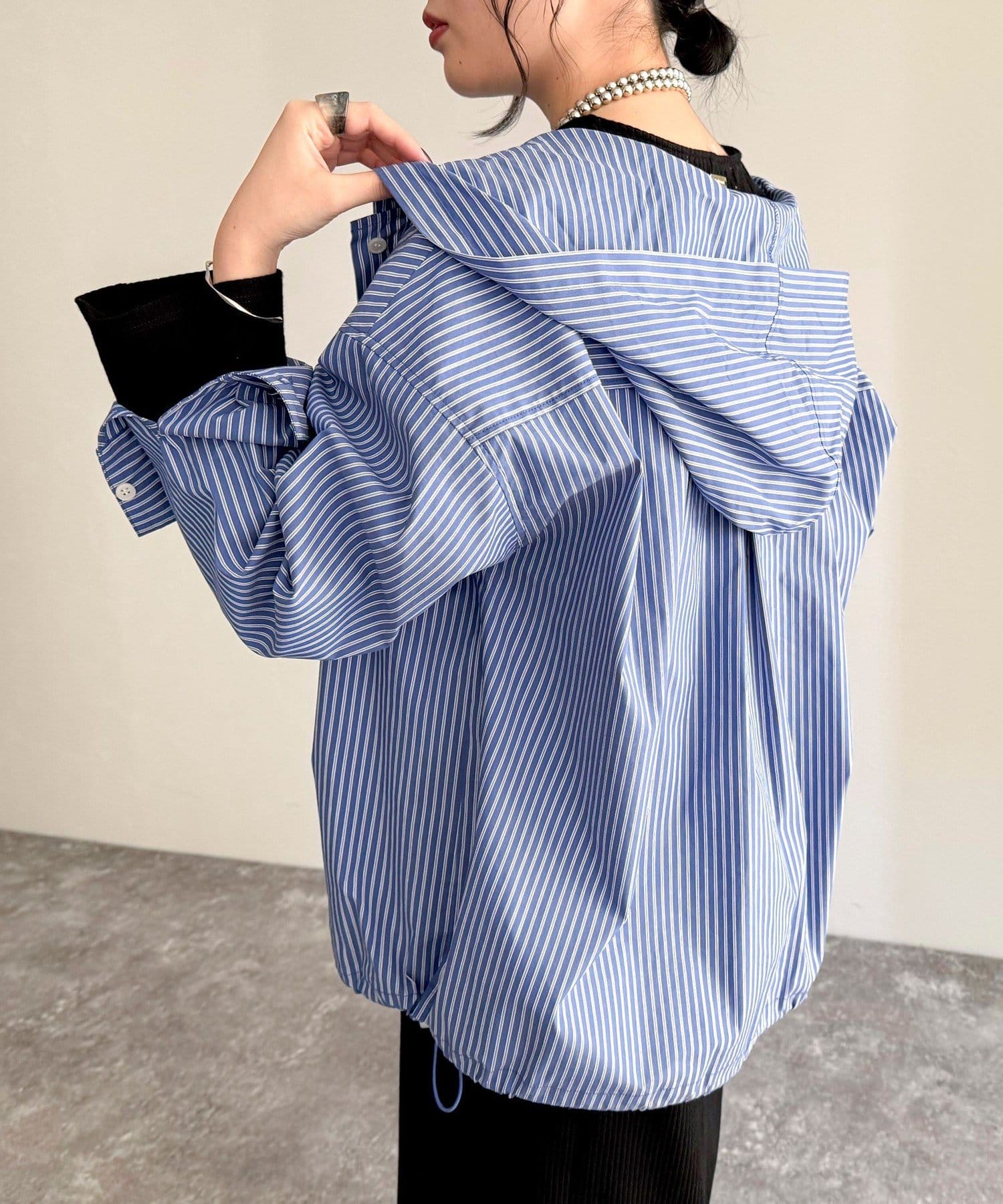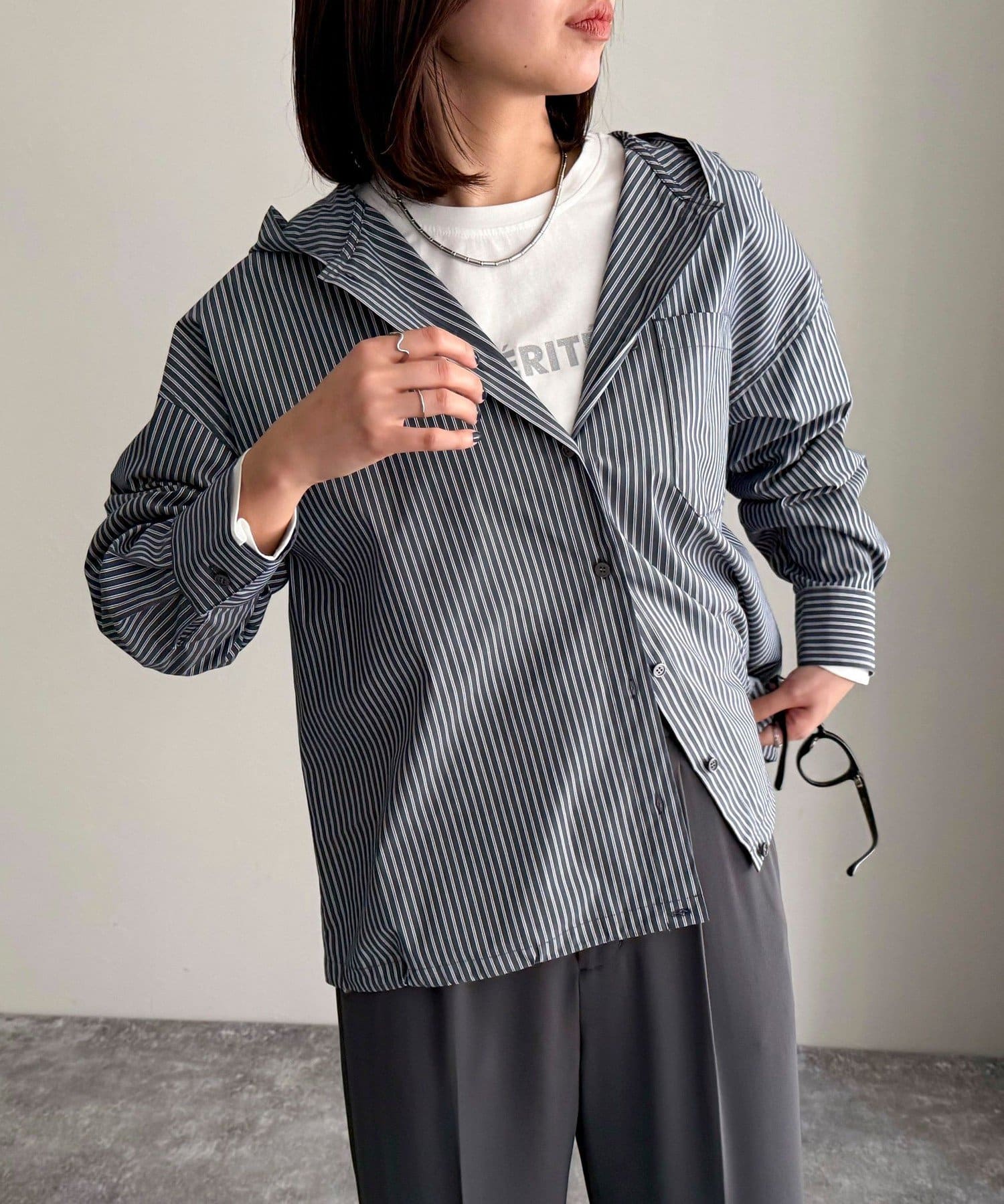 春のワードローブに加えたい大人のストライプフーディーシャツ