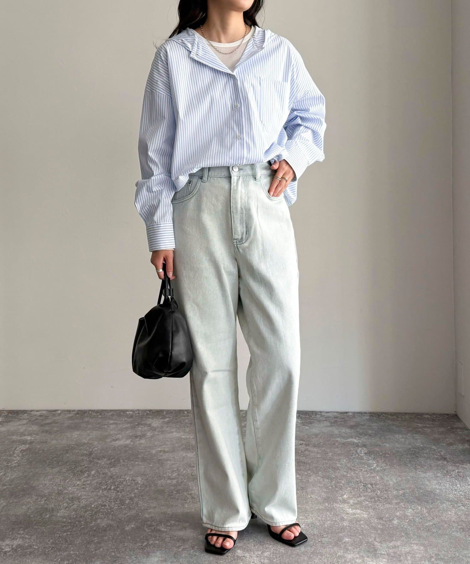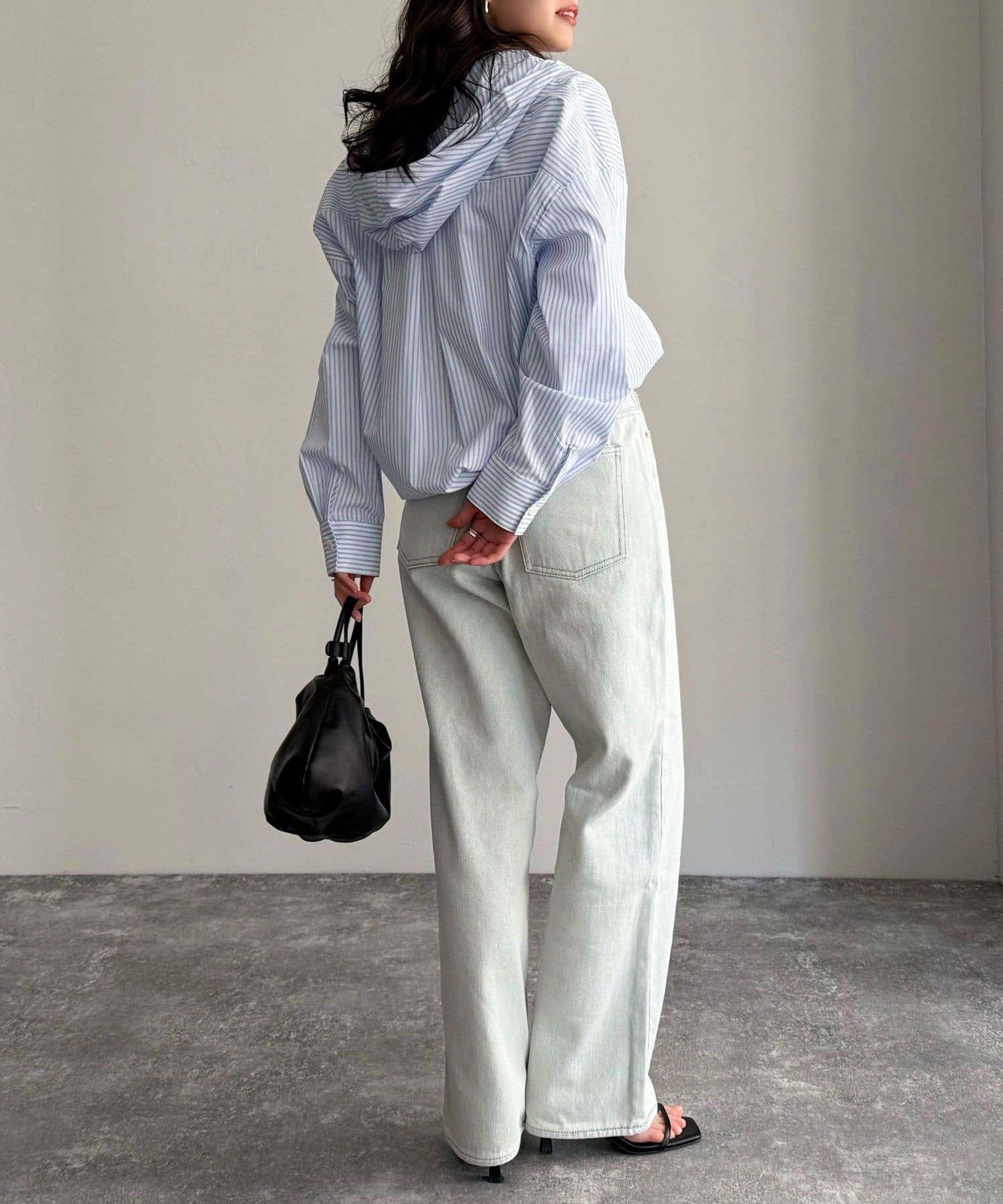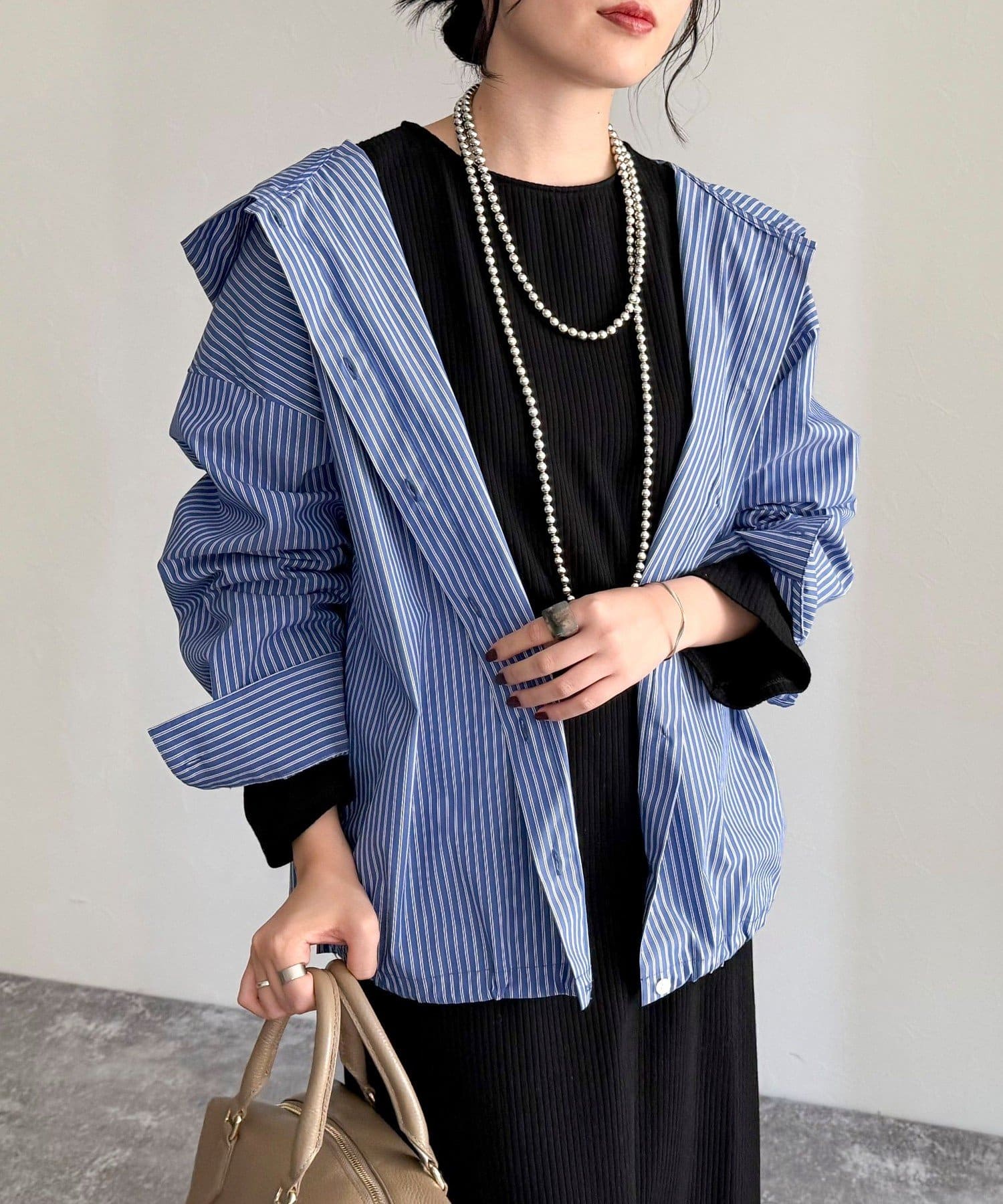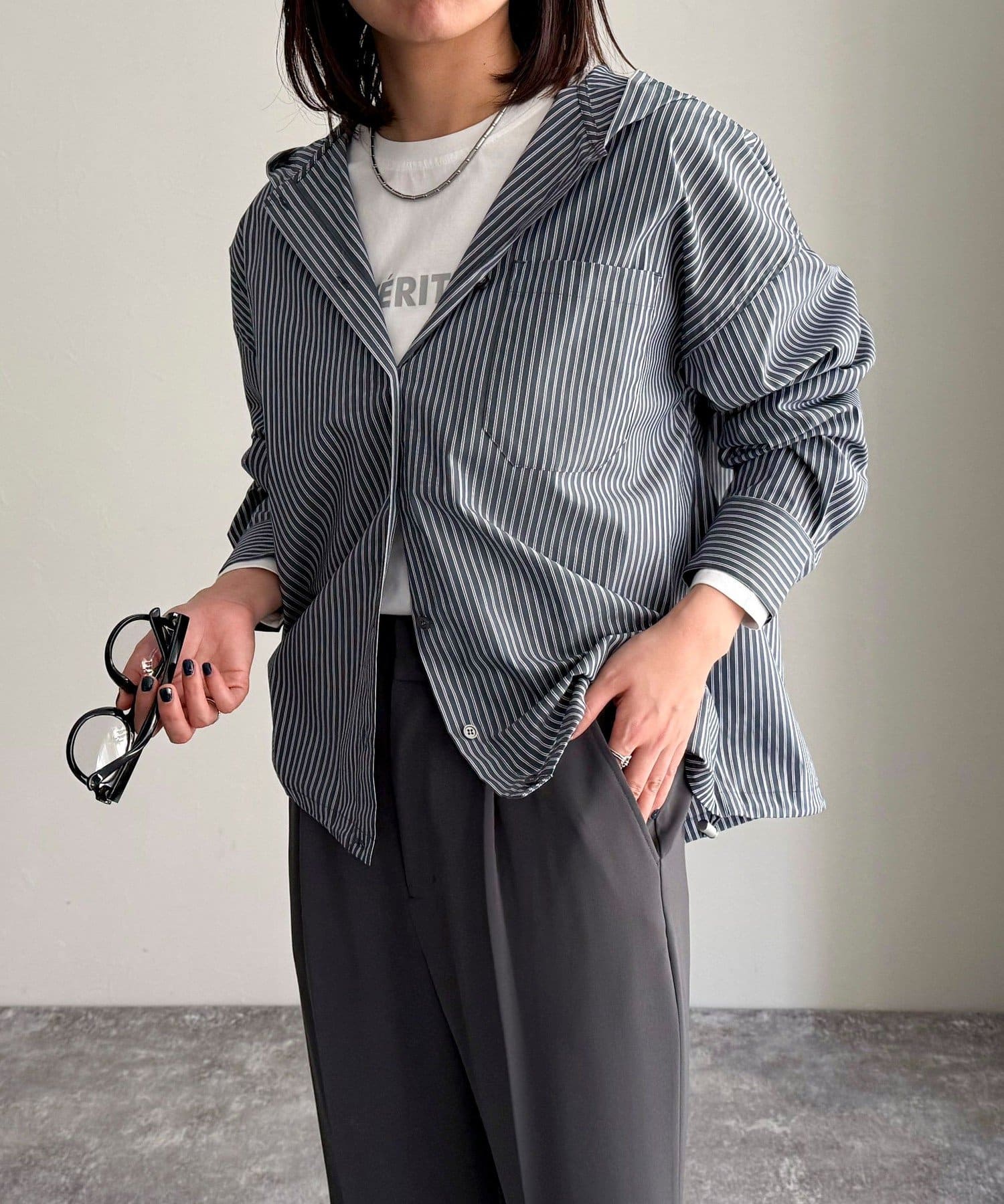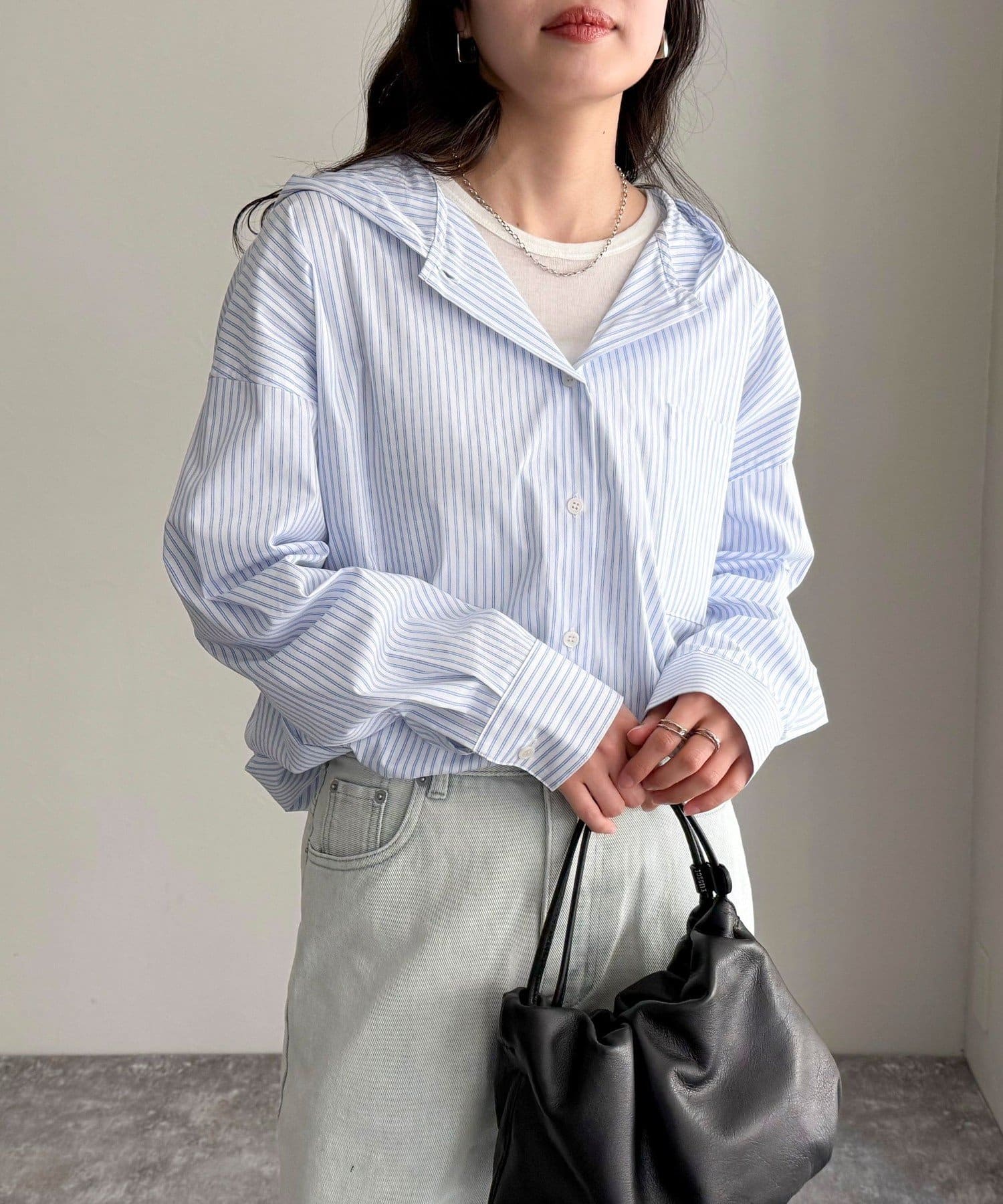 春のワードローブに加えたい大人のストライプフーディーシャツ