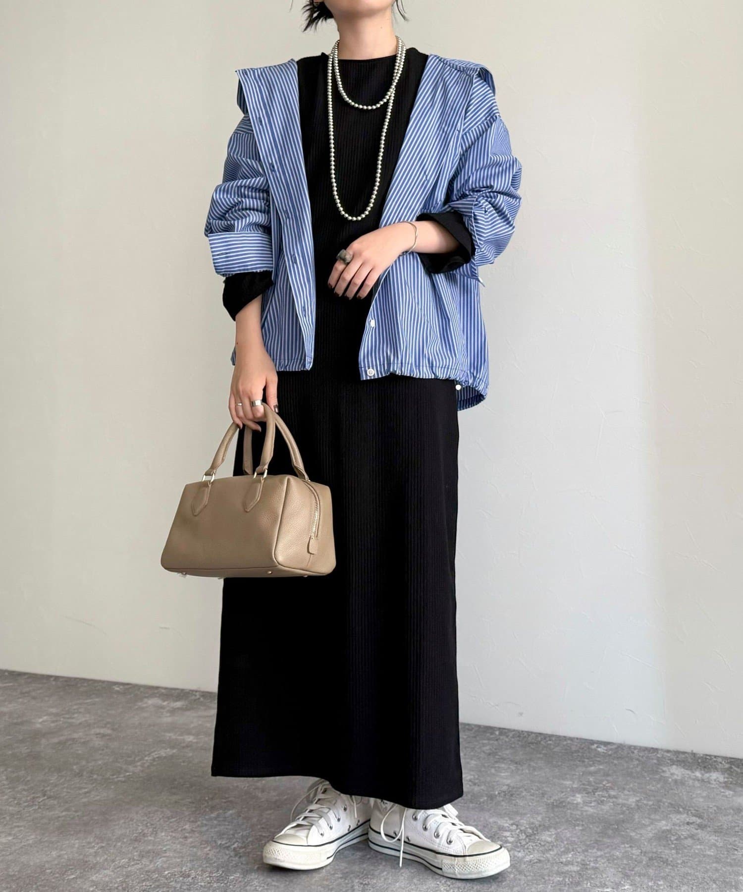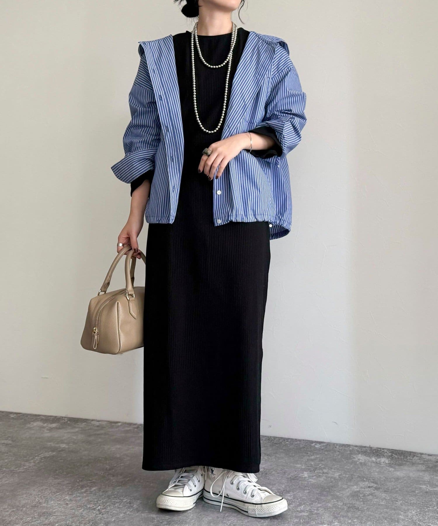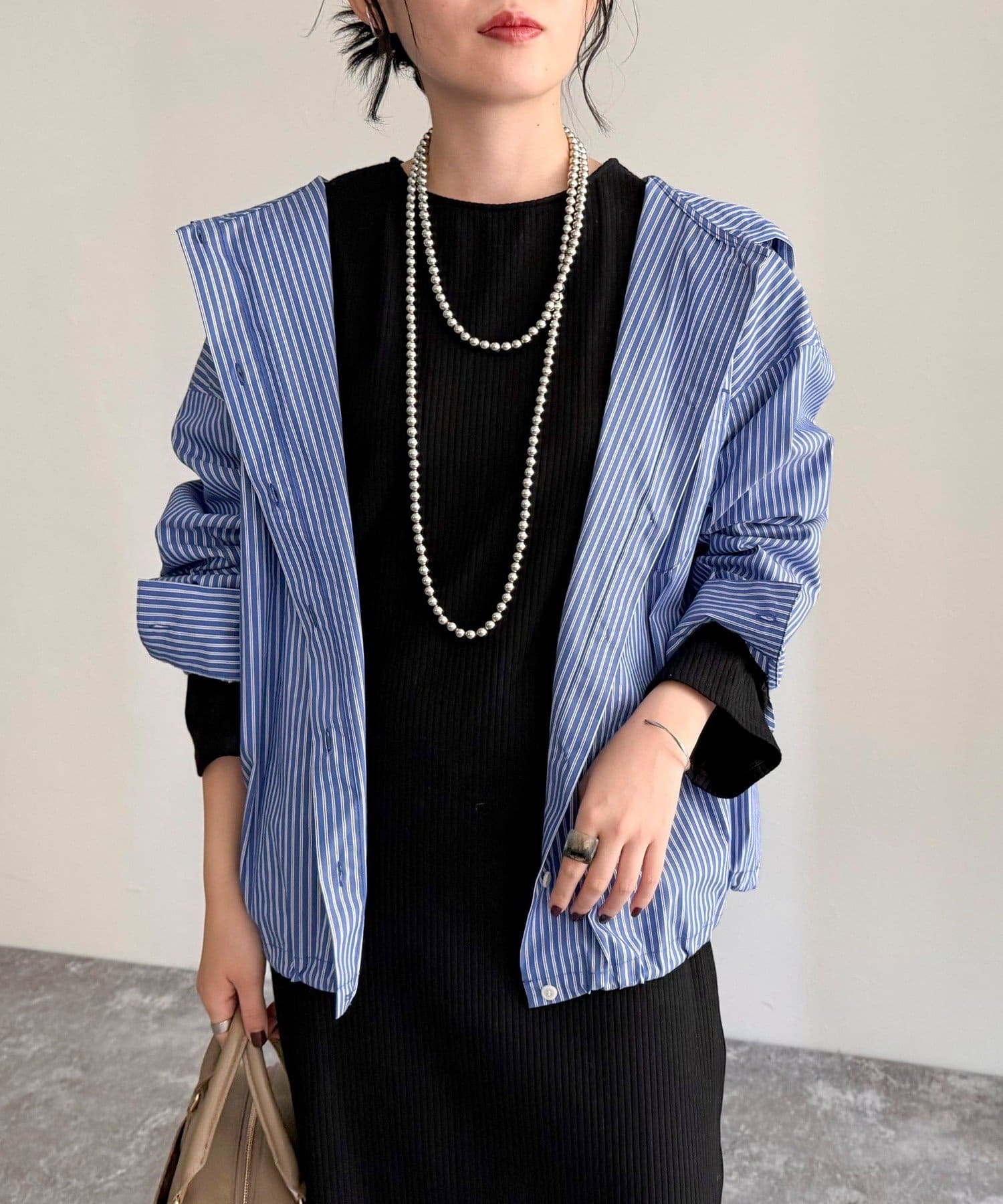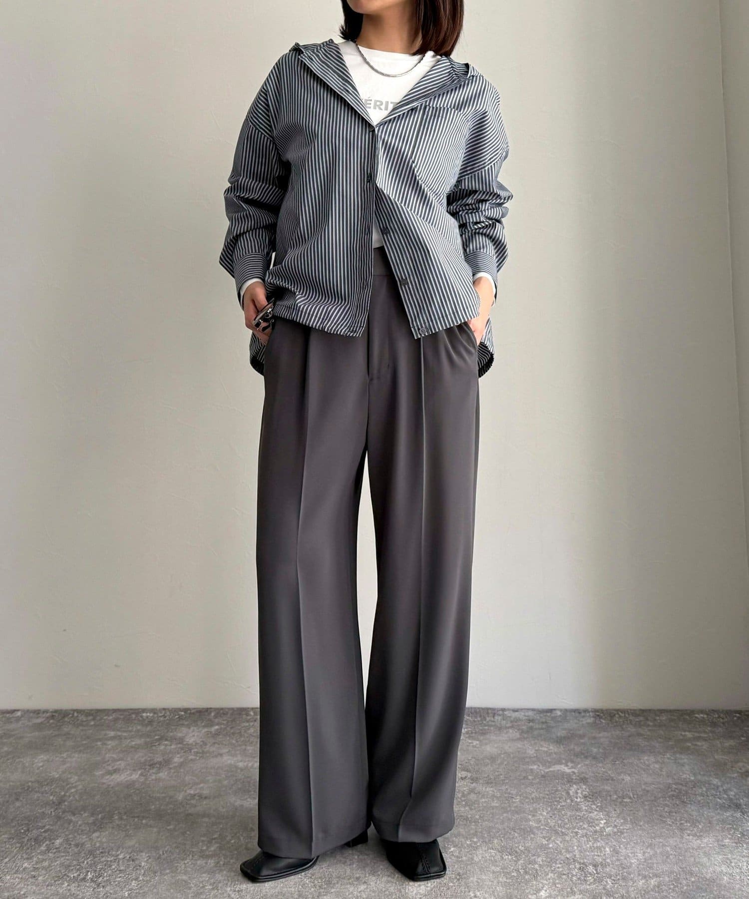 春のワードローブに加えたい大人のストライプフーディーシャツ