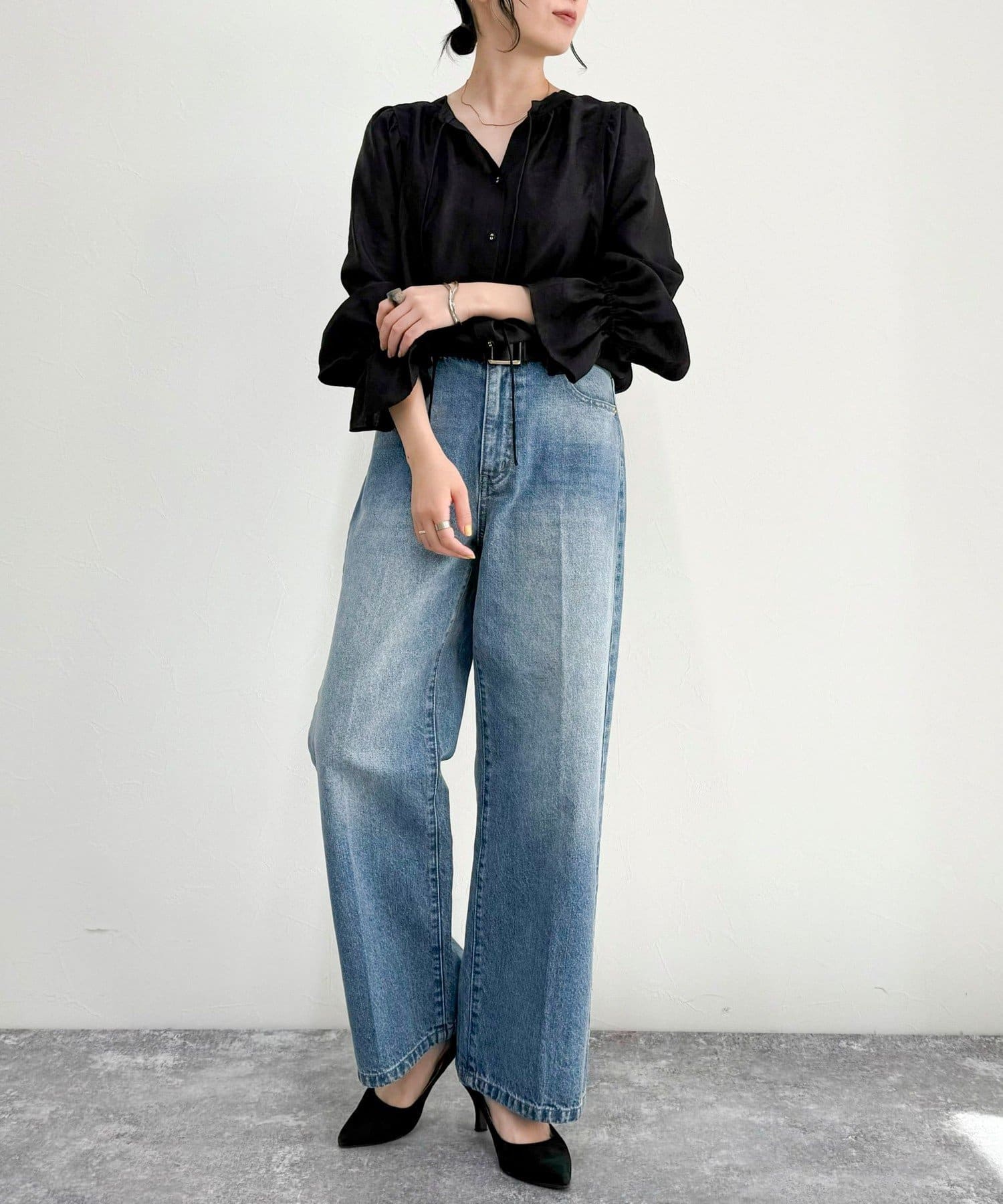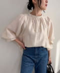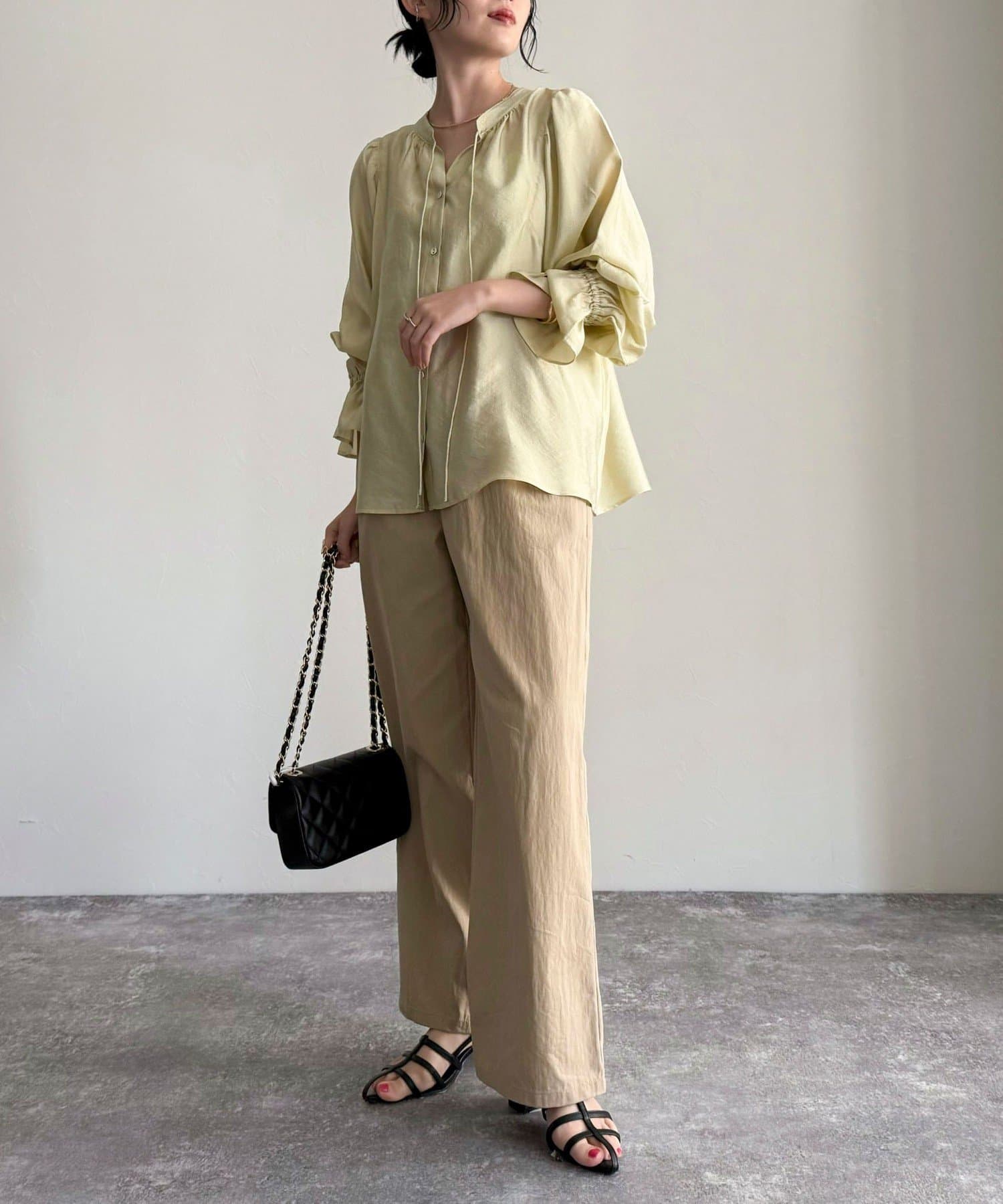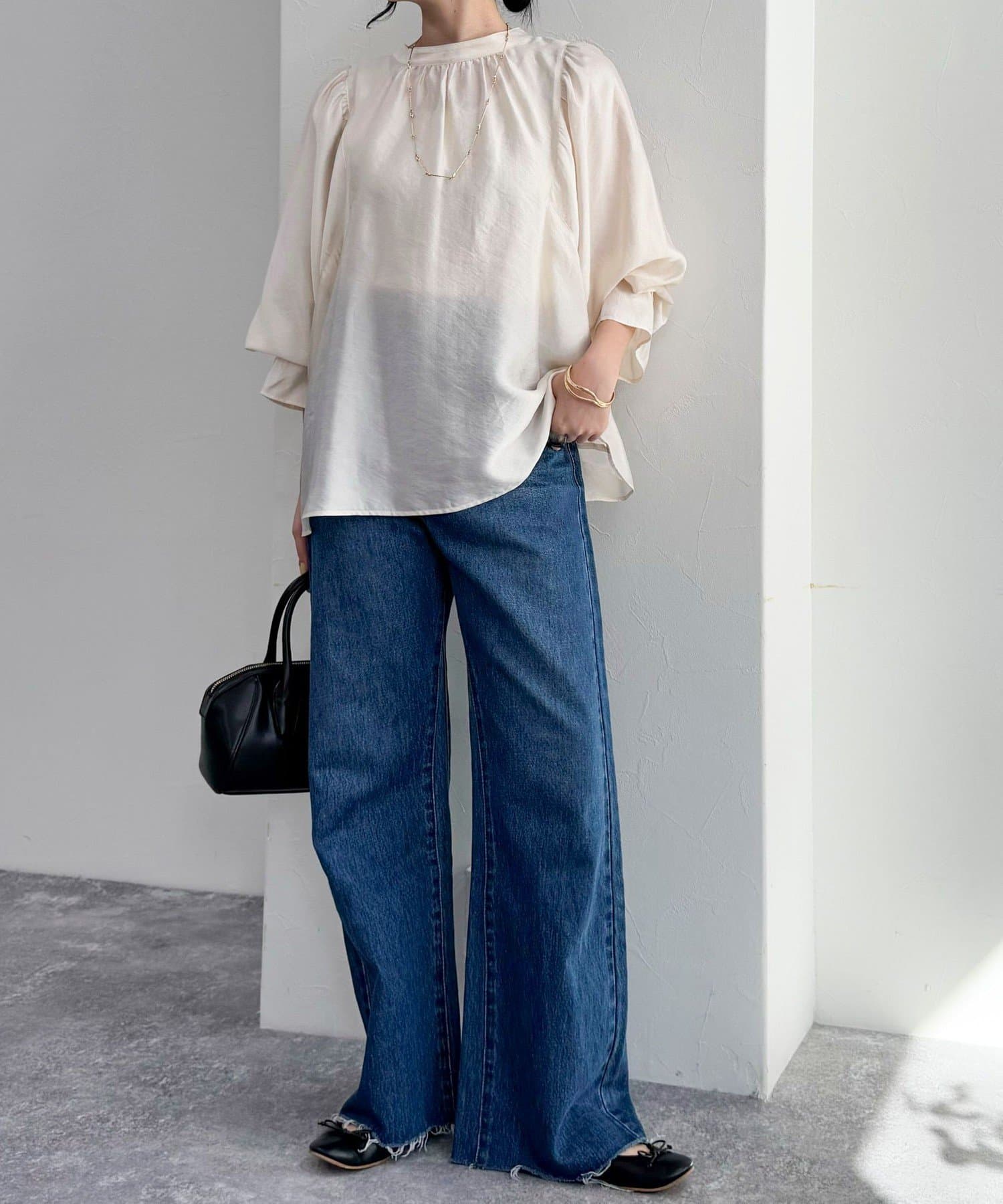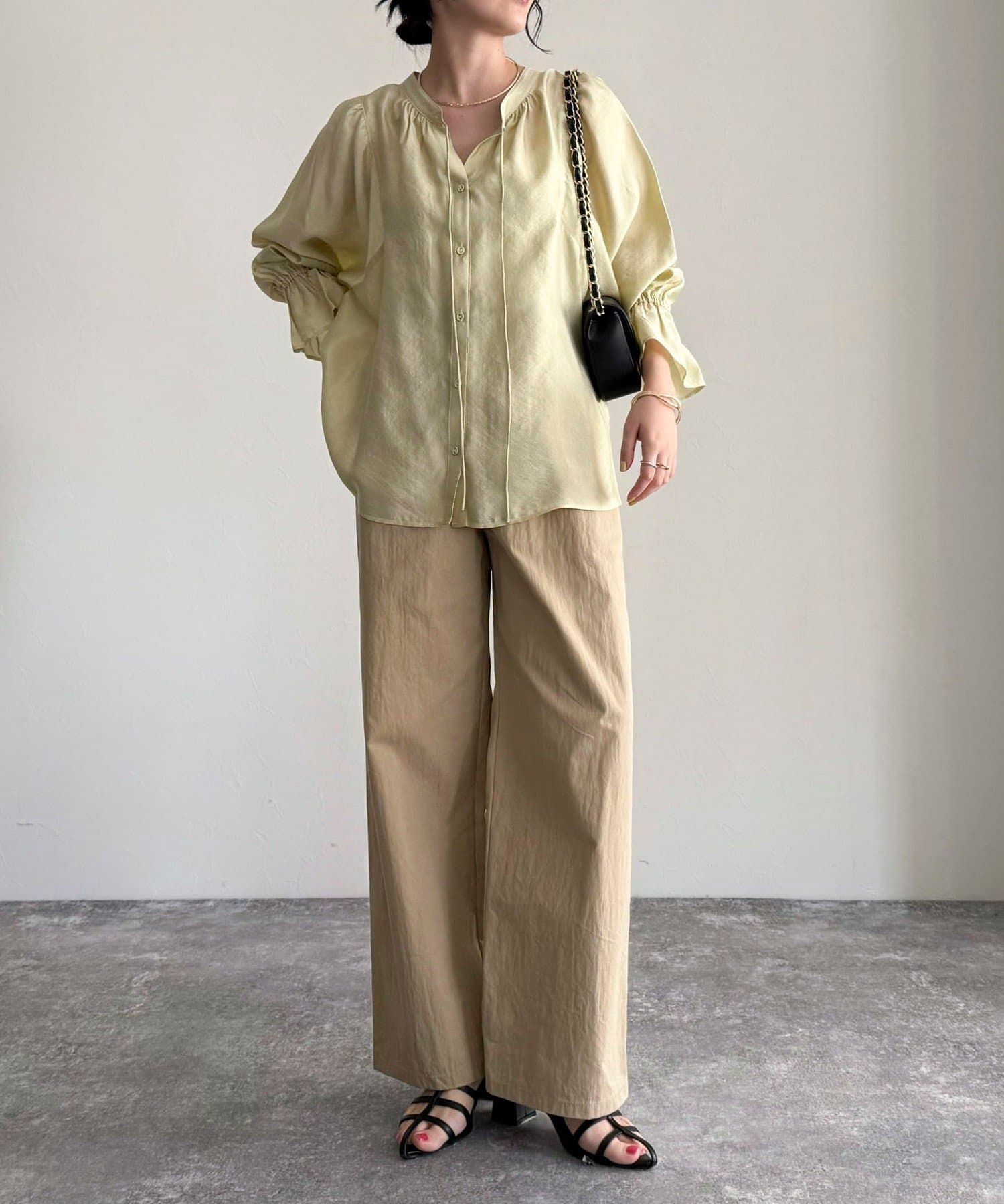 ・ギャザーの入ったふんわりしたデザインが女性らしい雰囲気に!