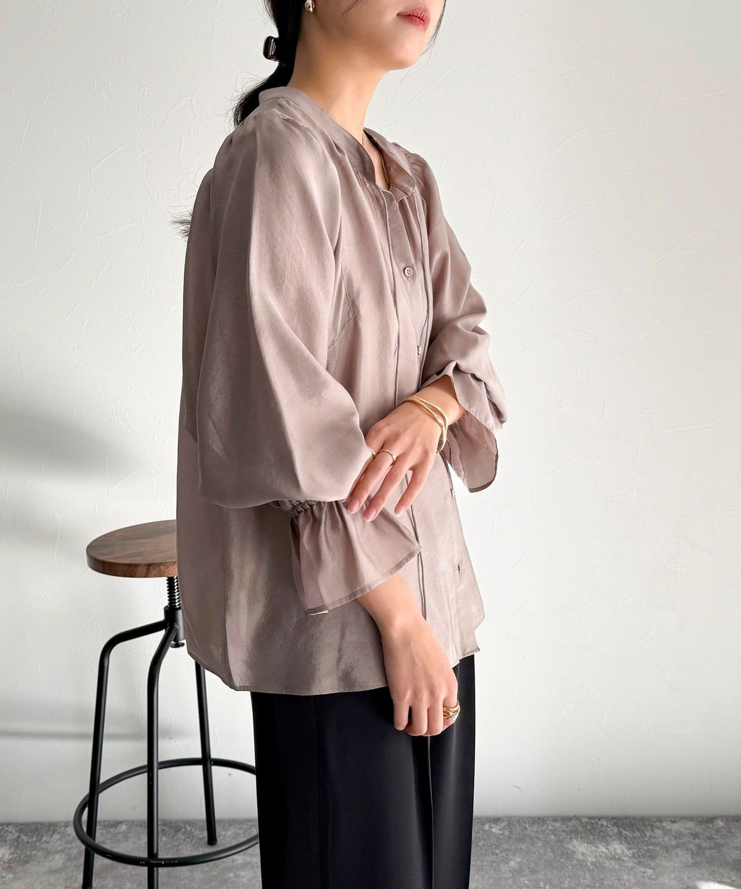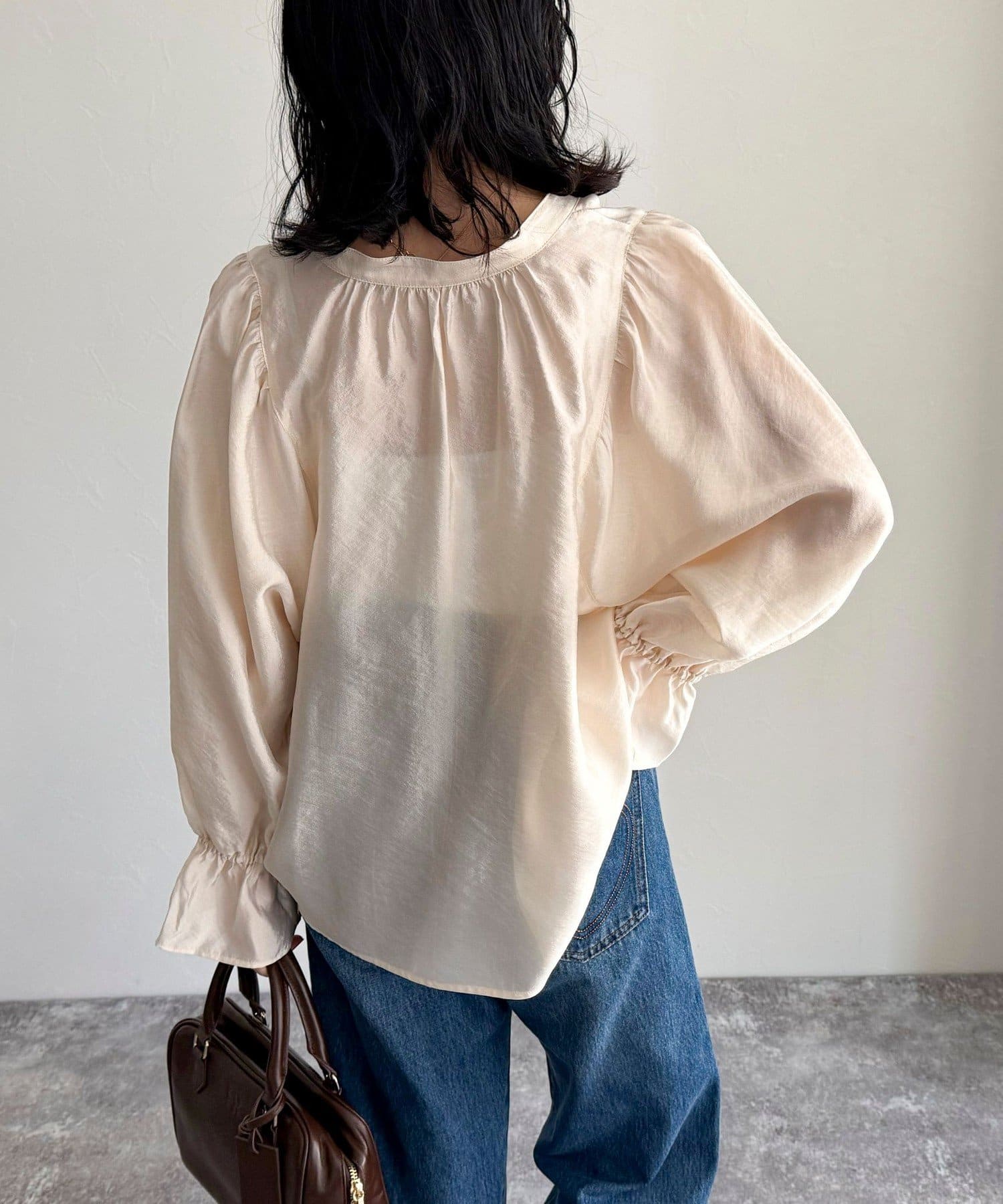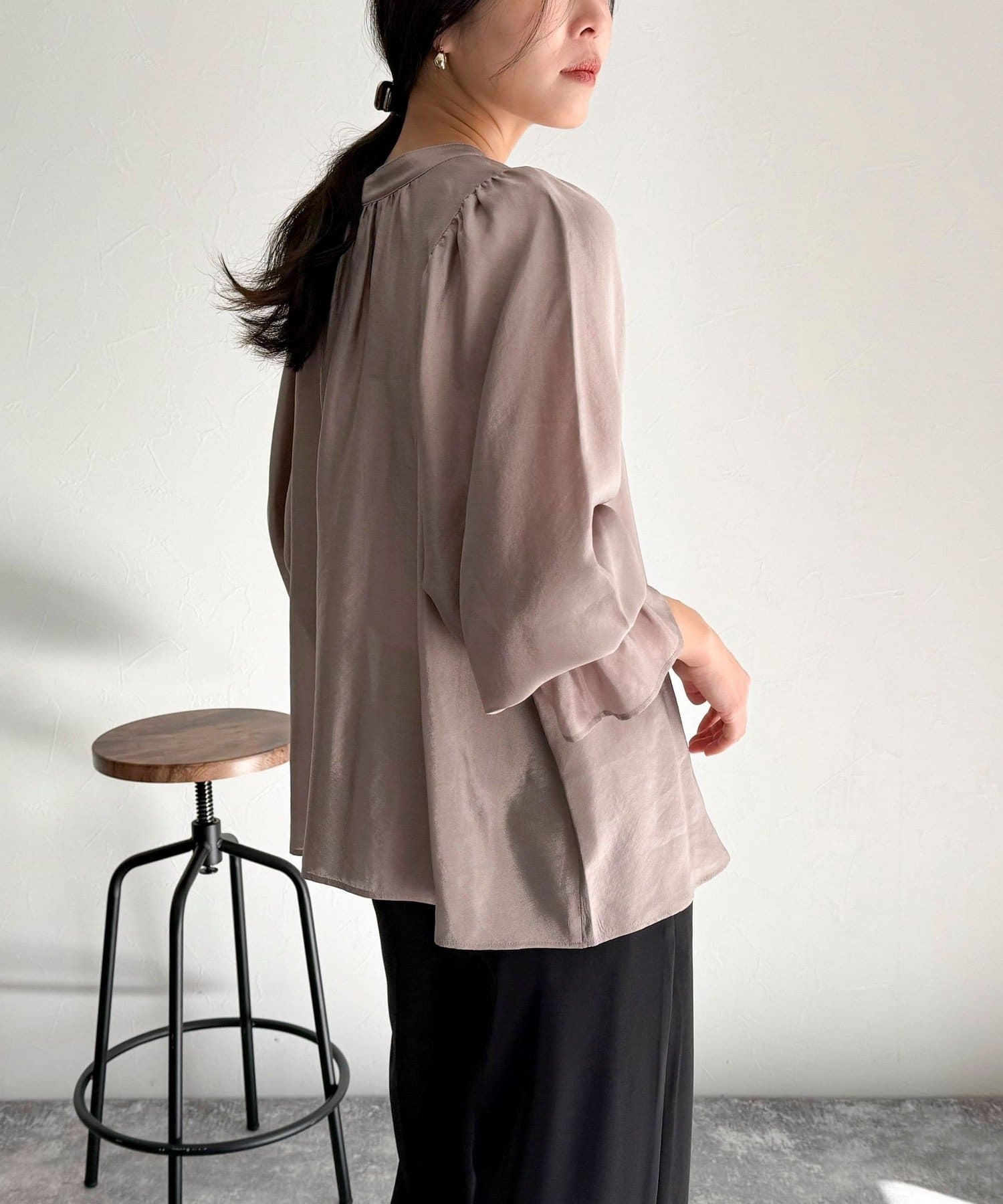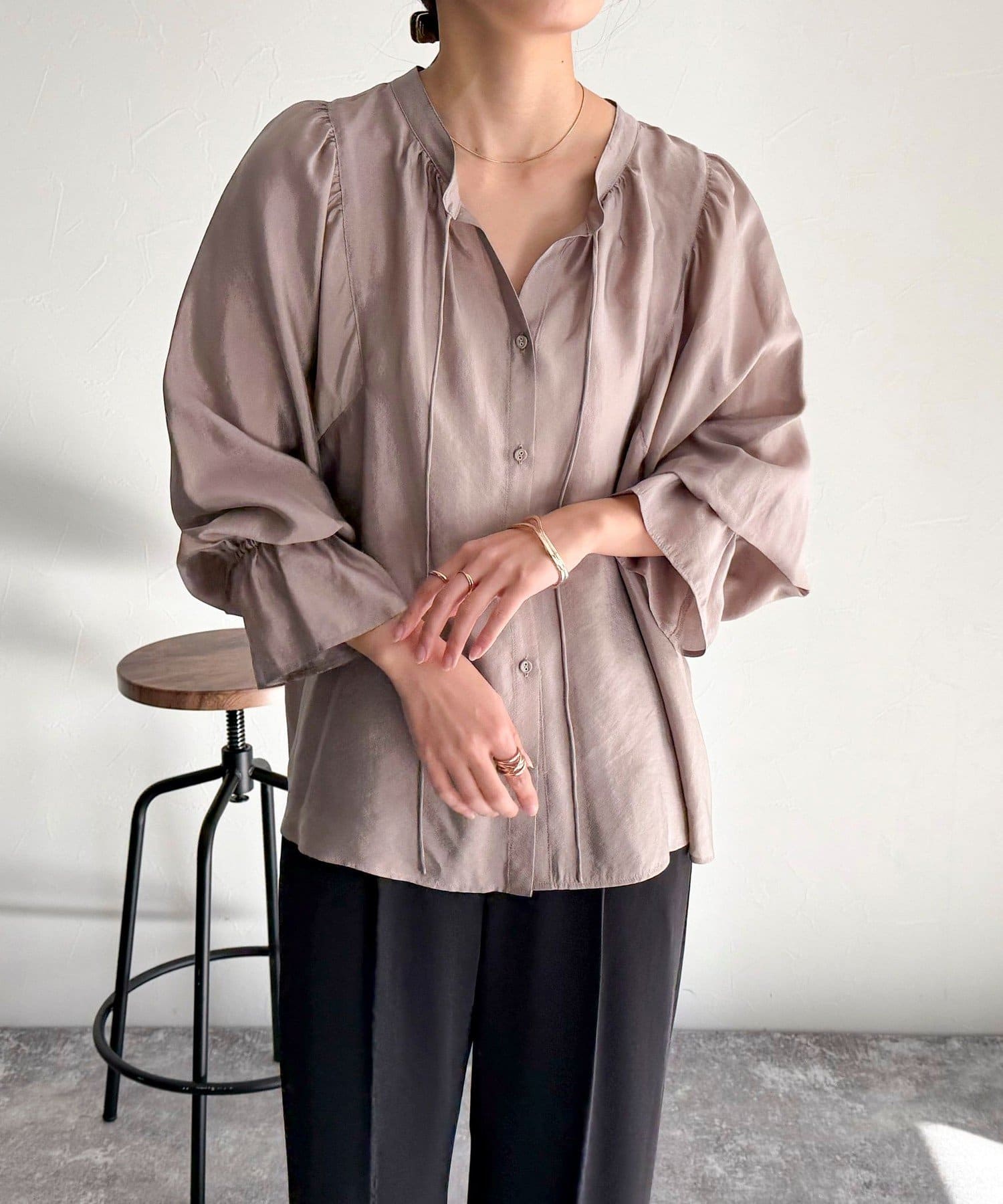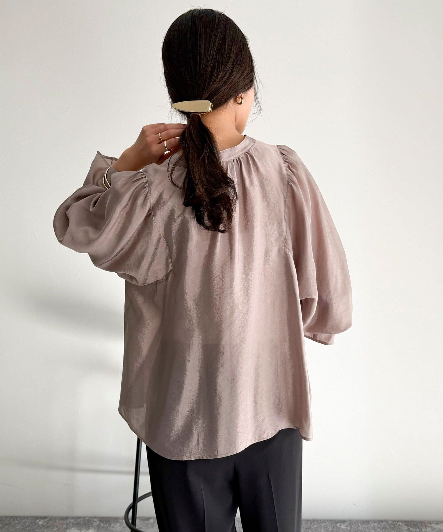 上品な着こなしが叶うシャイニーシアー2WAYギャザーブラウス