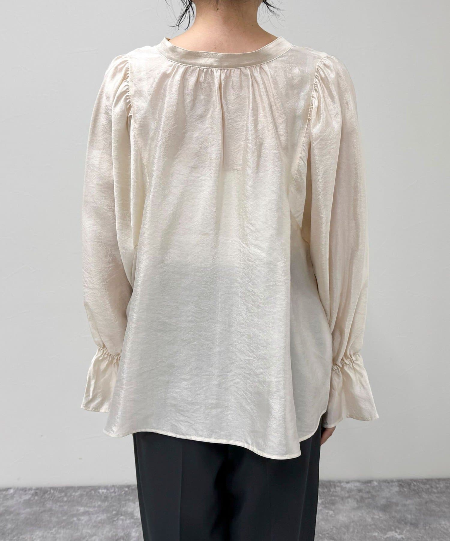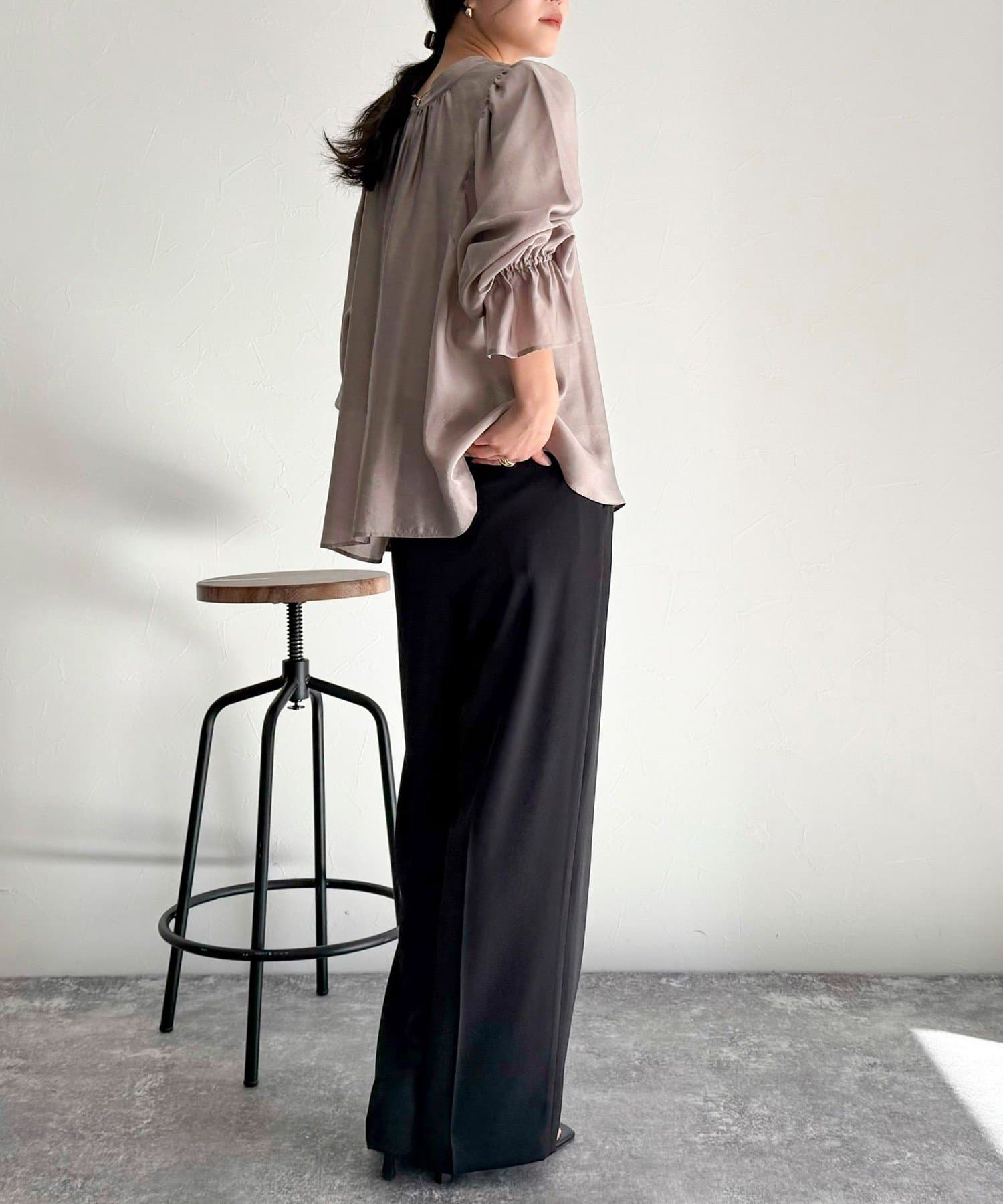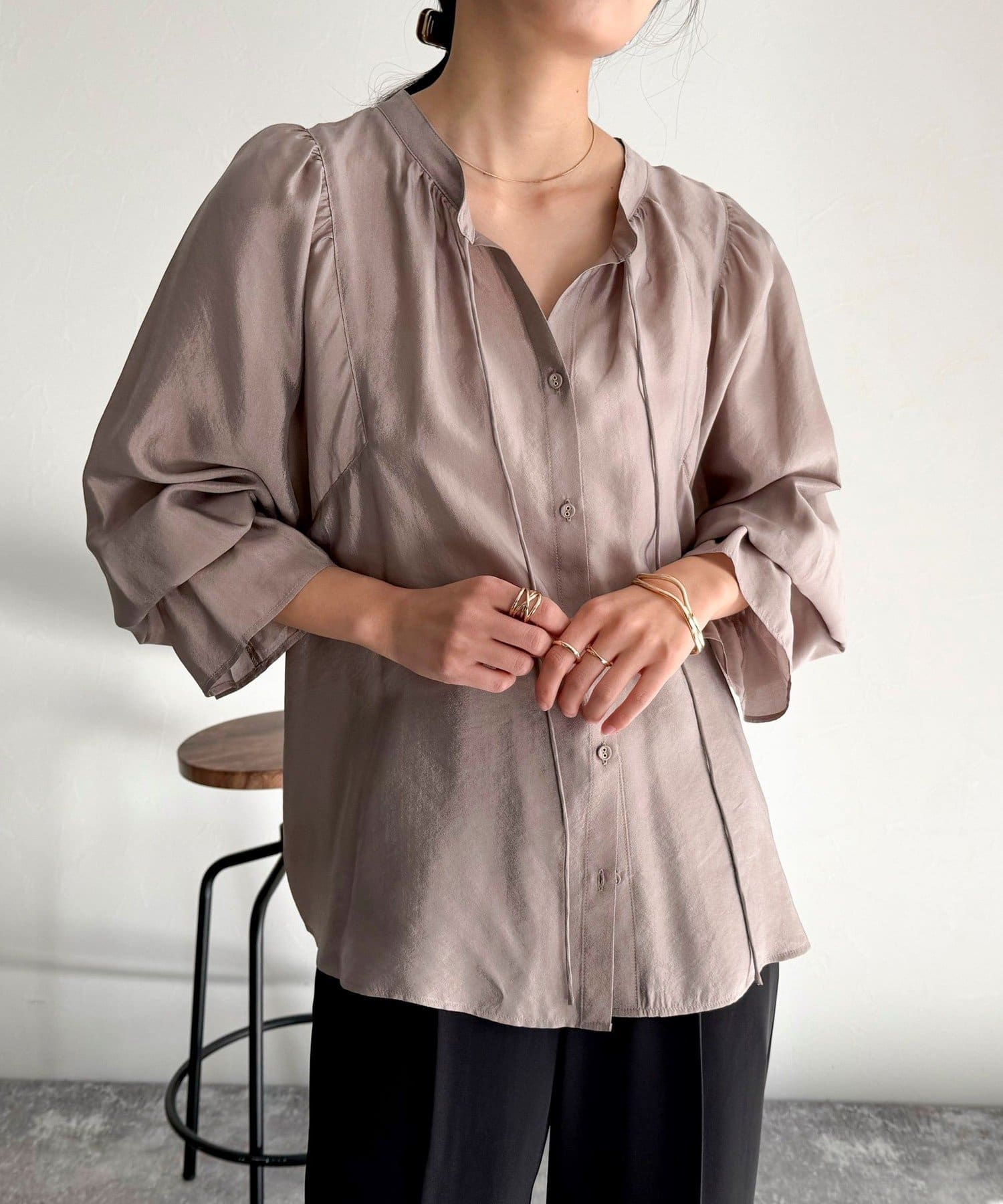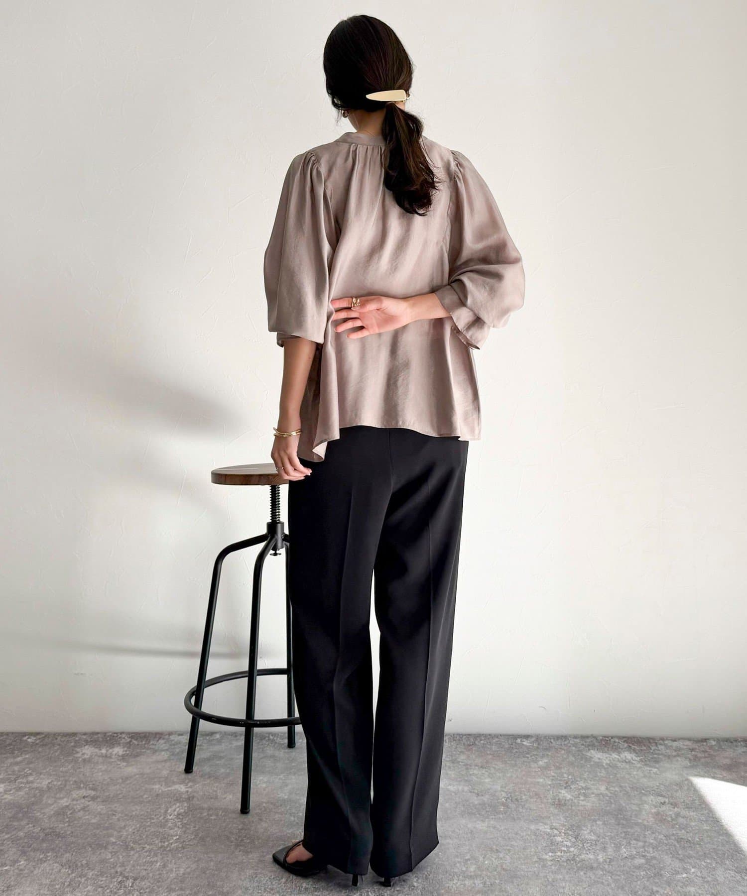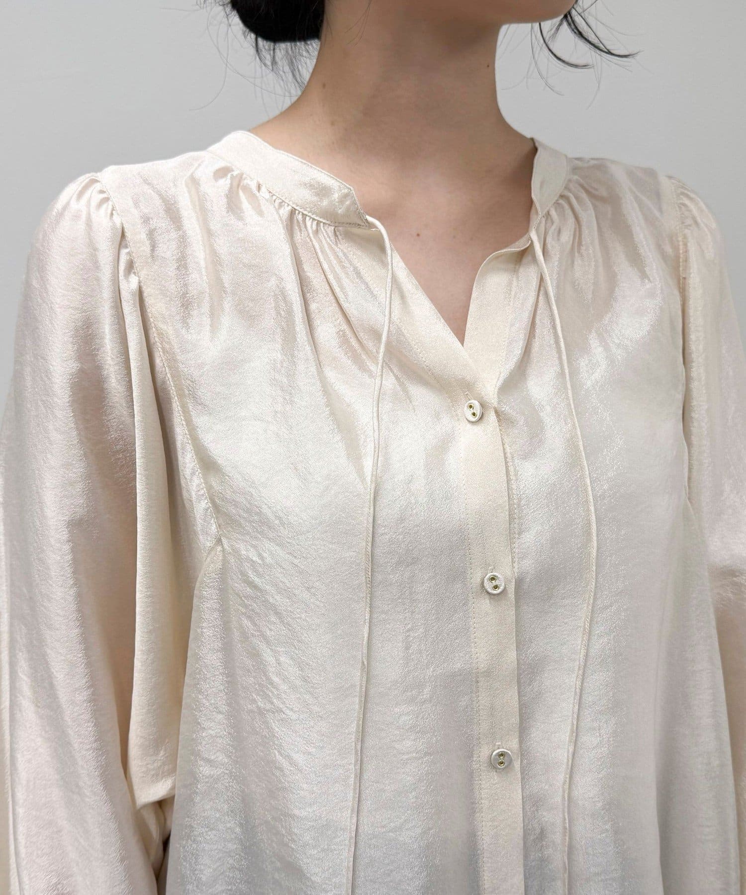 上品な着こなしが叶うシャイニーシアー2WAYギャザーブラウス