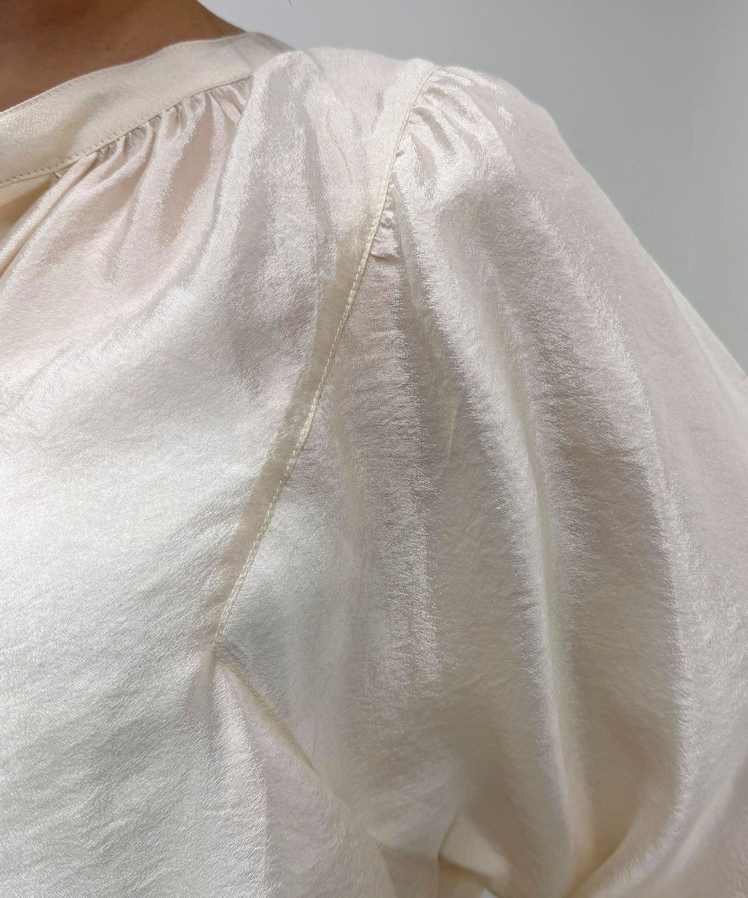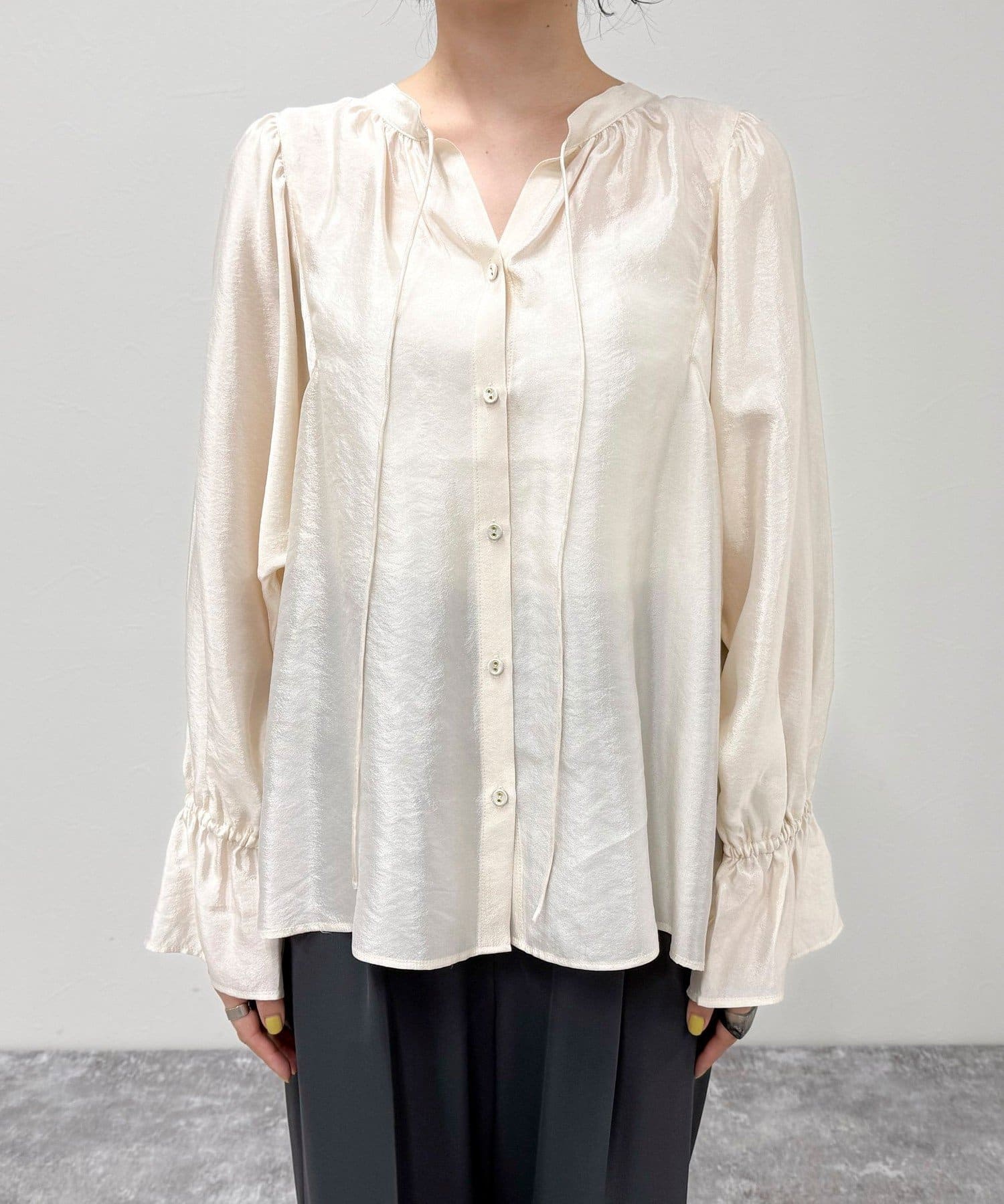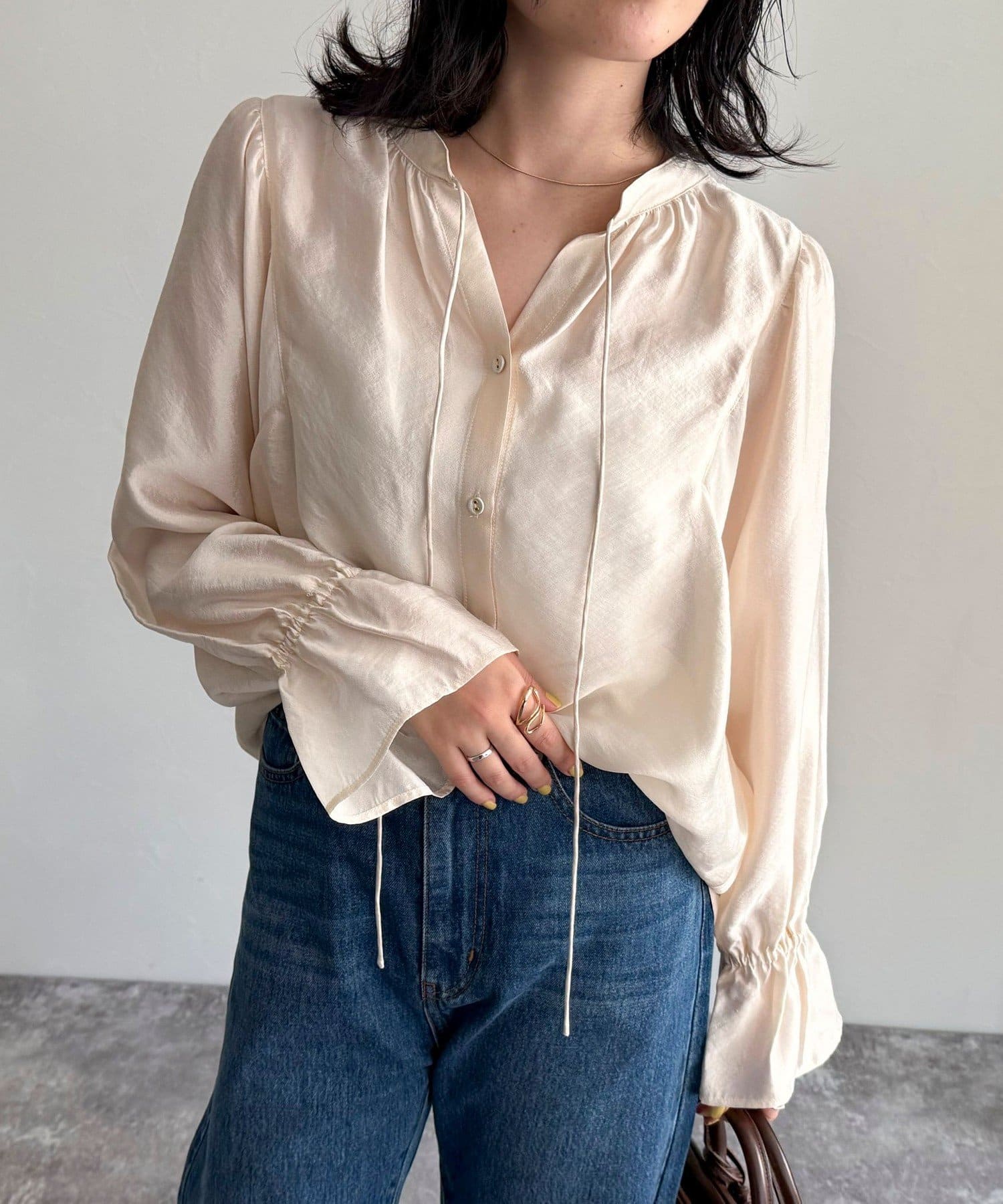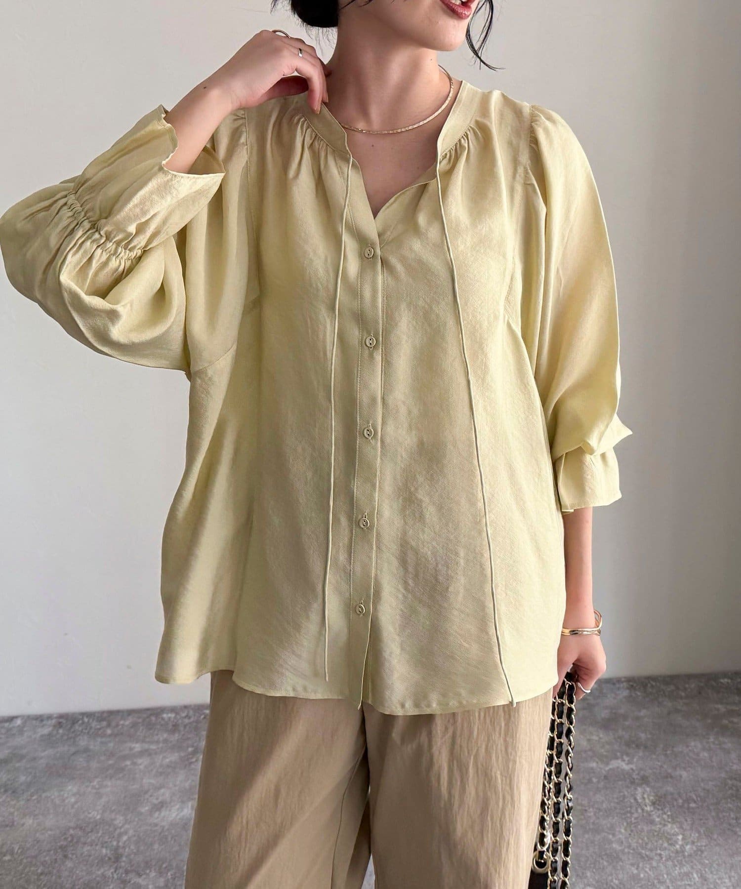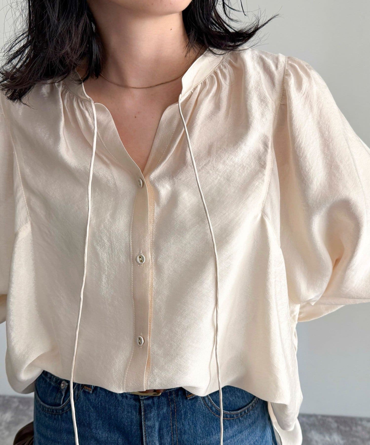 上品な着こなしが叶うシャイニーシアー2WAYギャザーブラウス