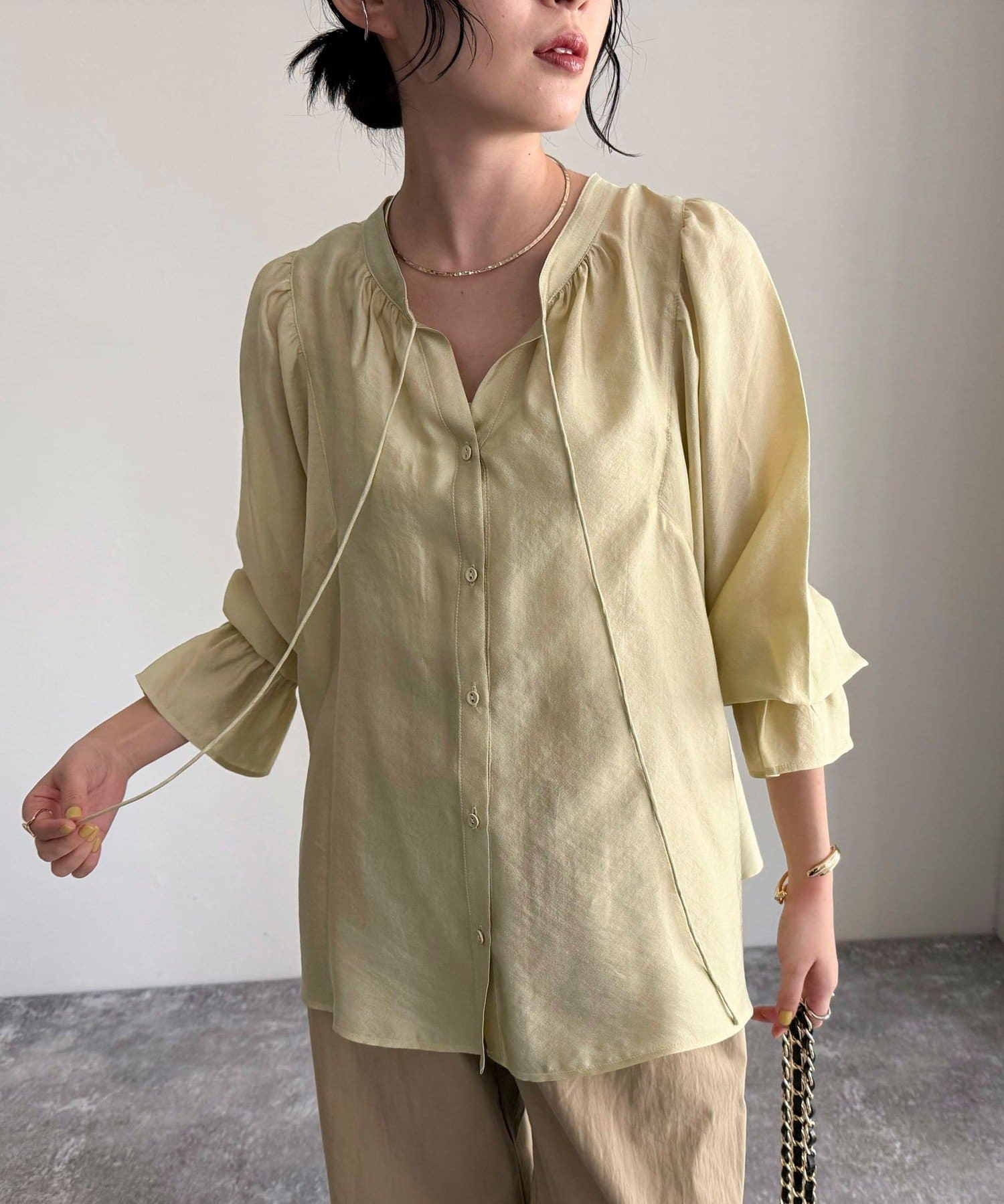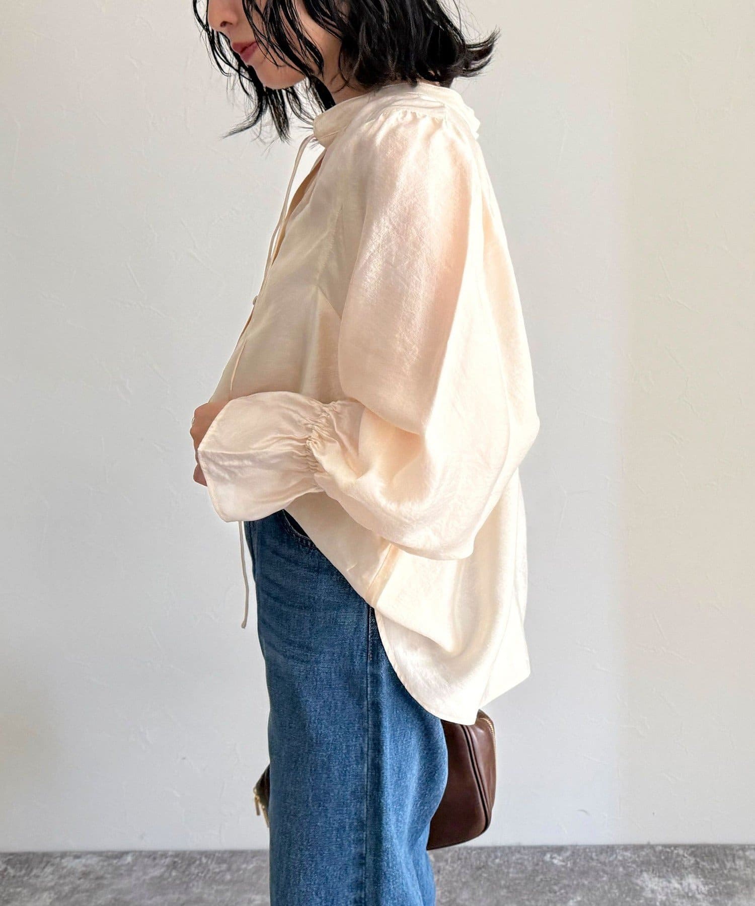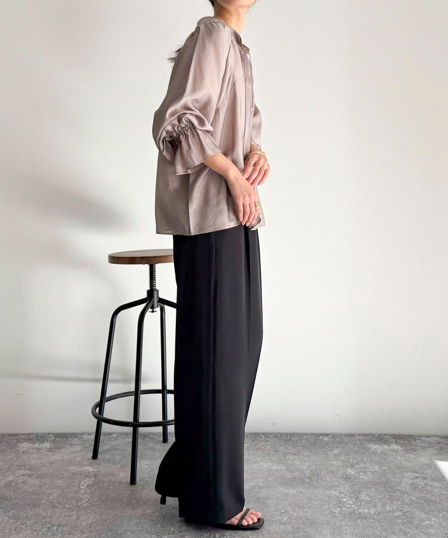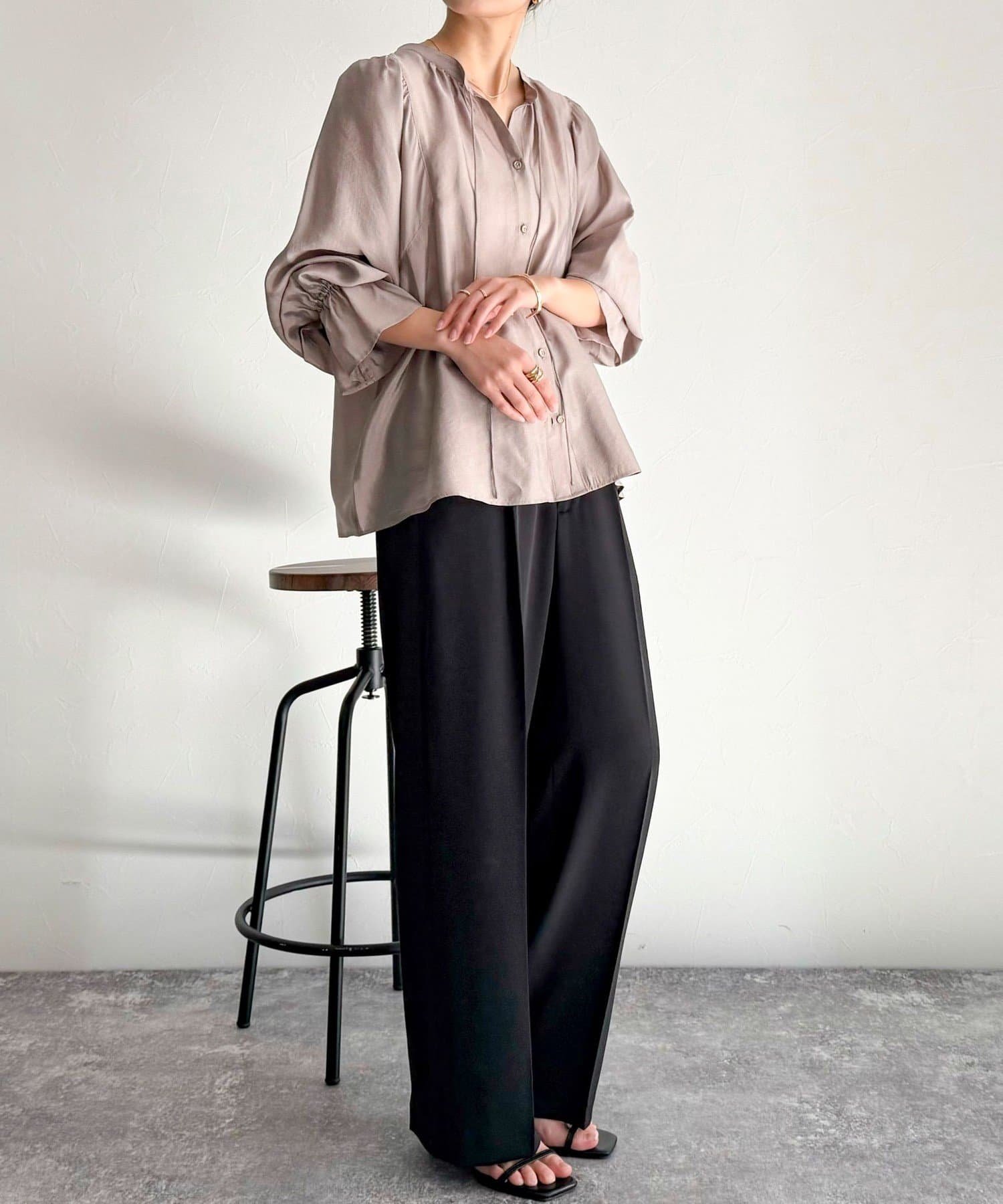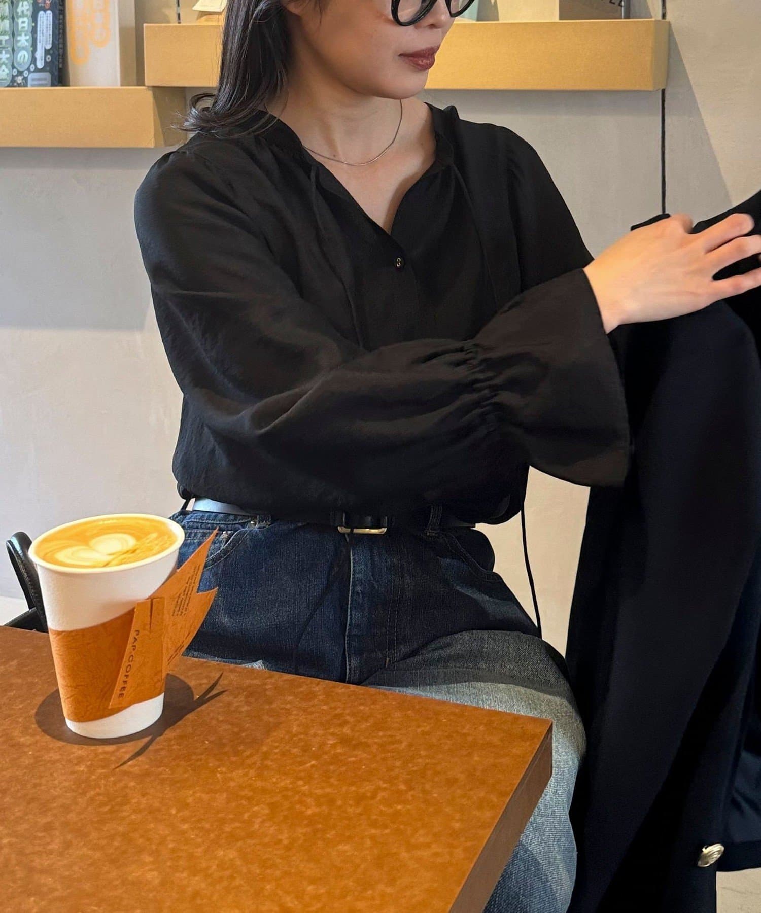 上品な着こなしが叶うシャイニーシアー2WAYギャザーブラウス
