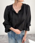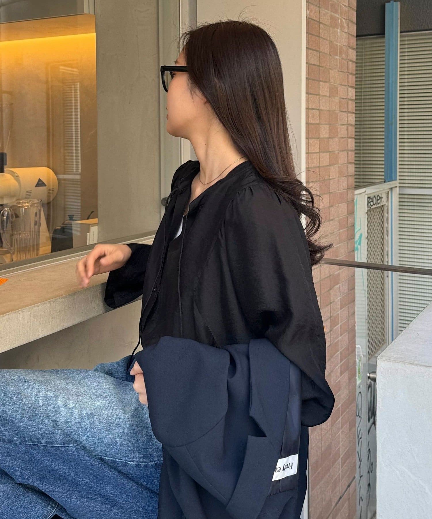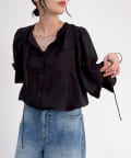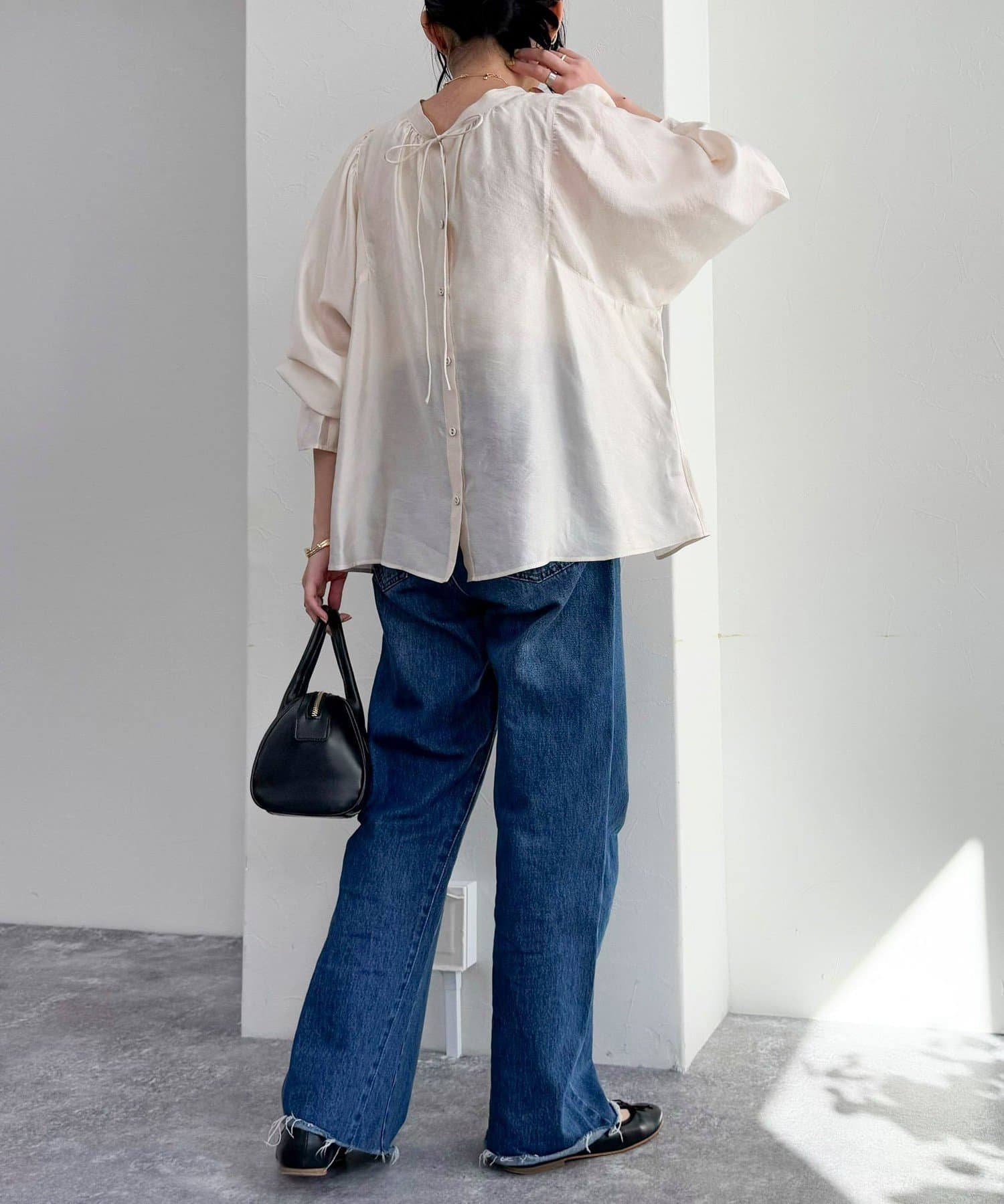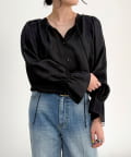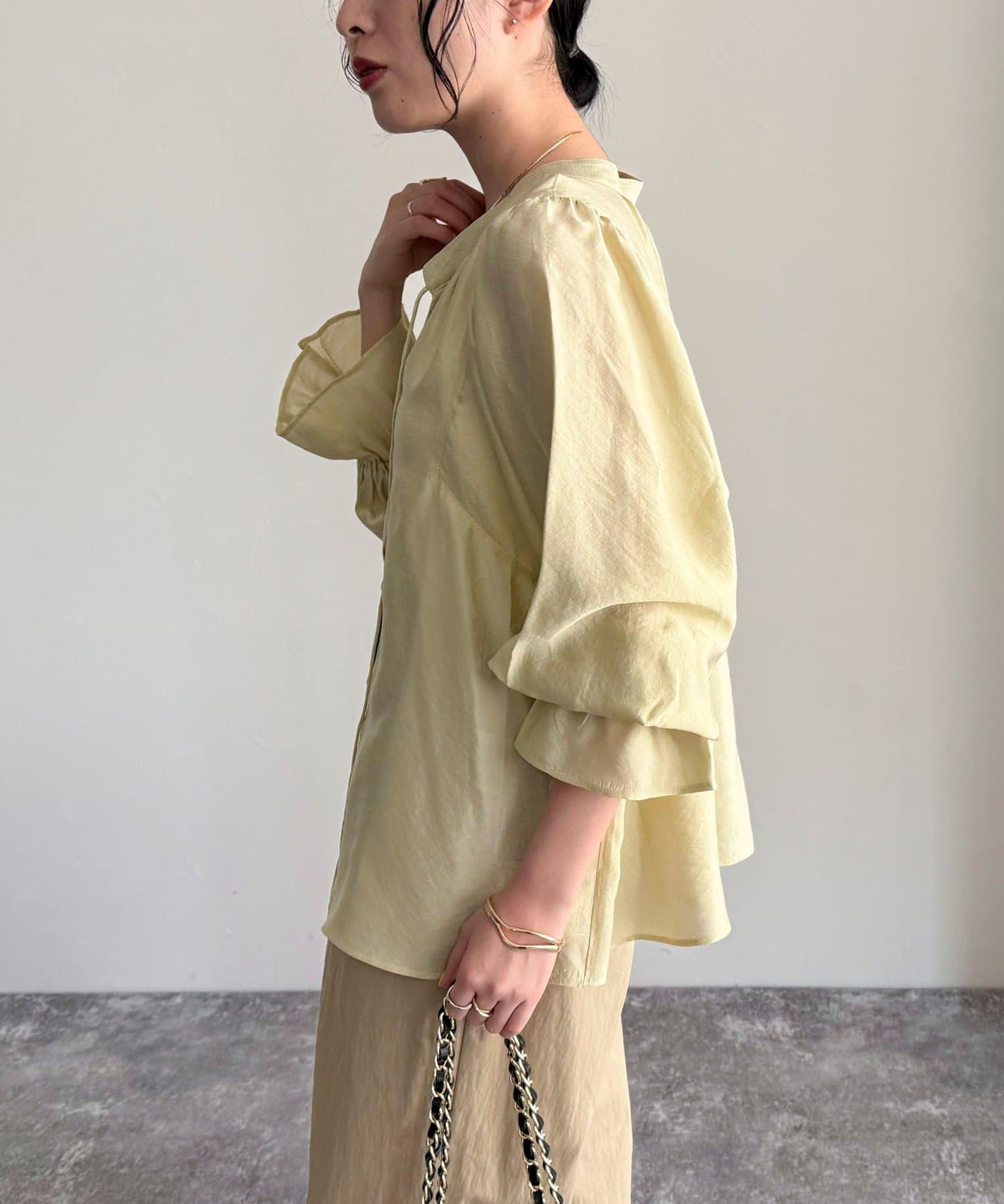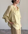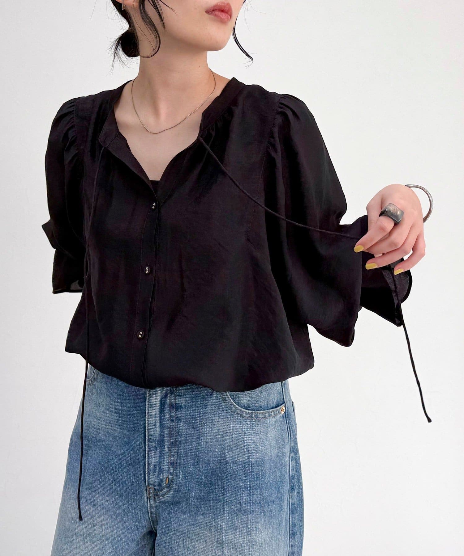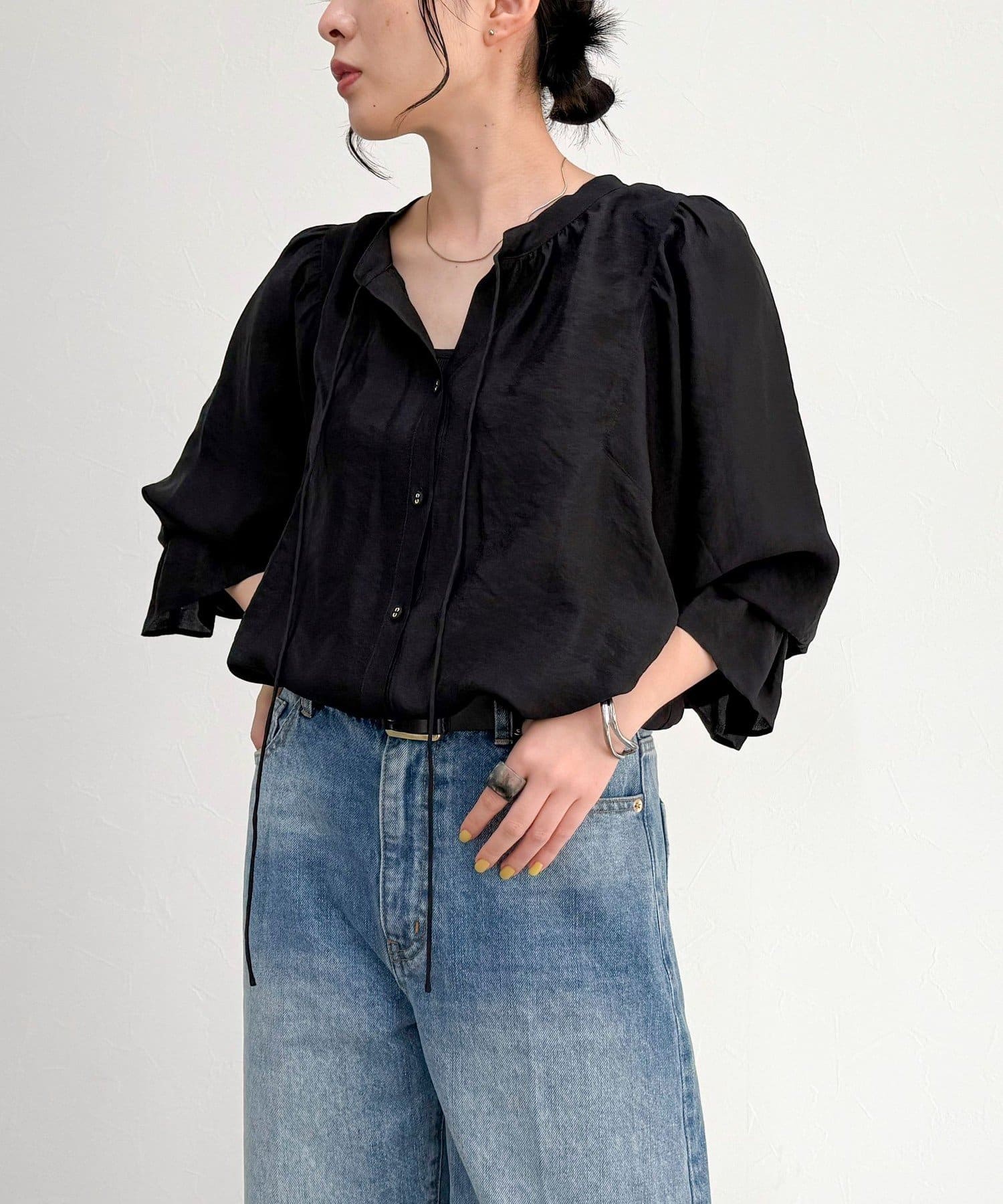 上品な着こなしが叶うシャイニーシアー2WAYギャザーブラウス