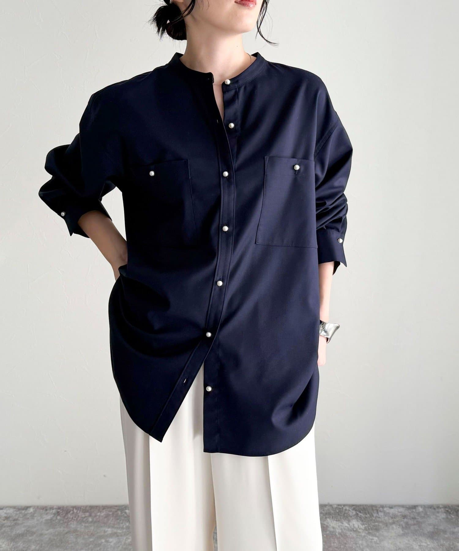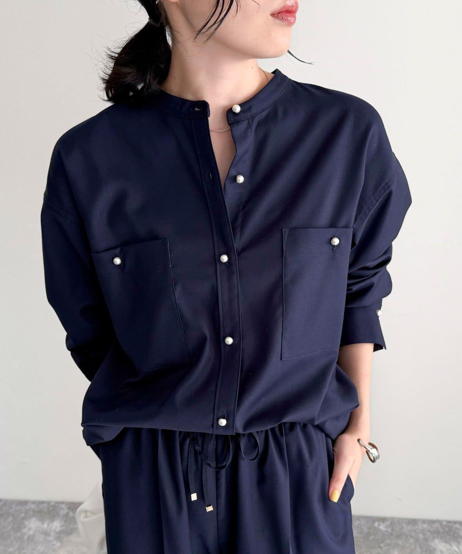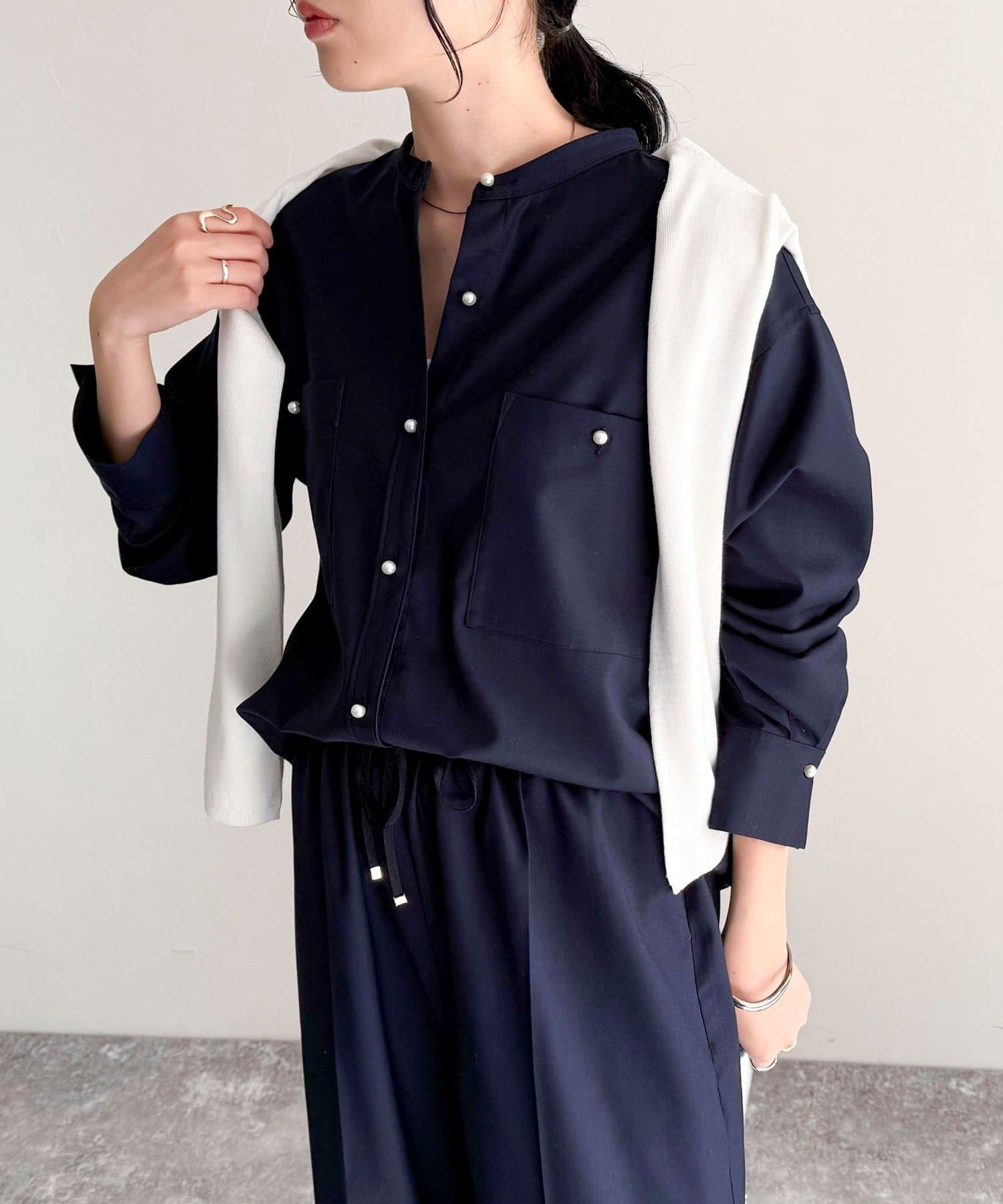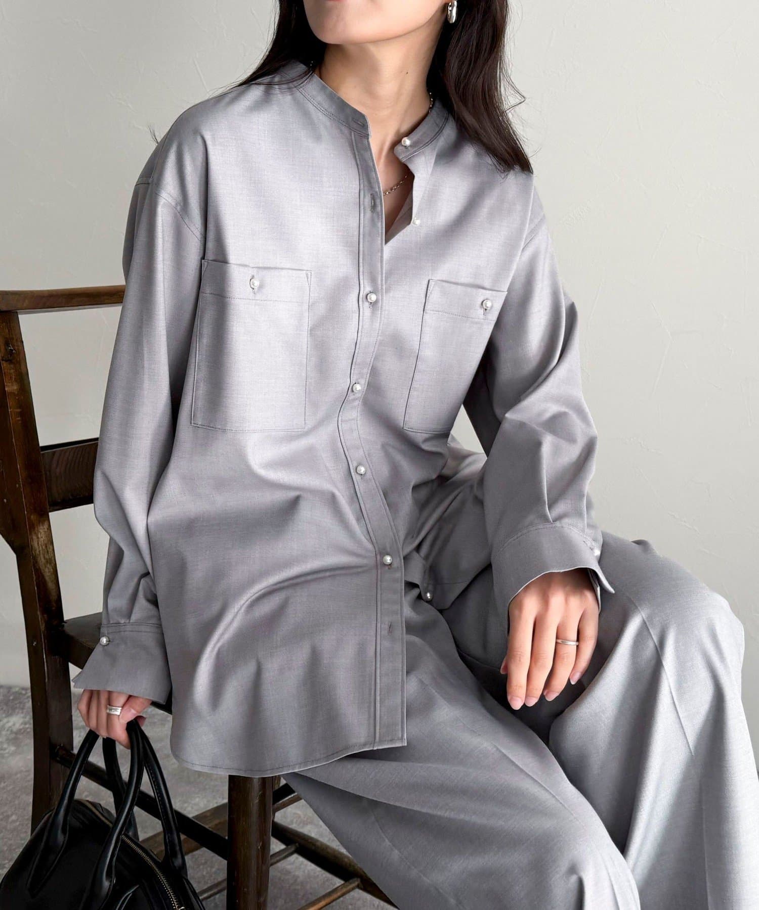 TOP > FREDY & GLOSTER > レディース > トップス > シャツ/ブラウス(ボタン) > 《セットアップ対応》TRパール釦バンドカラーシャツ