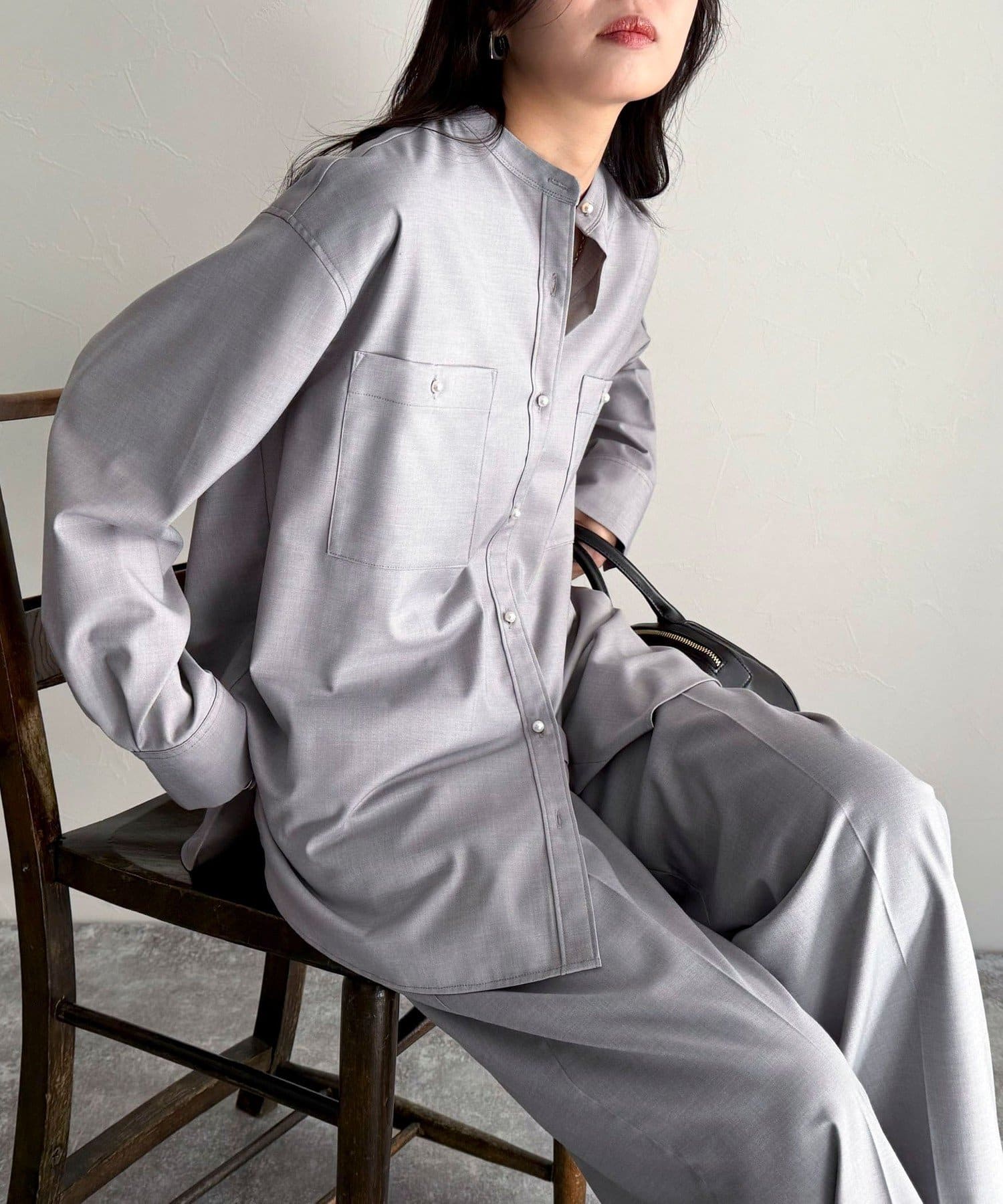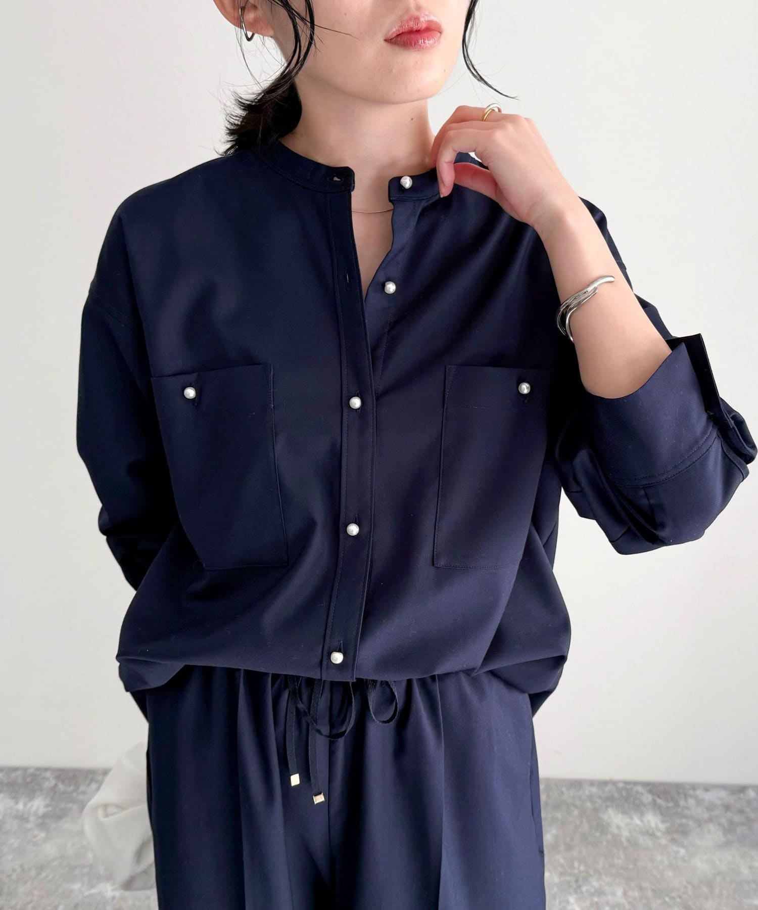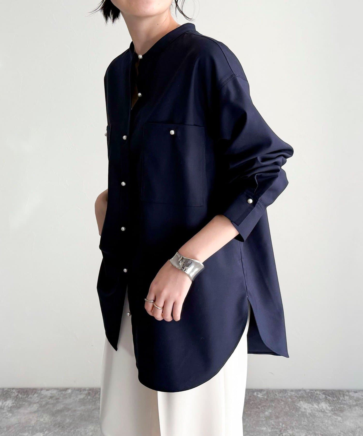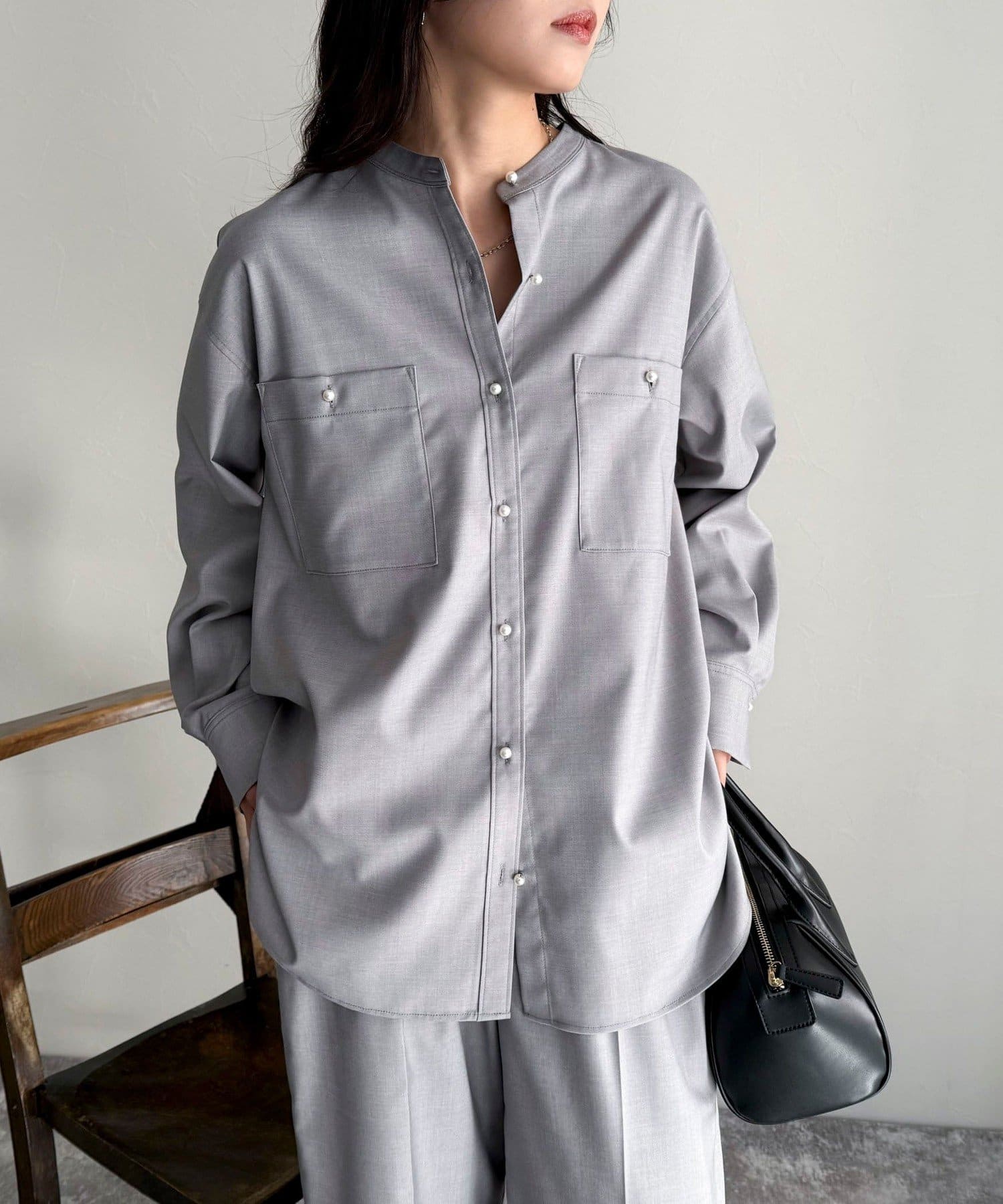 TOP > FREDY & GLOSTER > レディース > トップス > シャツ/ブラウス(ボタン) > 《セットアップ対応》TRパール釦バンドカラーシャツ