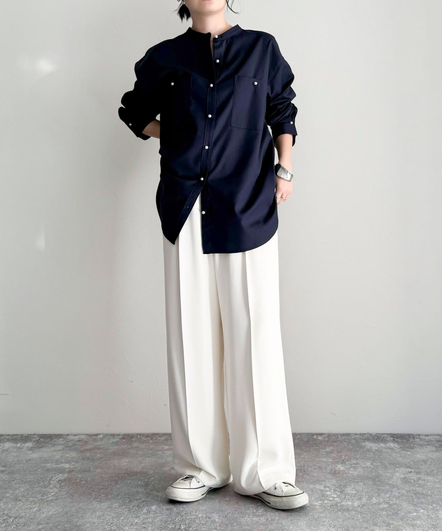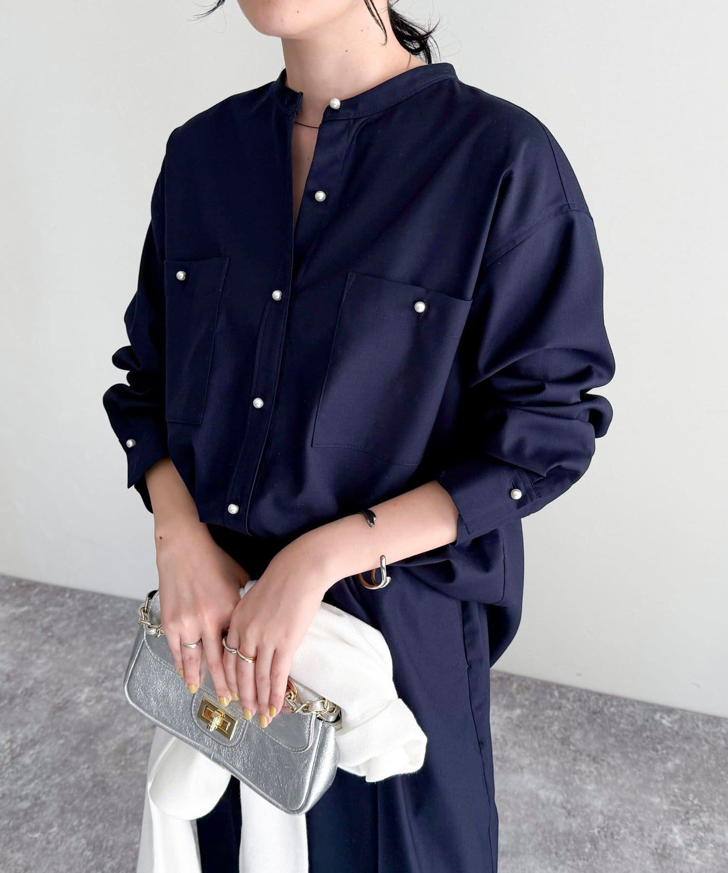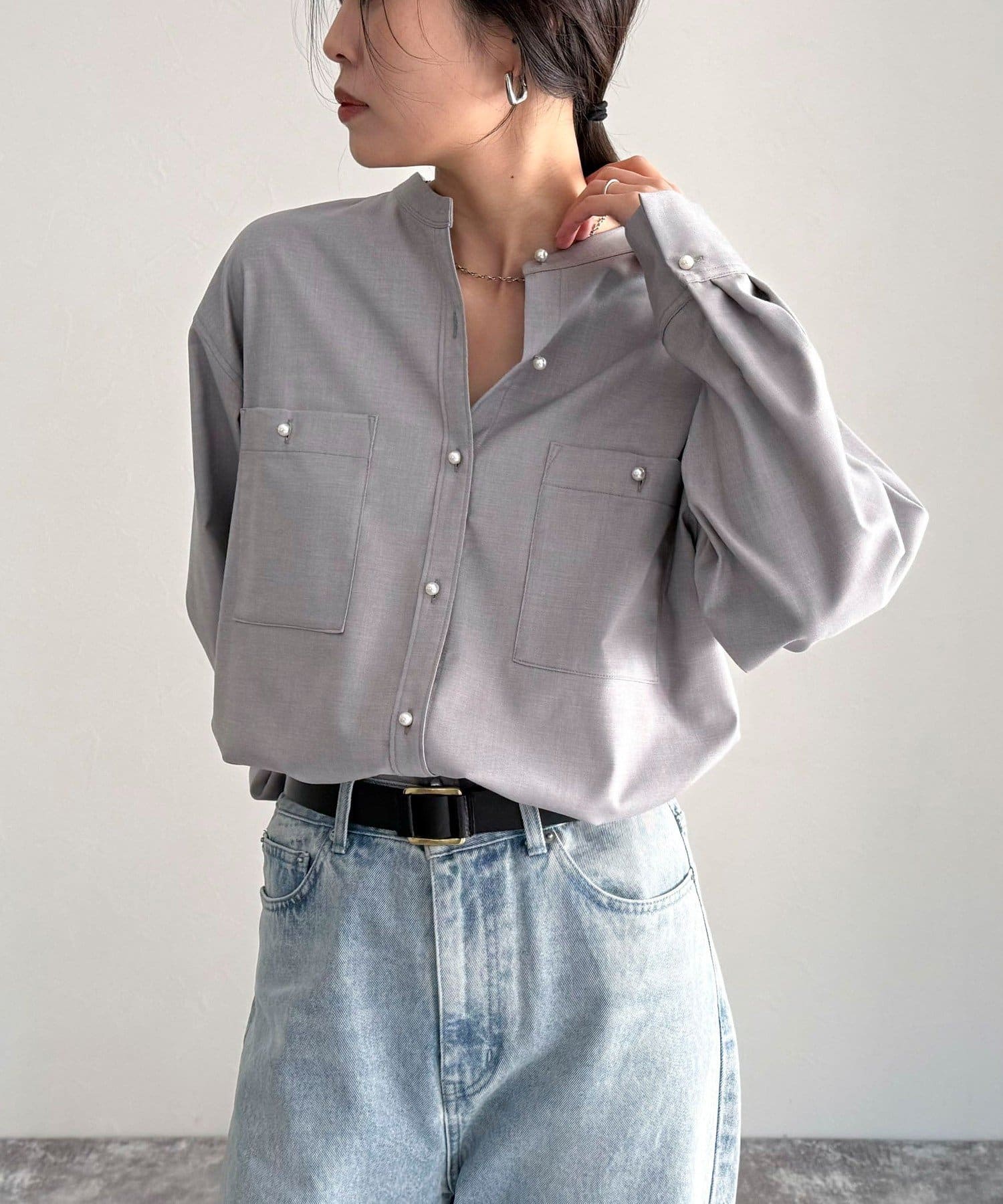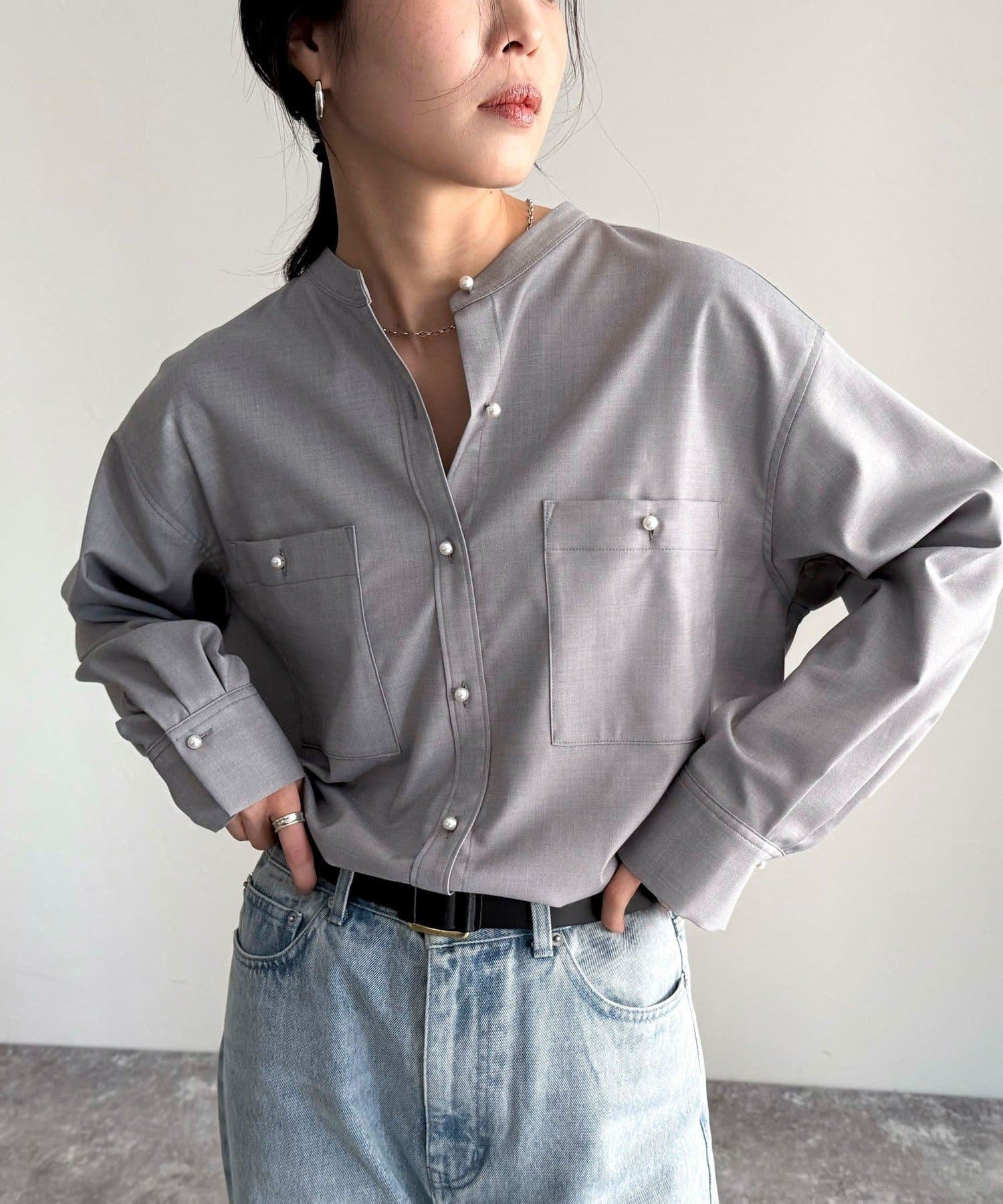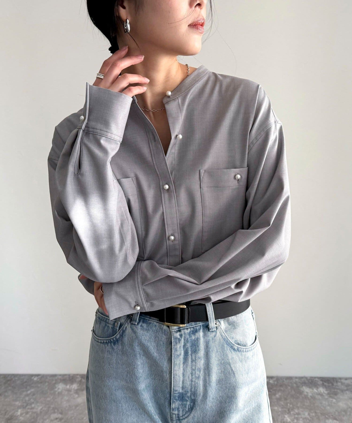 TOP > FREDY & GLOSTER > レディース > トップス > シャツ/ブラウス(ボタン) > 《セットアップ対応》TRパール釦バンドカラーシャツ