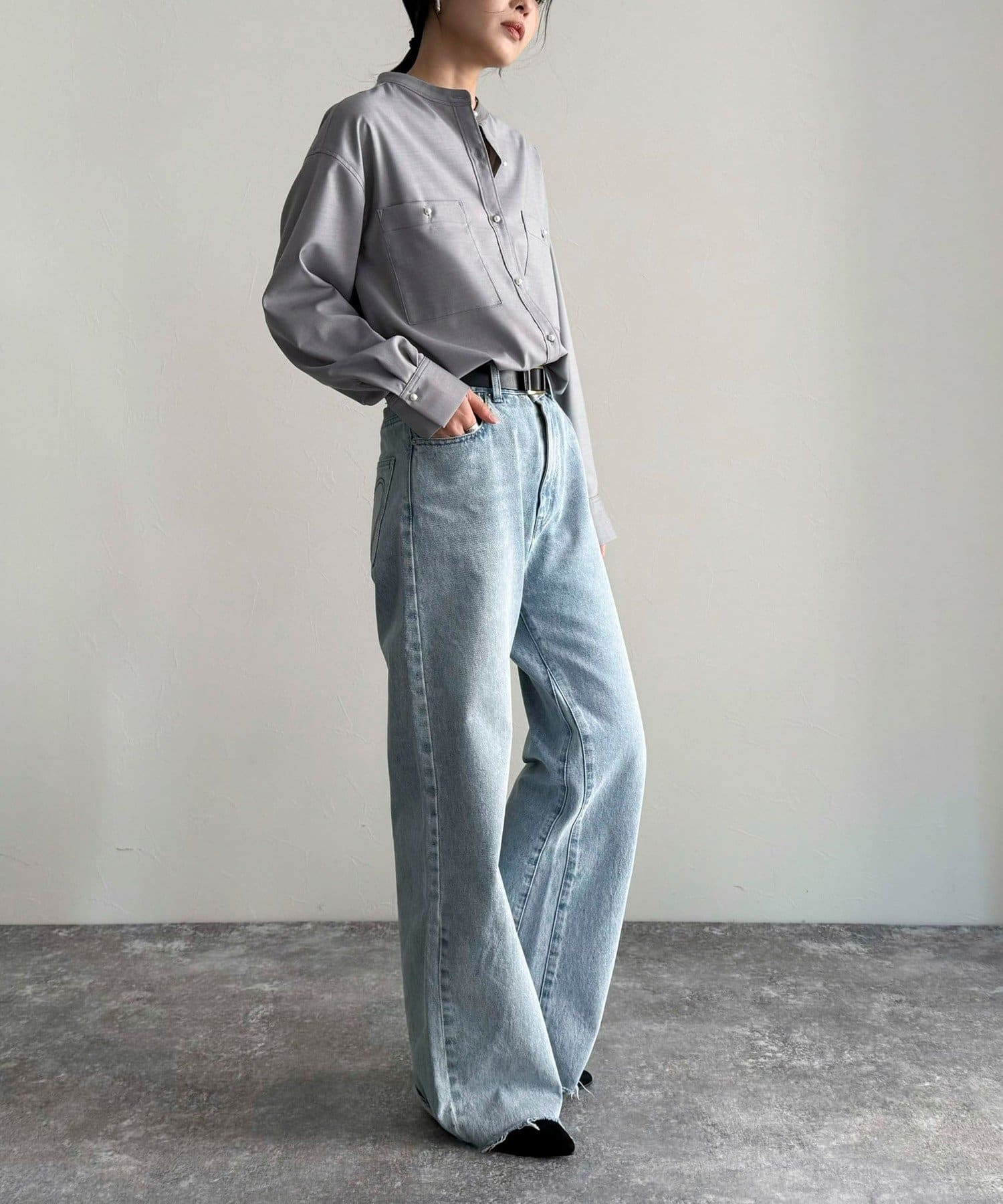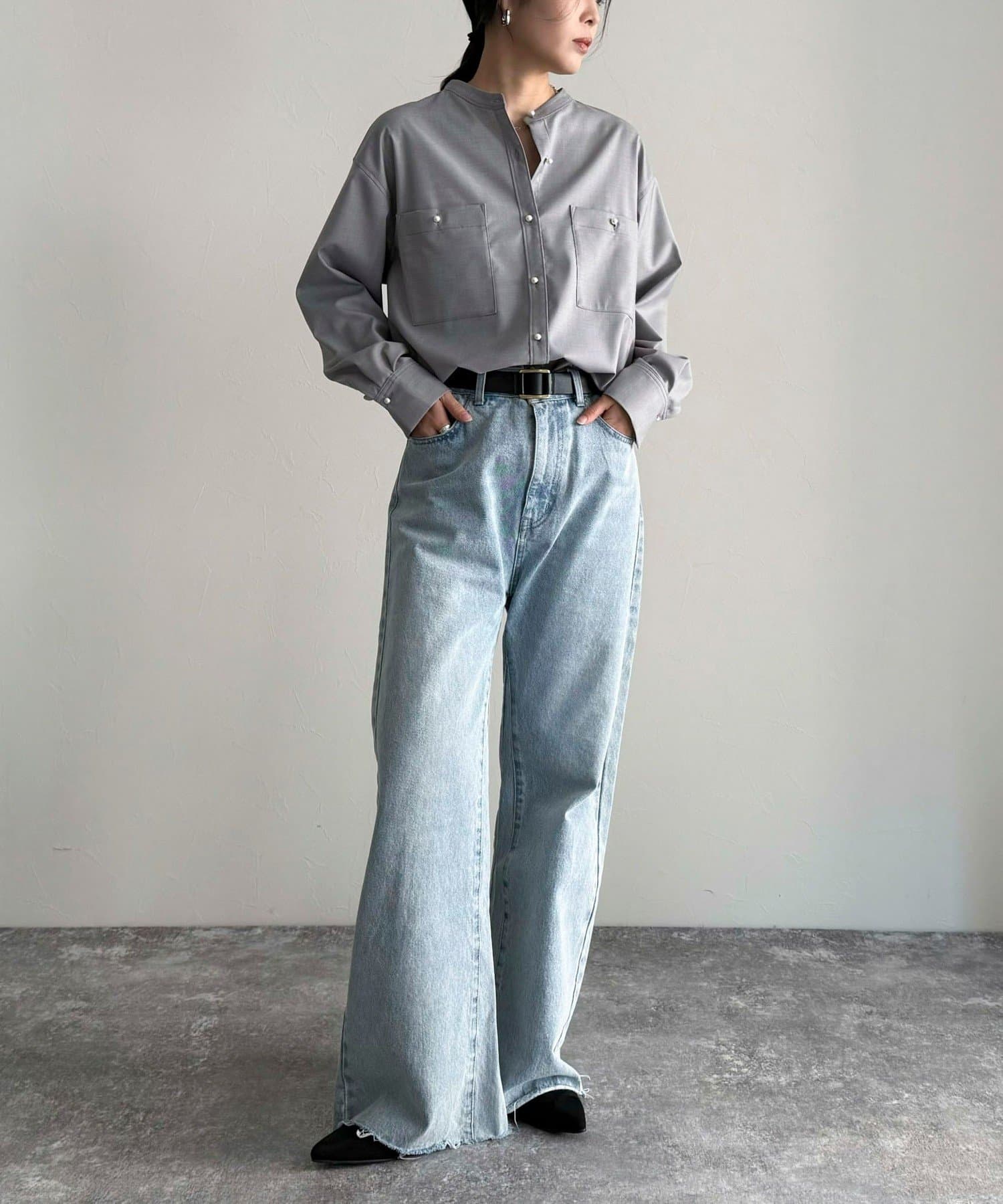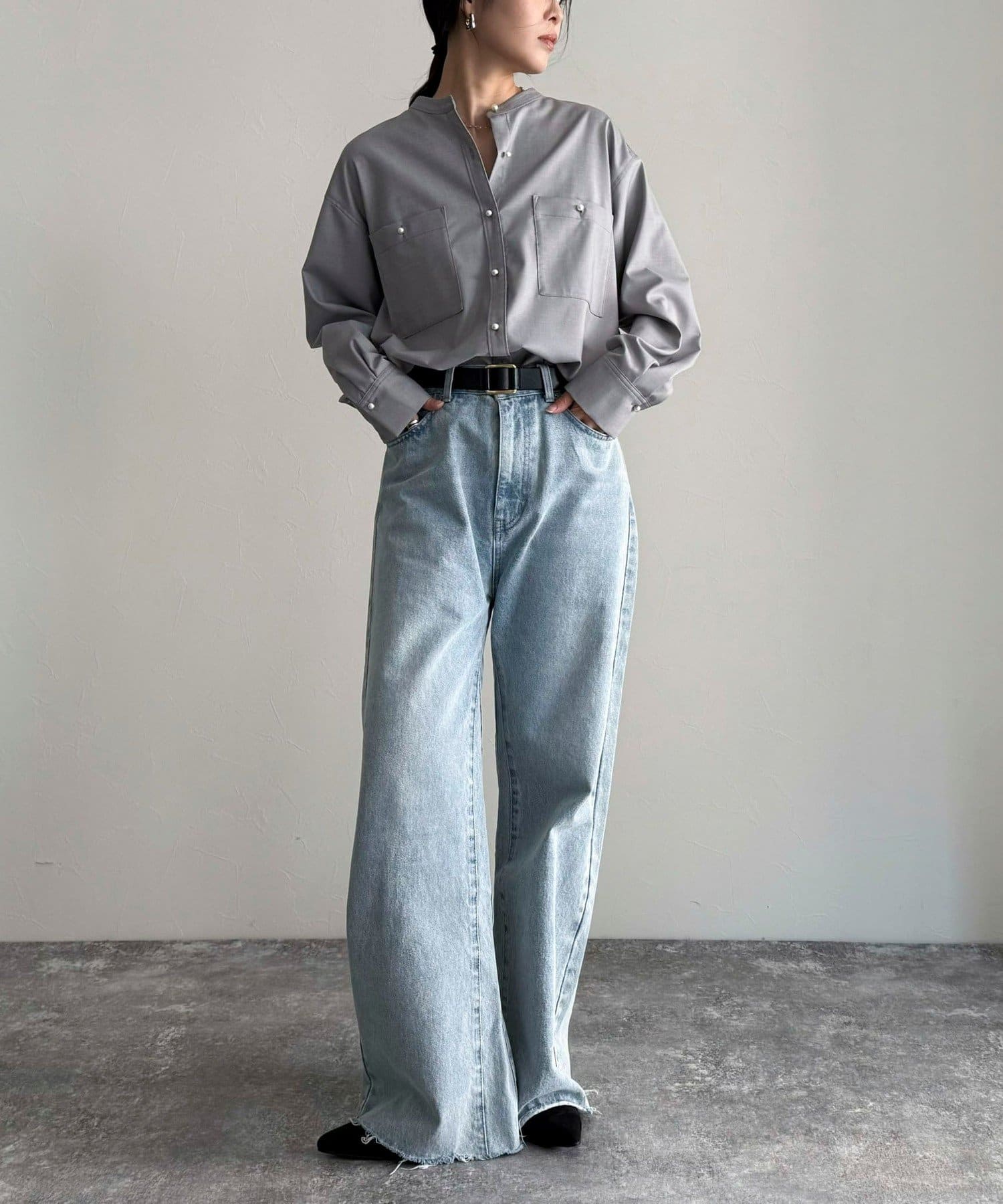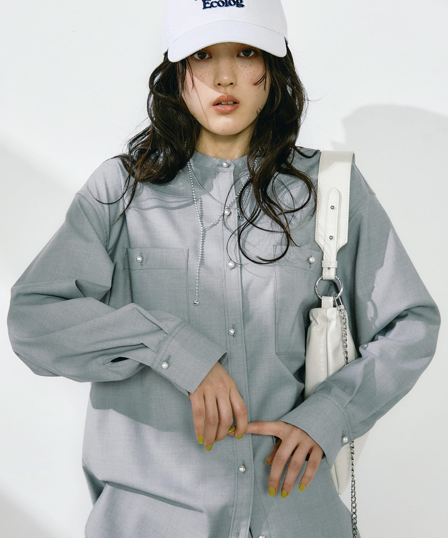 TOP > FREDY & GLOSTER > レディース > トップス > シャツ/ブラウス(ボタン) > 《セットアップ対応》TRパール釦バンドカラーシャツ