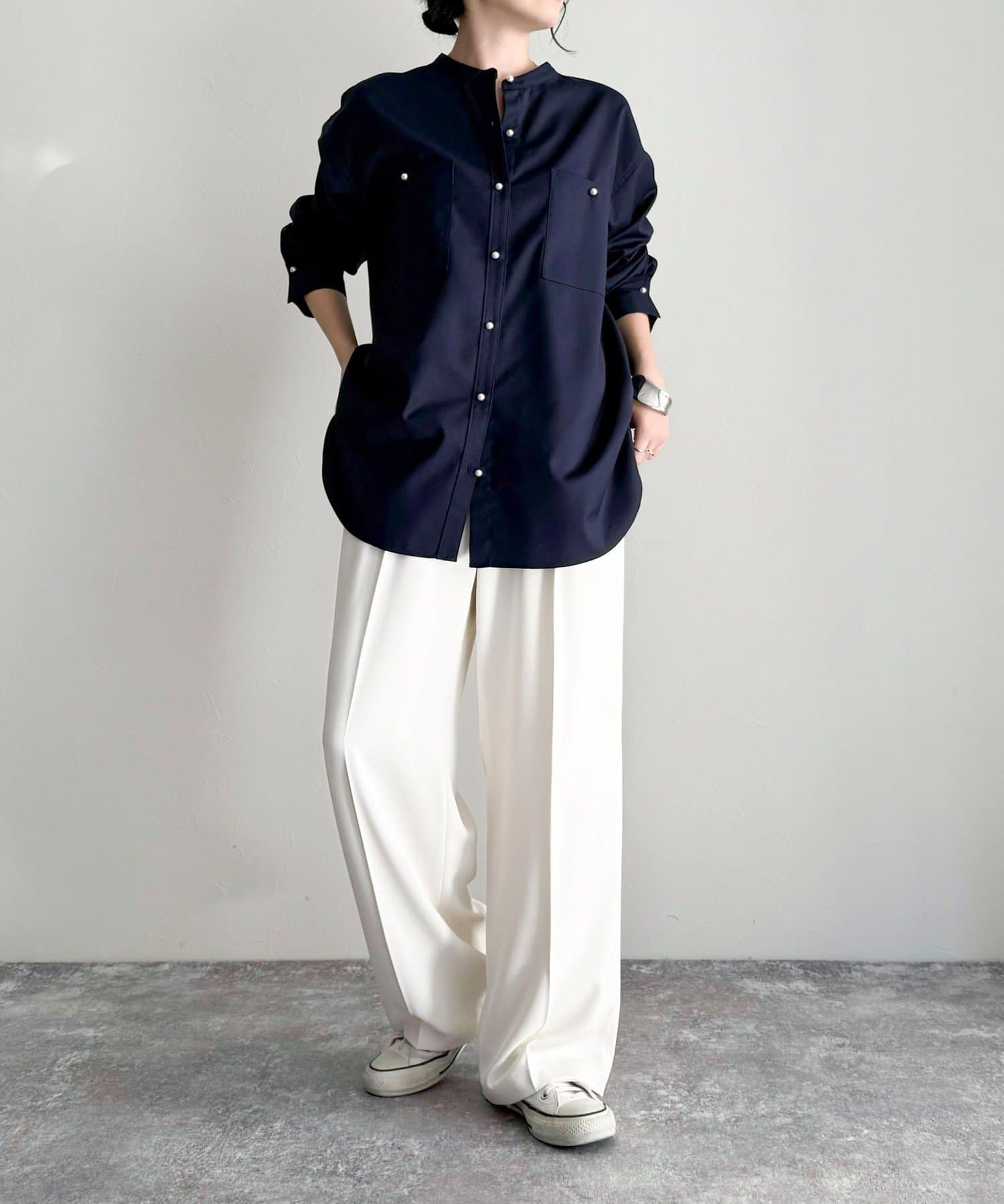 《セットアップ対応》TRパール釦バンドカラーシャツ