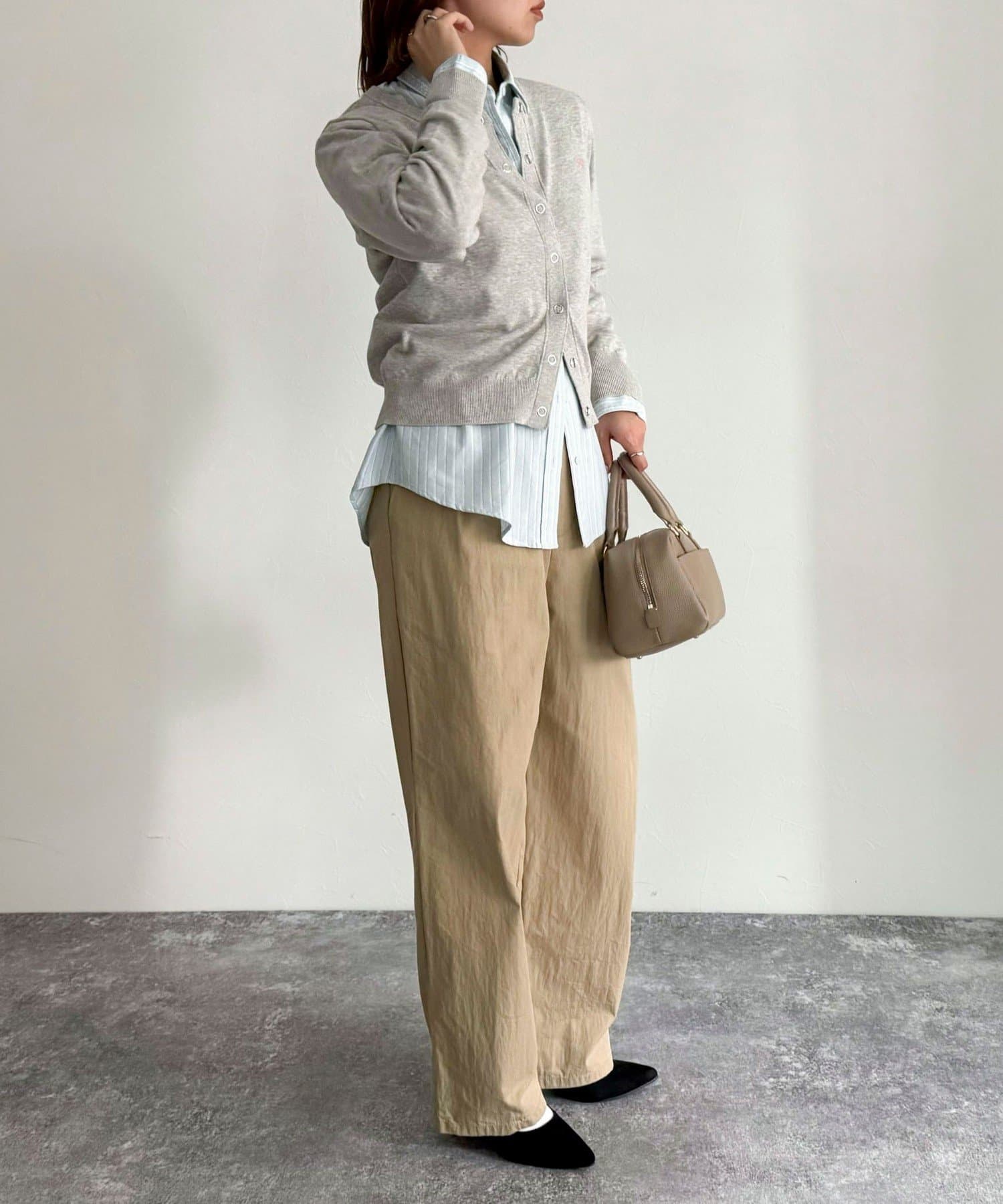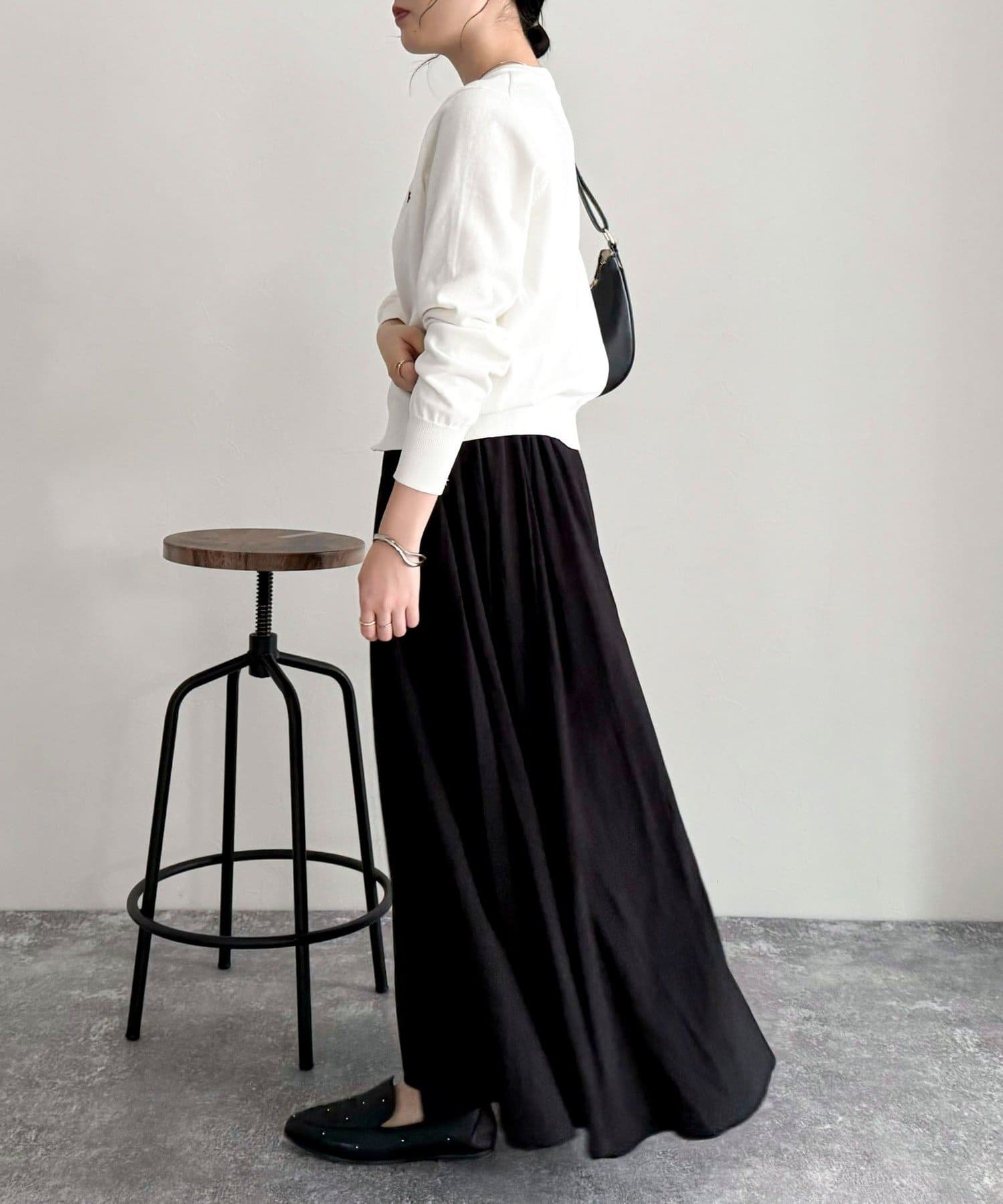 ・すっきりとしたシルエットなので、ボリュームのあるボトムスとも相性抜群です