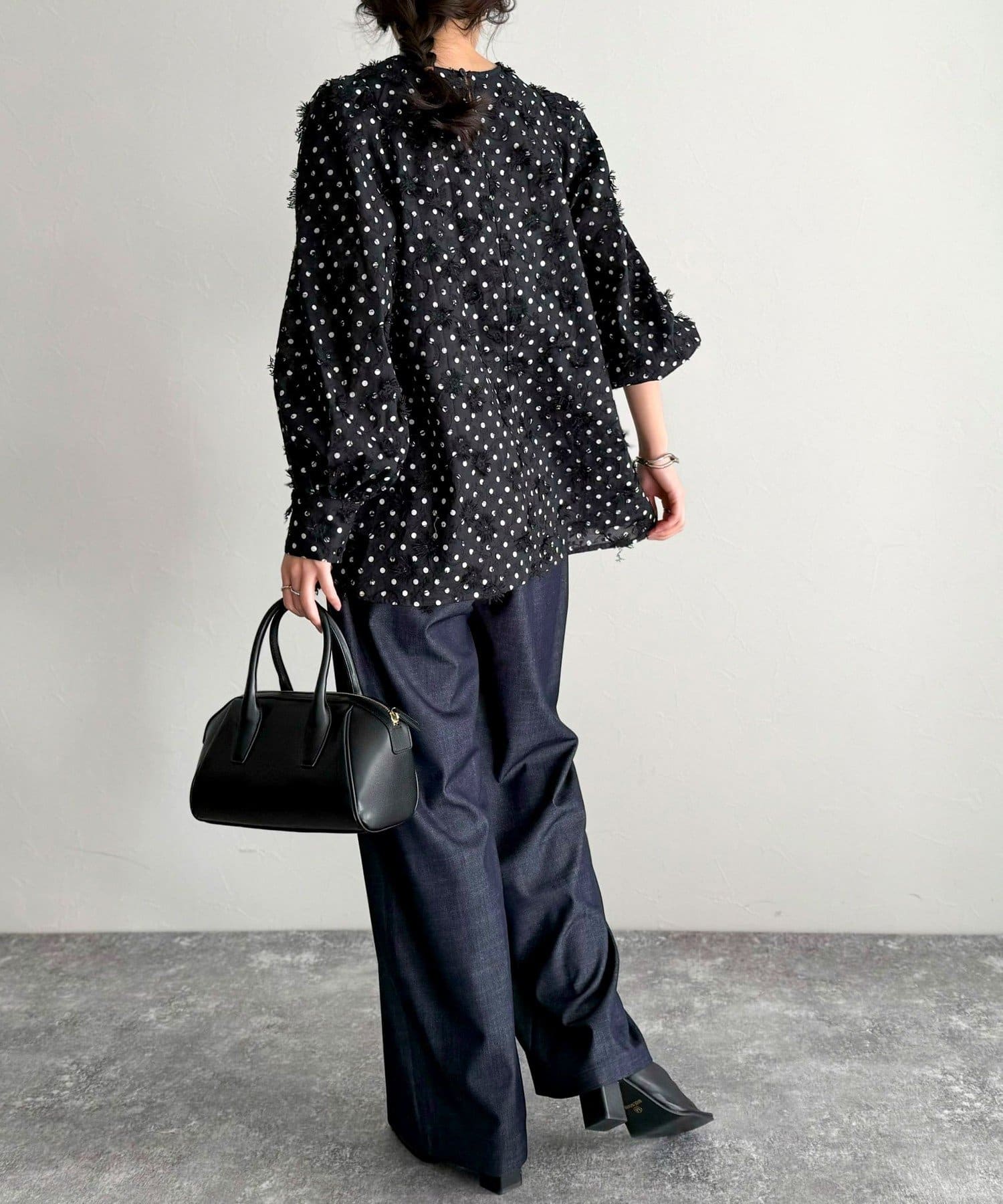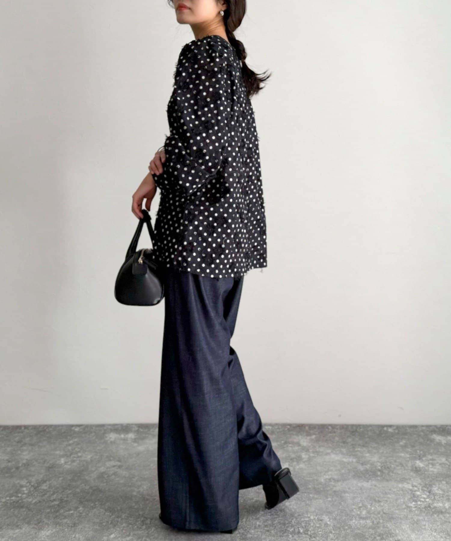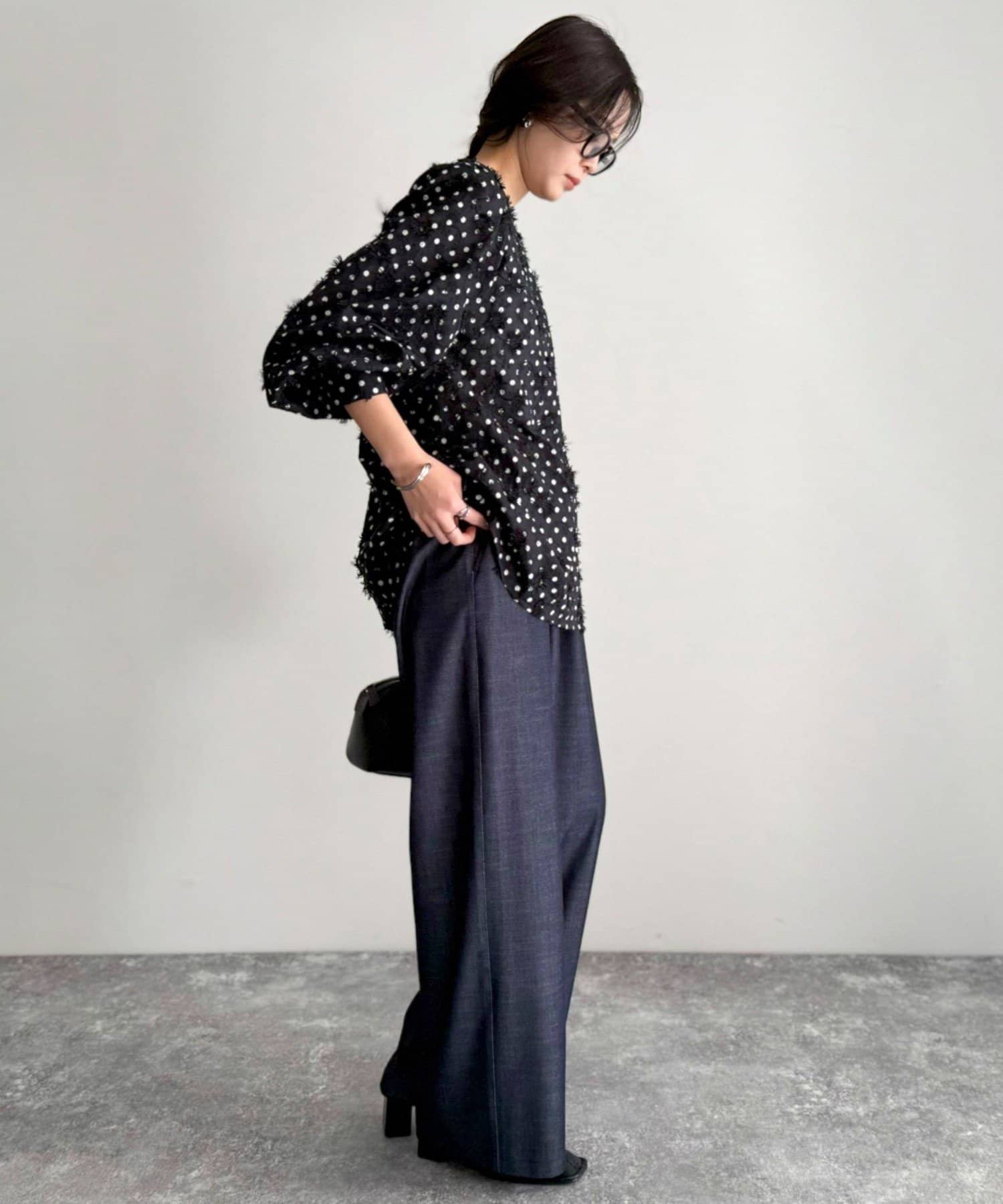 ・シンプルにニットやシャツに合わせたり、フェミニンなブラウスと合わせてバランスをとったコーデもオススメです