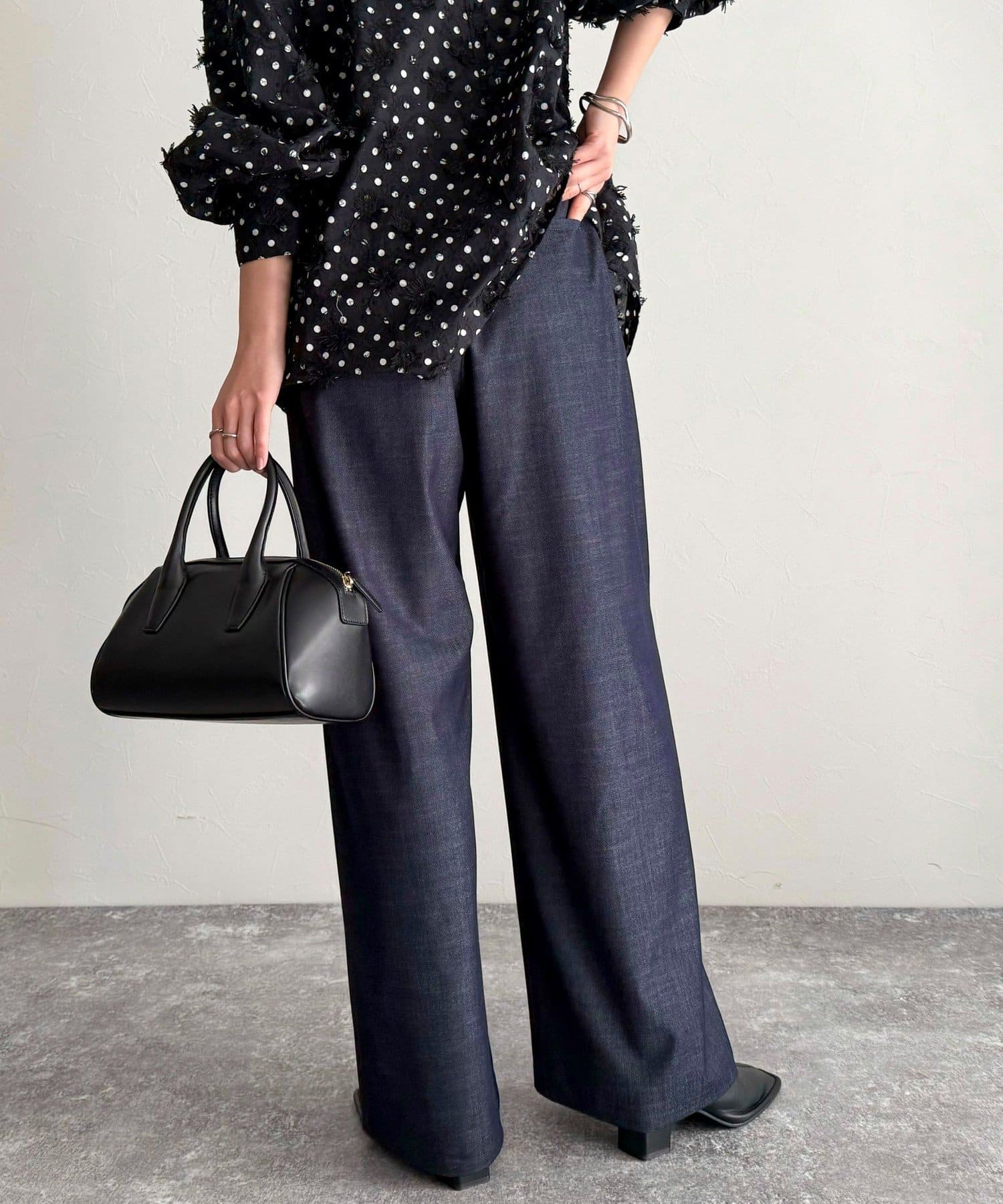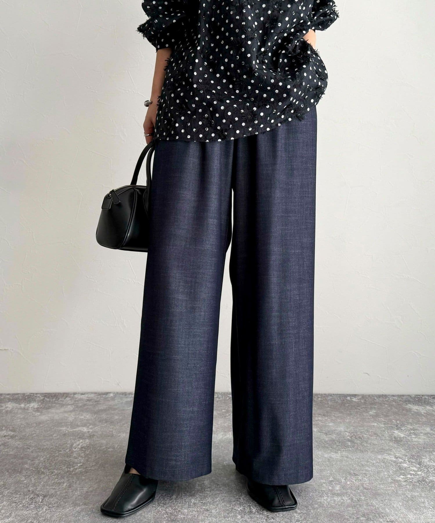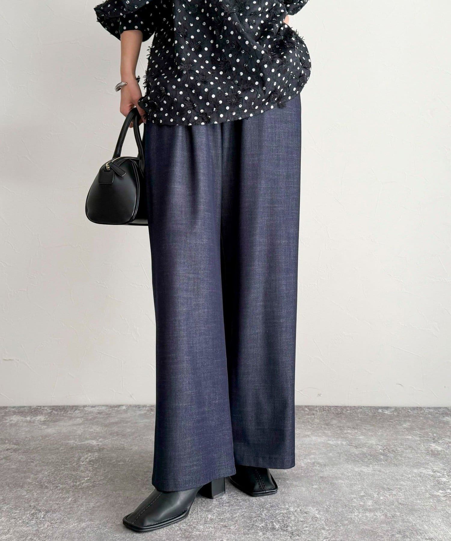 カジュアルな中にどこか品の良さが漂うデニムライクイージーパンツ