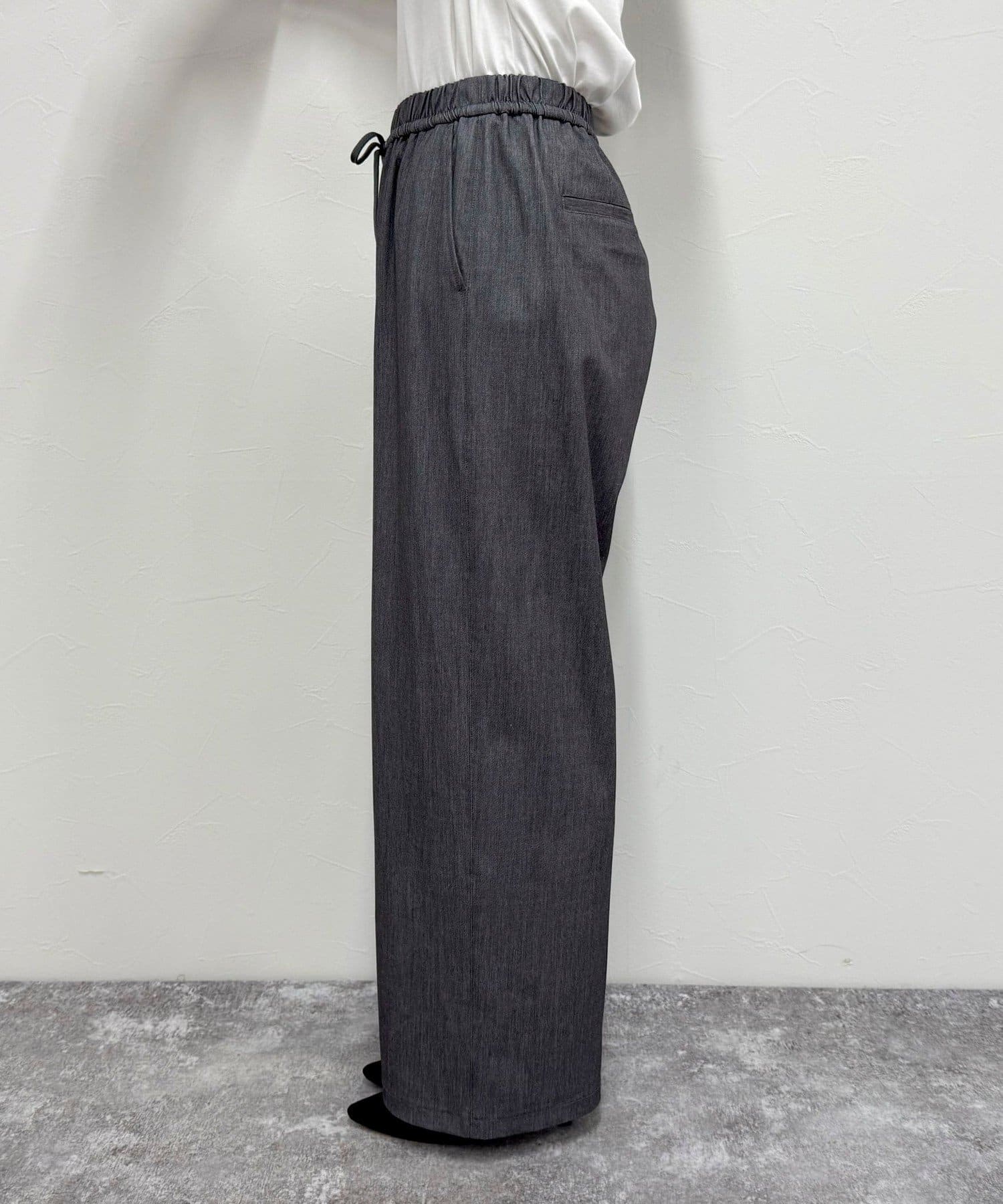 ・リラックス感のある履き心地が魅力的なシャンブレーデニムライクイージーパンツ