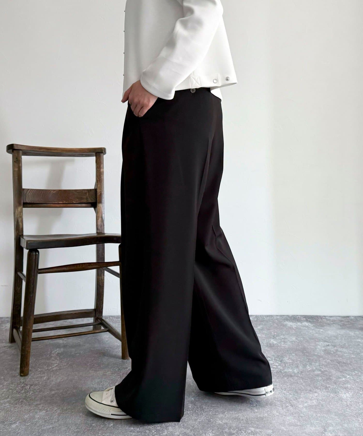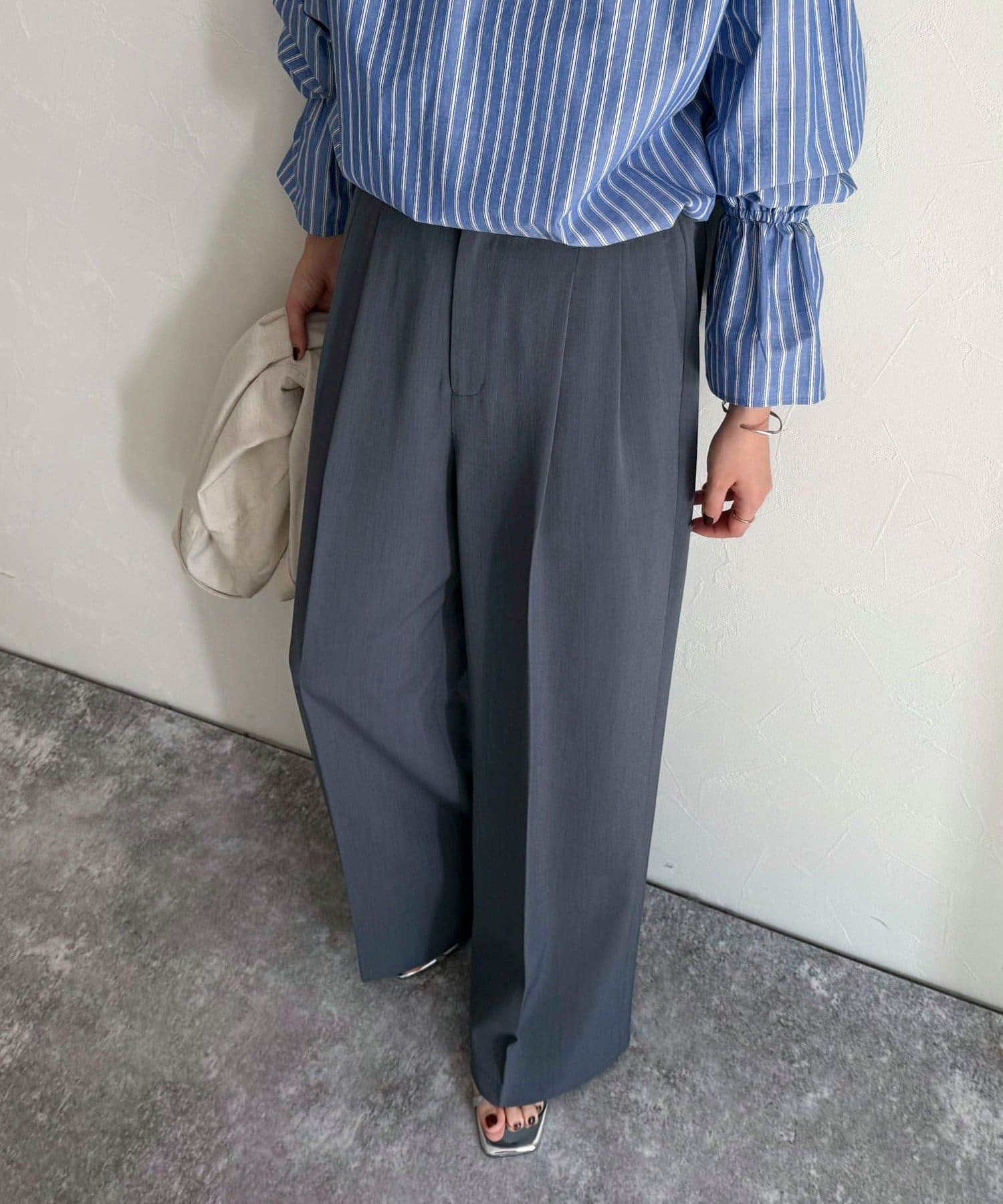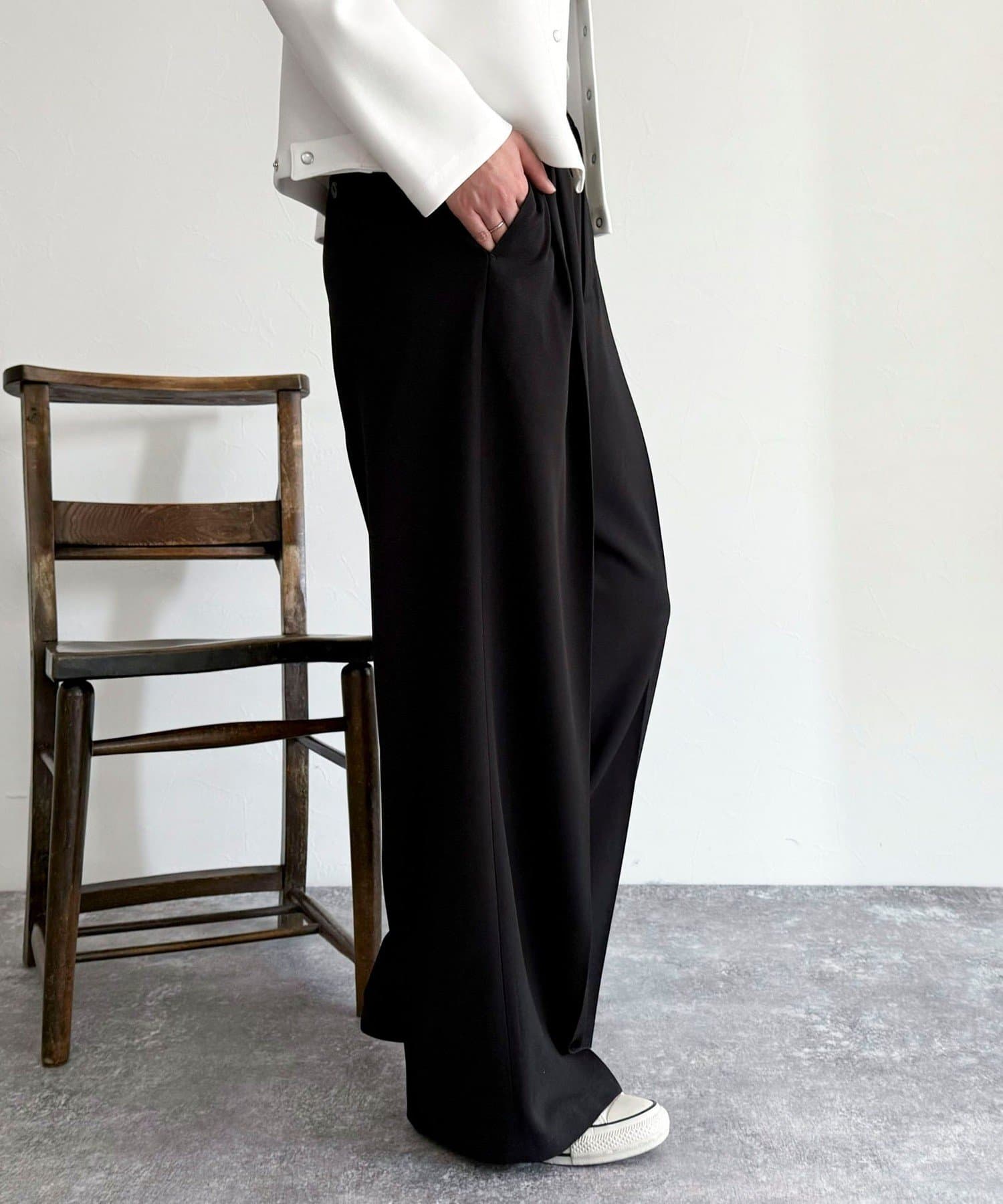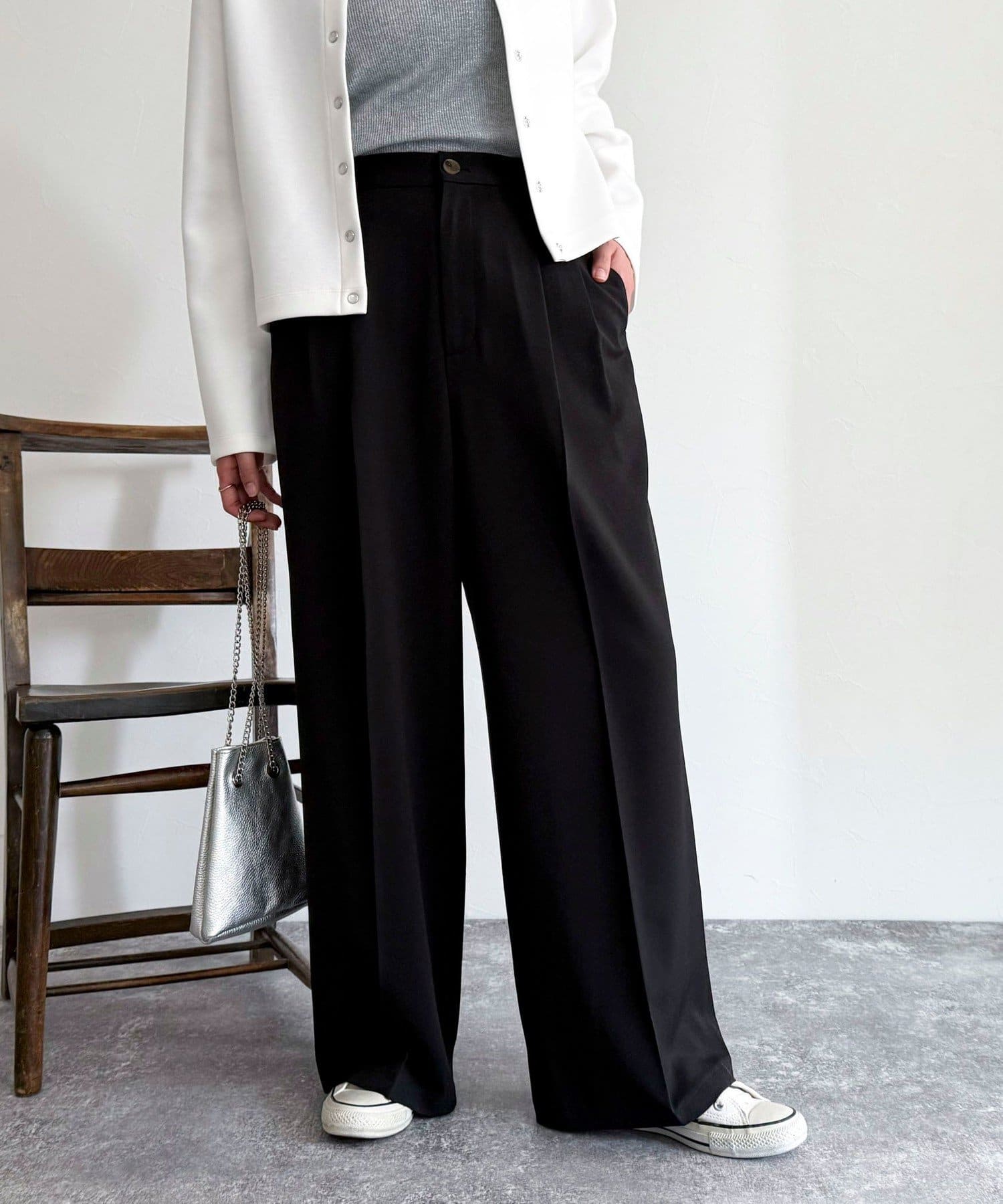 ・2タック入りのデザインですっきりとした縦長効果を着こなしにプラス
