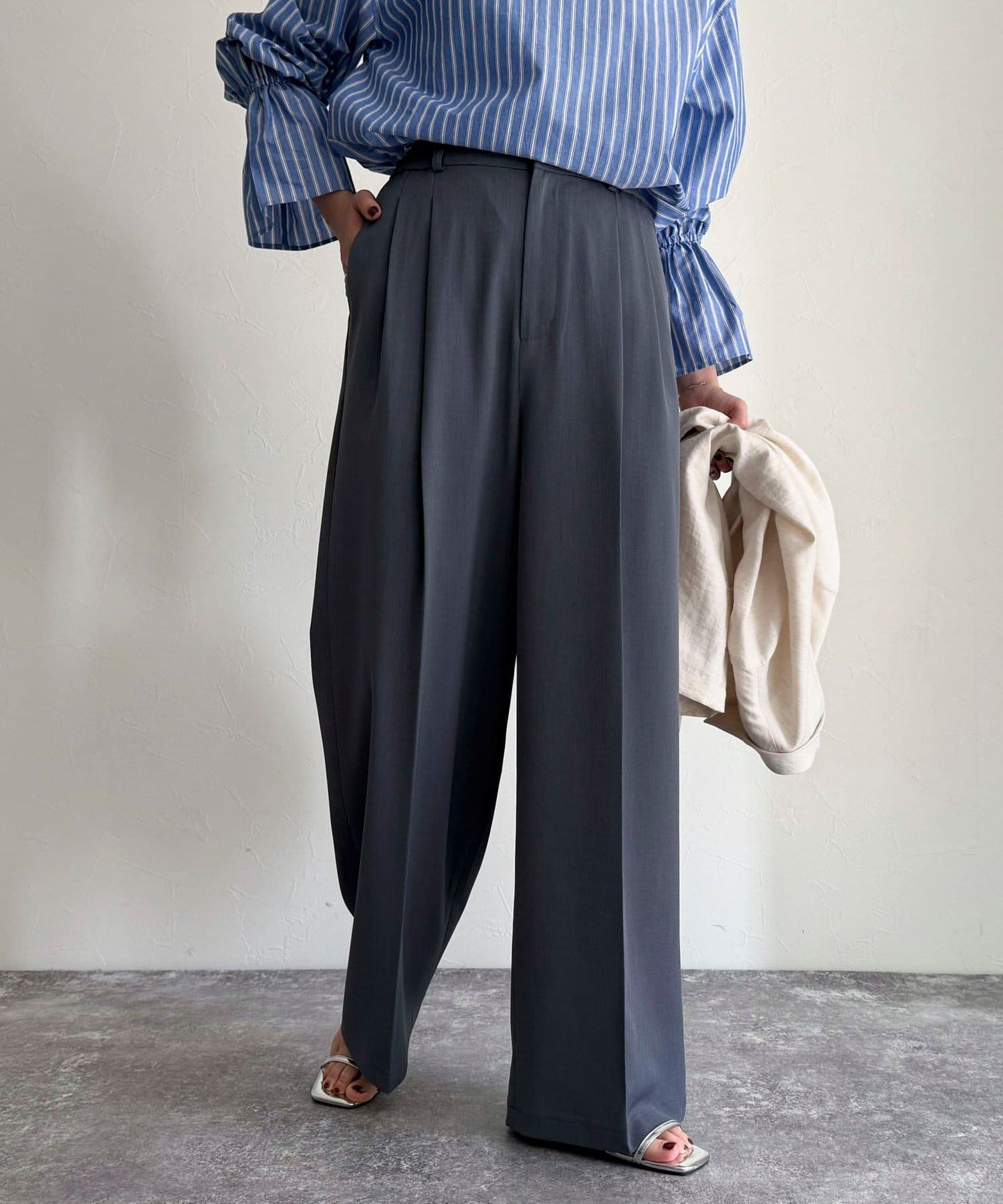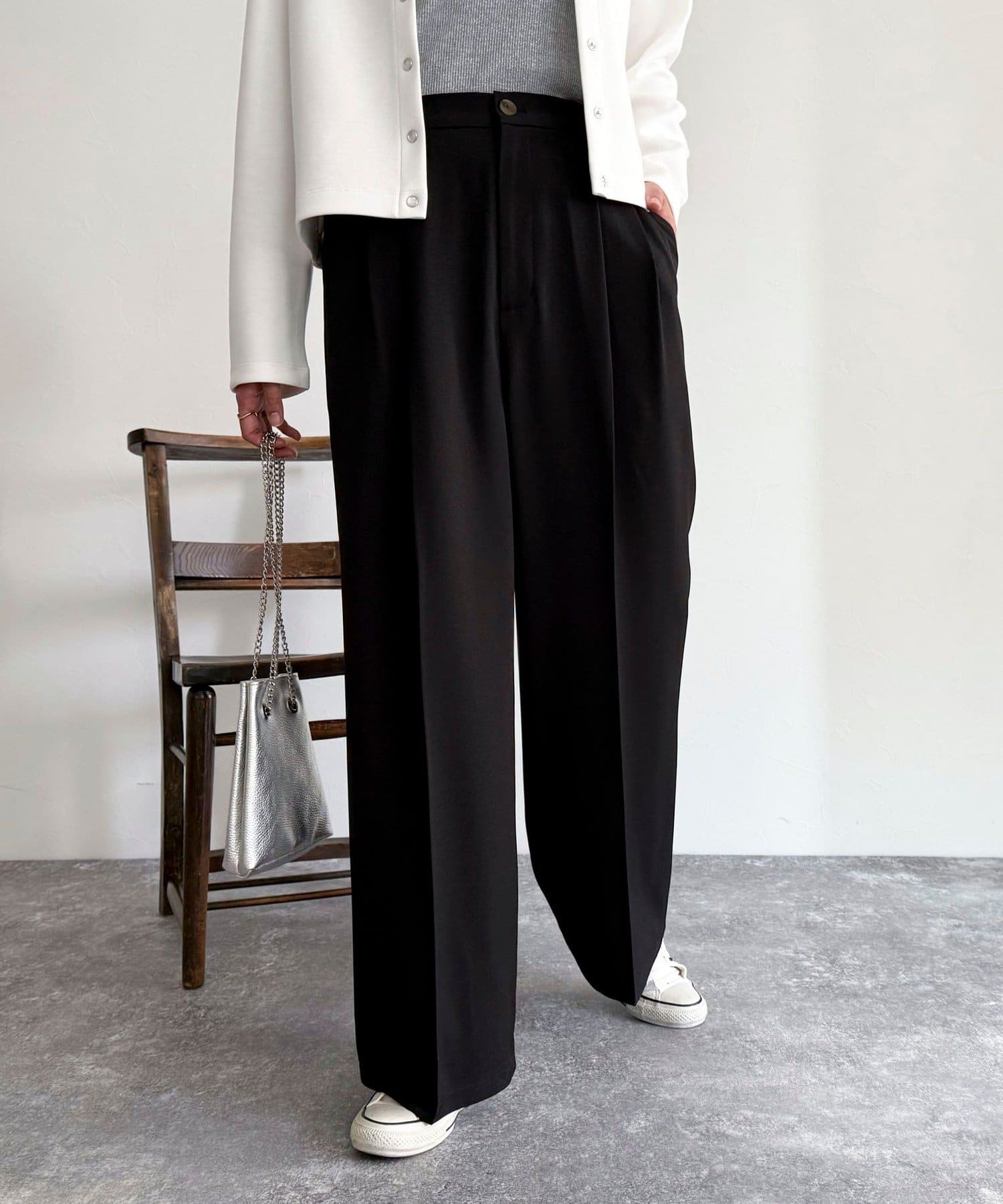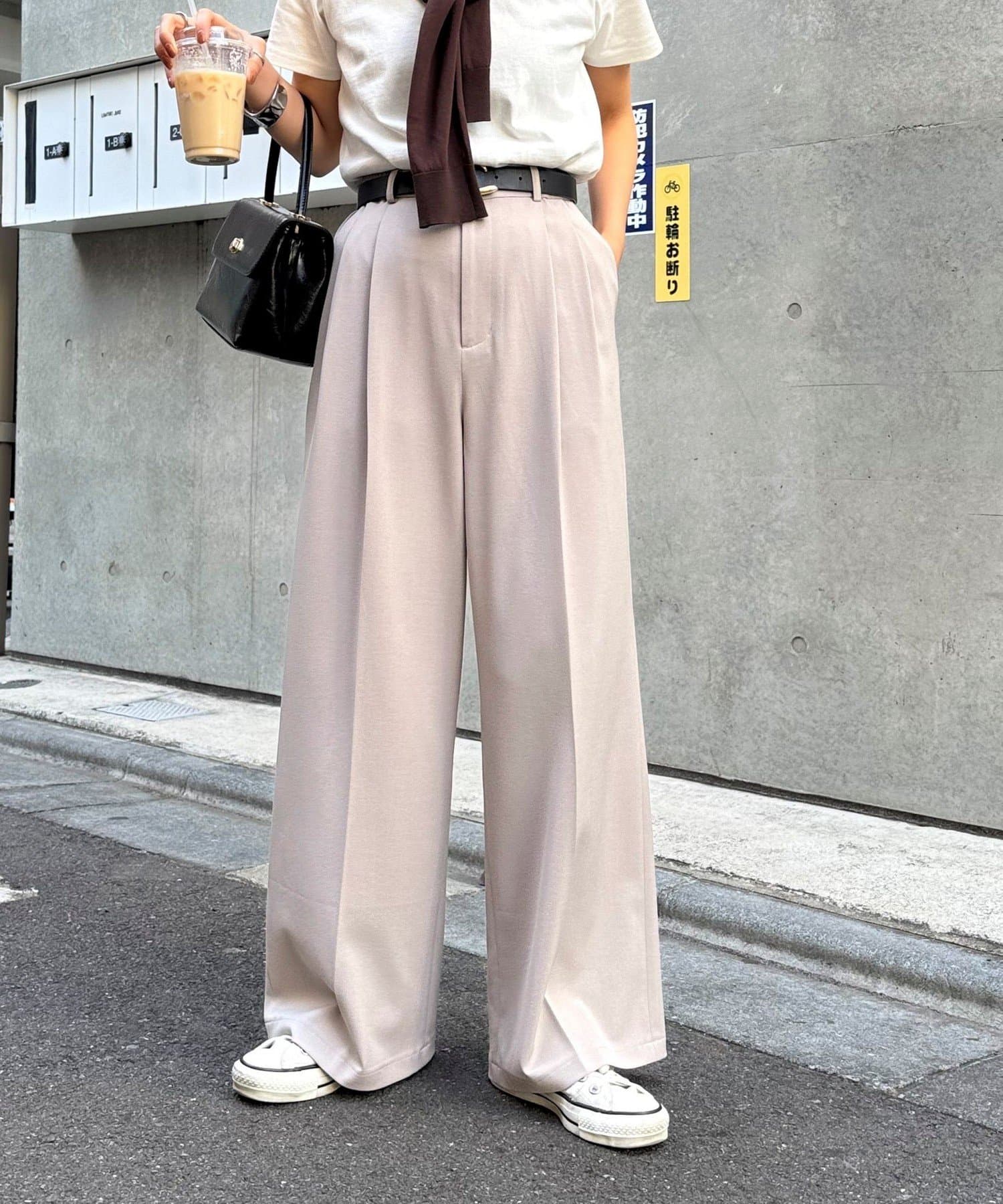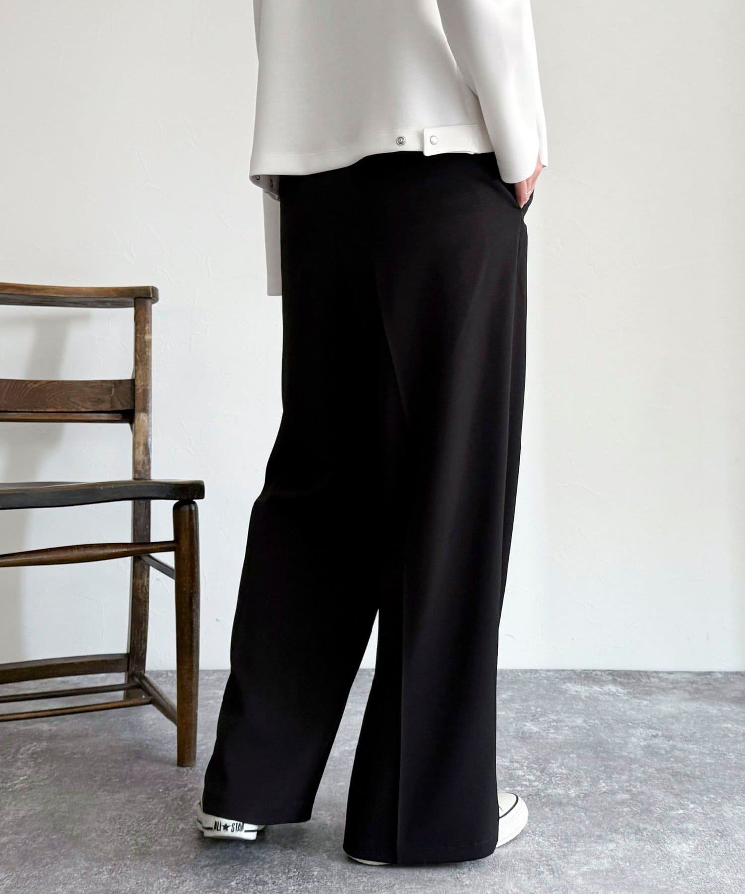 ・2タック入りのデザインですっきりとした縦長効果を着こなしにプラス