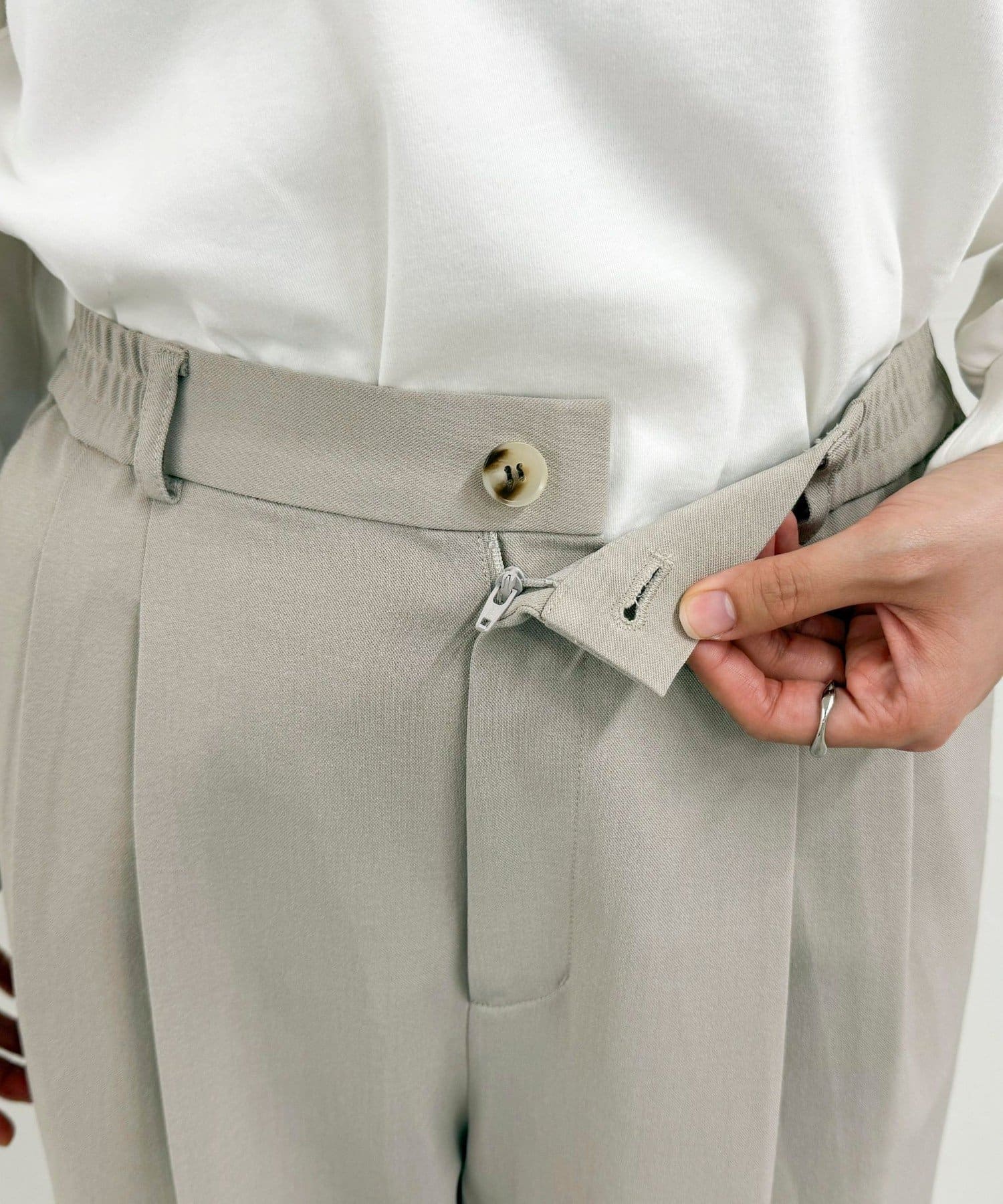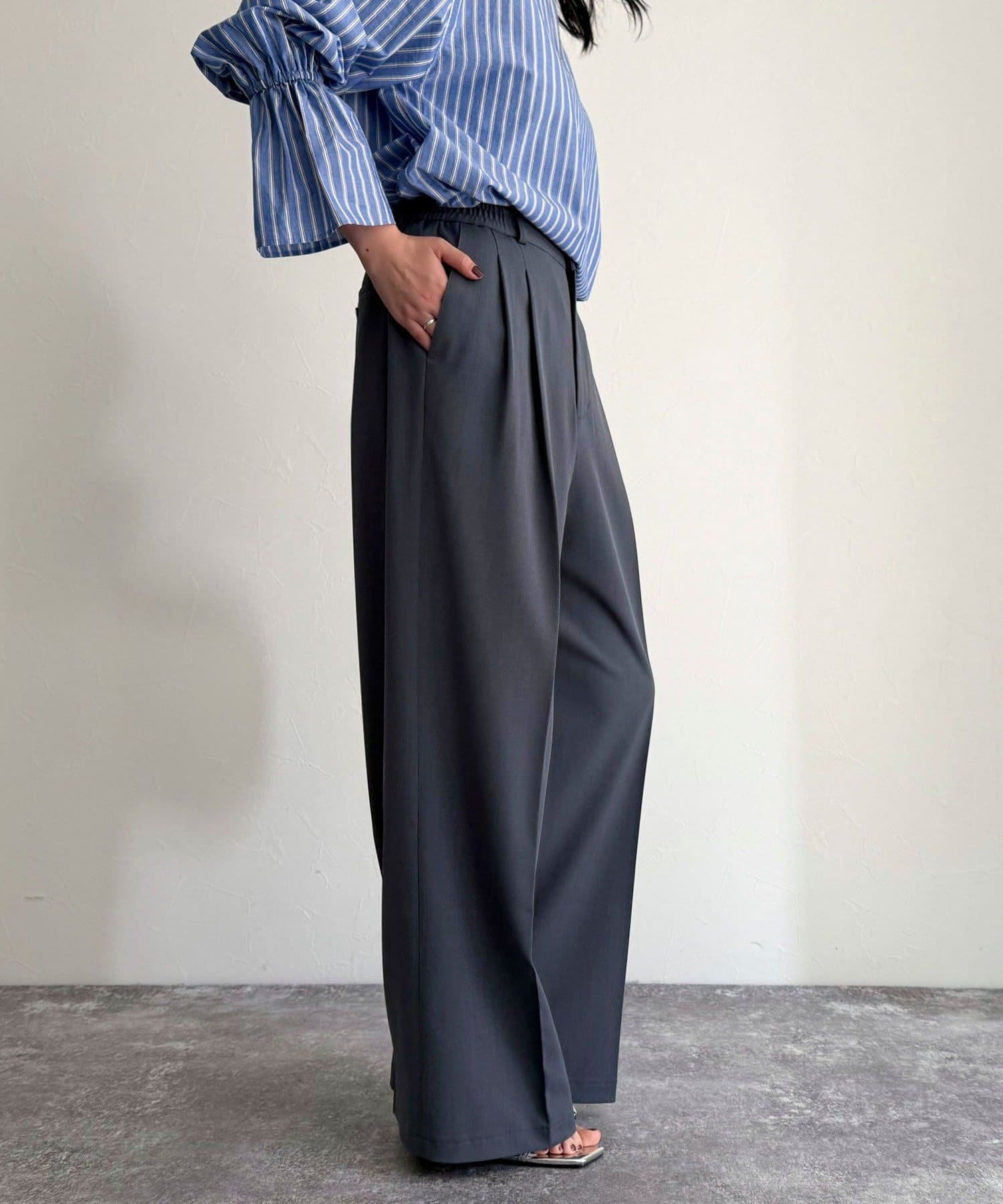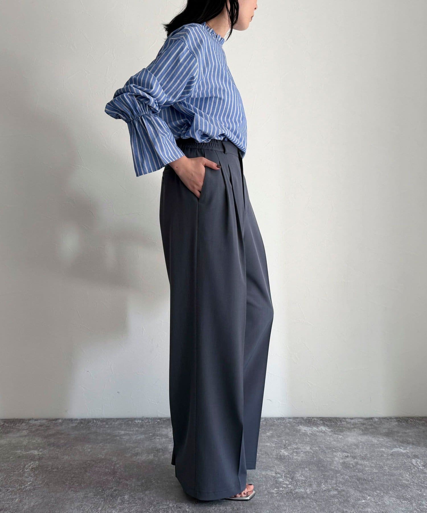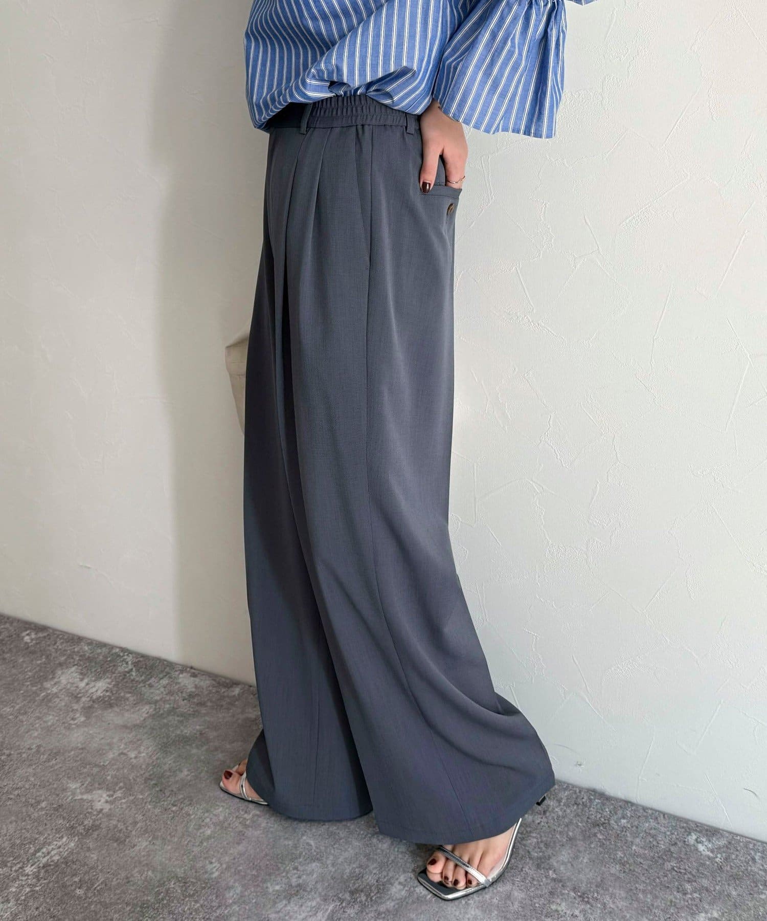 ・ウエストはスッキリ見えしつつもサイドからゴム仕様で楽な履き心地!
