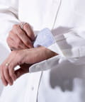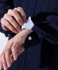 下前立てに施されたニットテープを見せることでノーネクタイでも様になりオフィスカジュアルなどにオススメです。
