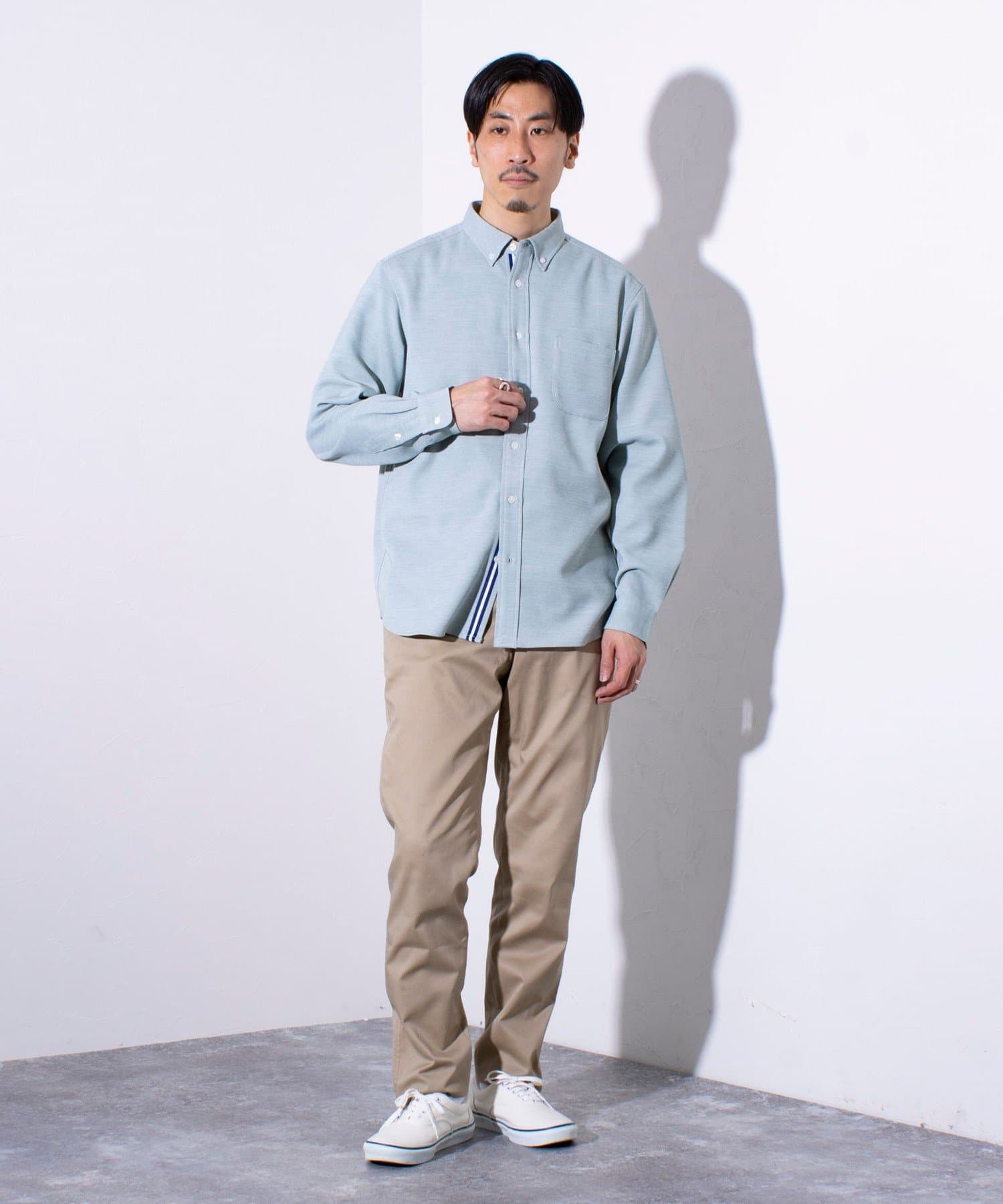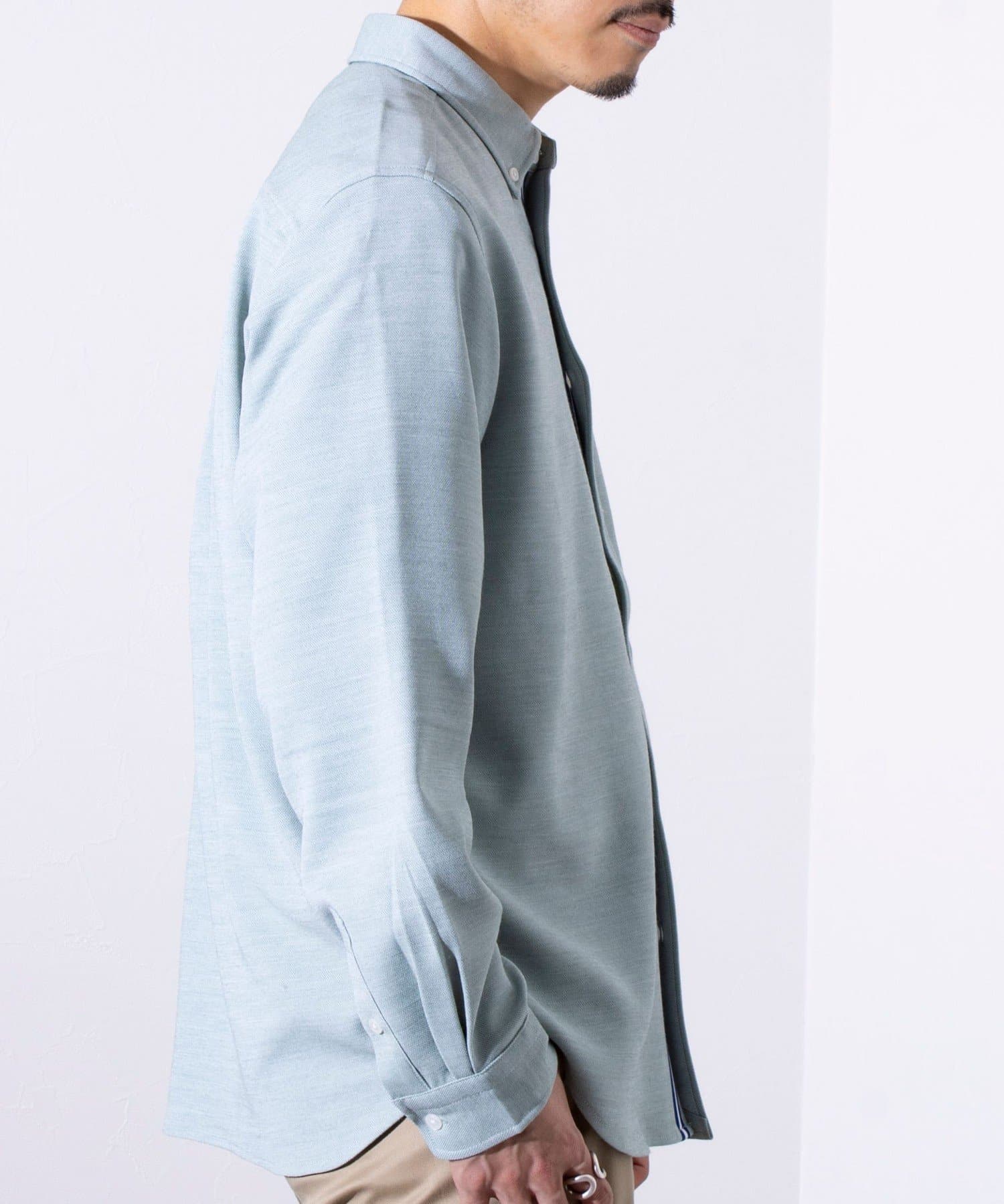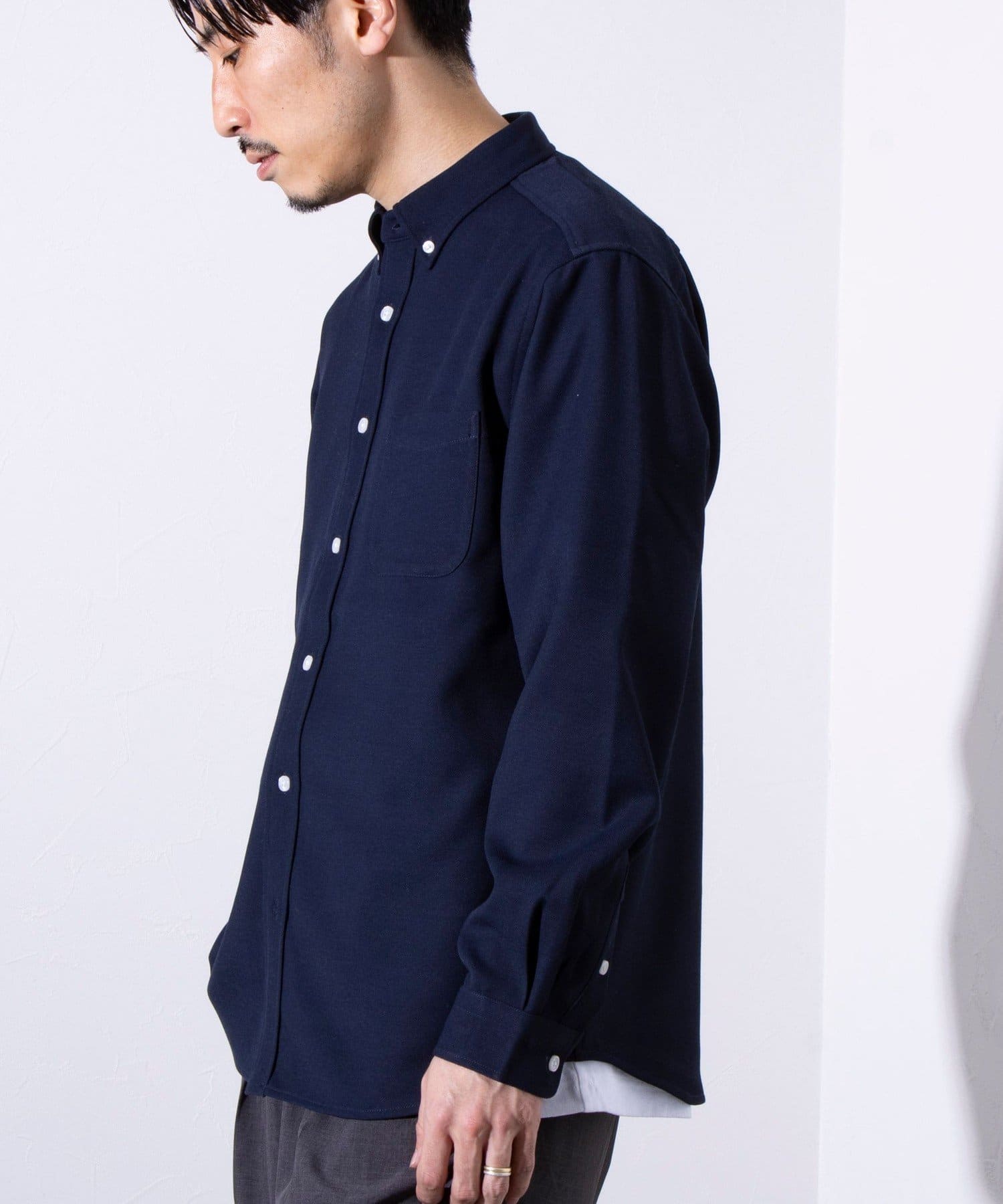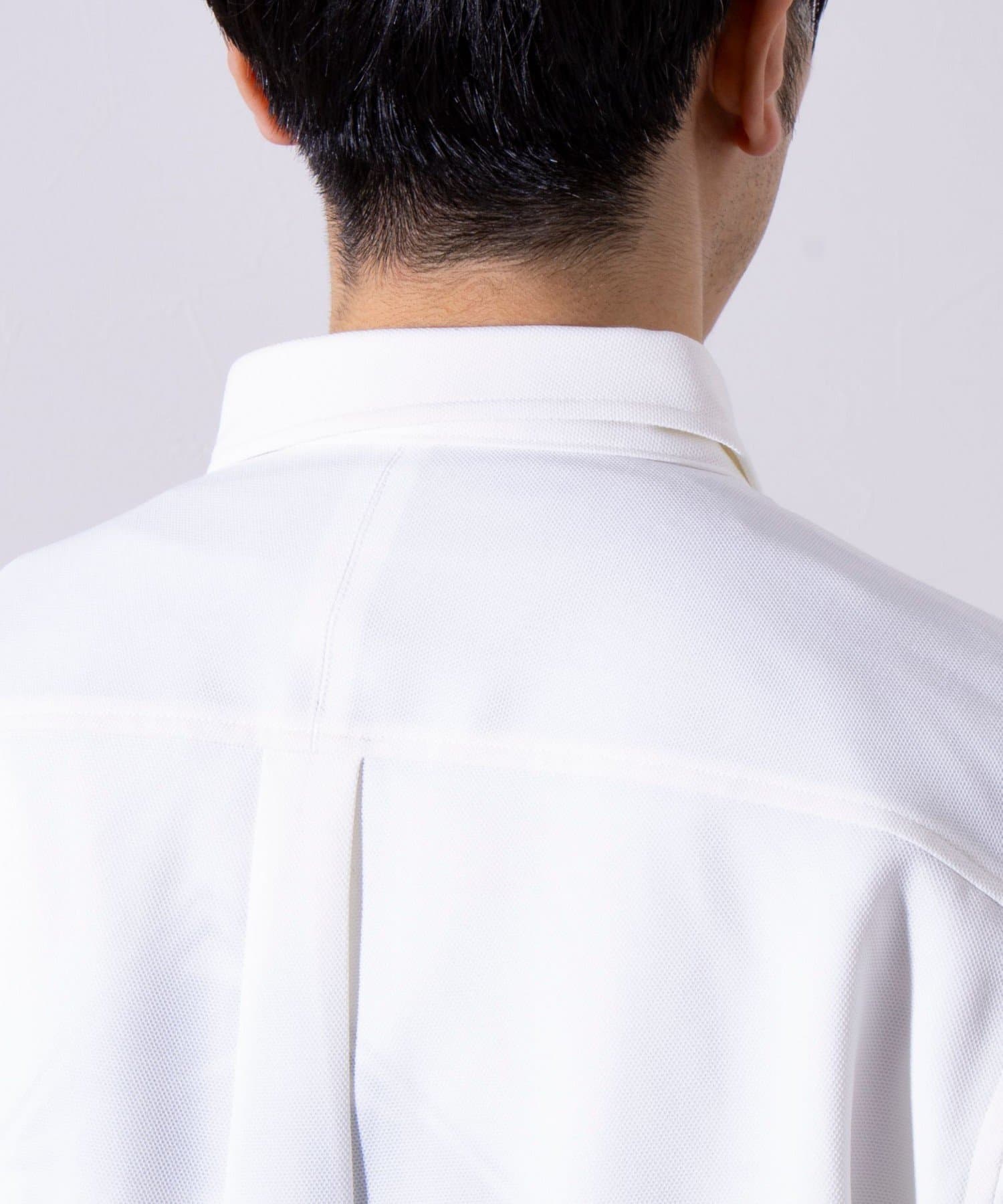 鹿の子織りのボタンダウンシャツでジャケットやカーディガンなど羽織アイテムとの相性抜群!