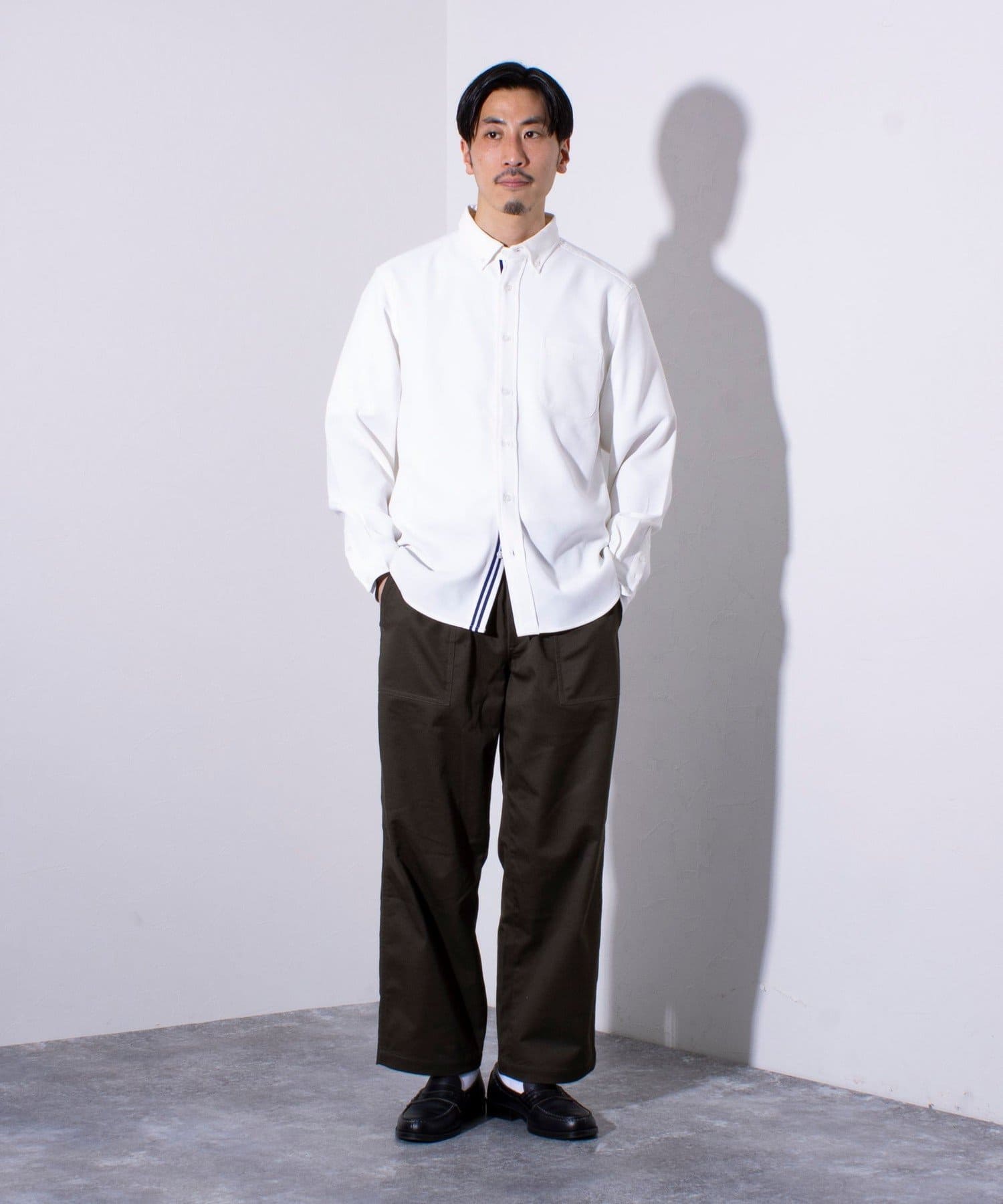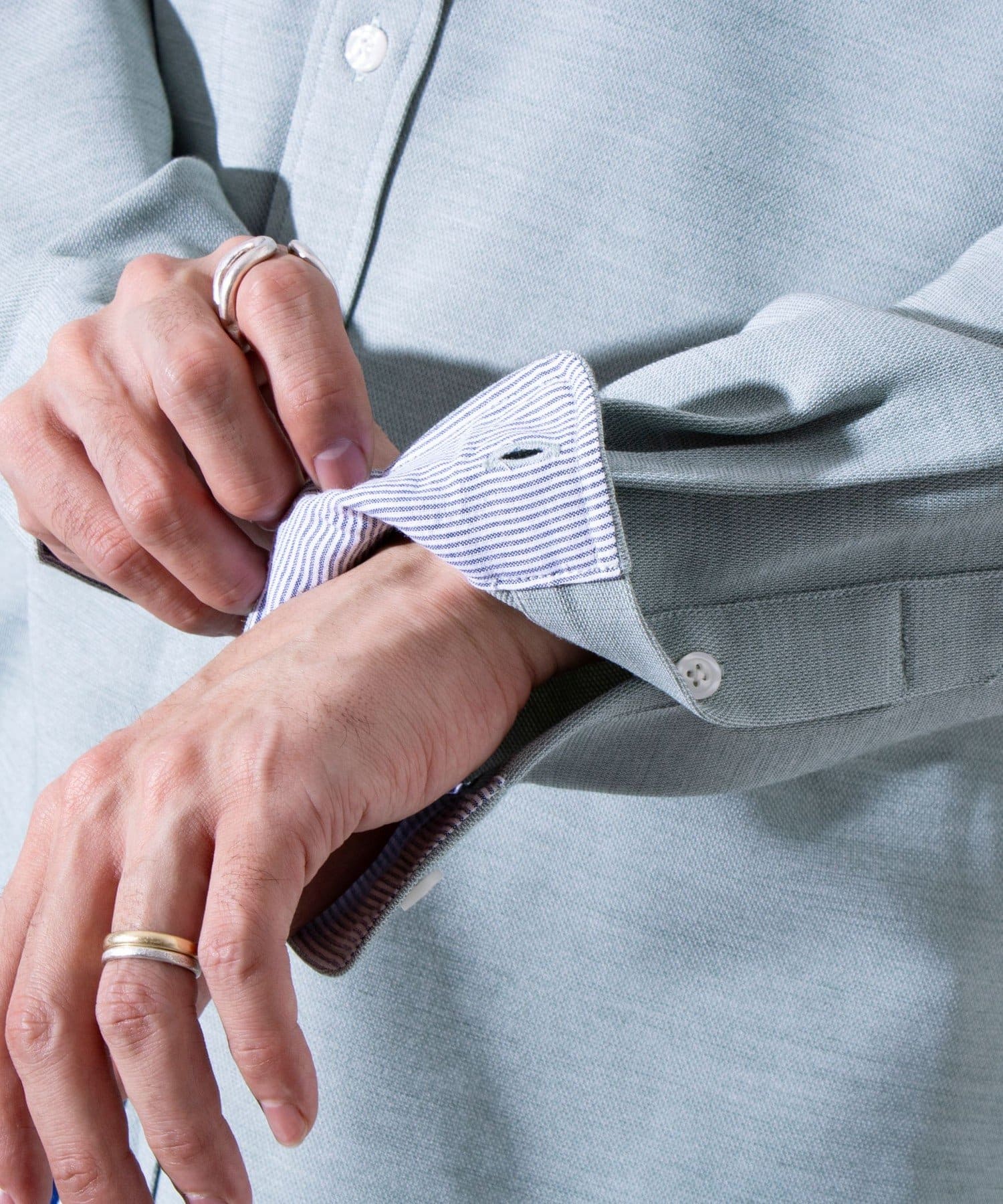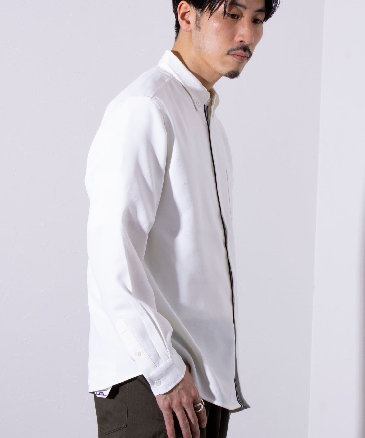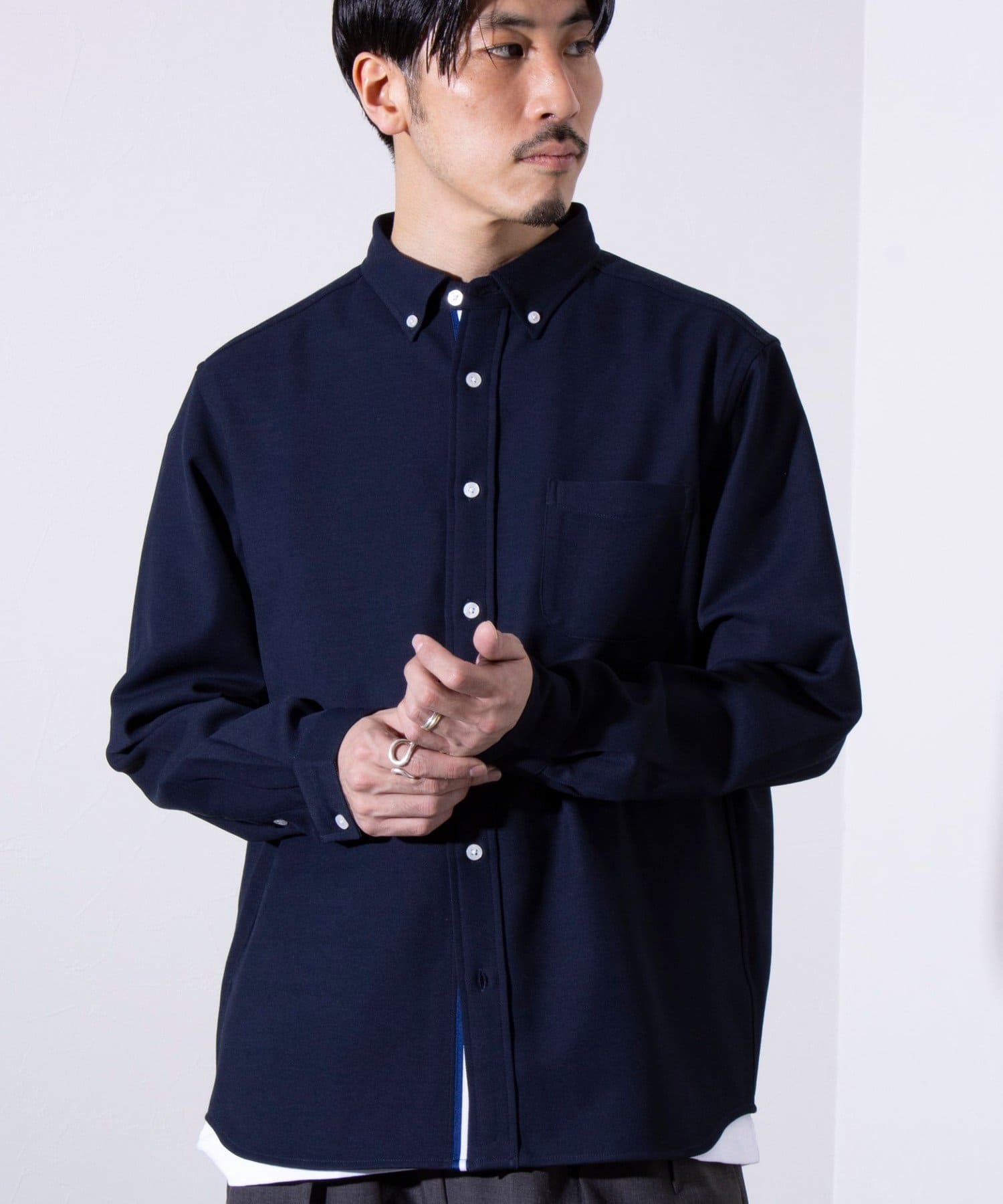 鹿の子織りのボタンダウンシャツでジャケットやカーディガンなど羽織アイテムとの相性抜群!