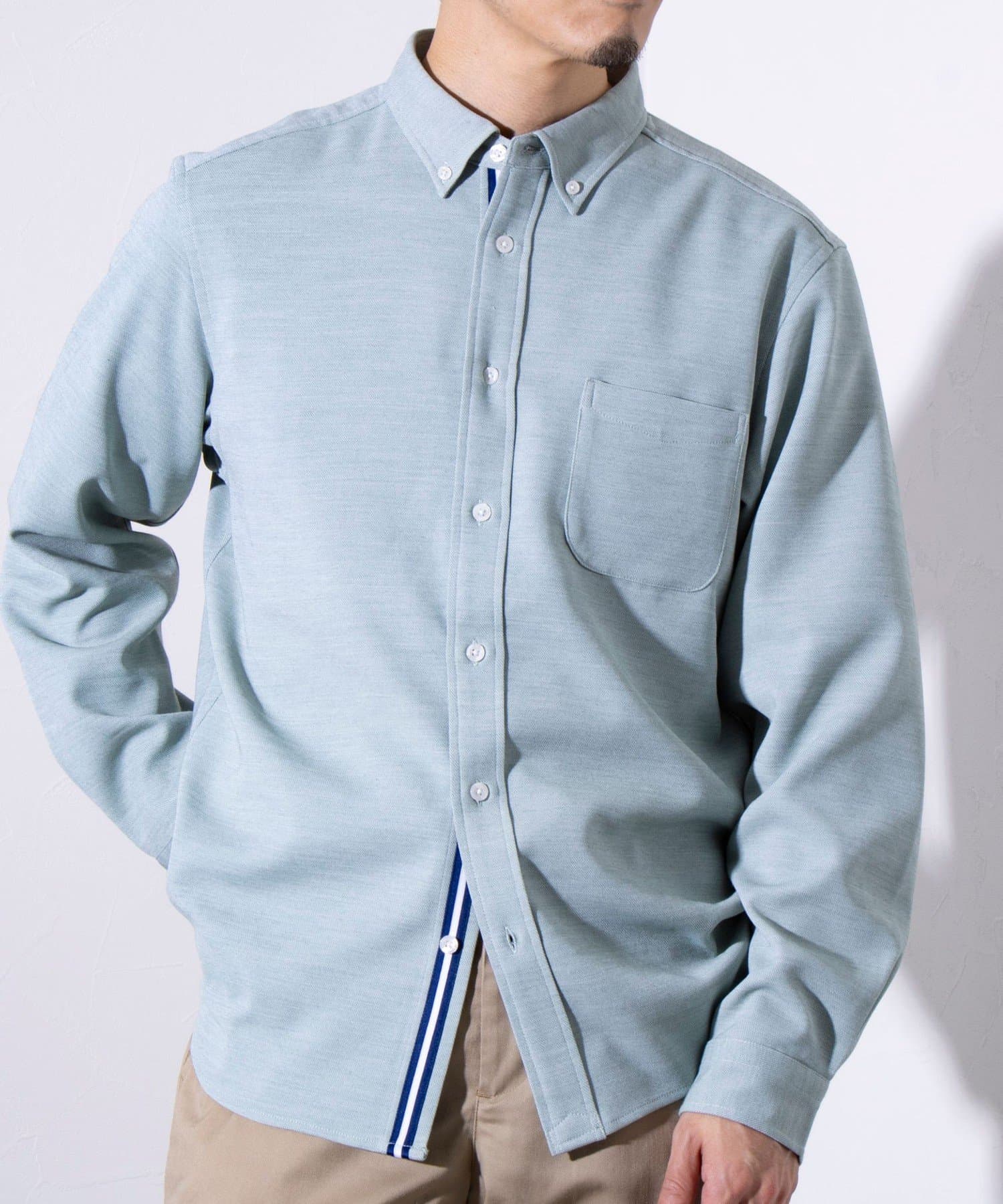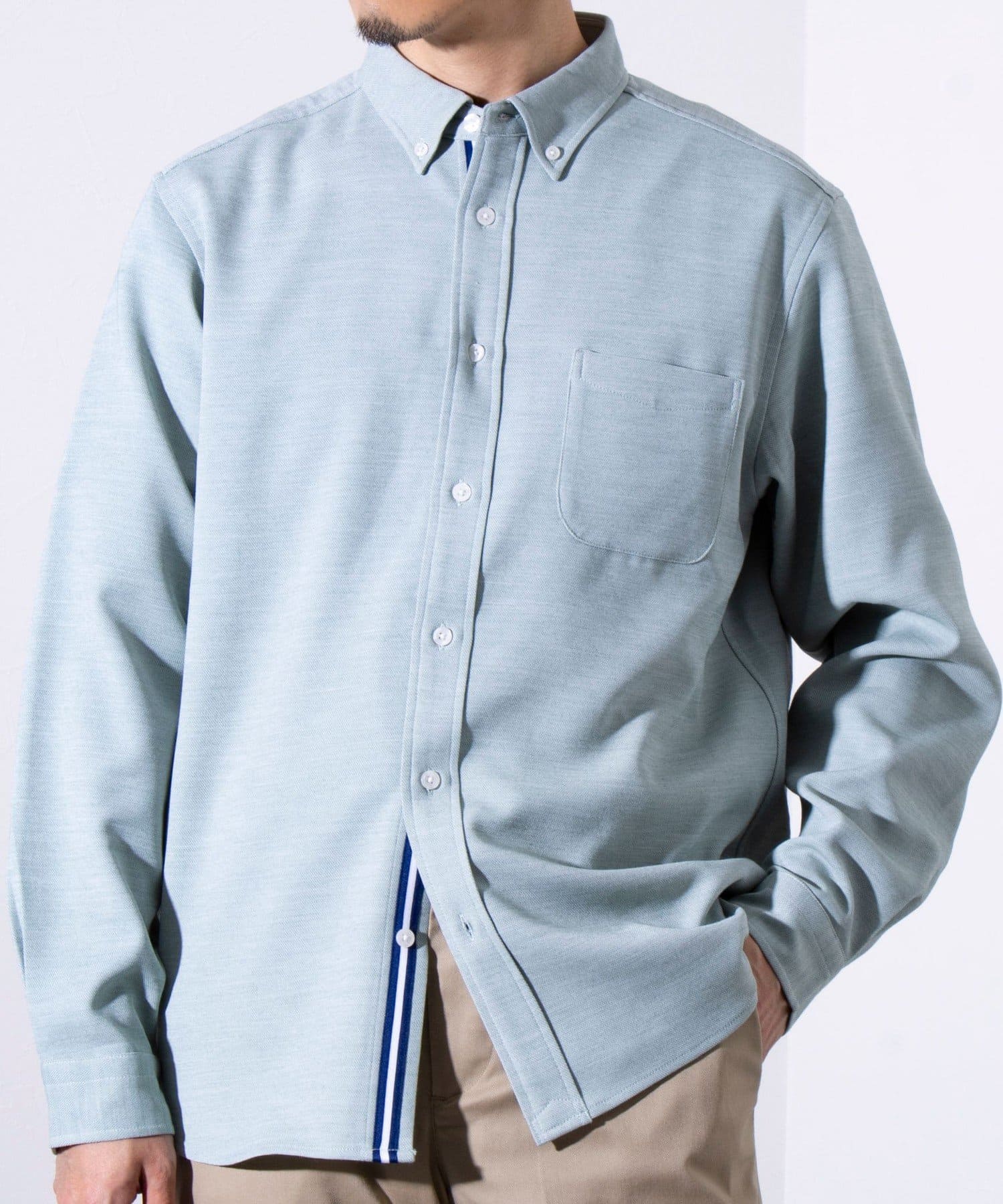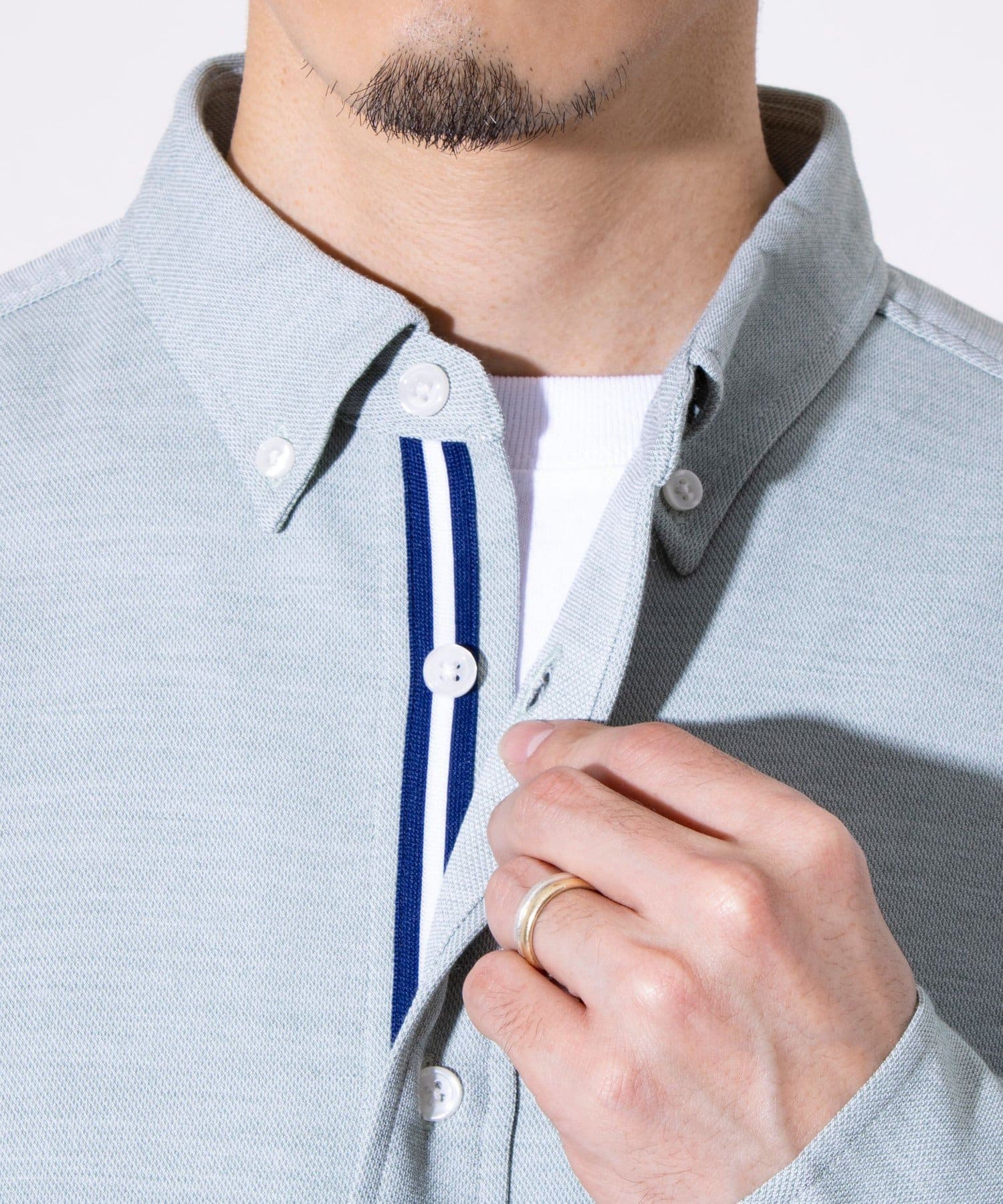 下前立てのニットテープがアクセントの鹿の子長袖シャツ