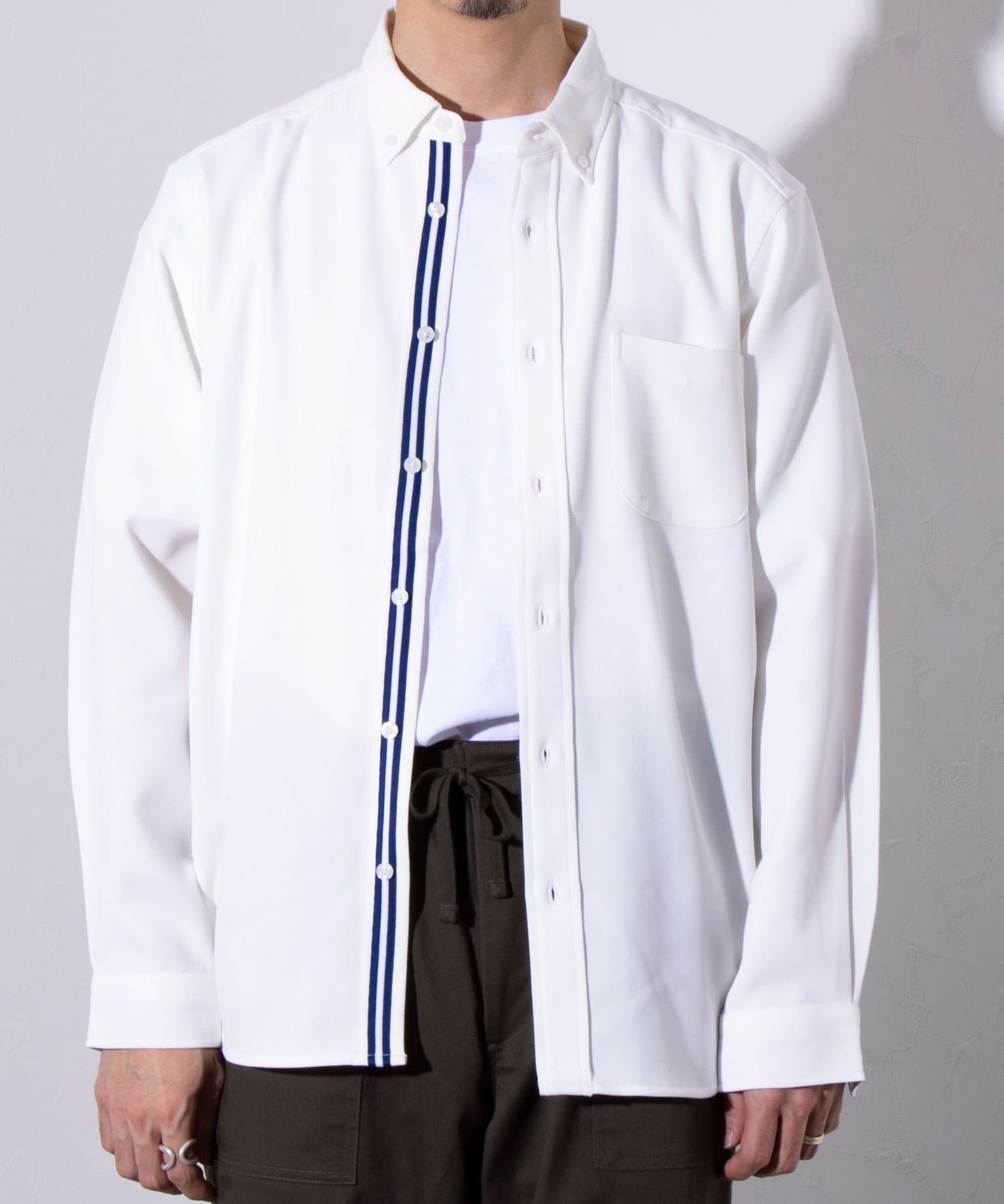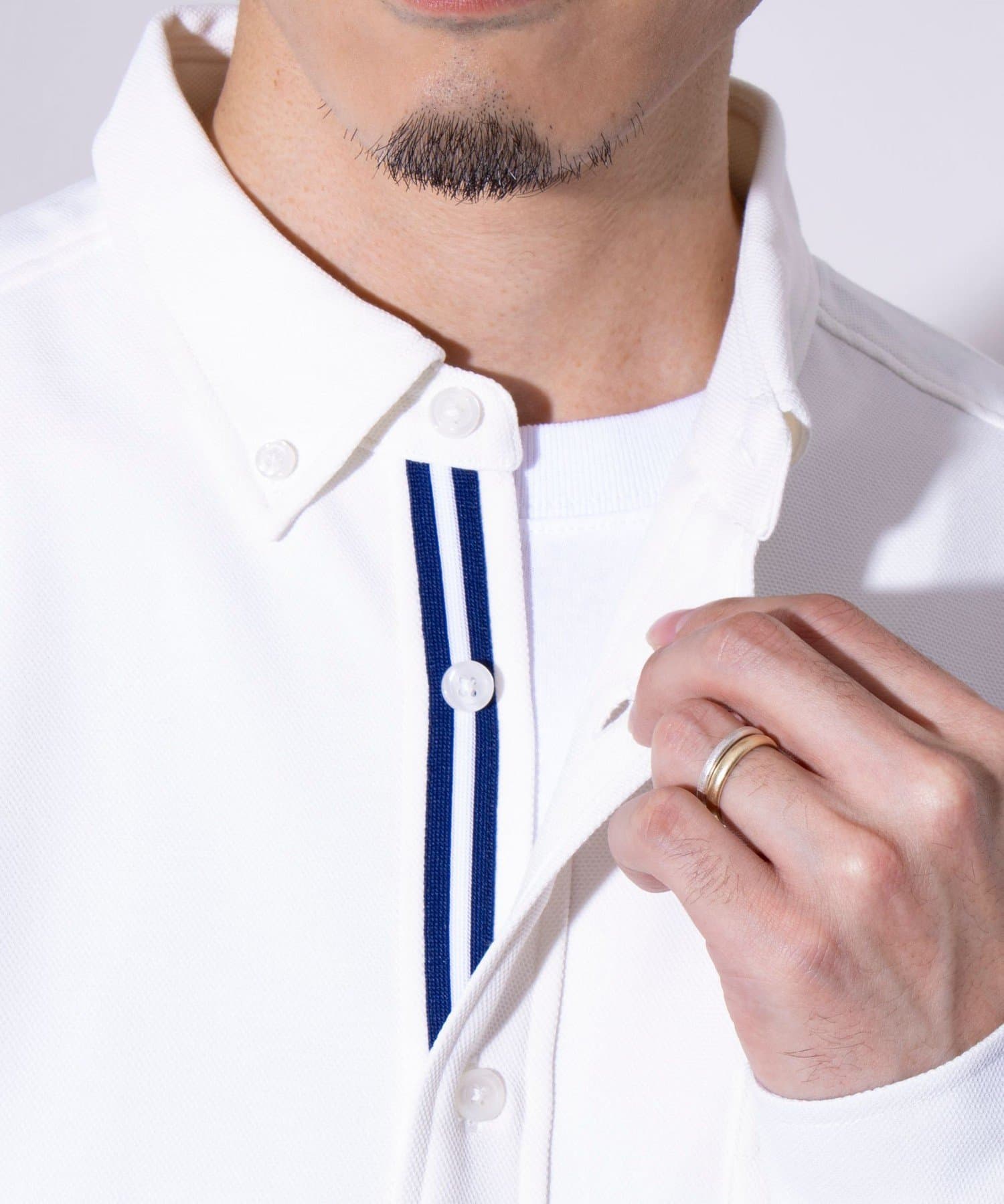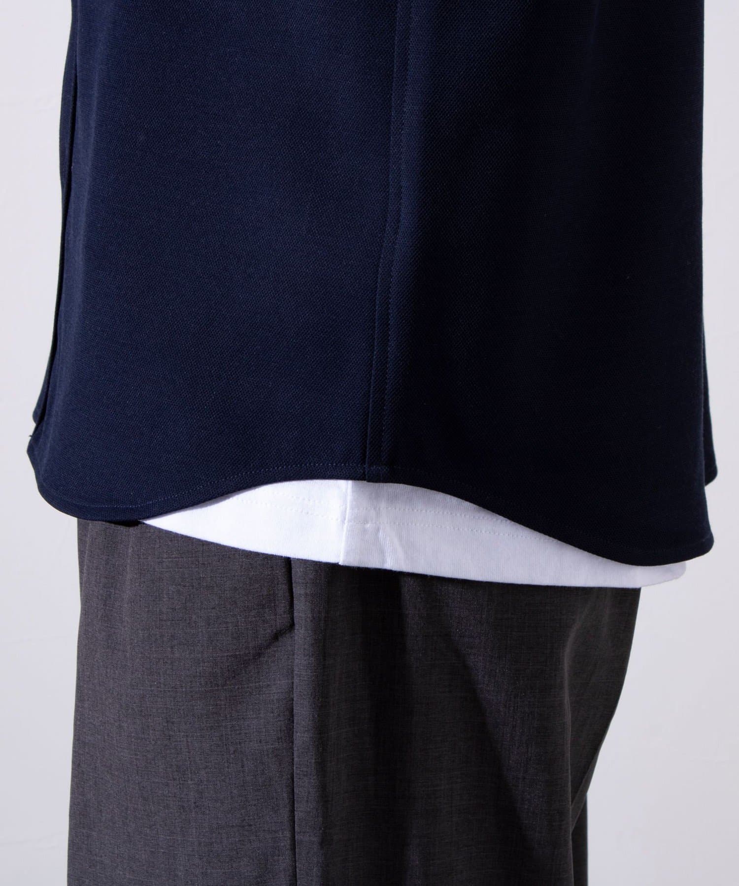 下前立てのニットテープがアクセントの鹿の子長袖シャツ