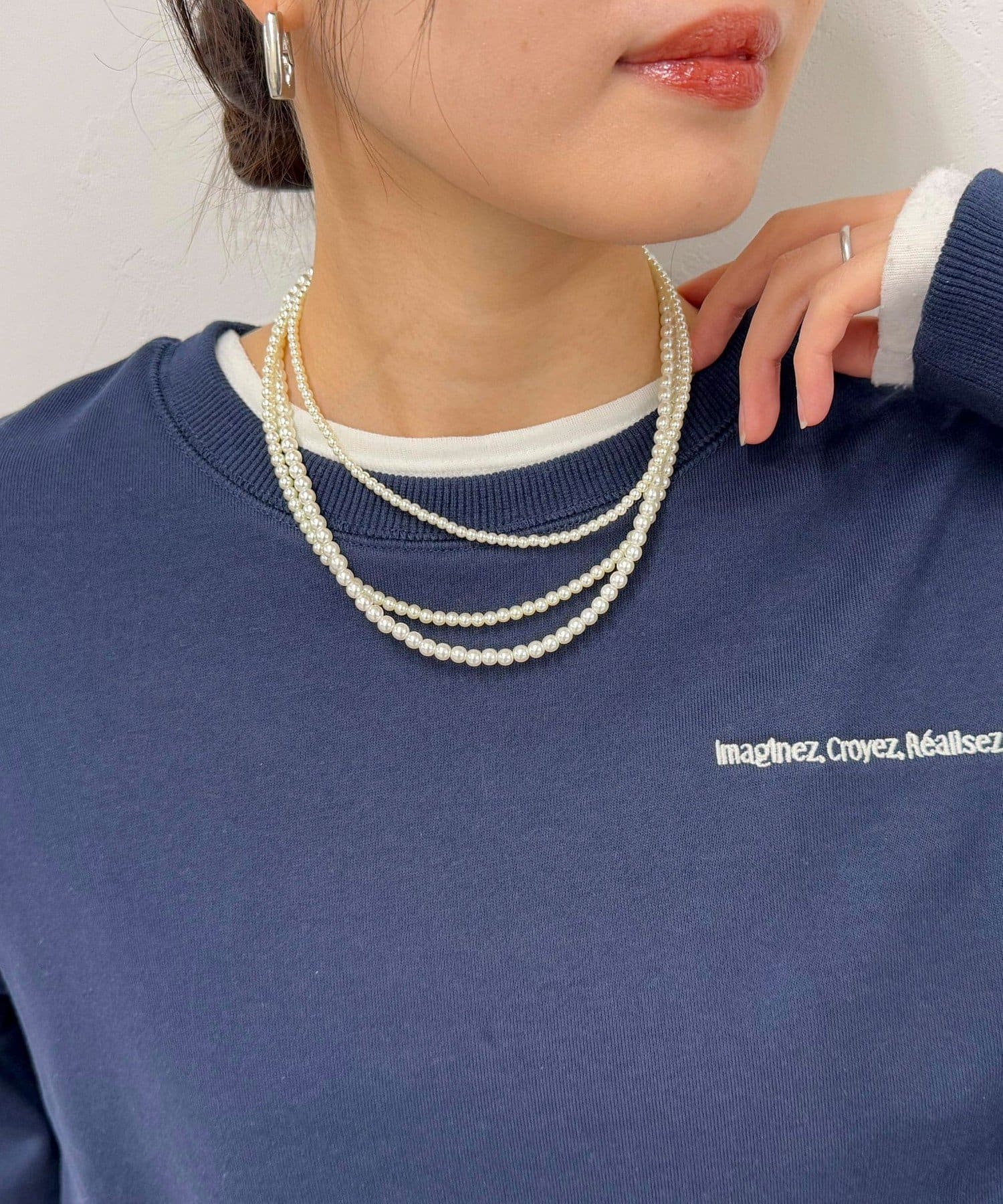 (【5-0121-9-31-102】パール3連ロングネックレス)