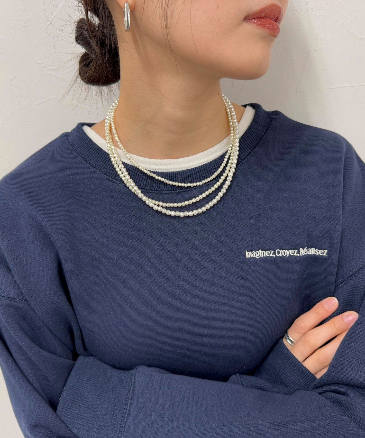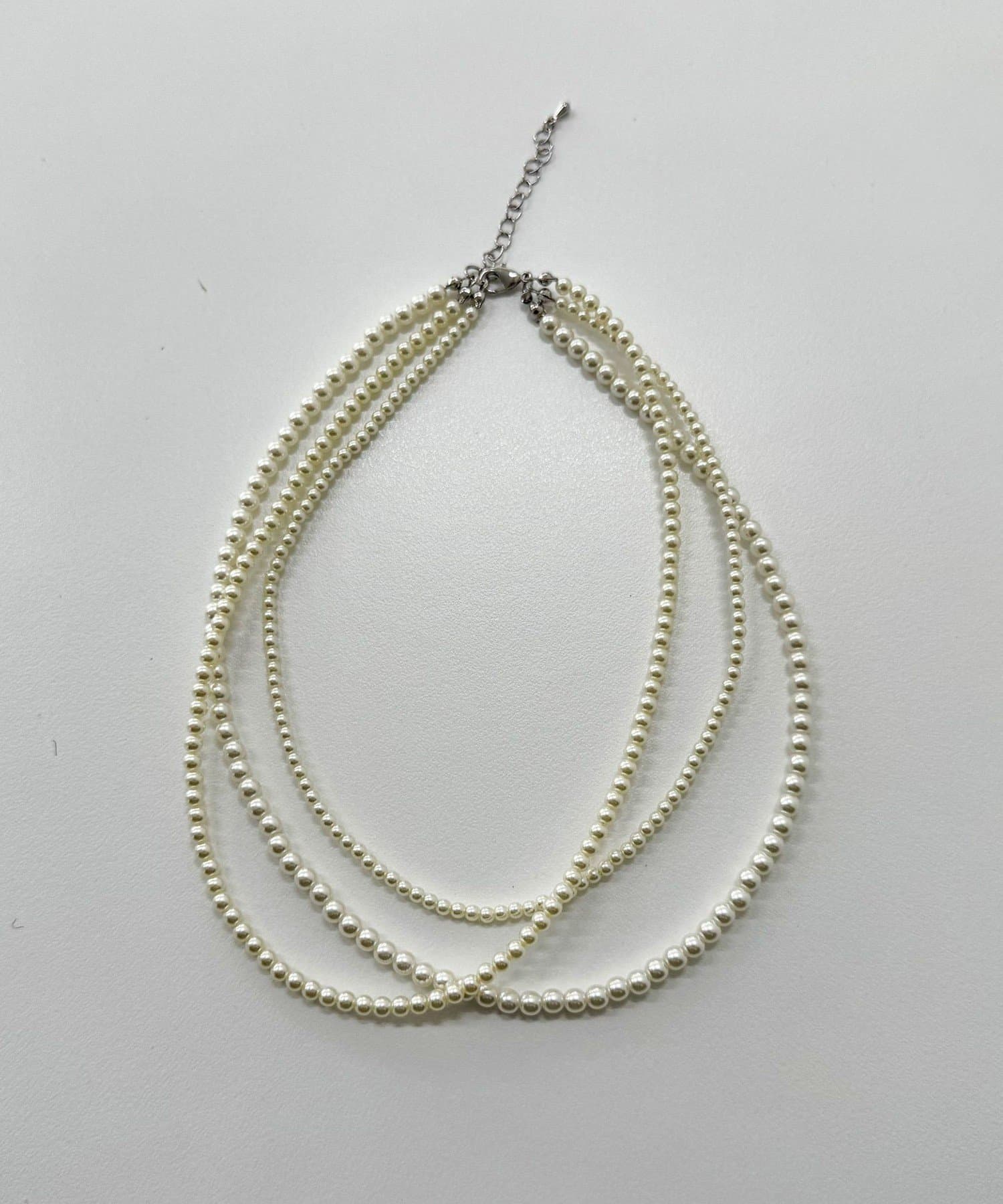 ・程よくボリュームのある3連ネックレスで付けるだけで胸元を明るくしてくれます