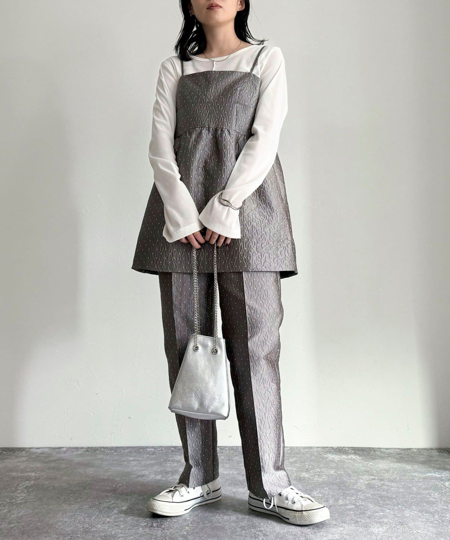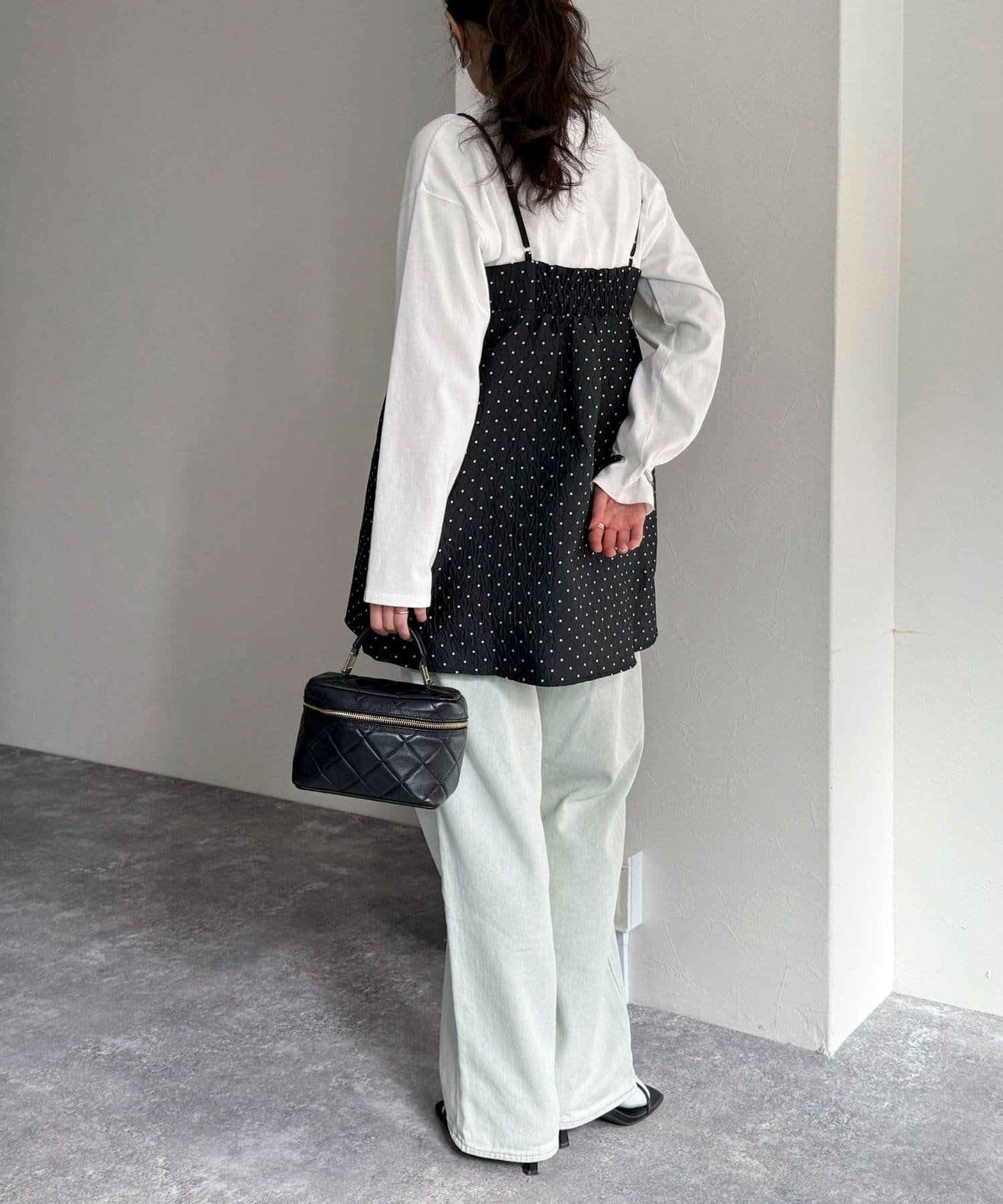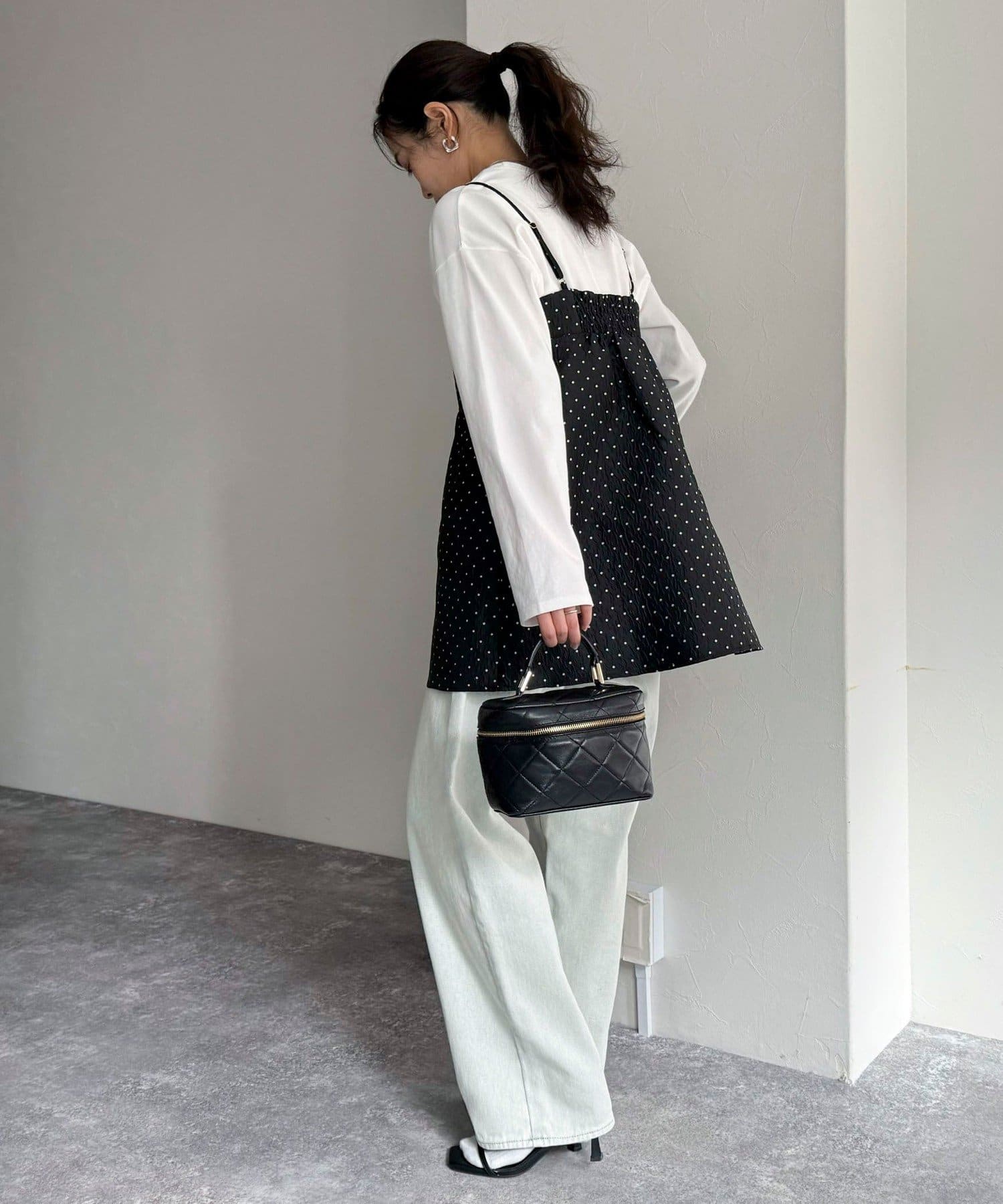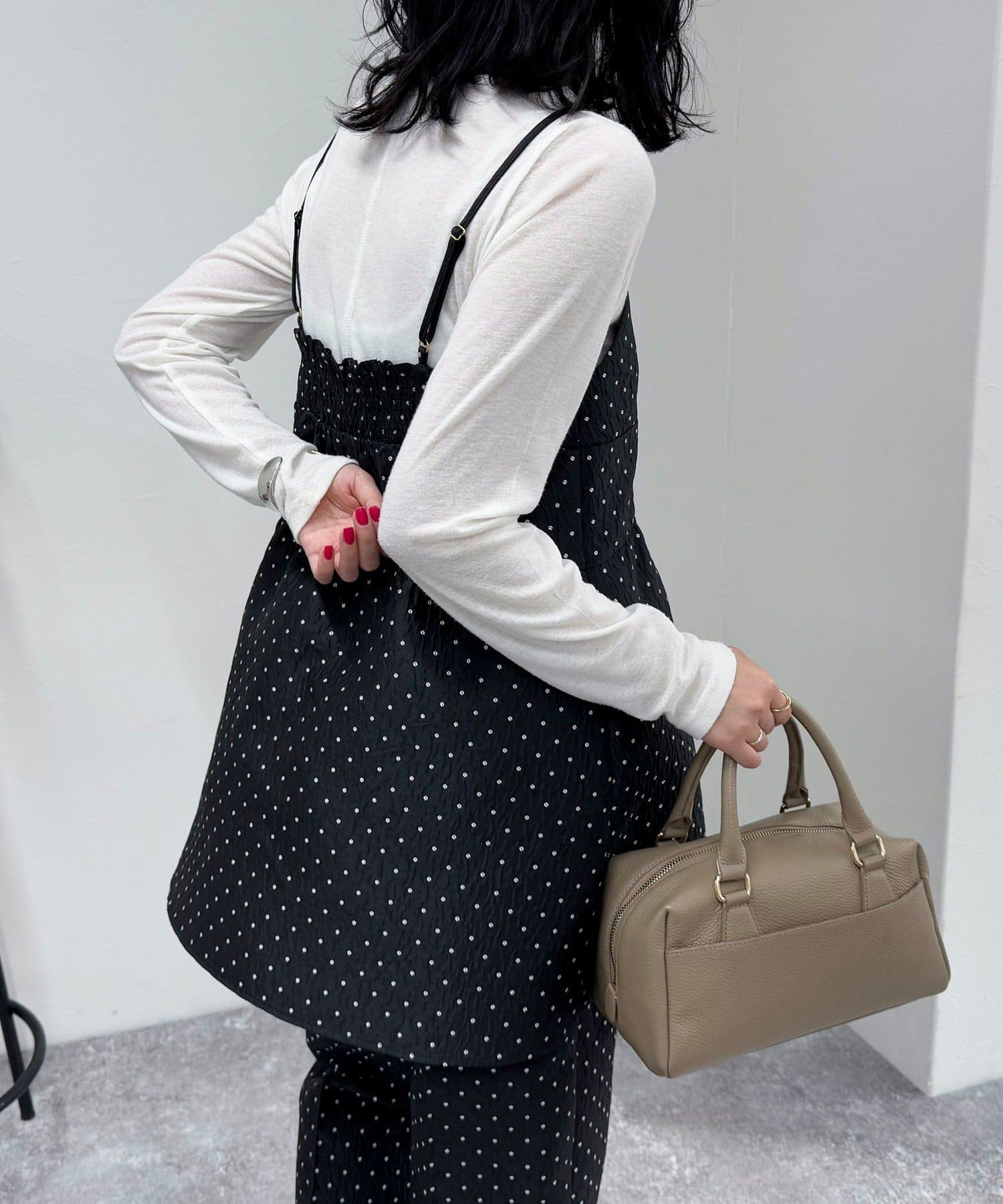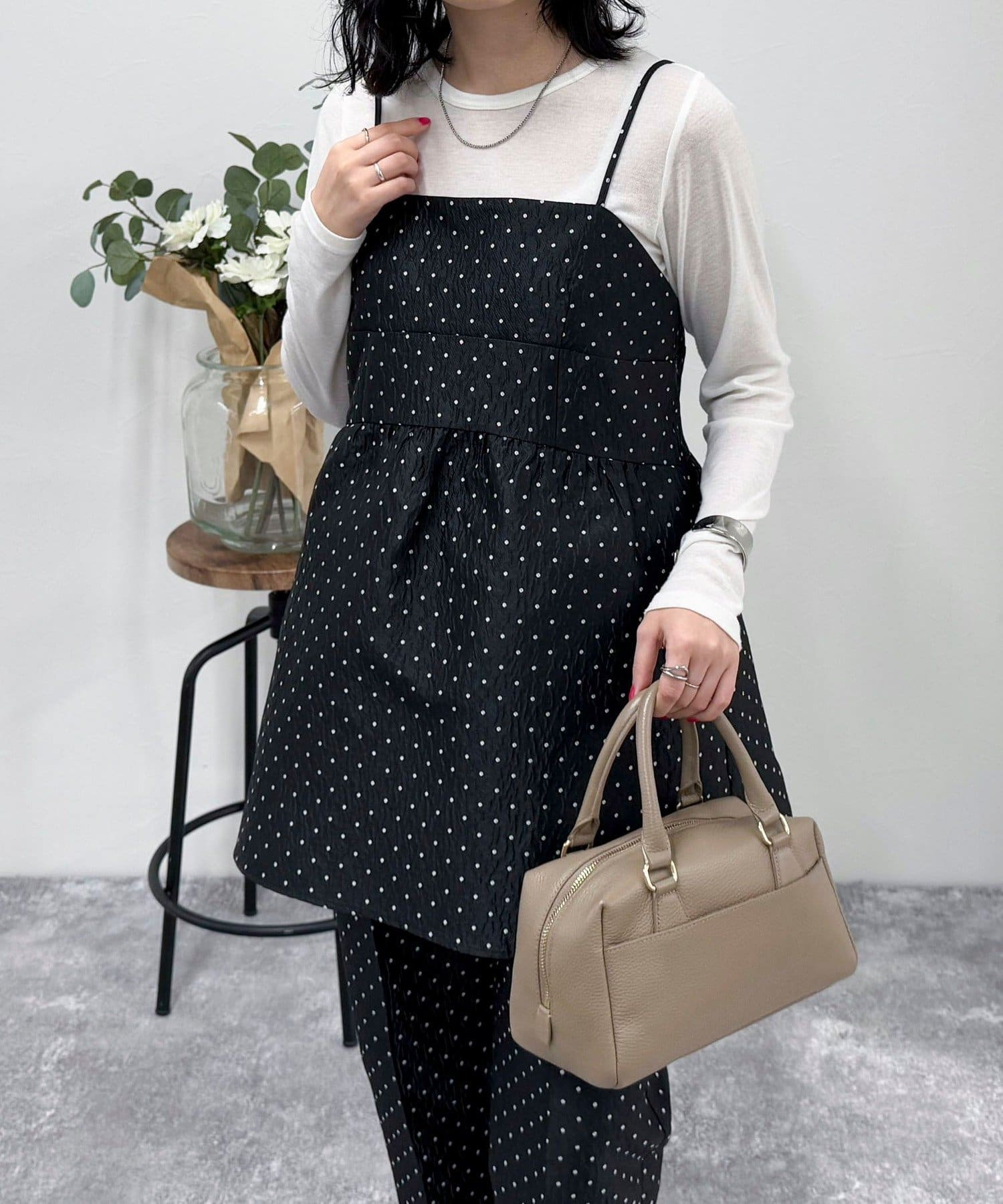 ・バッグのギャザーデザインもポイントの全身抜かりなく可愛い1枚です