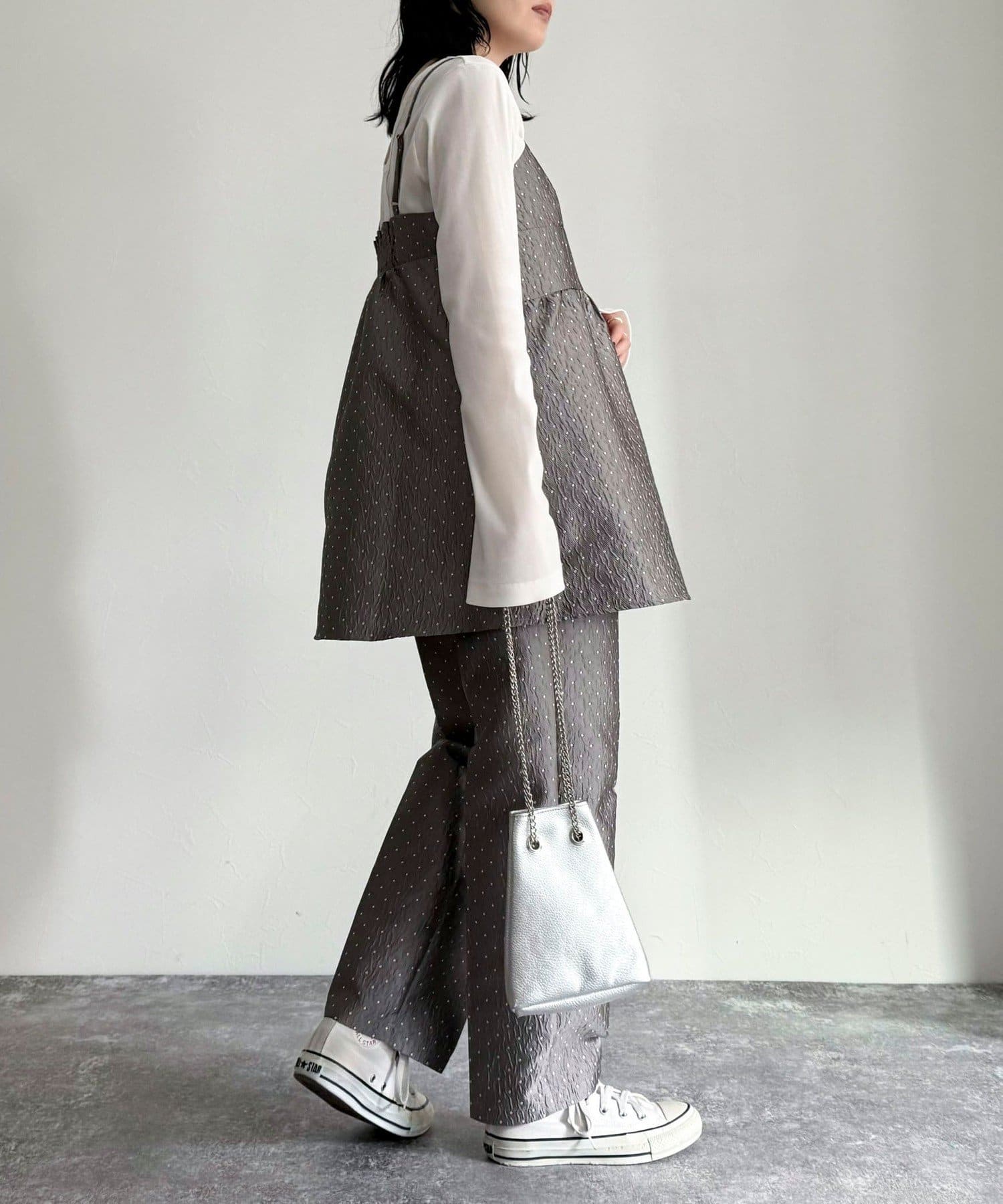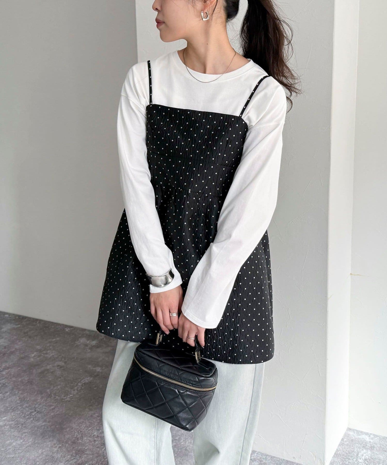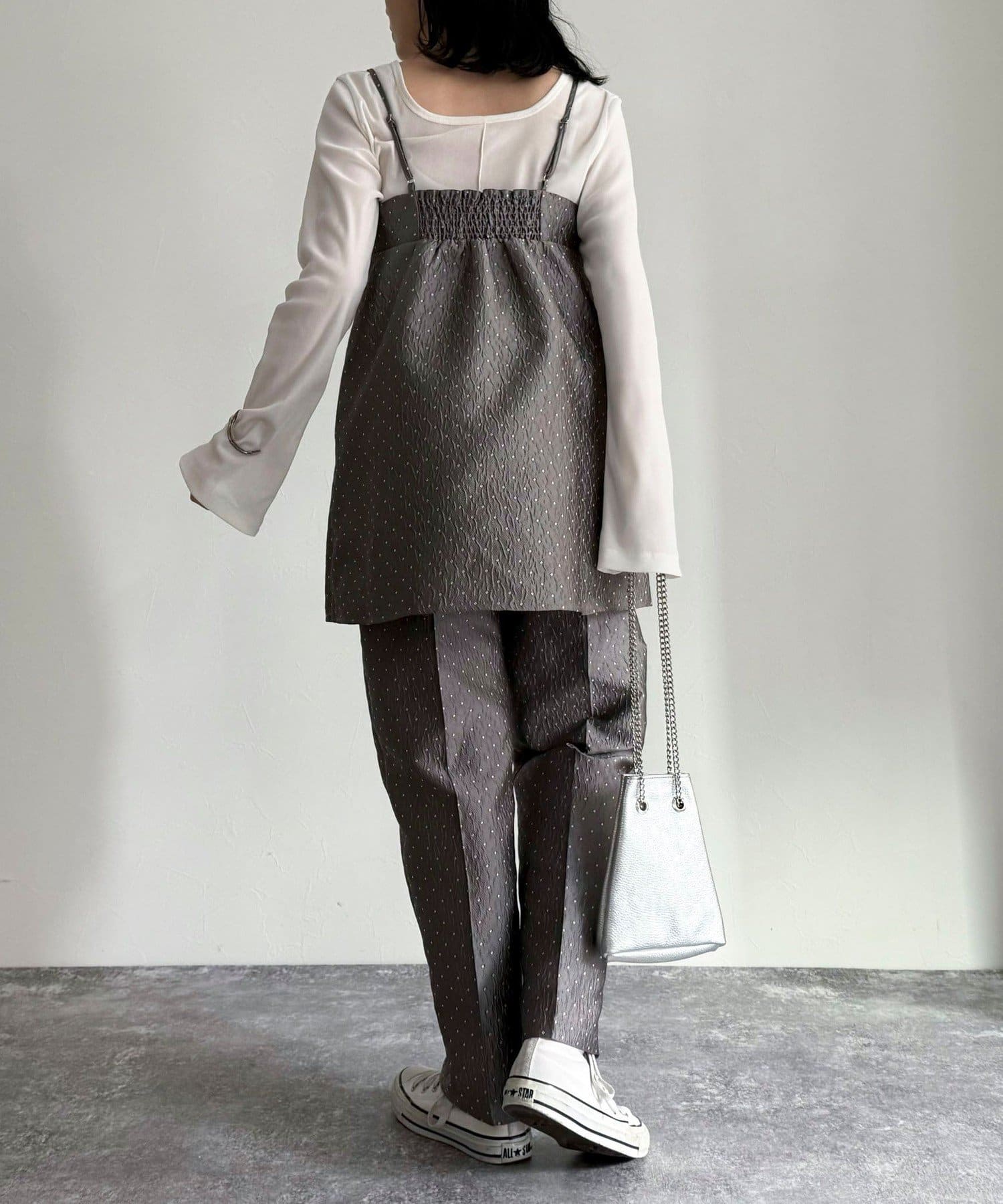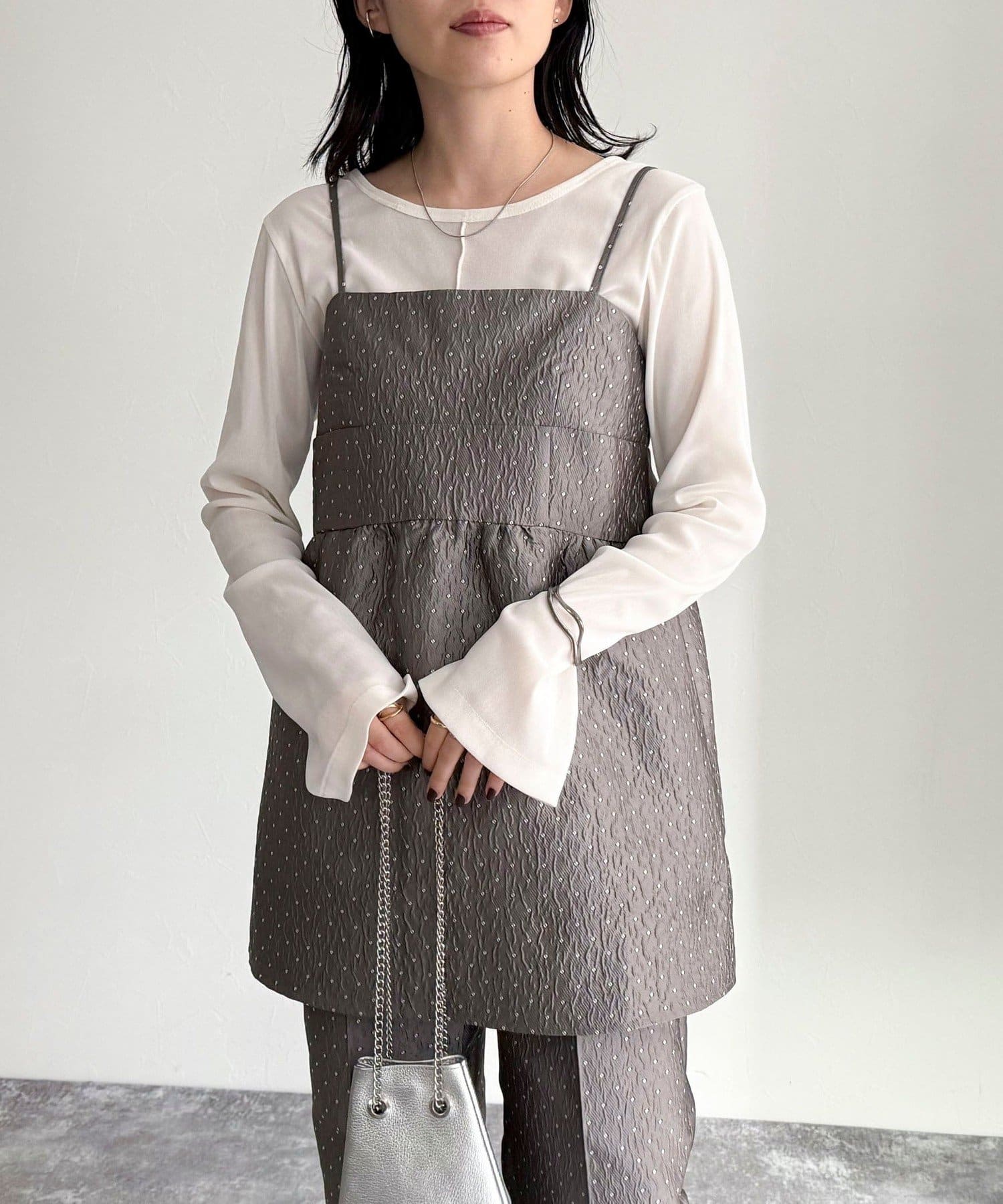 ・表面間のあるジャガード地にドットを散りばめた着映えチュニックです