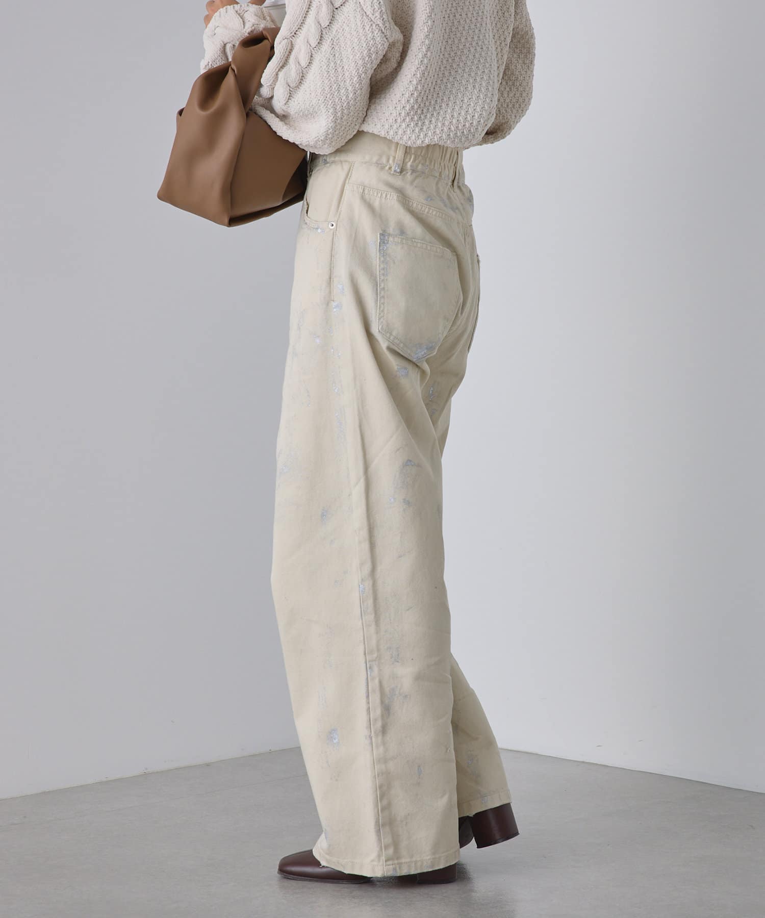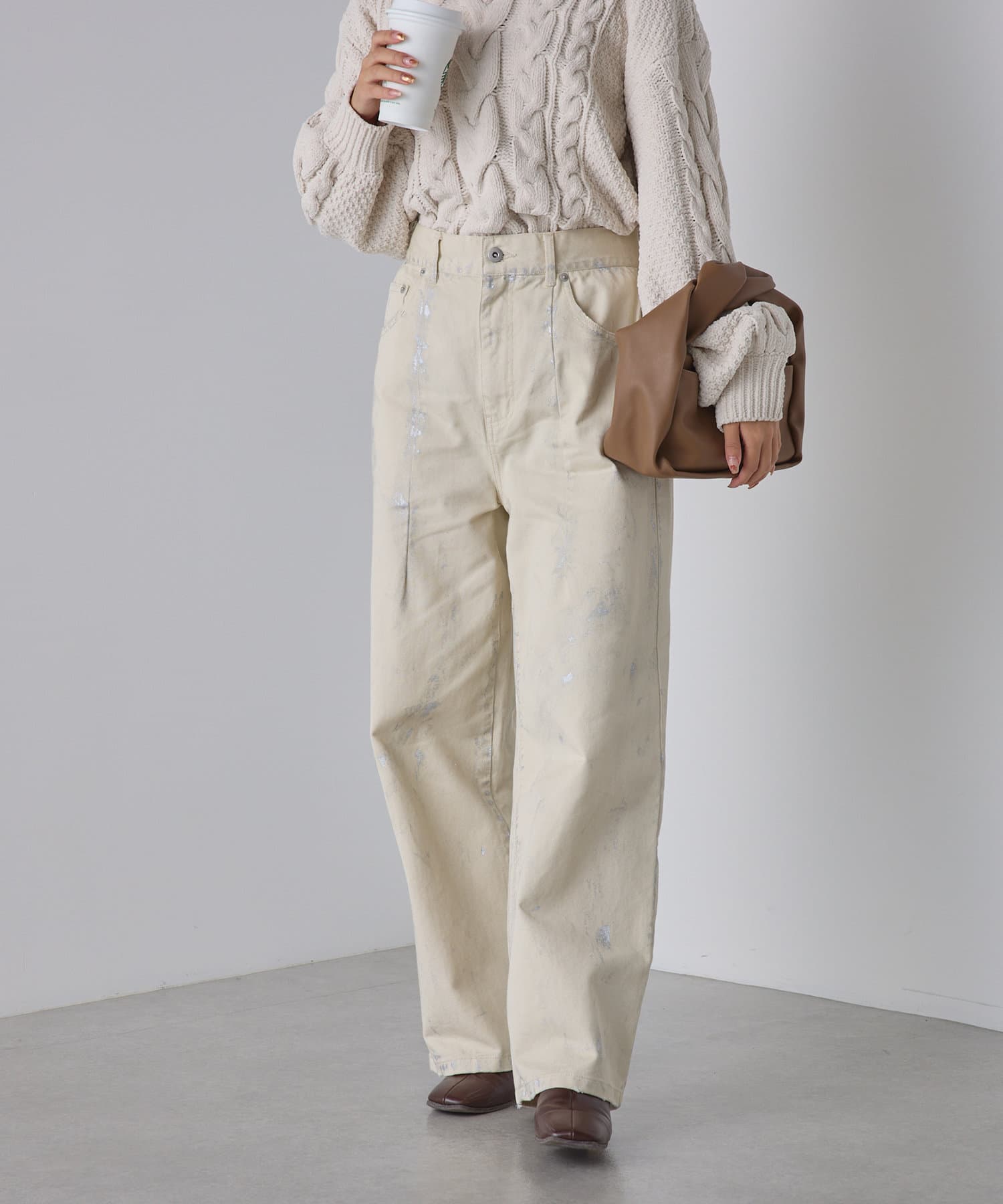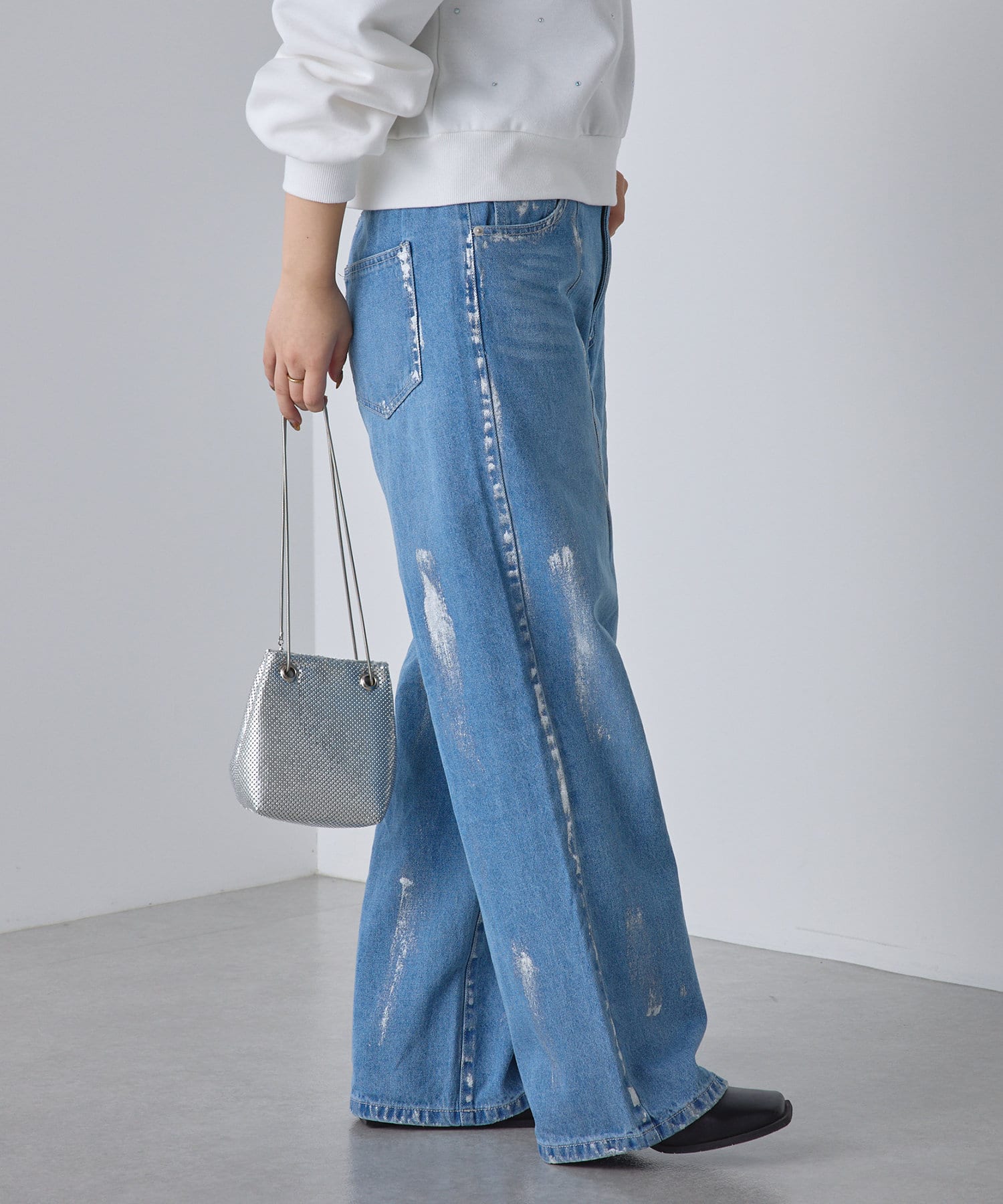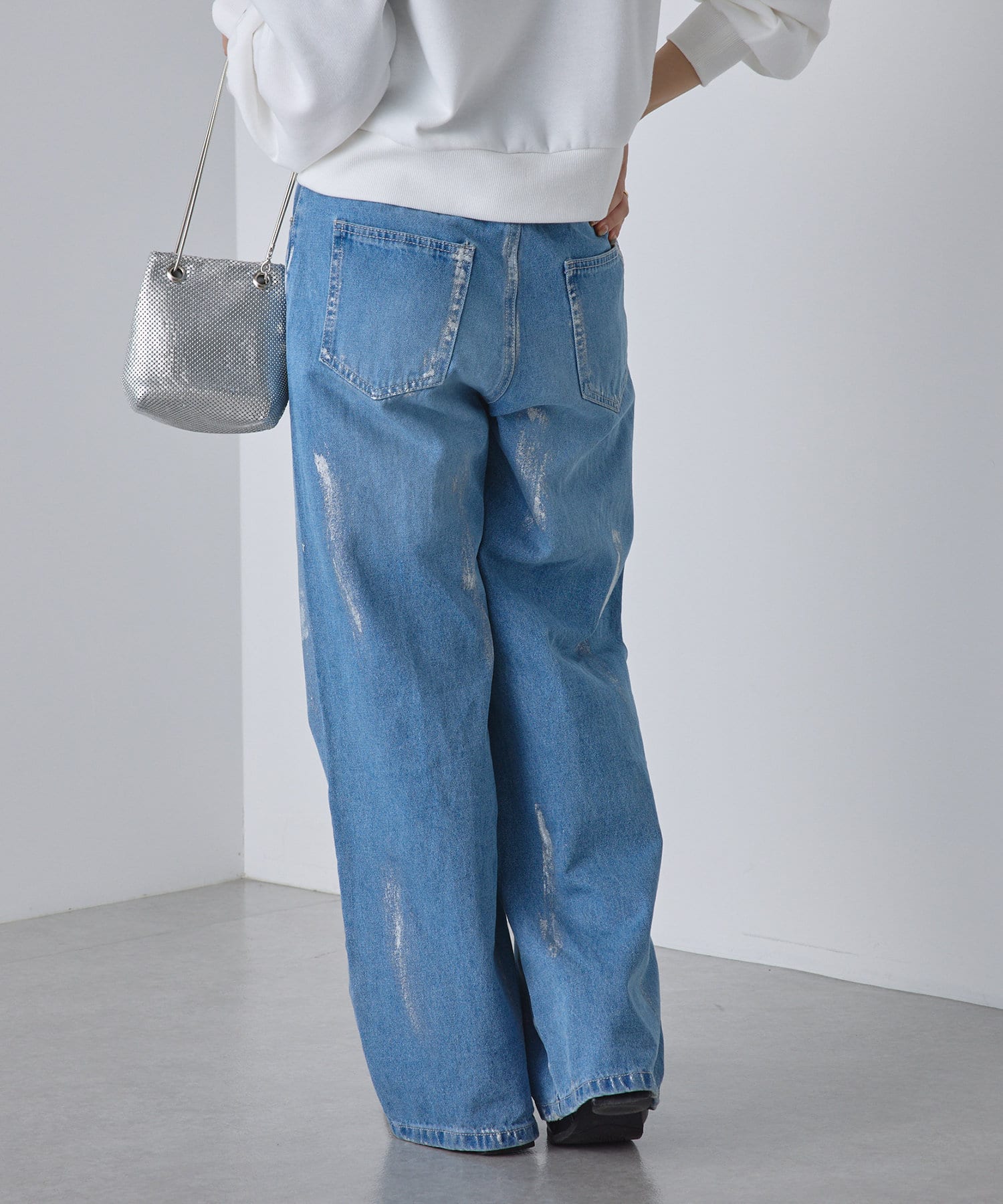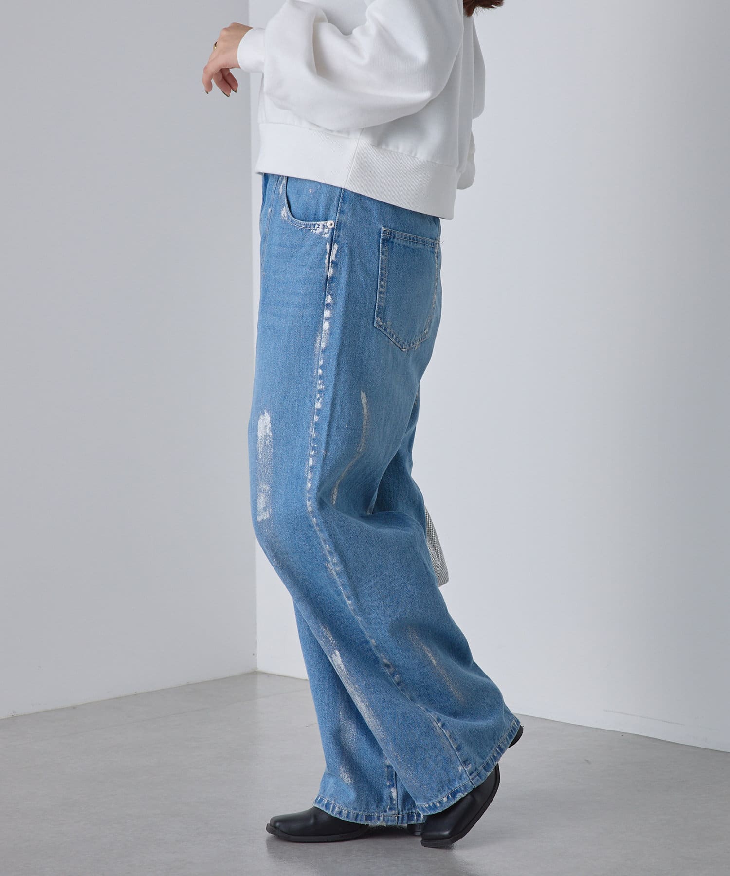 ・きらきらなペイントが施されたレギュラーシルエットのパンツ