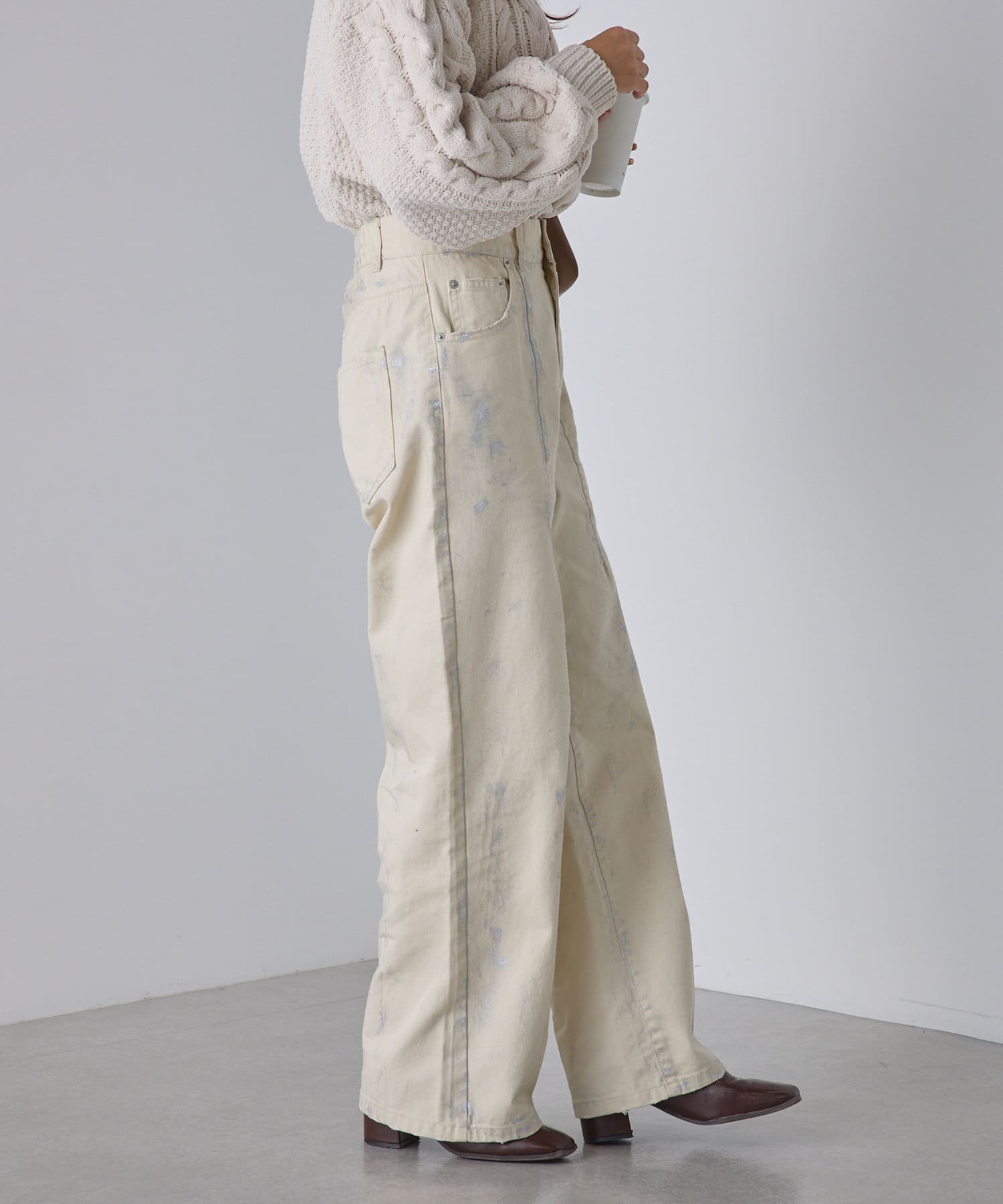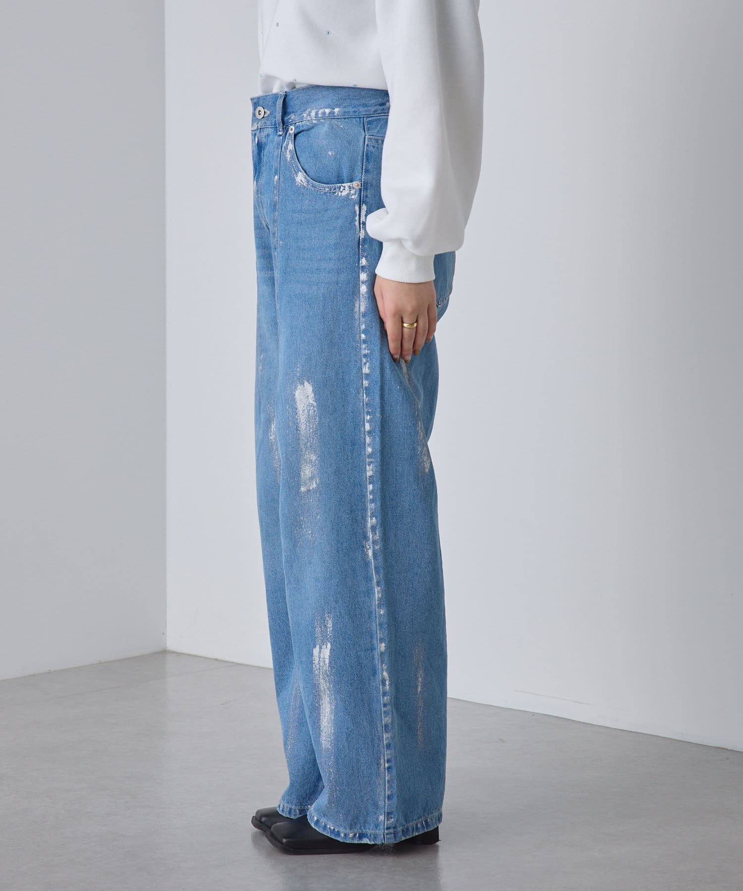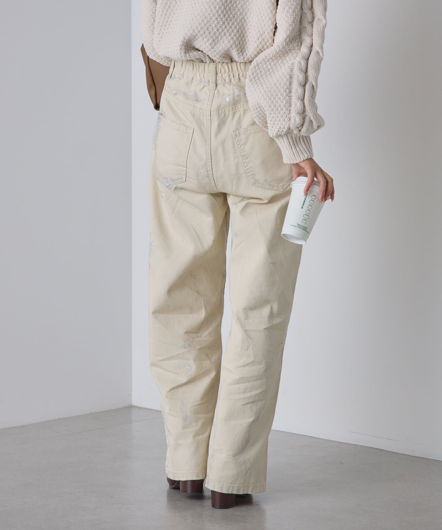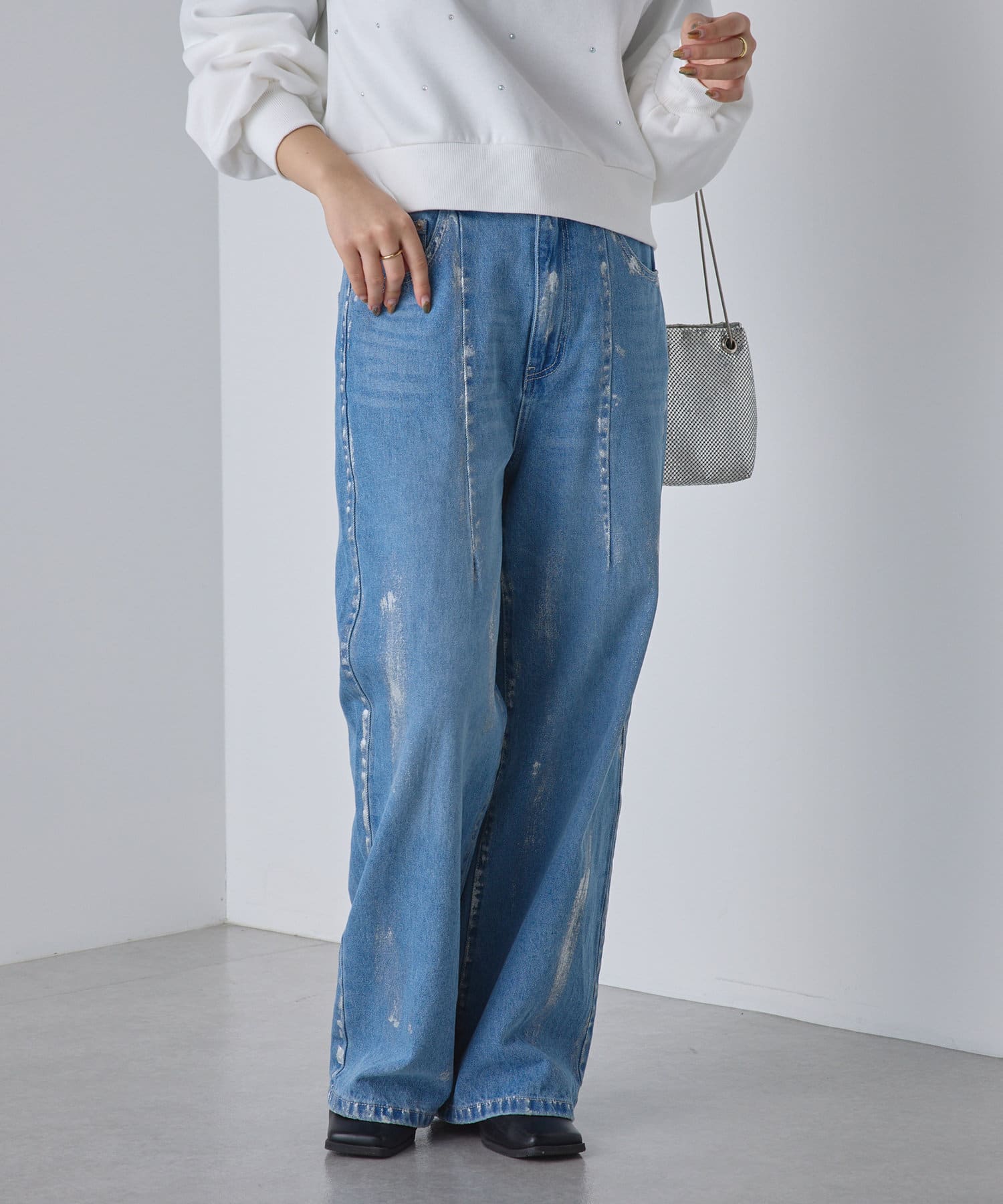 ・きらきらなペイントが施されたレギュラーシルエットのパンツ