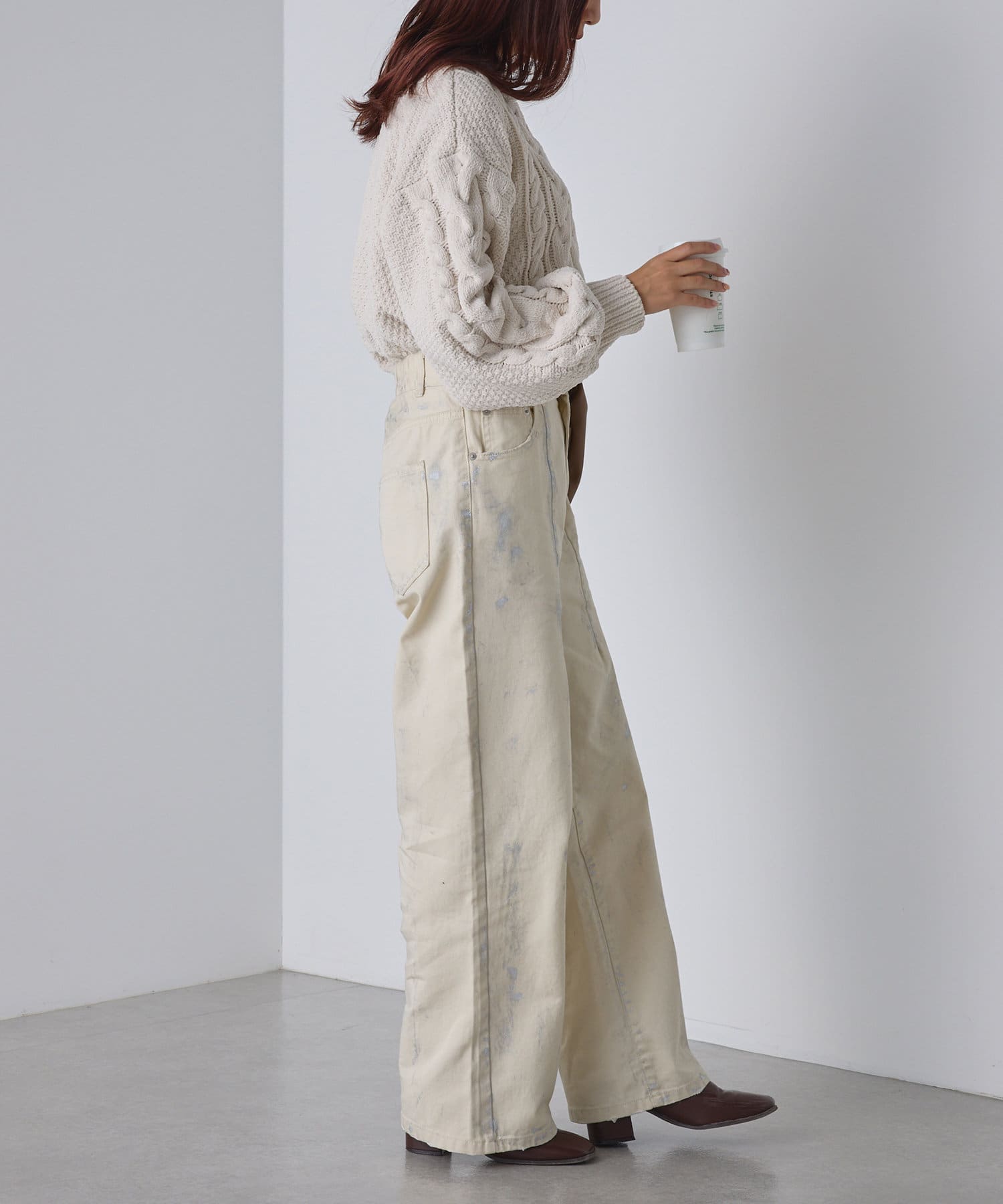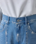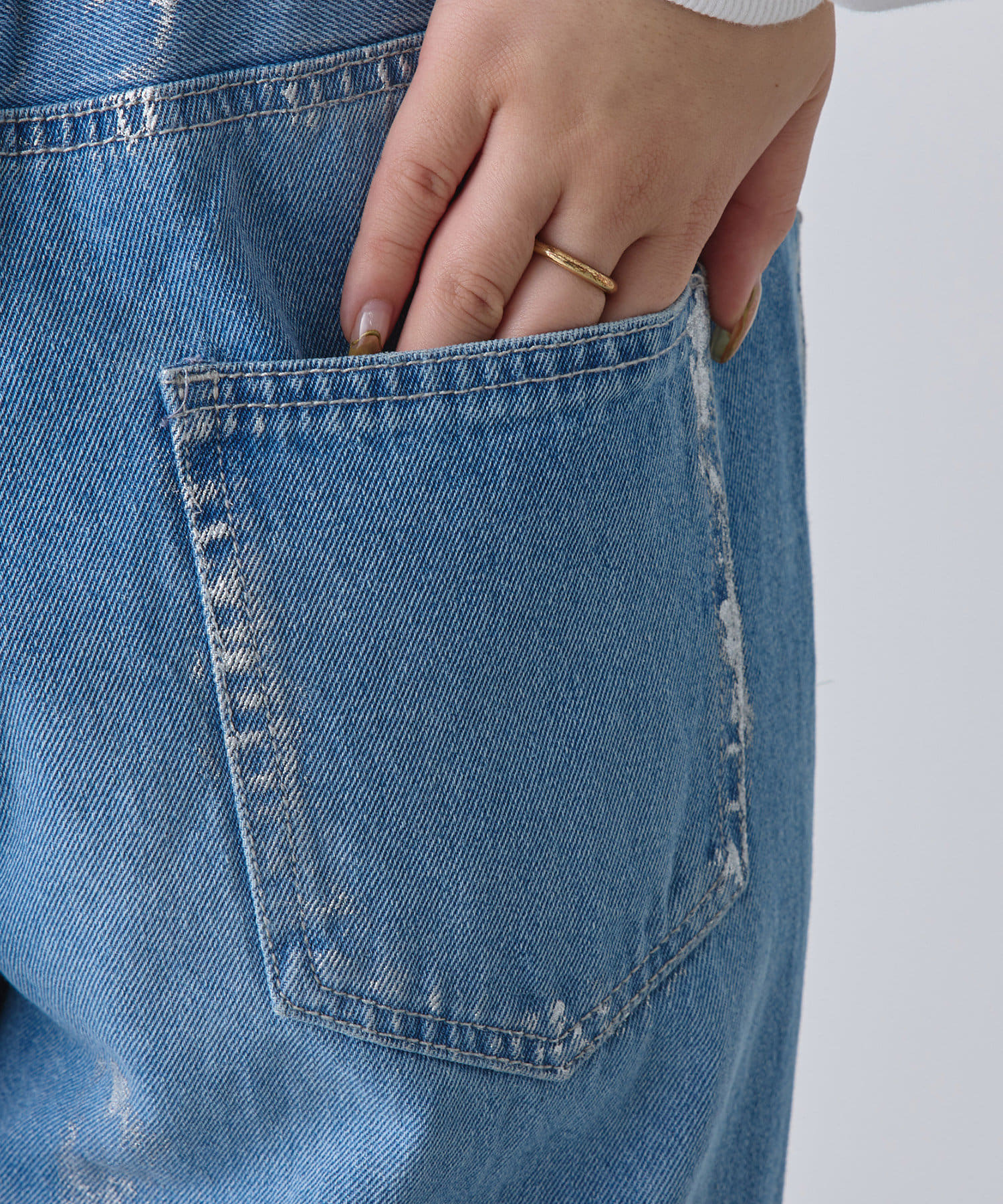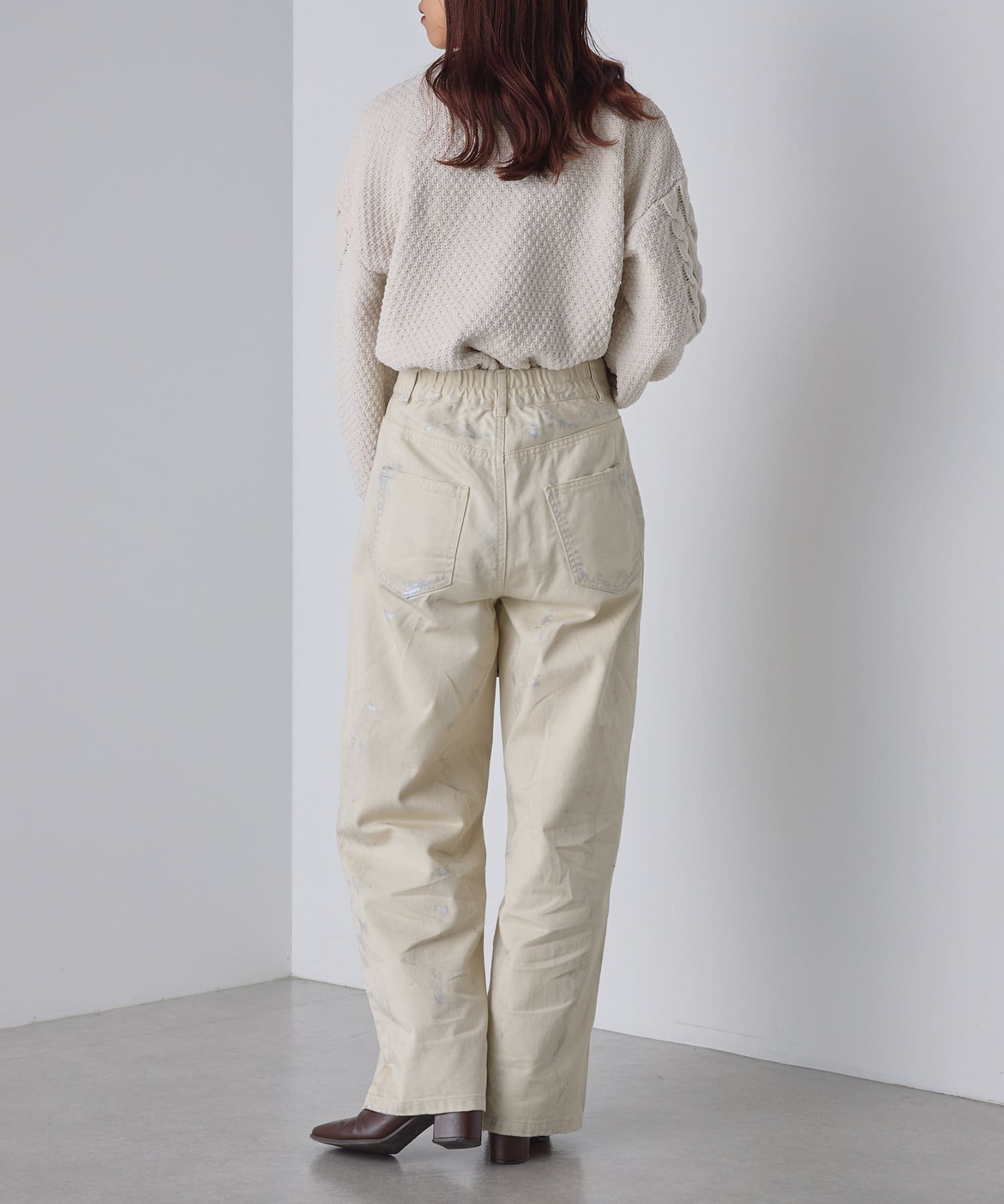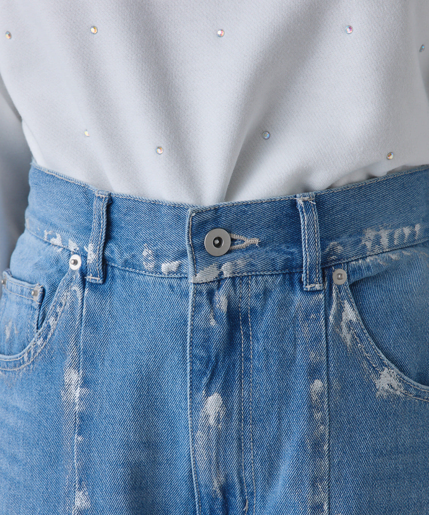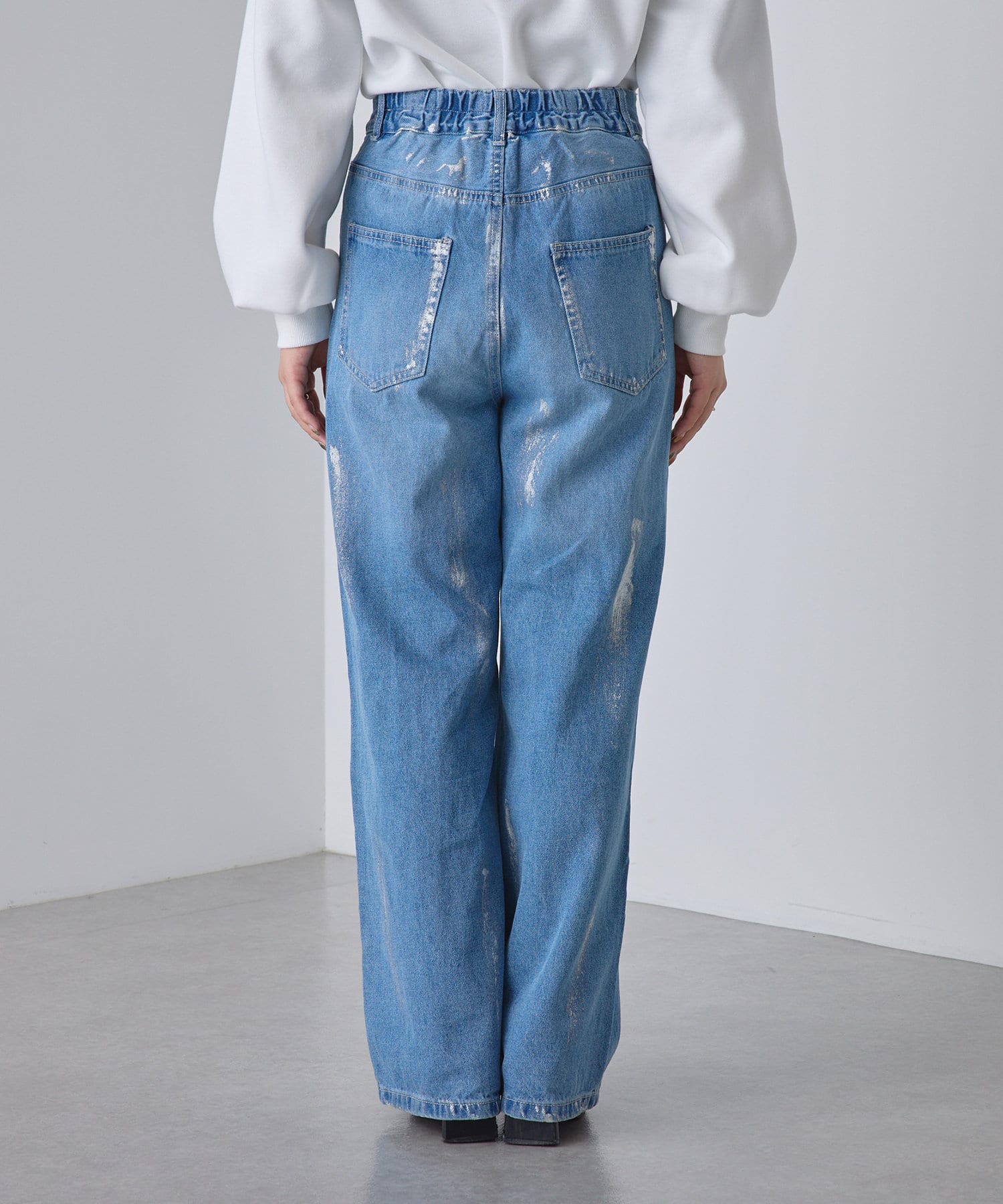 ・きらきらなペイントが施されたレギュラーシルエットのパンツ
