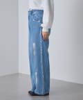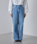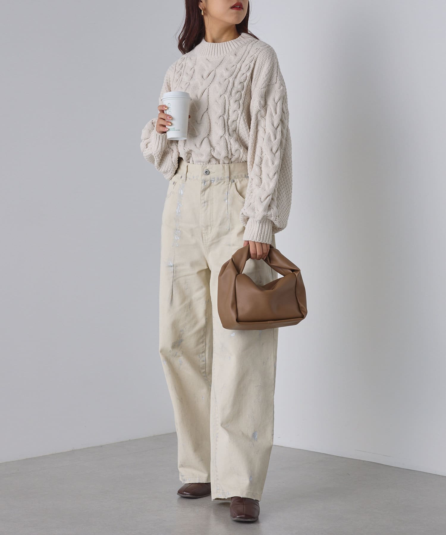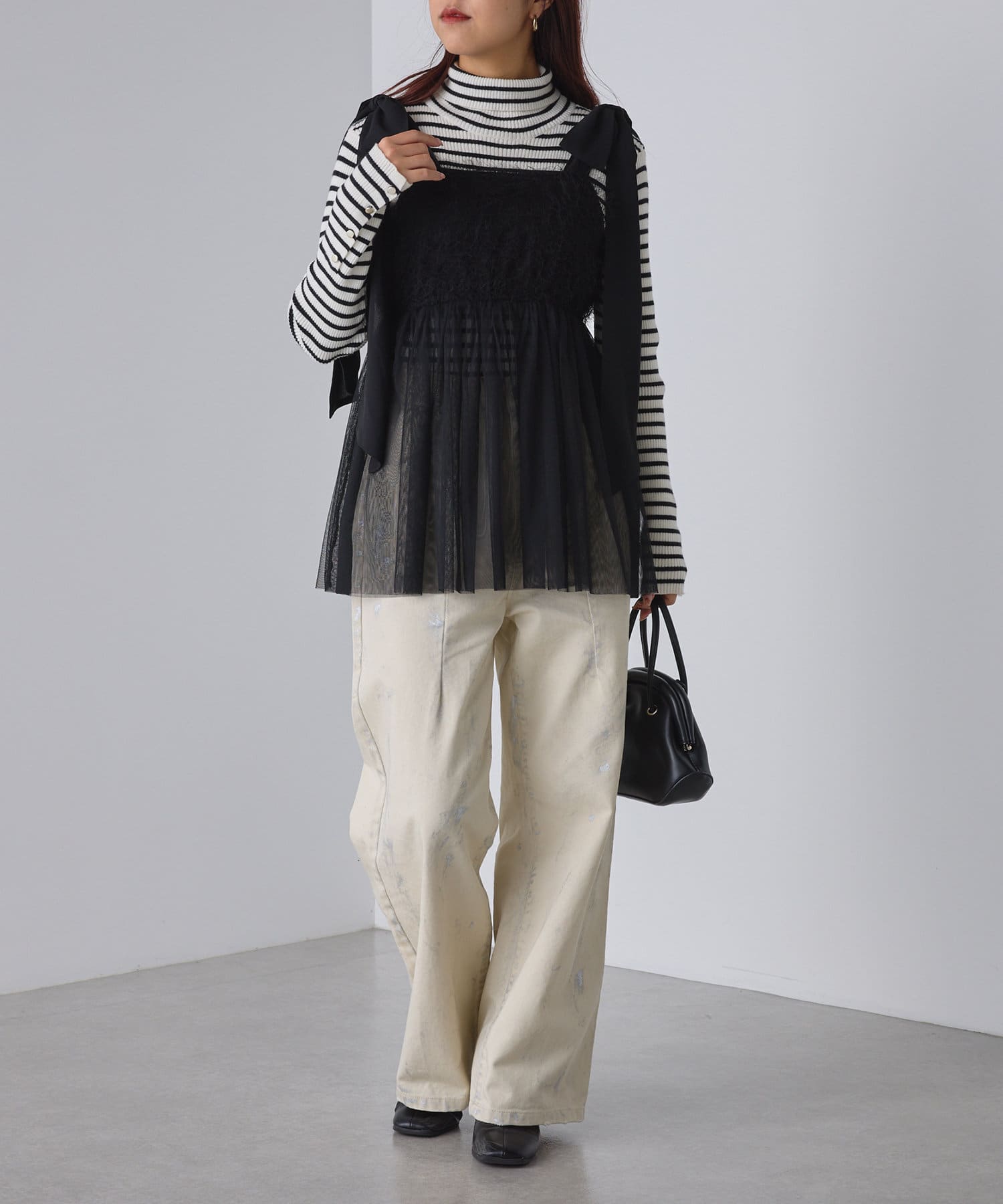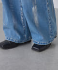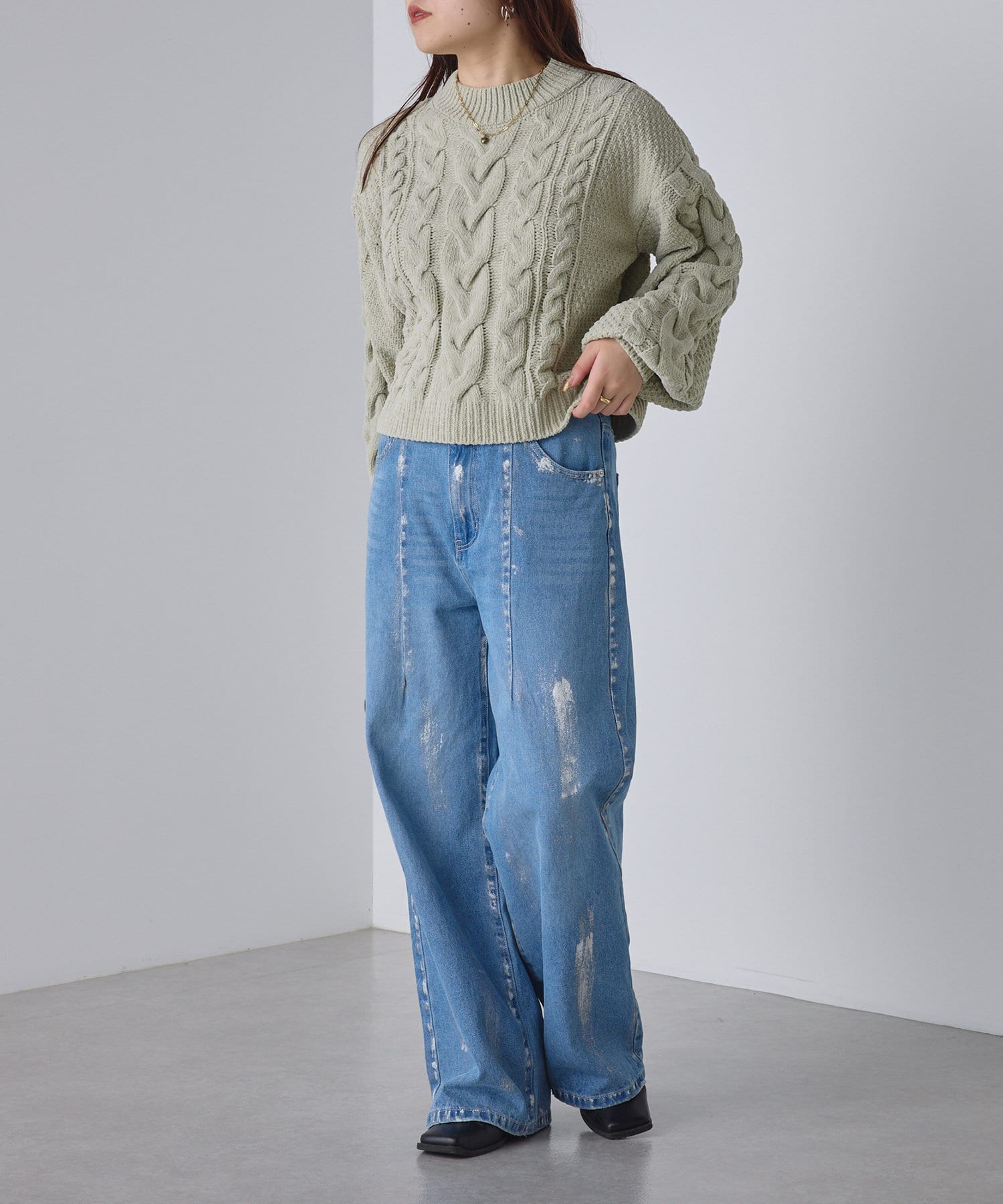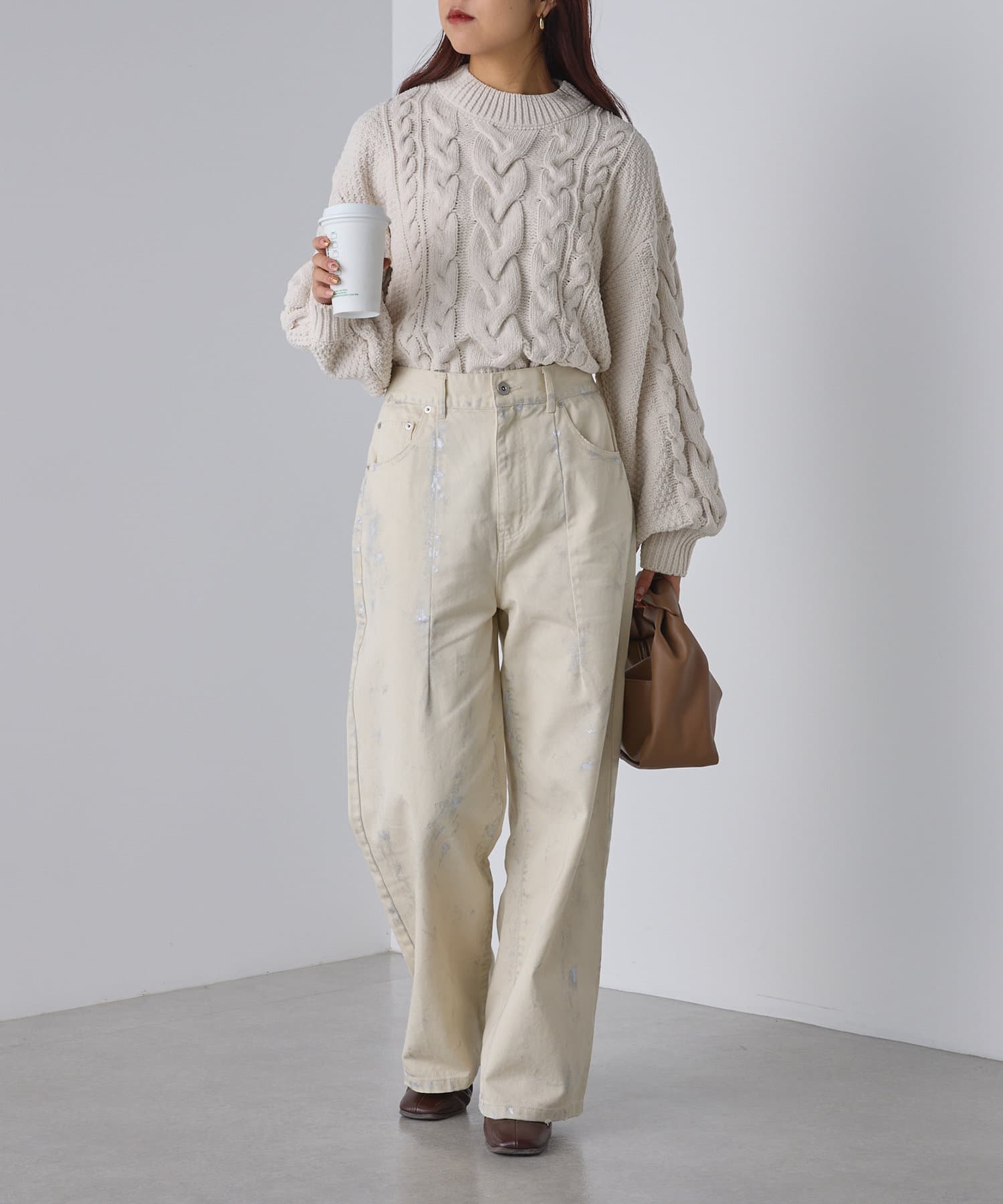 ・きらきらなペイントが施されたレギュラーシルエットのパンツ