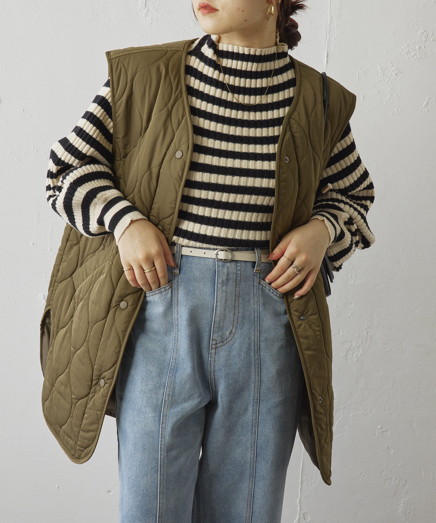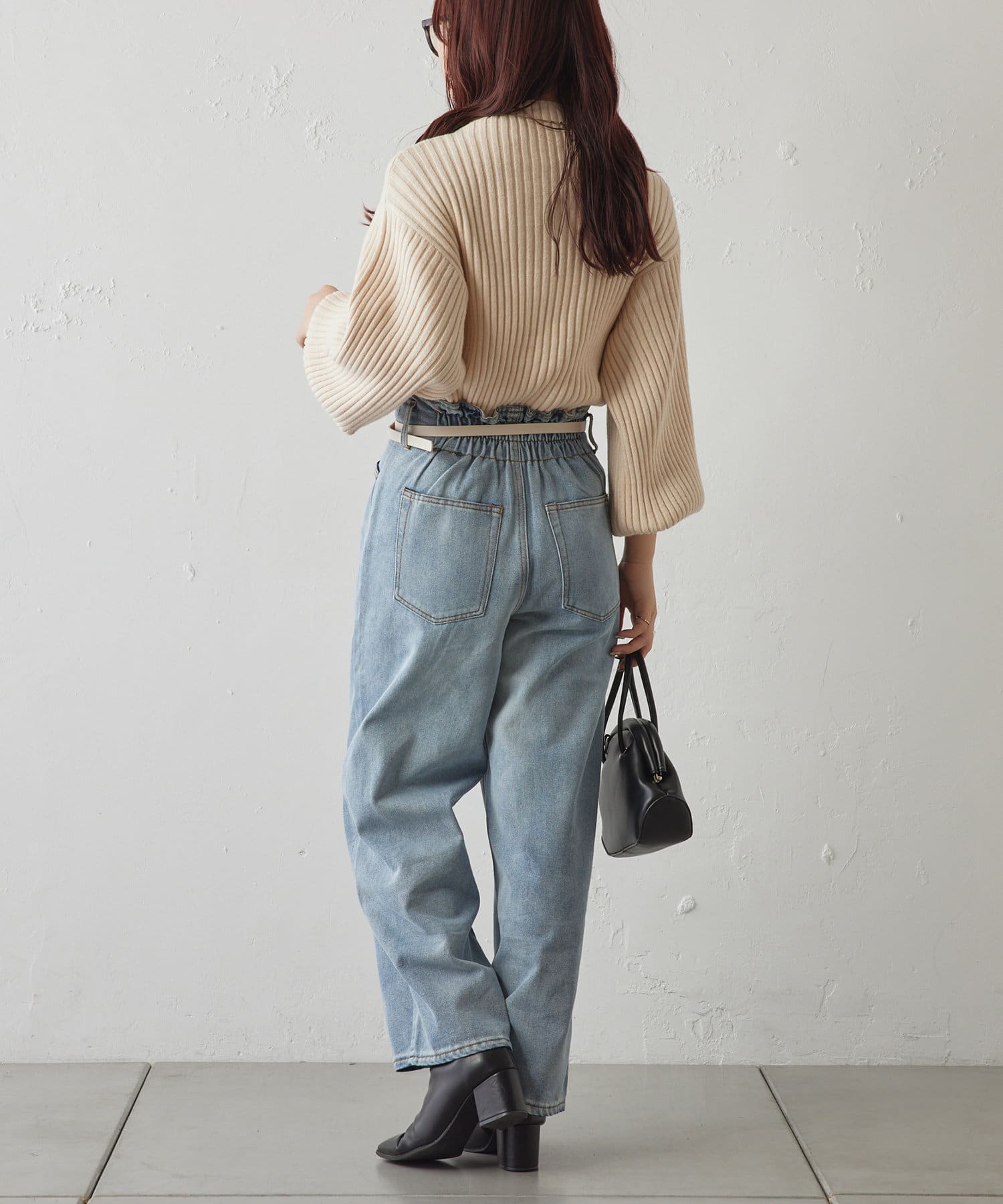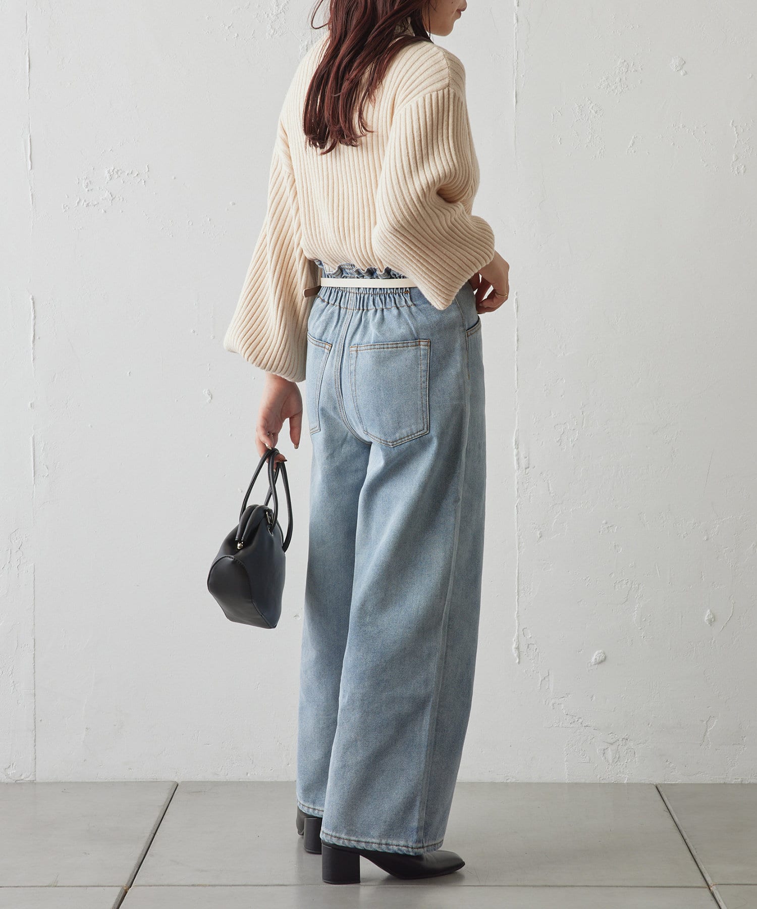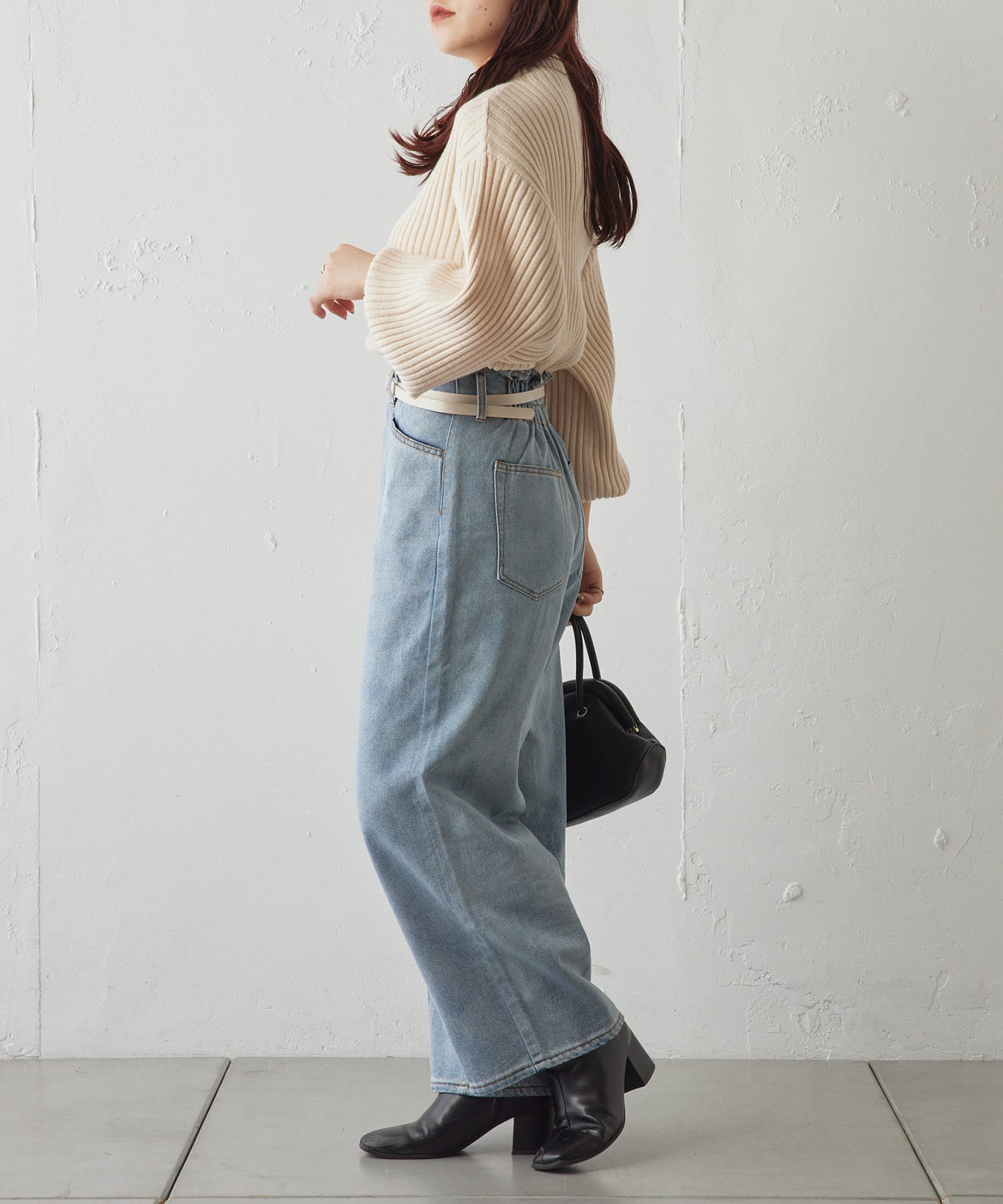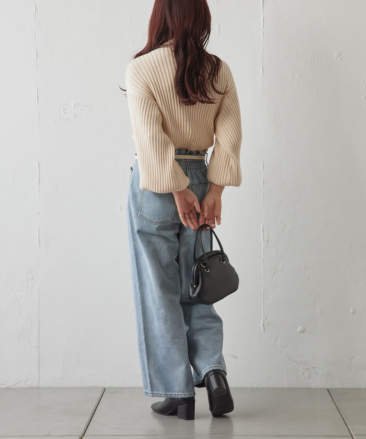 ・身頃は比較的スリムなシルエットなので、アウターやジャンスカを重ねてももたつきません。