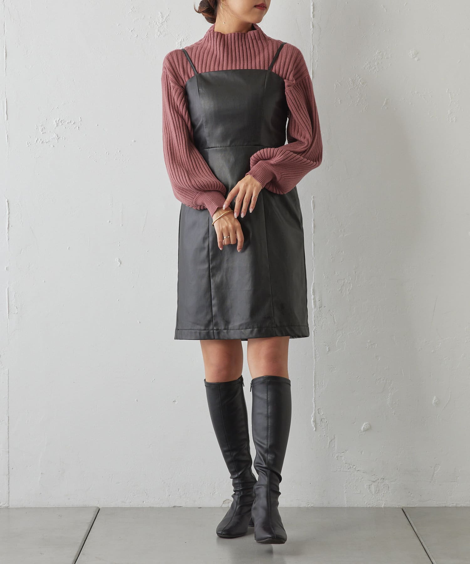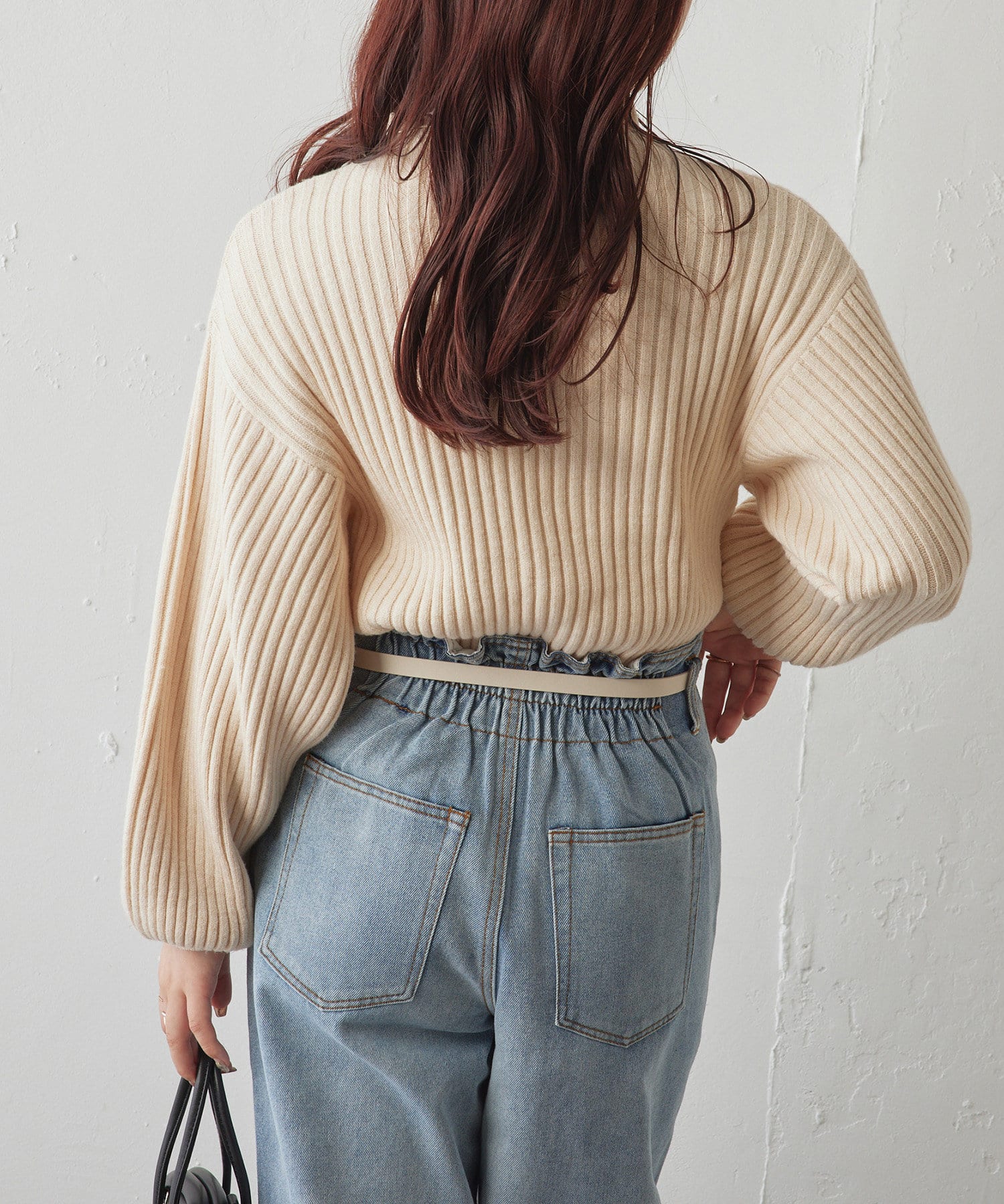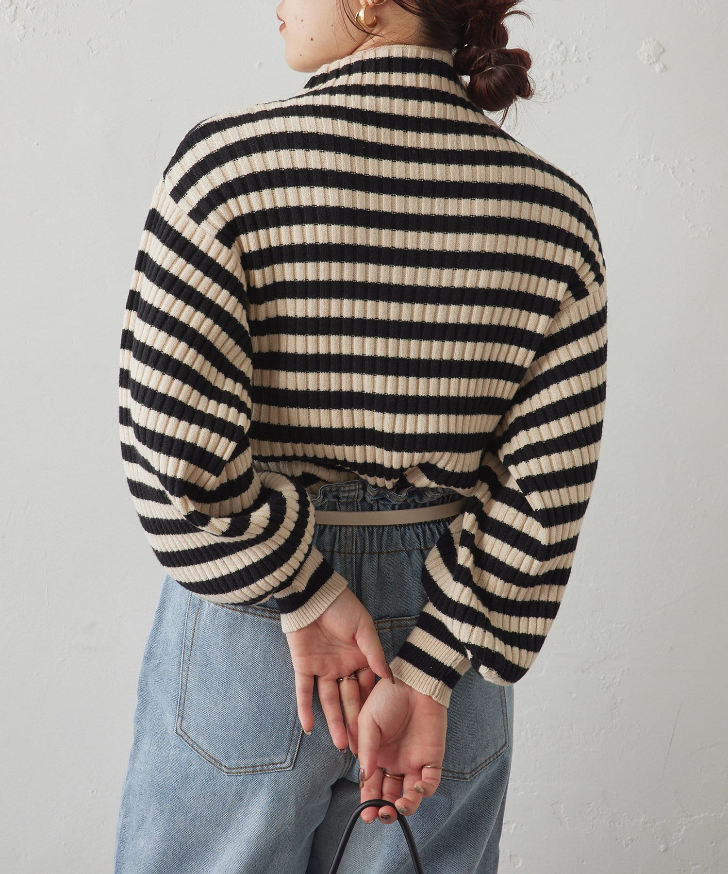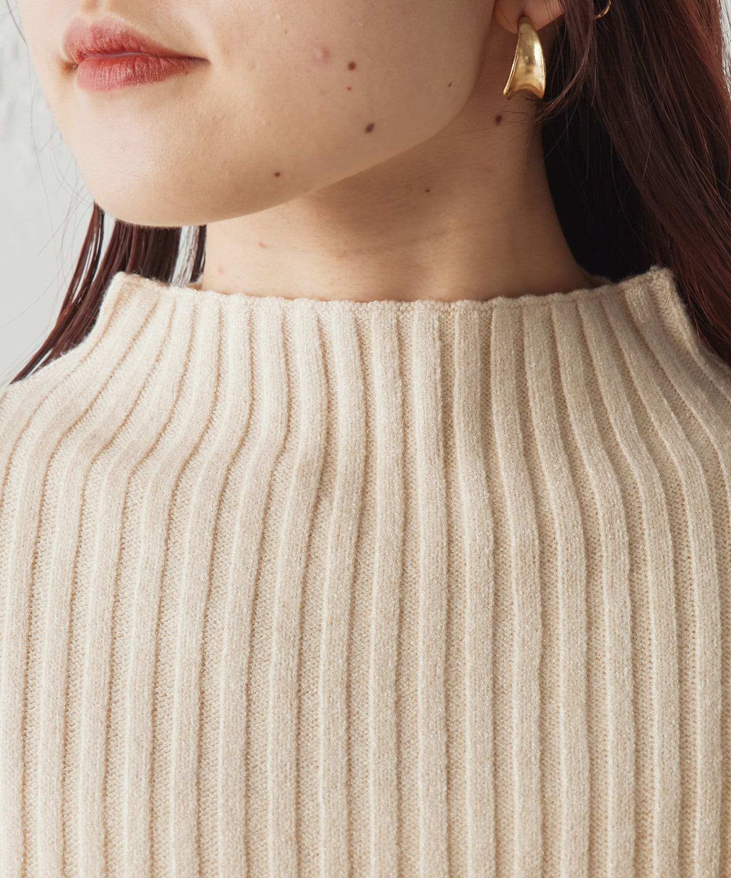 ・ボリュームスリーブとハイネックが程よいルーズさを演出。着るだけで旬顔に。