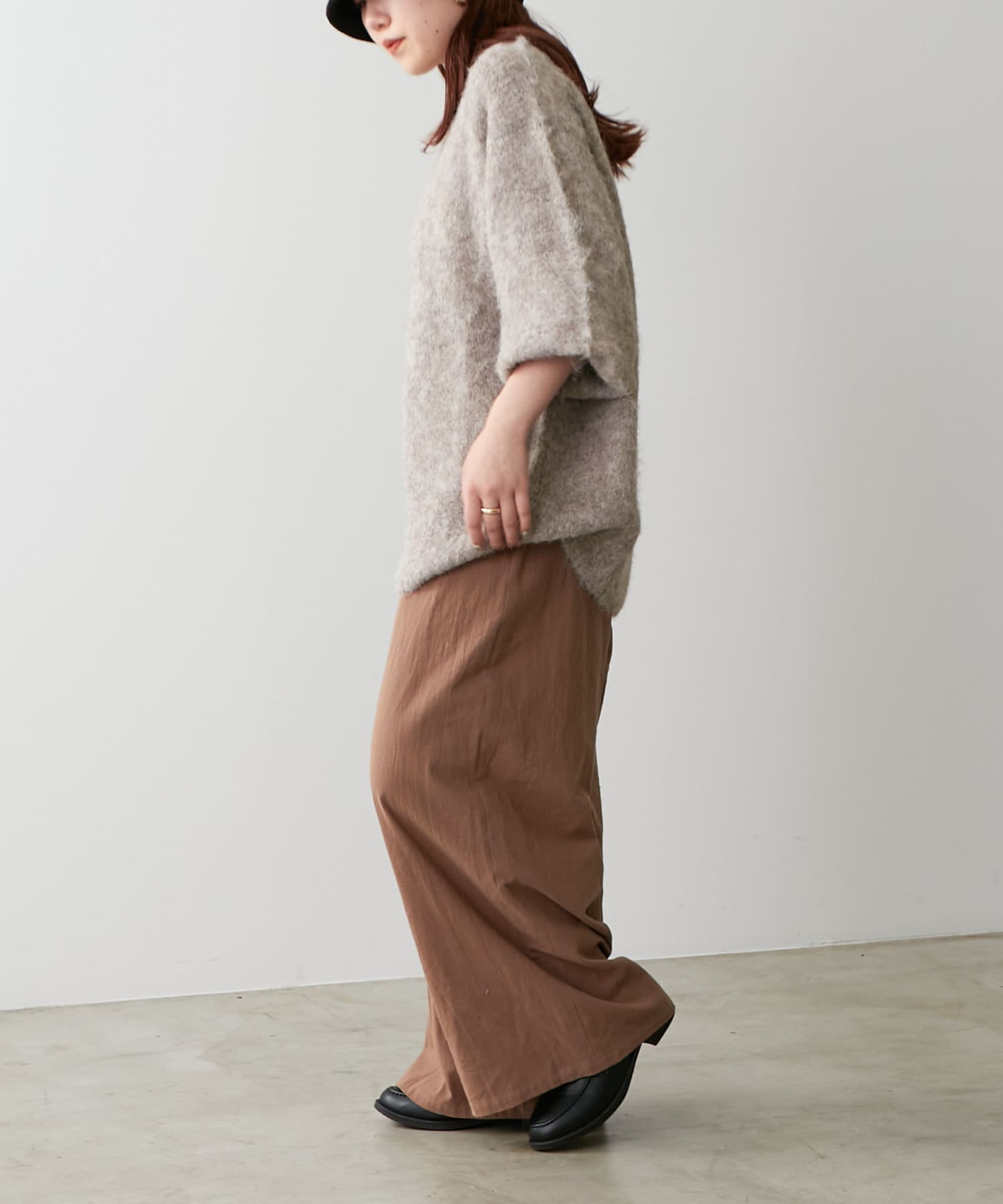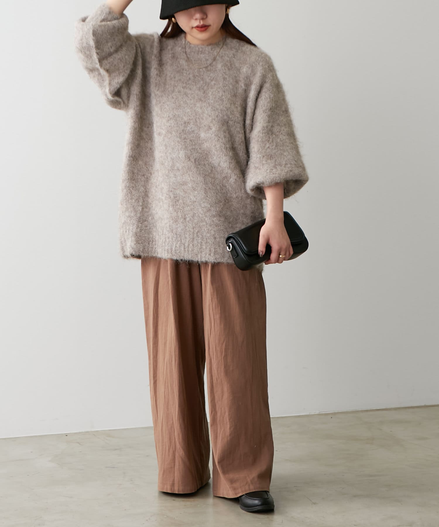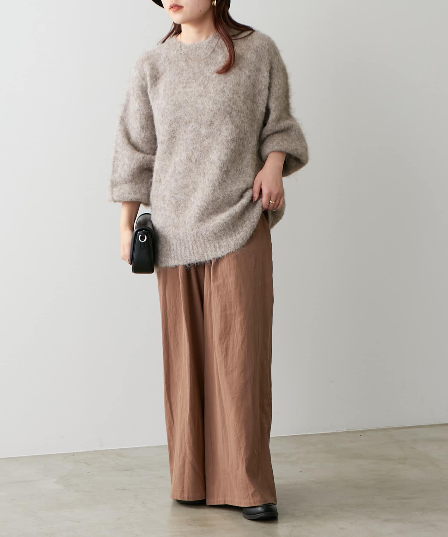 ・表情豊かなメランジニットのカラーリングがポイントになり、きれいめなボトムと合わせてもシンプルになり過ぎず、1枚で簡単に秋冬のムードを取り入れていただけます。