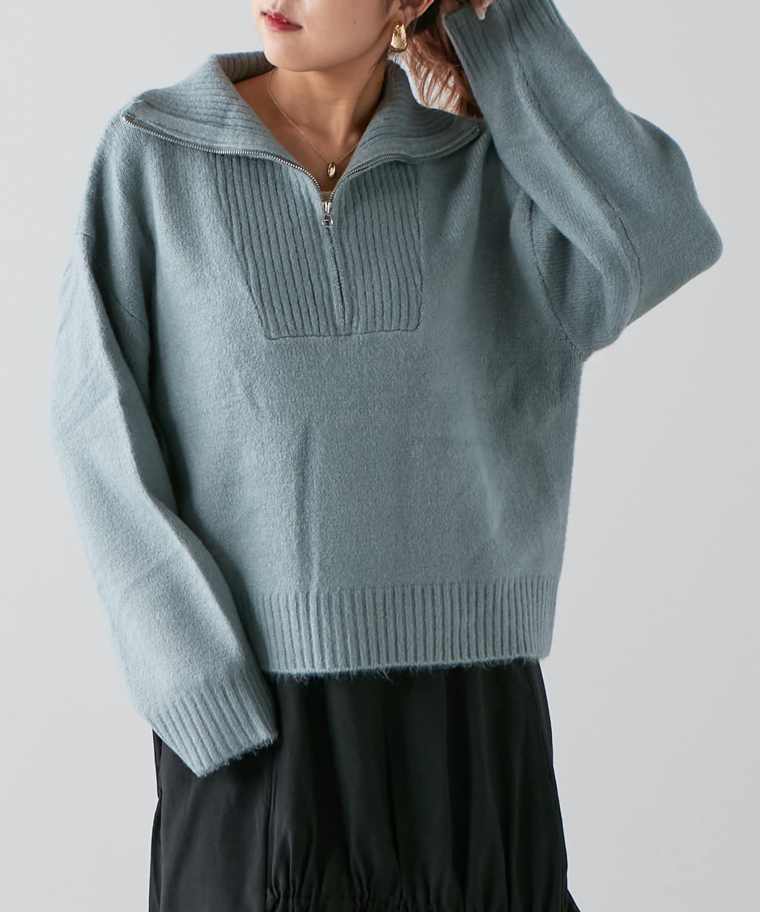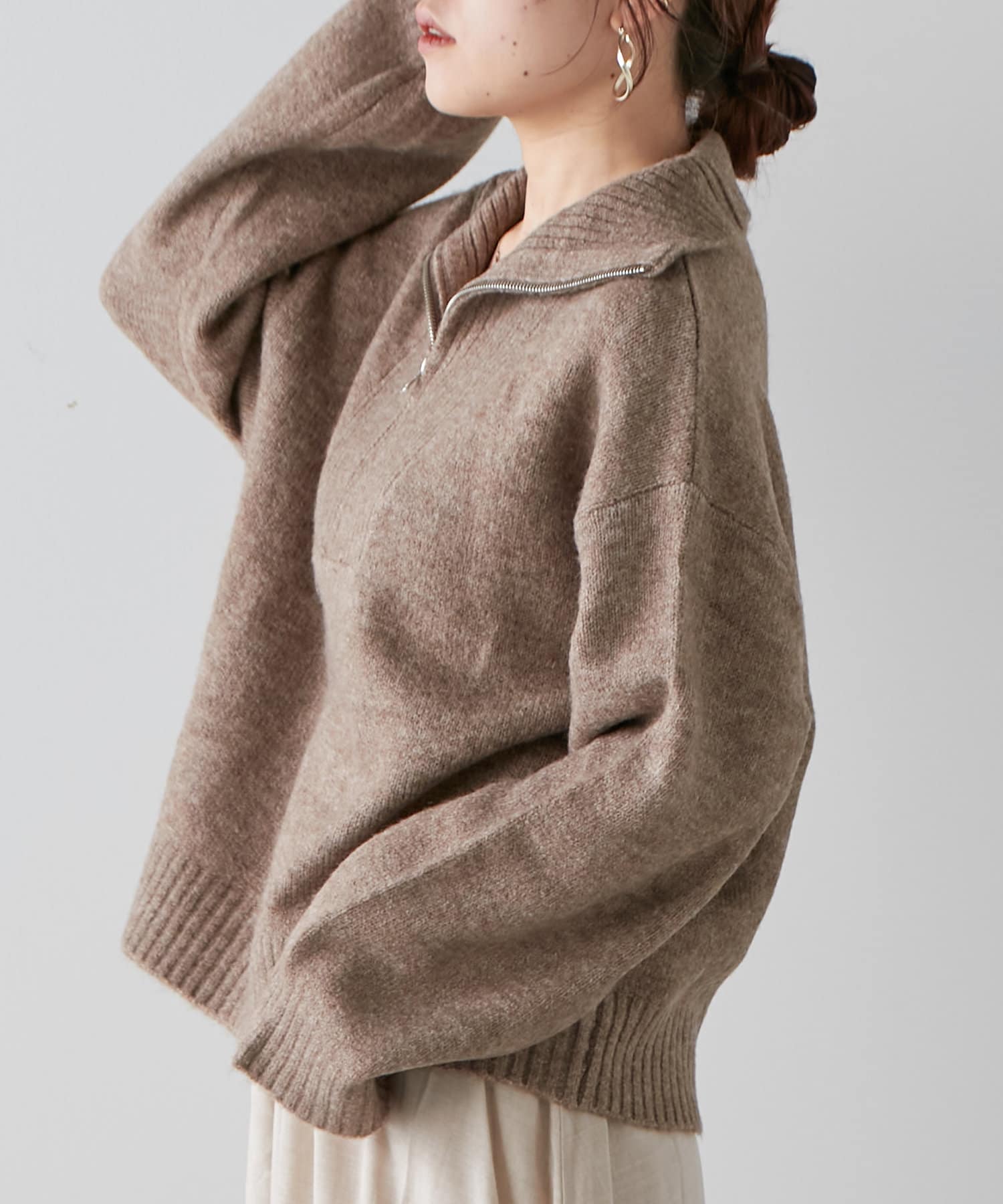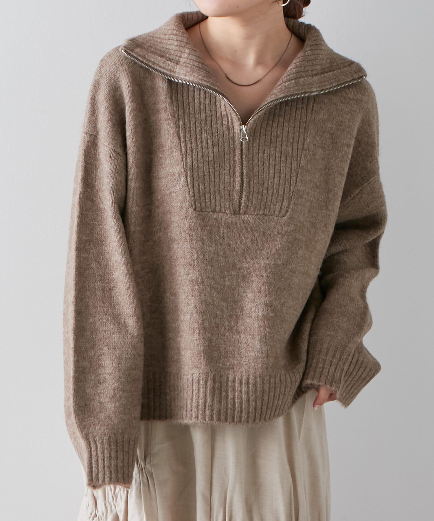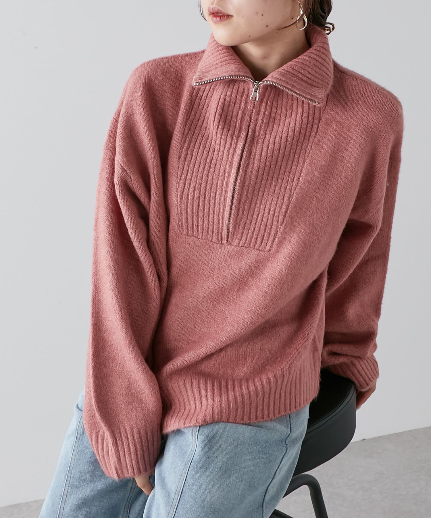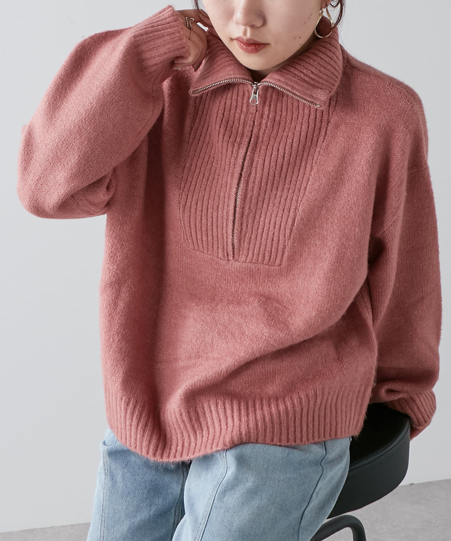 ・人気アイテム、ふわふわな触り心地が気持ちのよいハーフジップニット