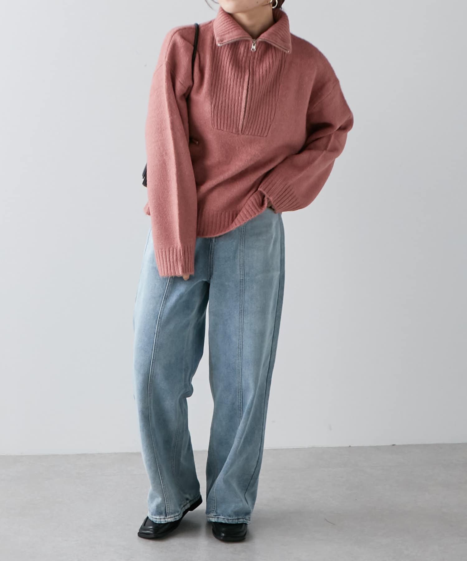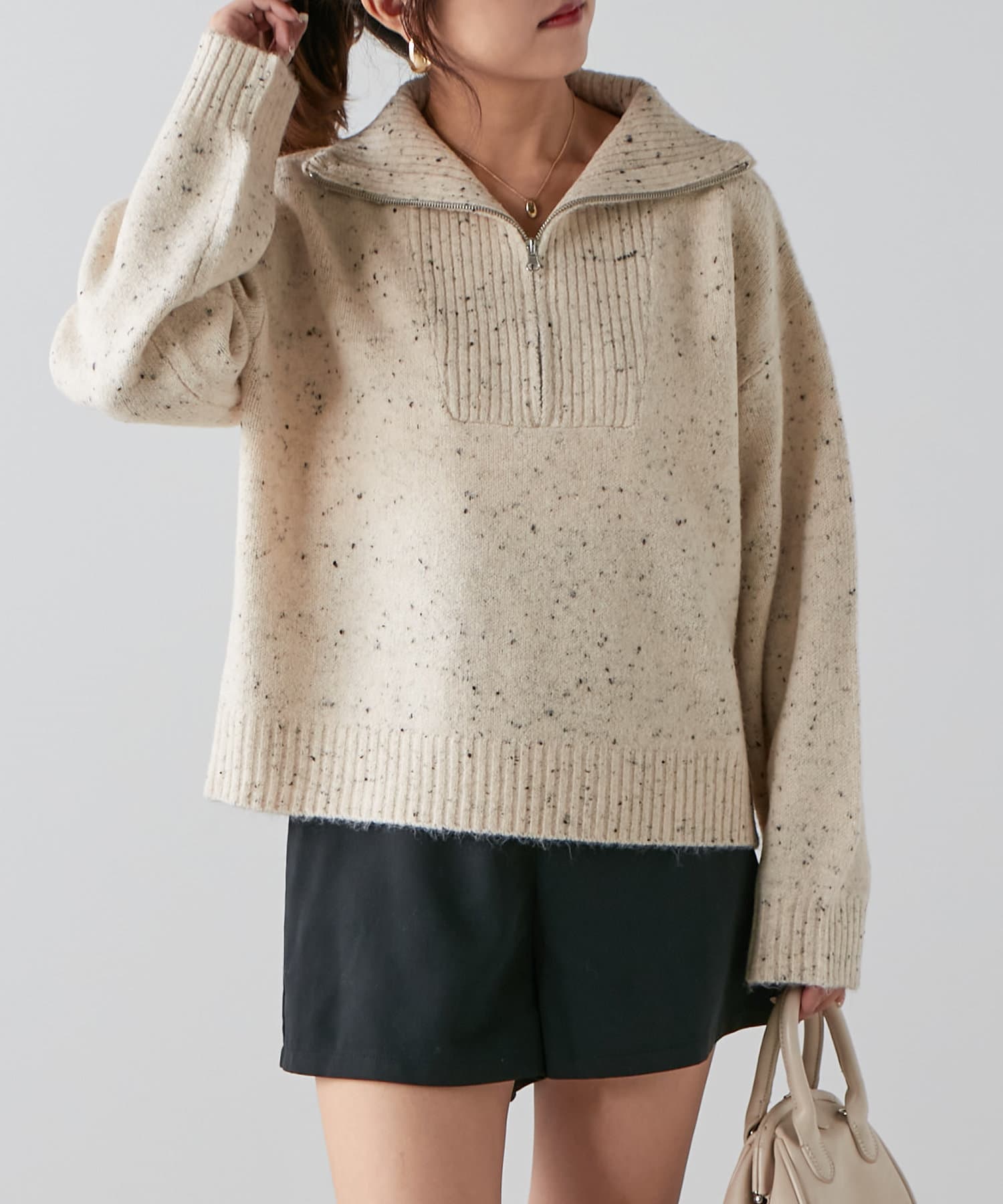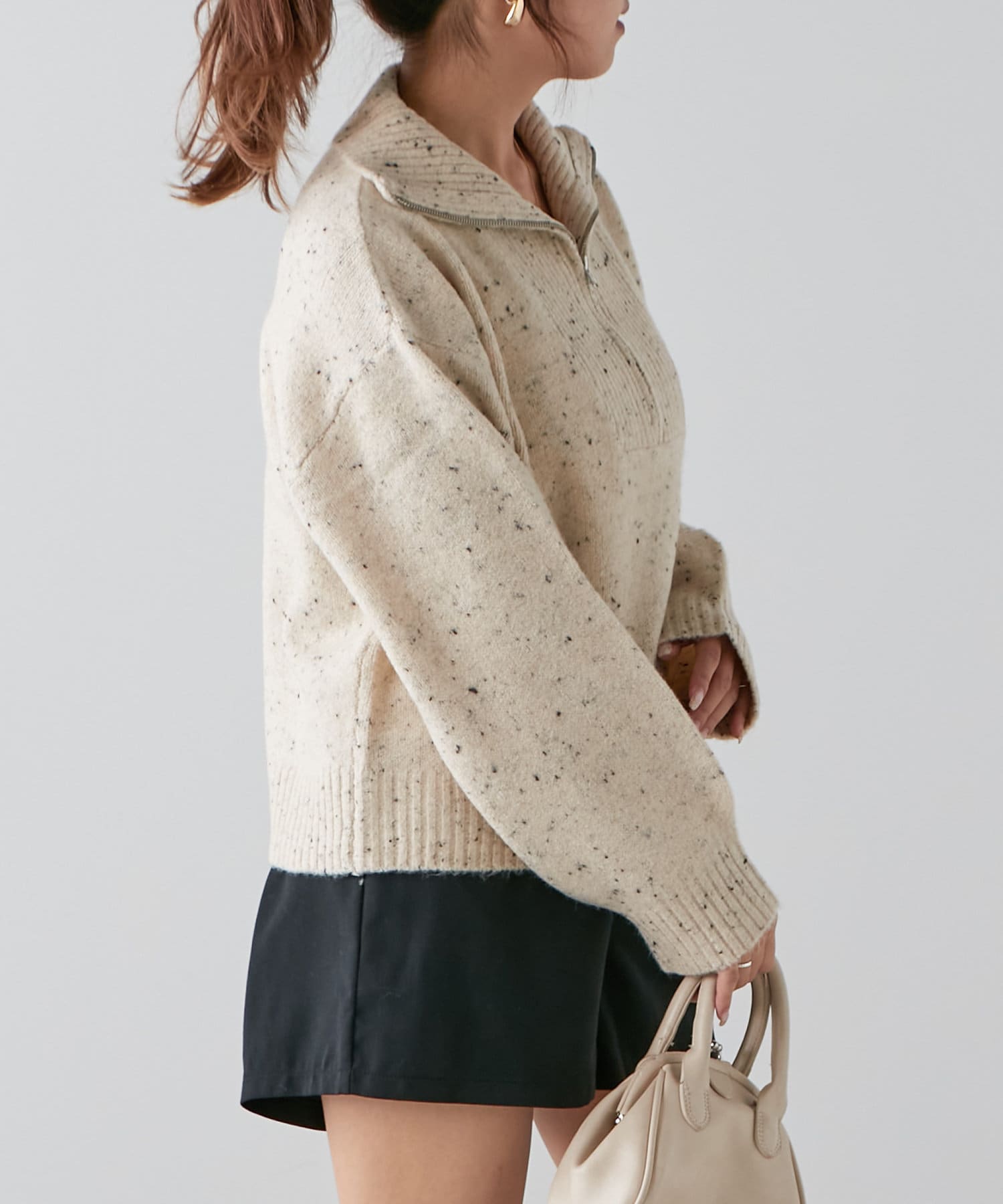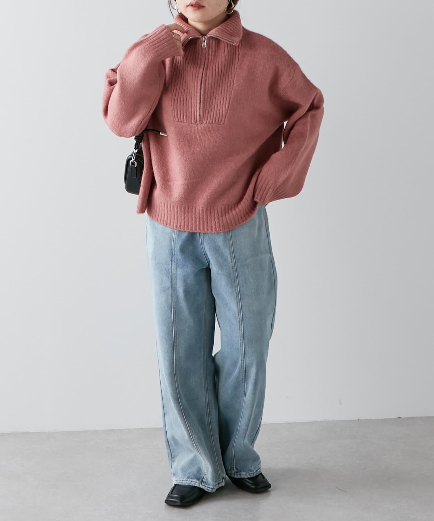 ・人気アイテム、ふわふわな触り心地が気持ちのよいハーフジップニット