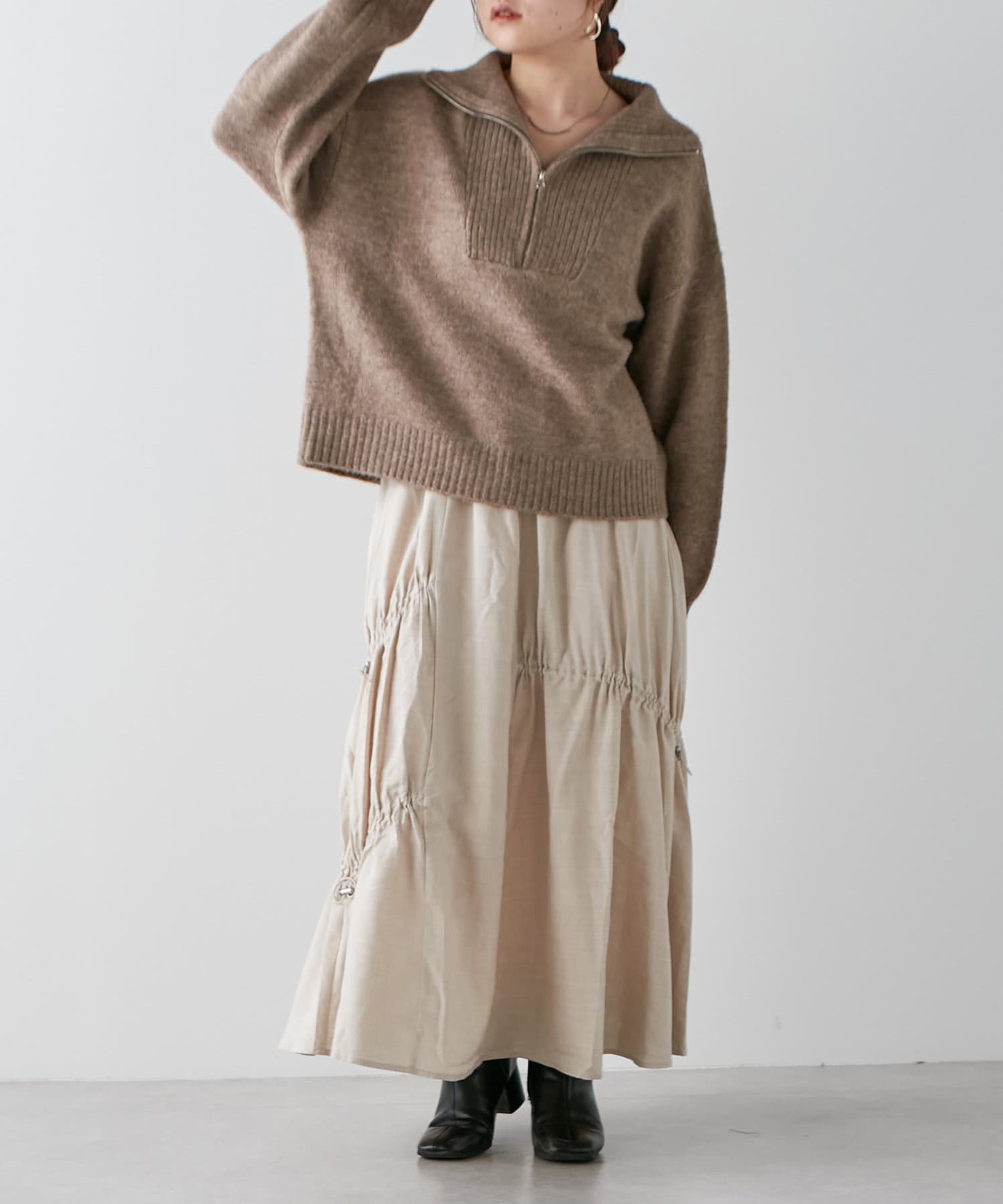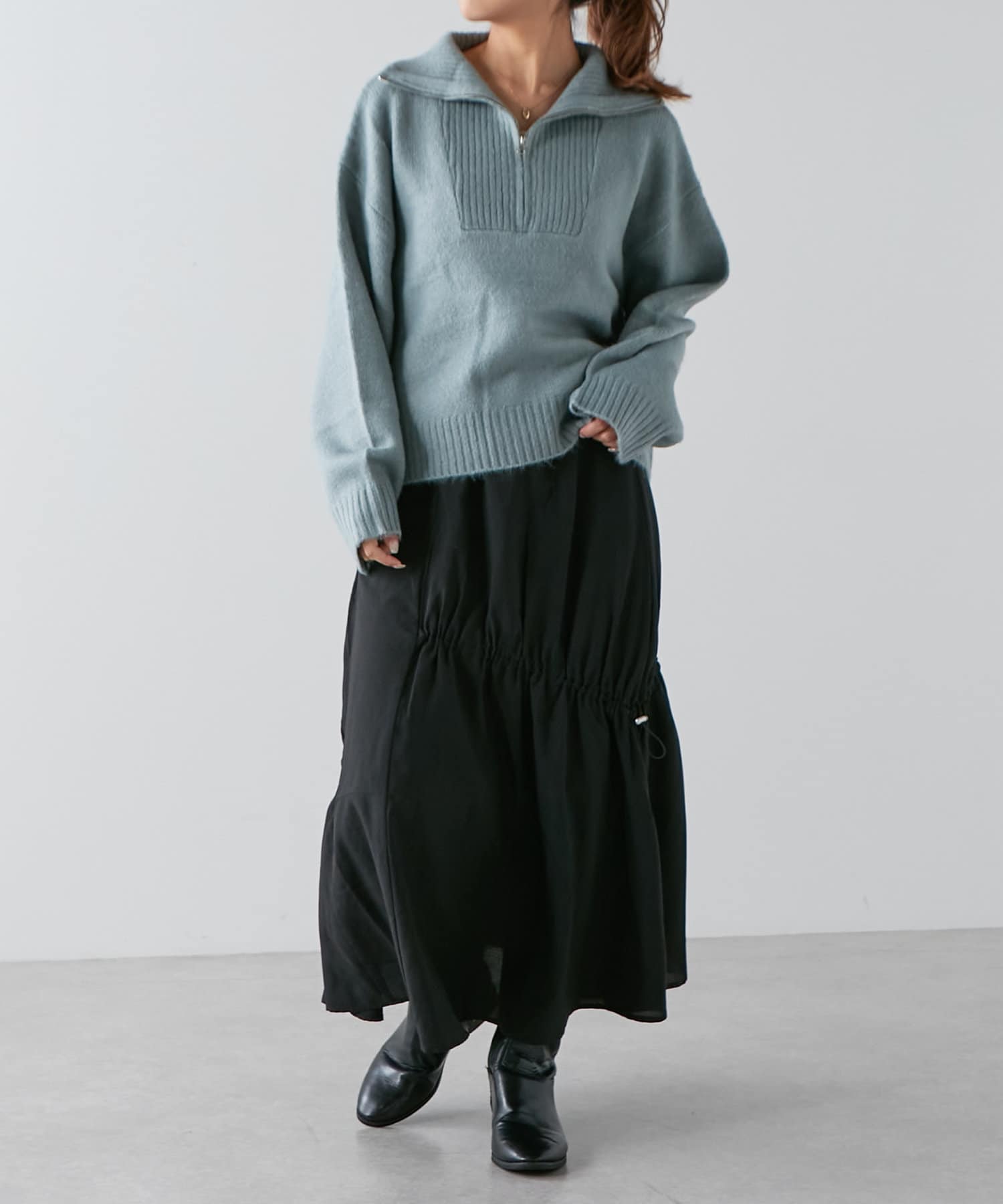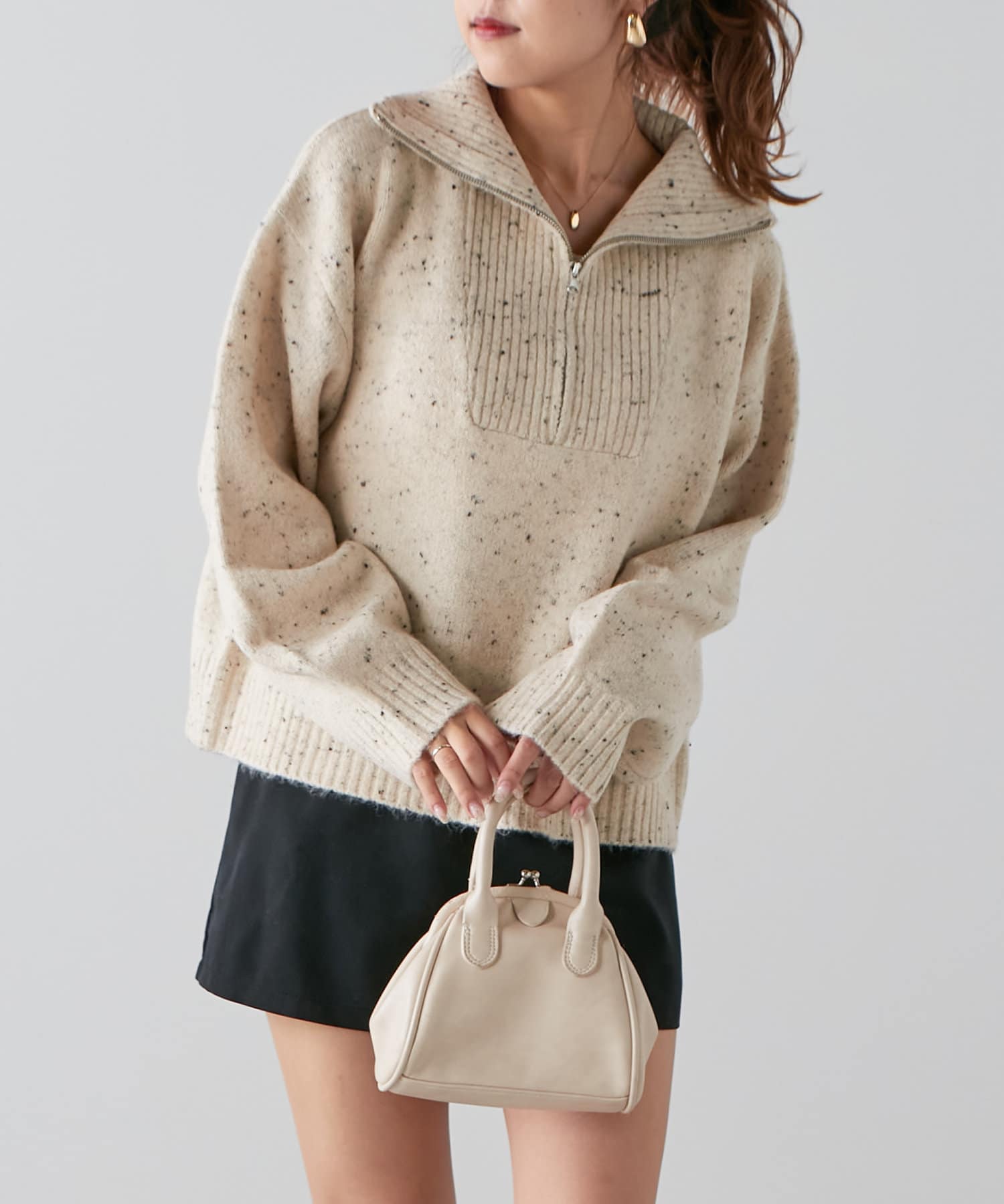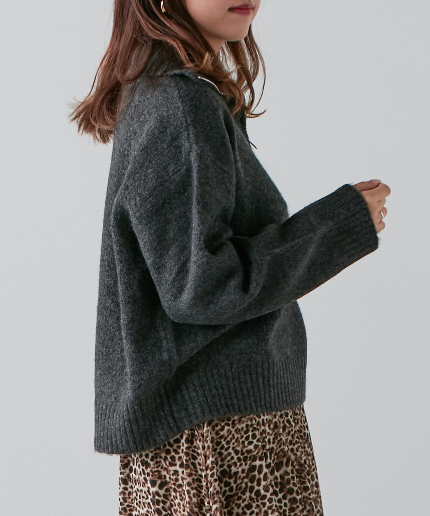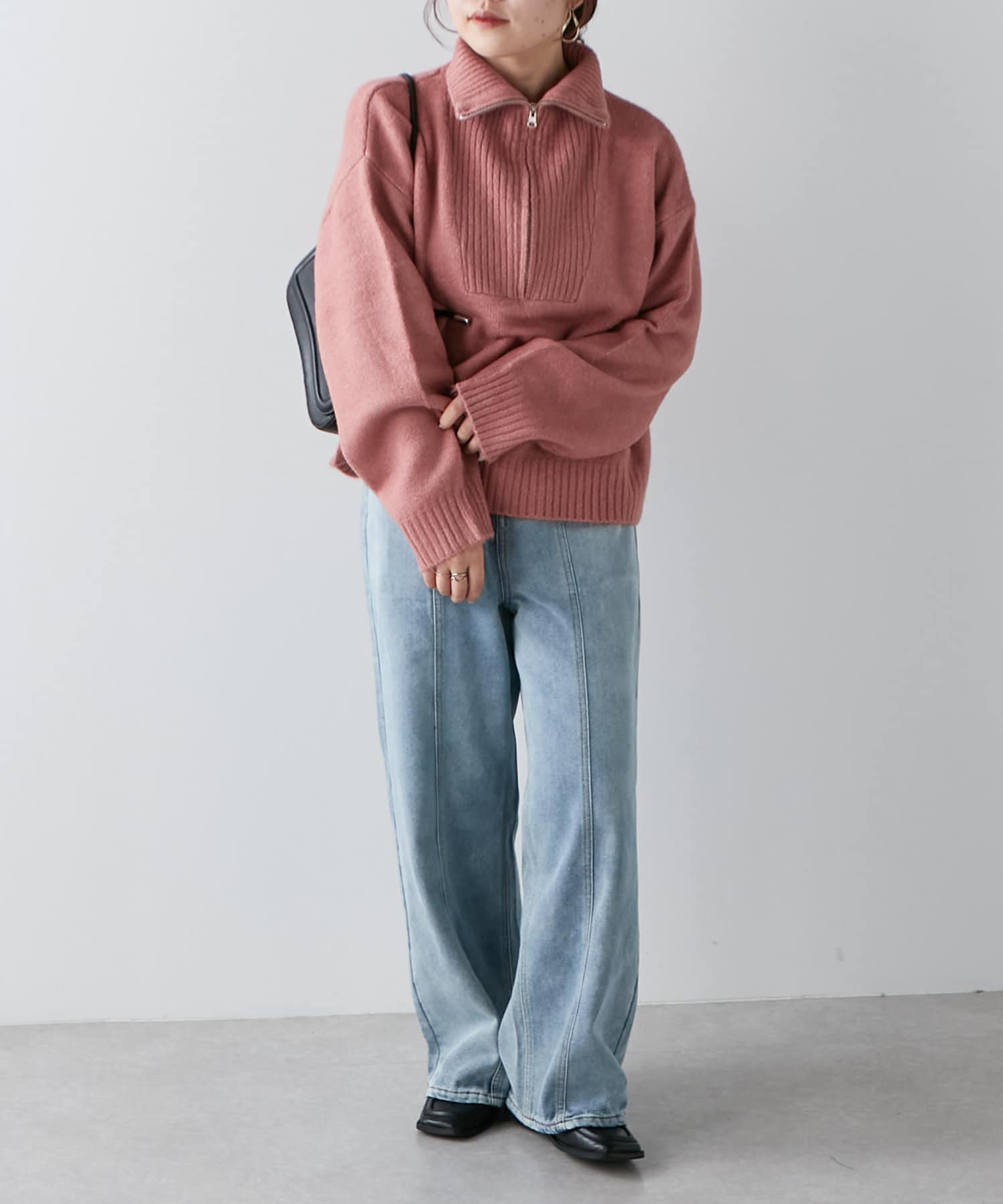 ・人気アイテム、ふわふわな触り心地が気持ちのよいハーフジップニット