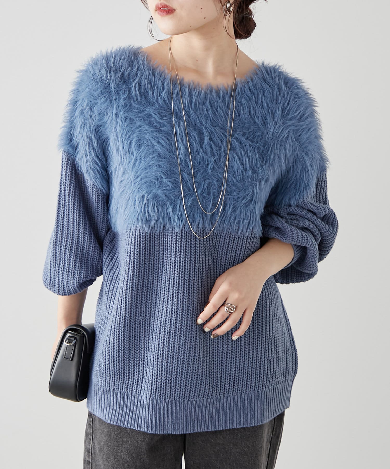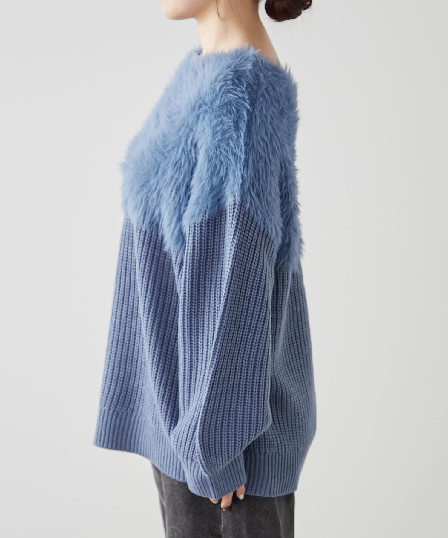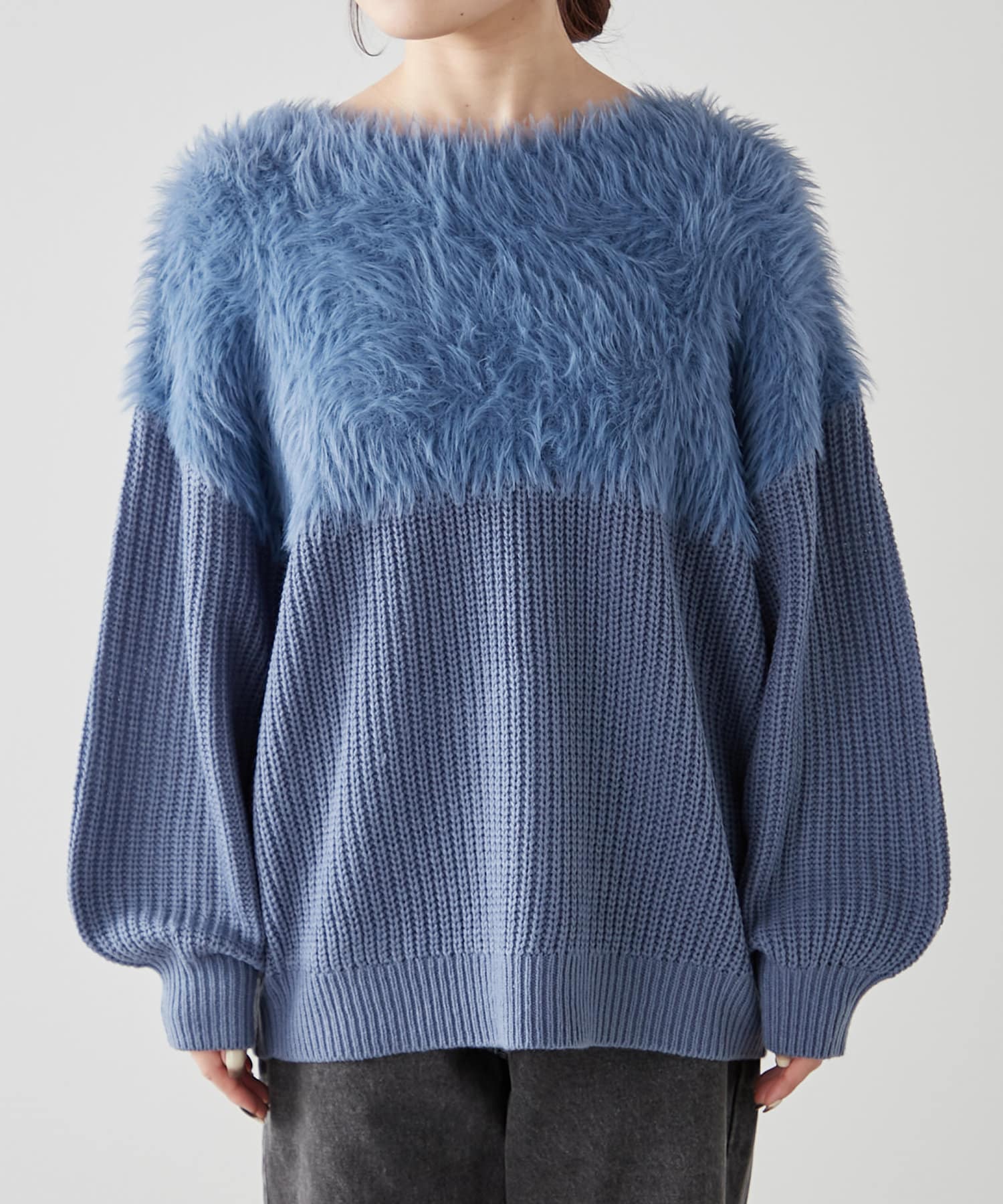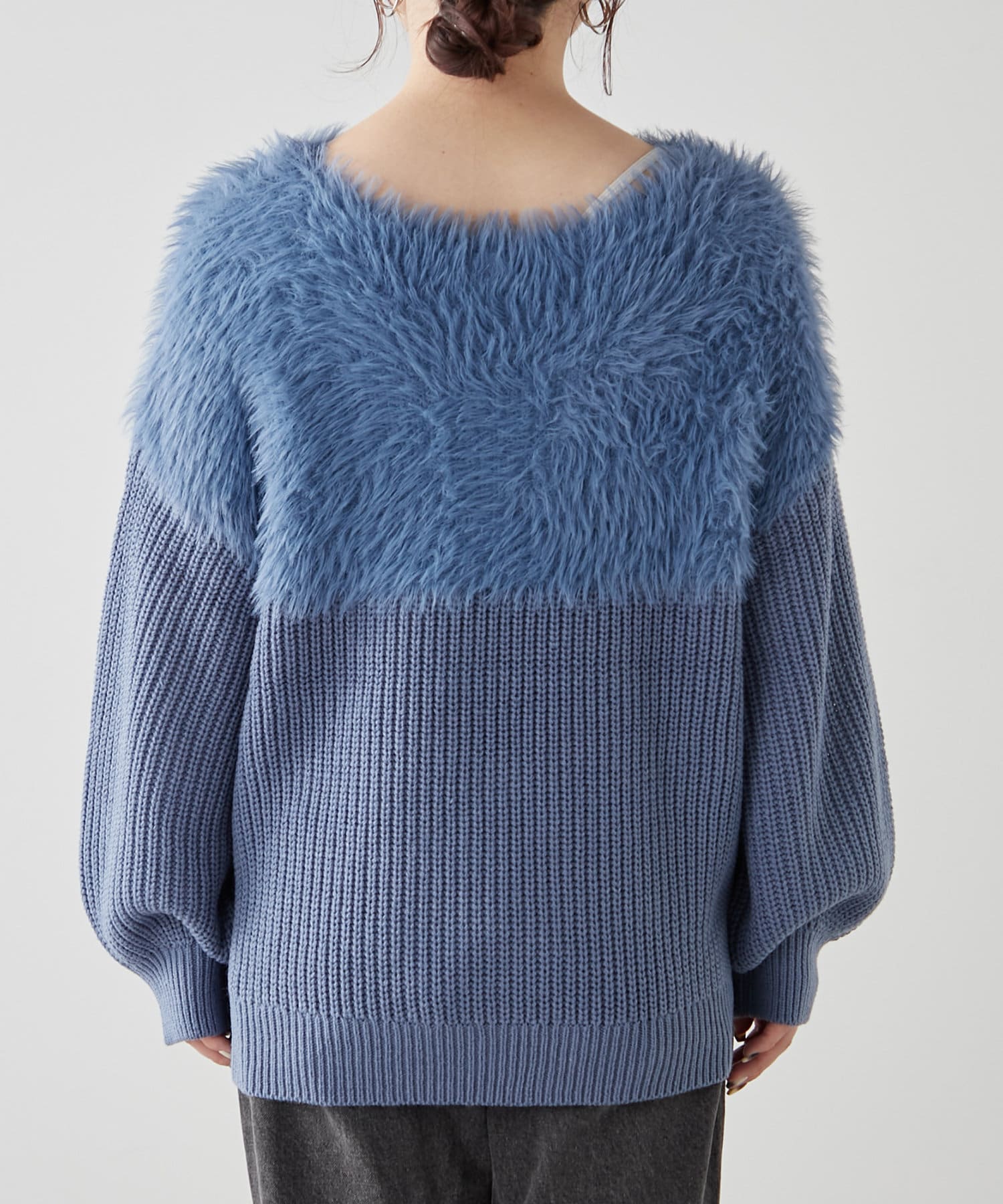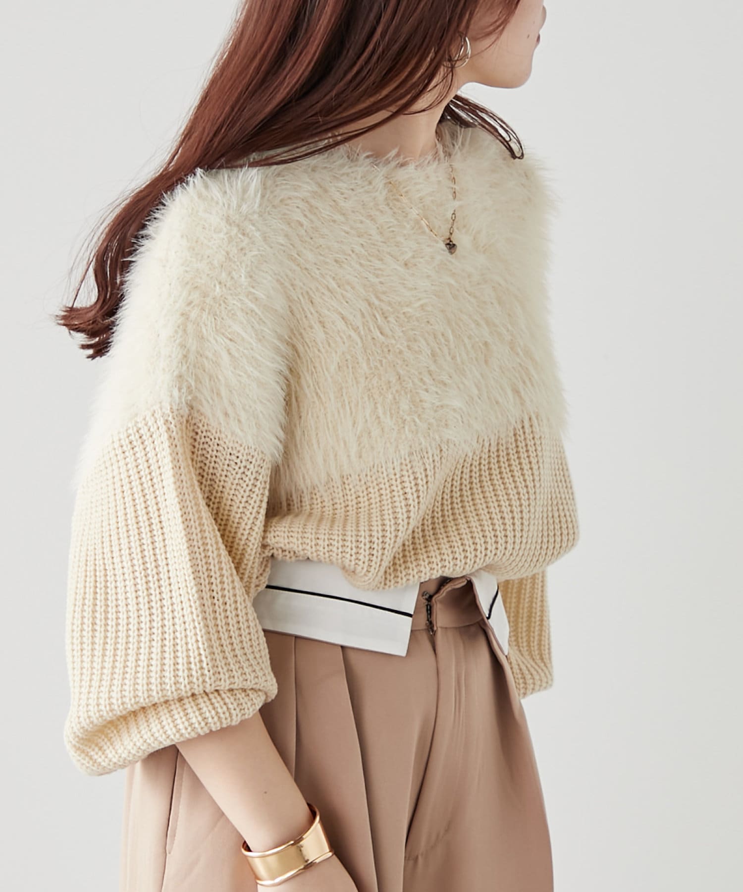 ・ふわふわっとしたシャギーと畦編みニットの切替がポイント