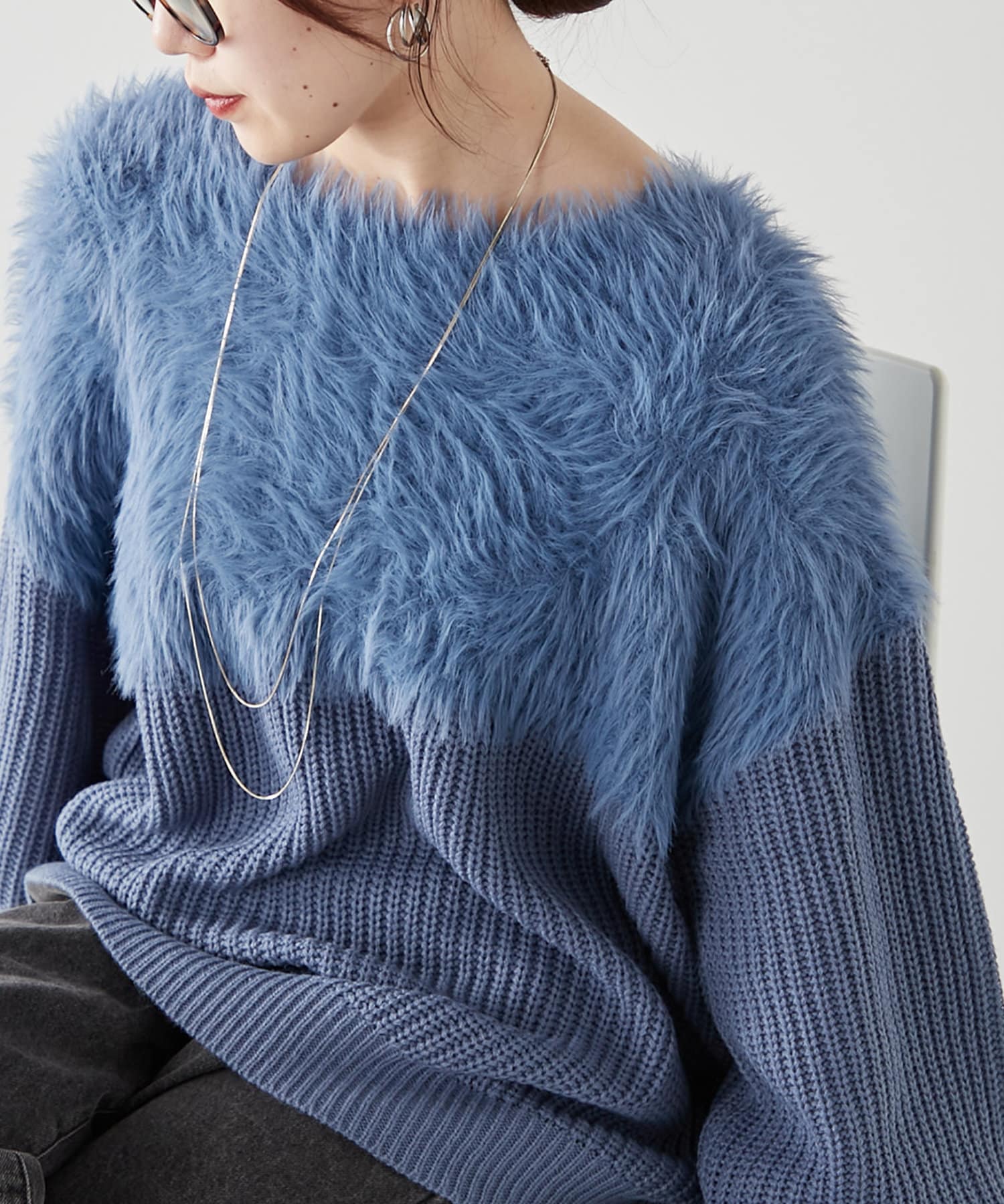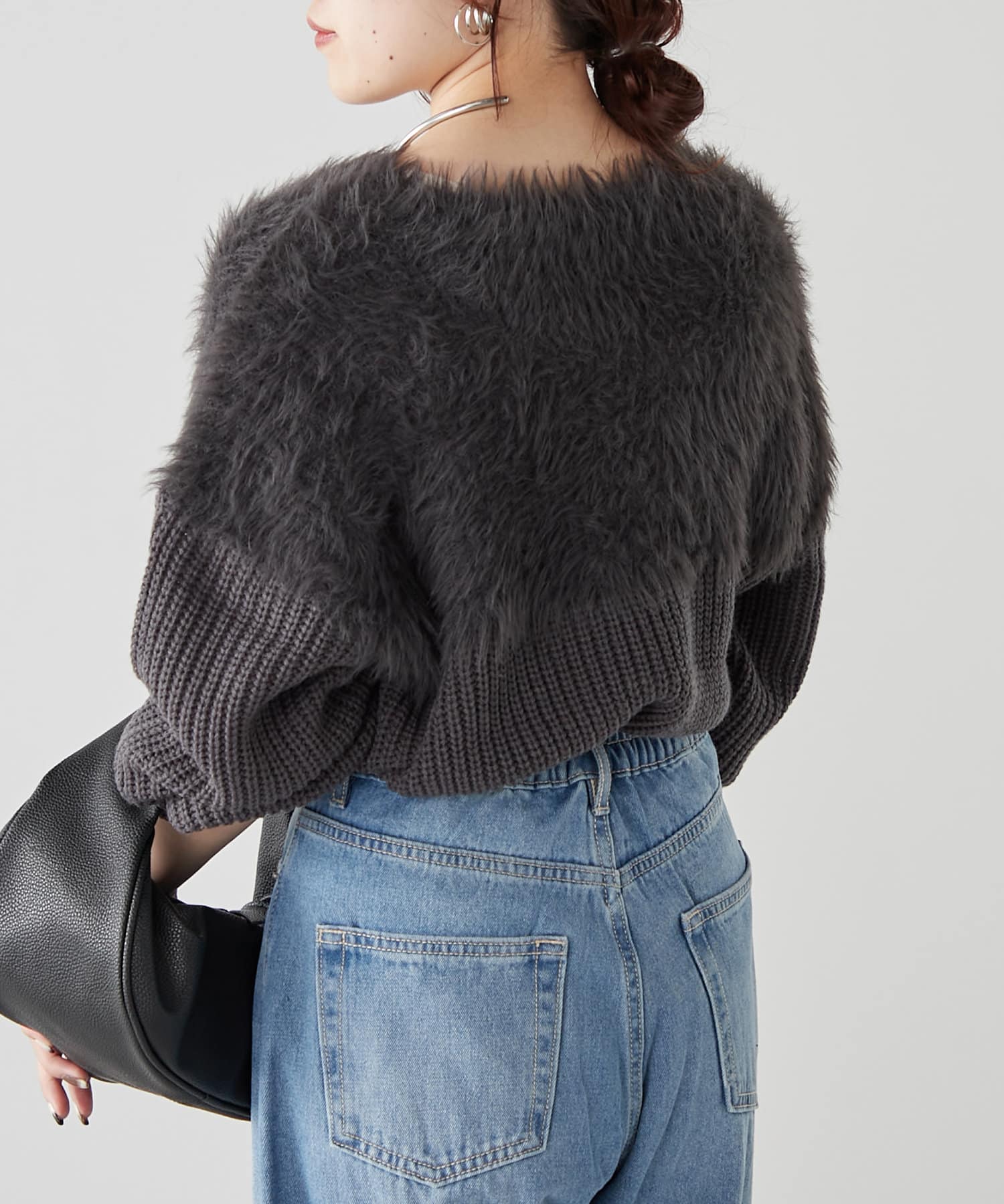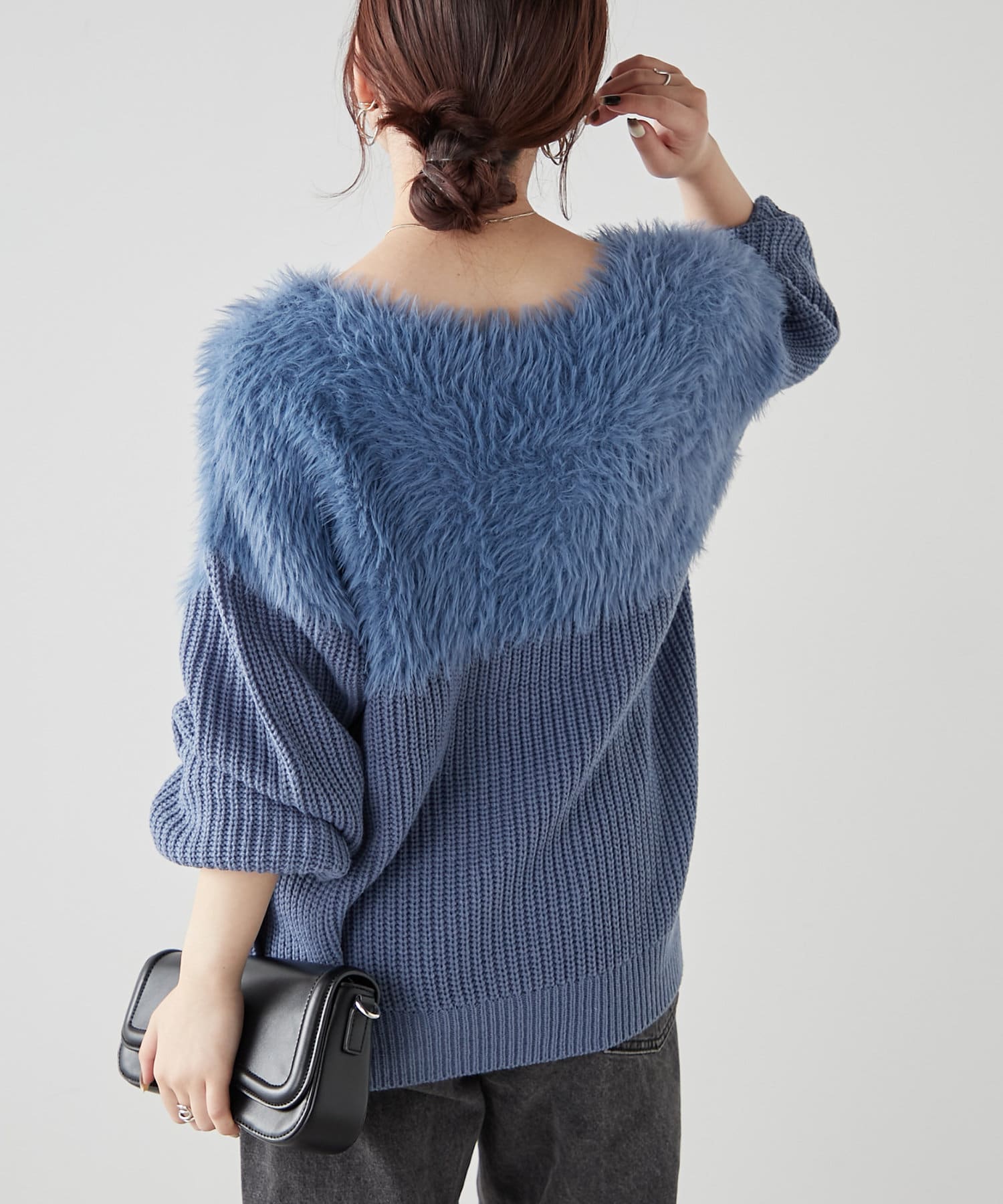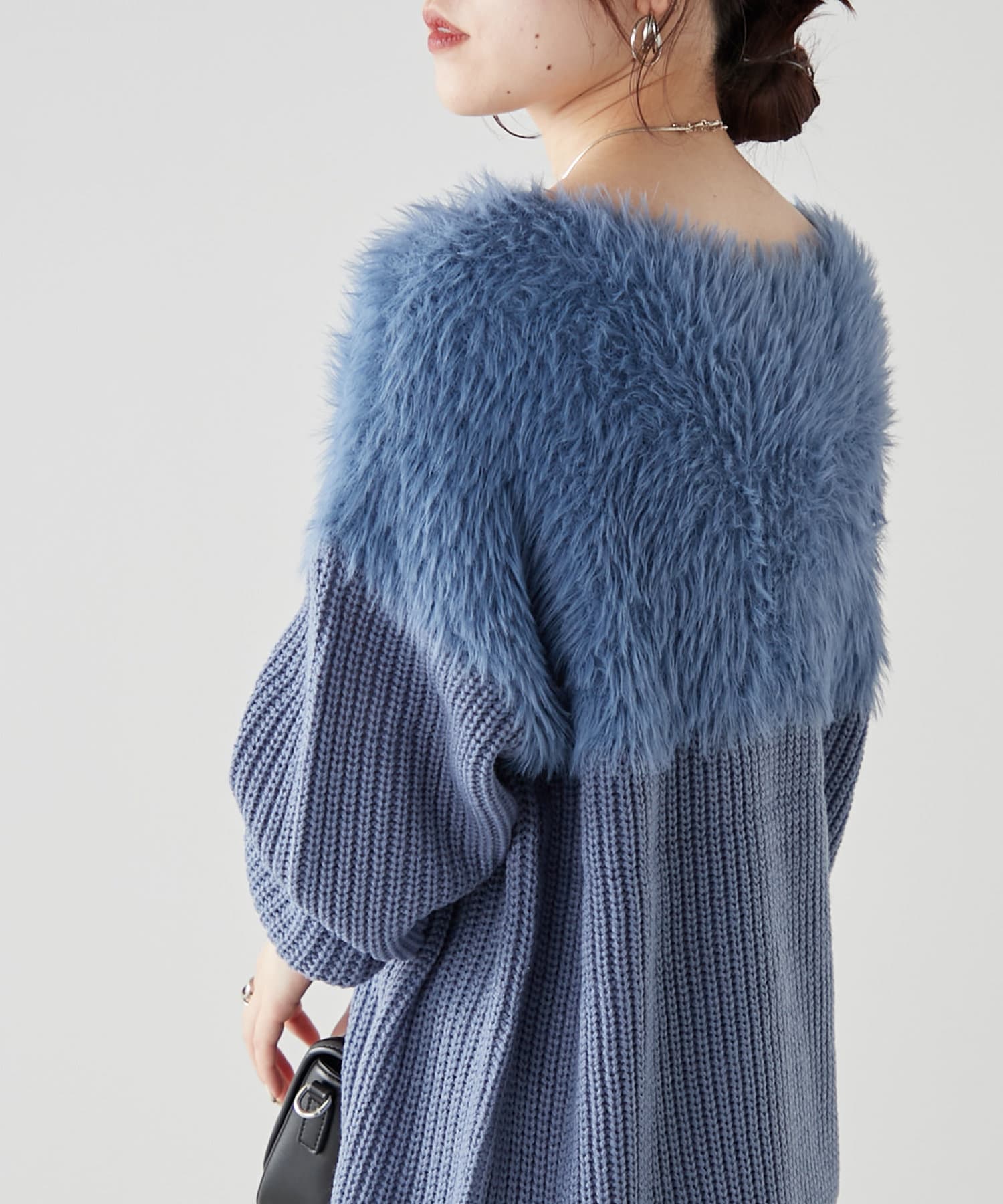 ・ふわふわっとしたシャギーと畦編みニットの切替がポイント